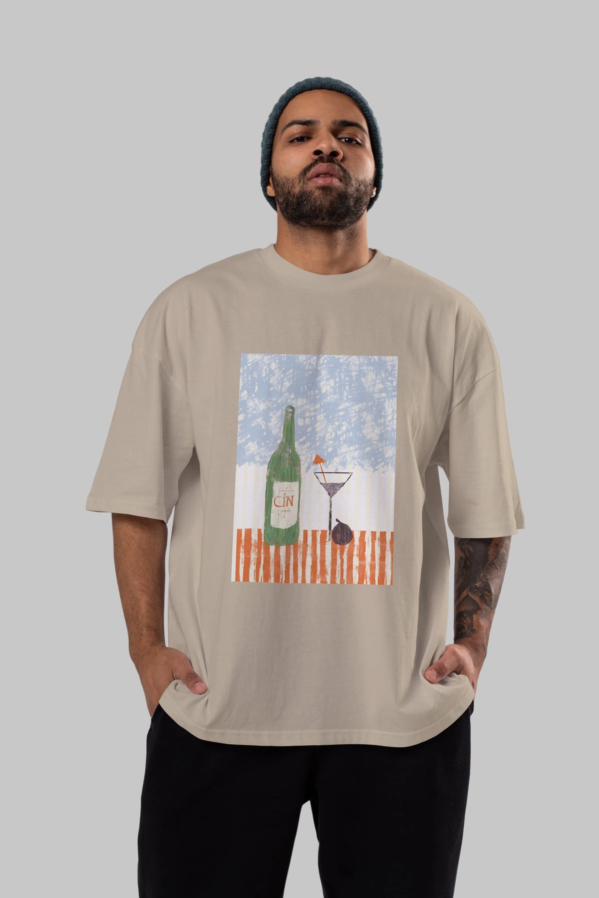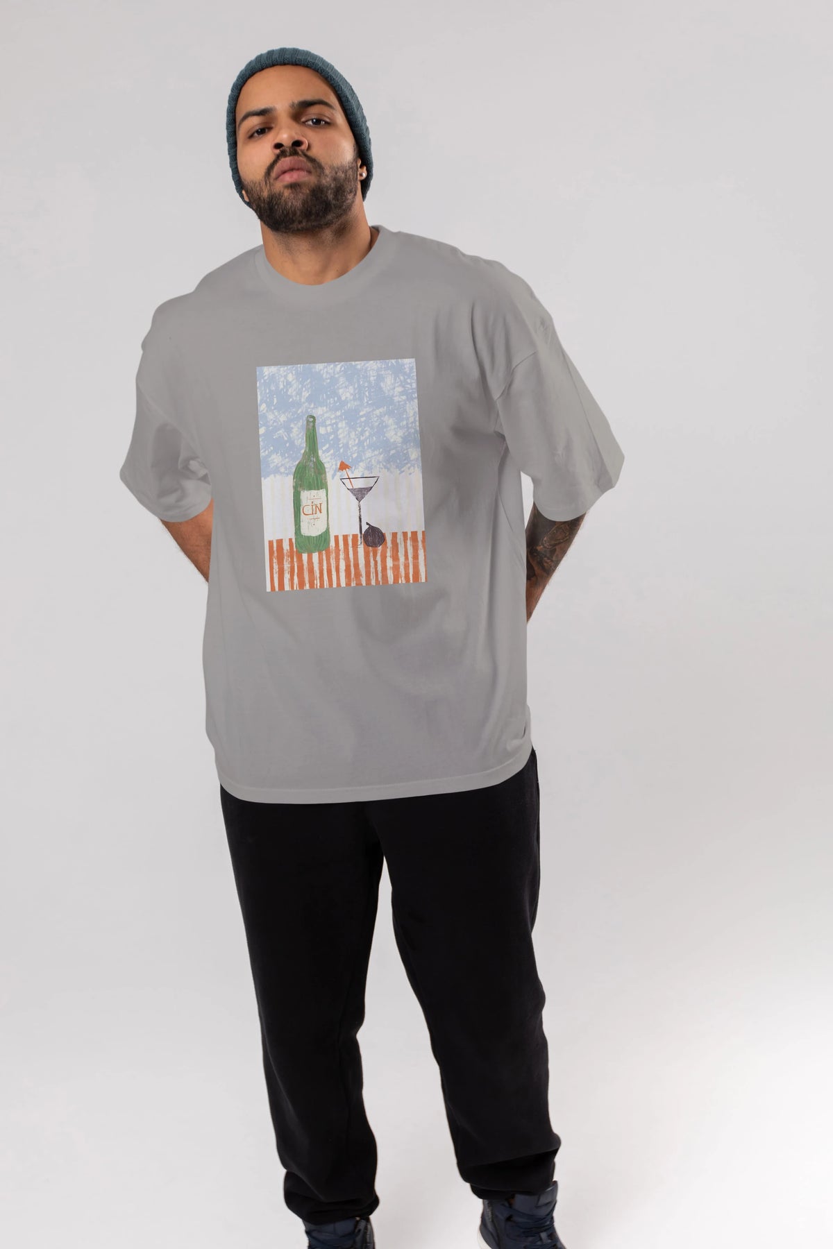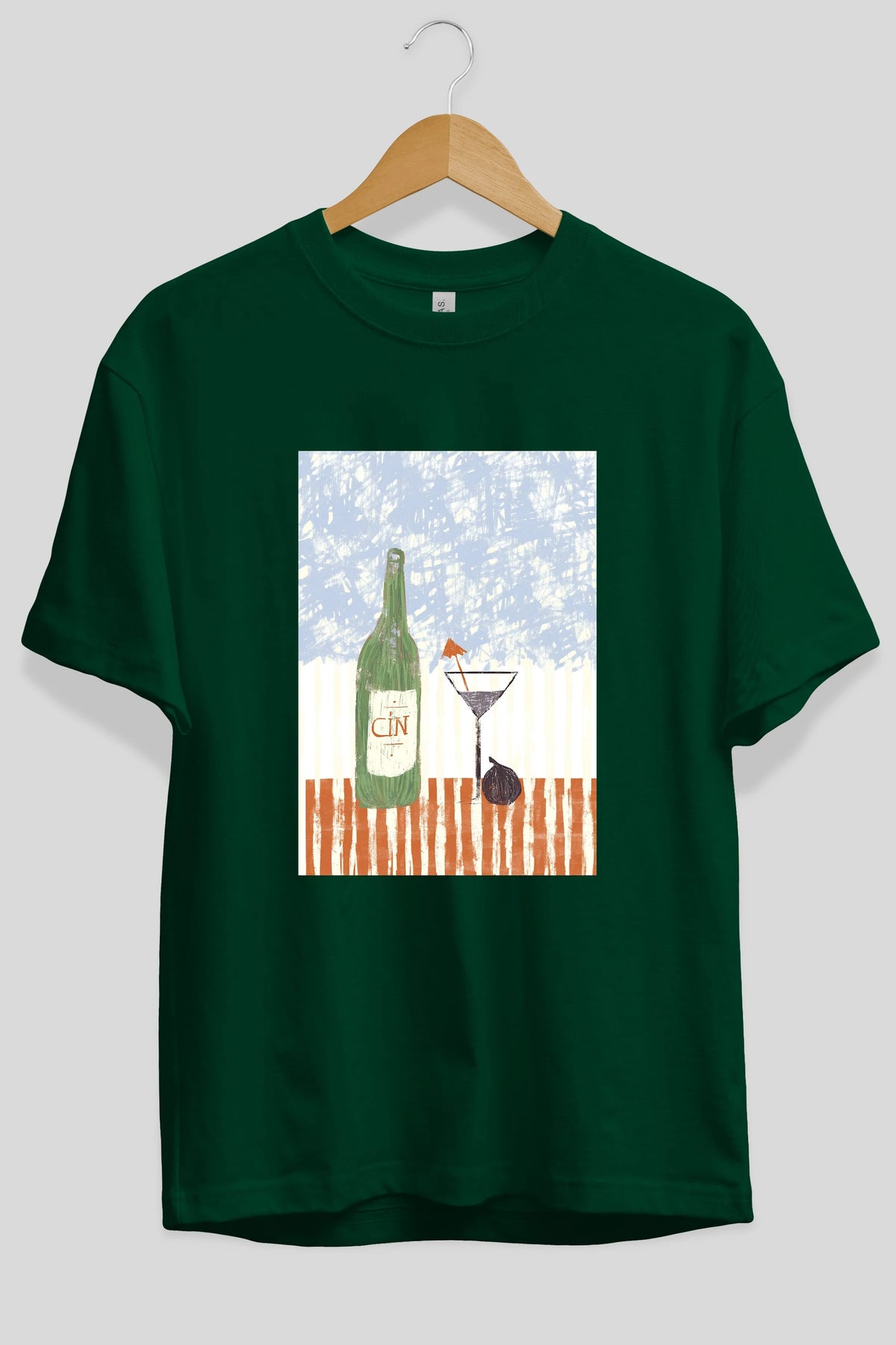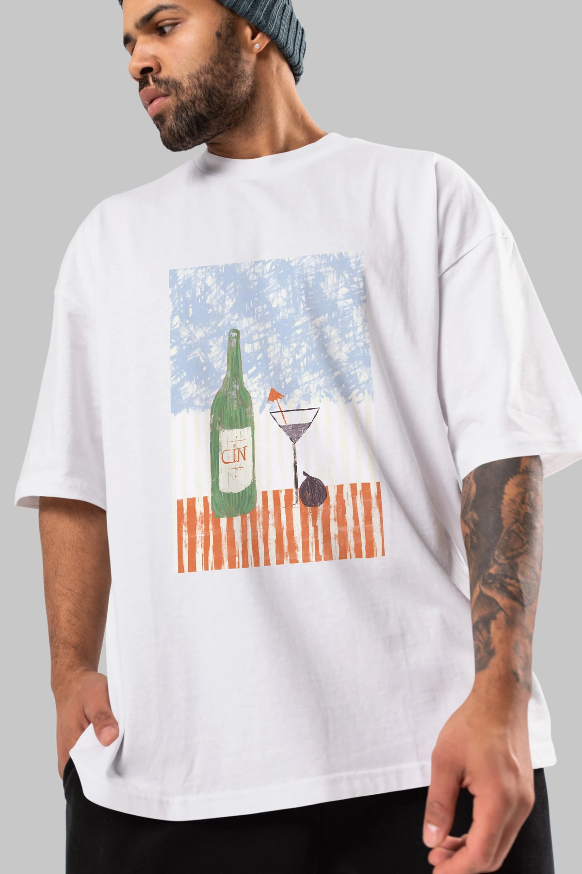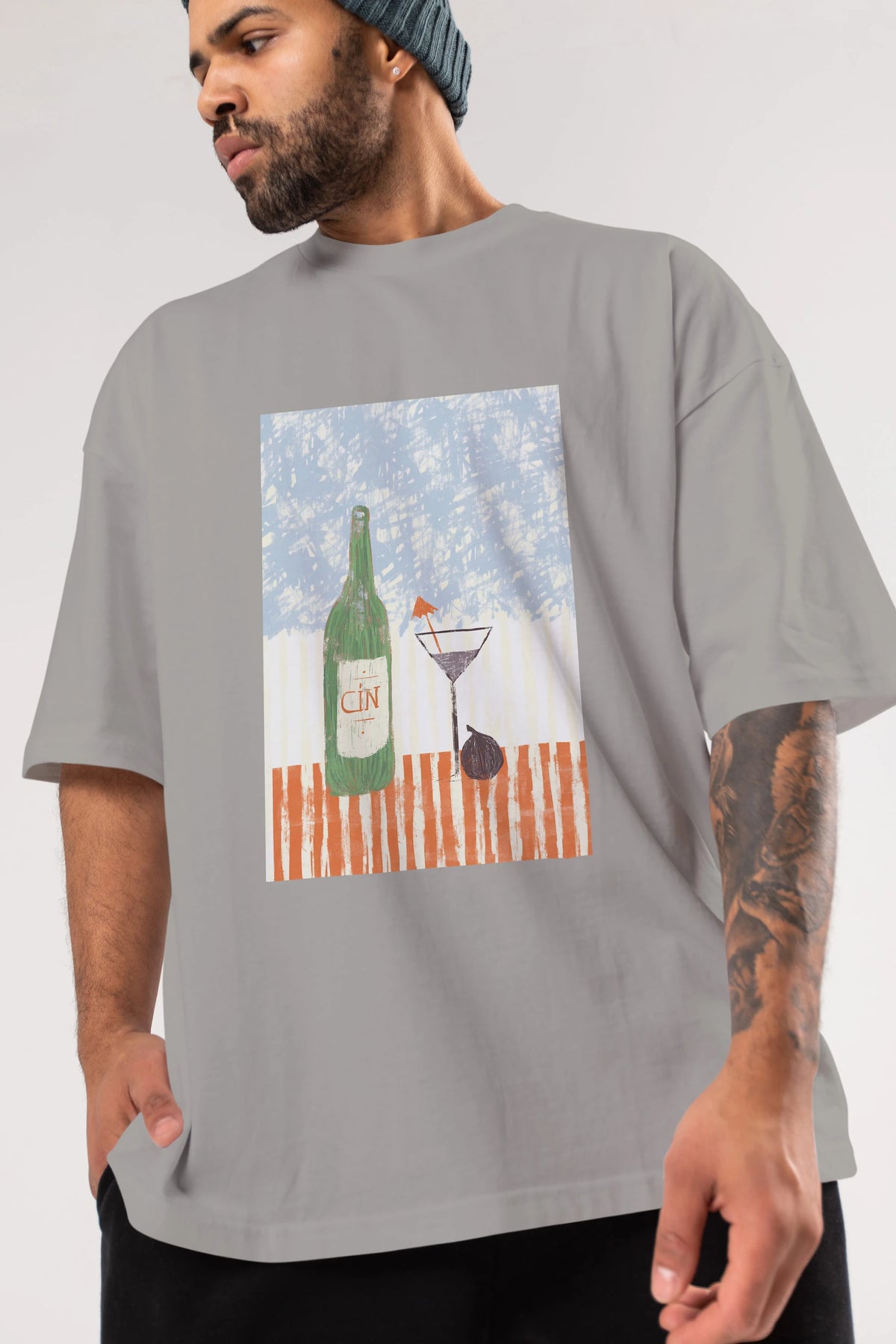 Gin Ön Baskılı Oversize t-shirt Erkek Kadın Unisex %100 Pamuk Bisiklet Yaka tişort