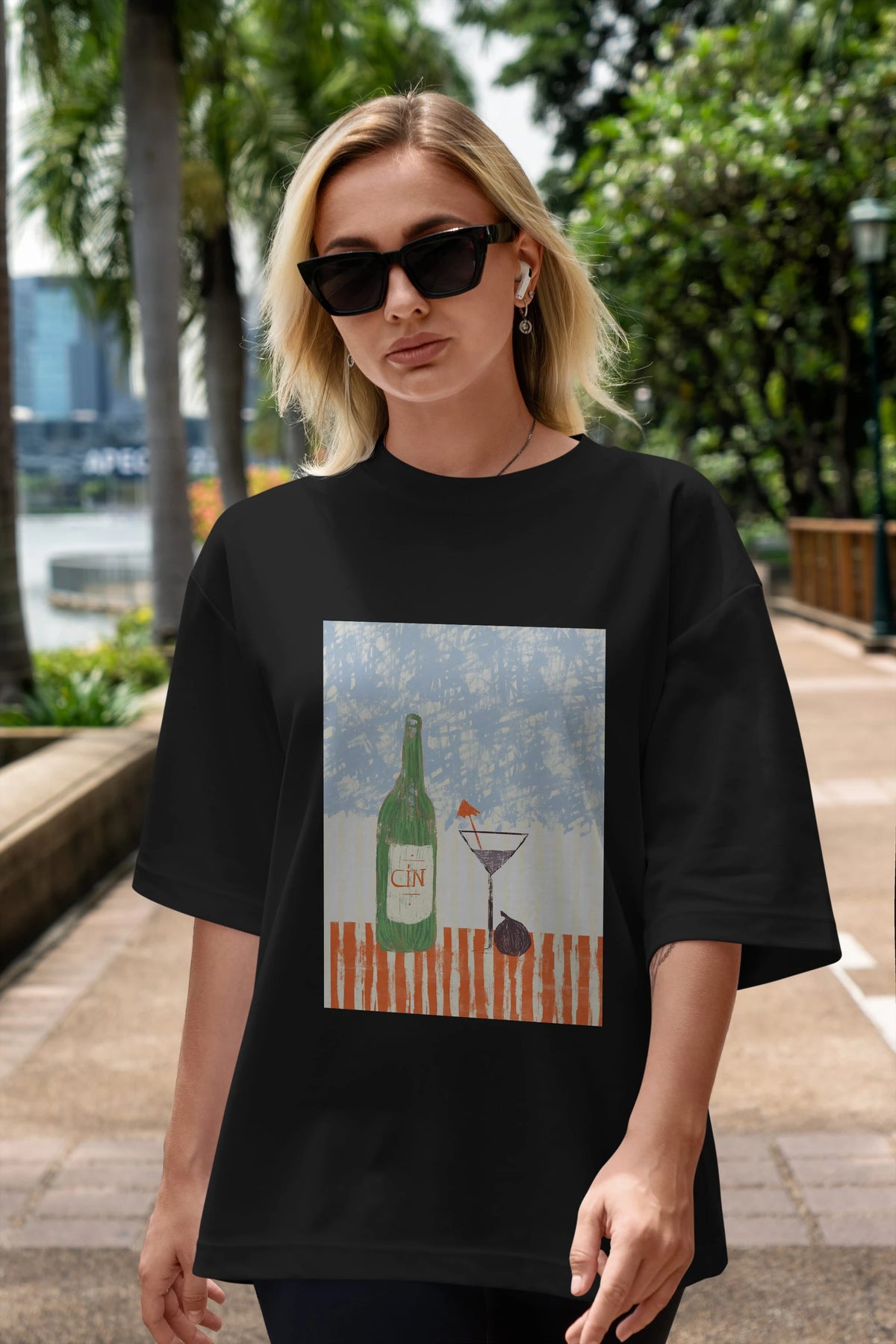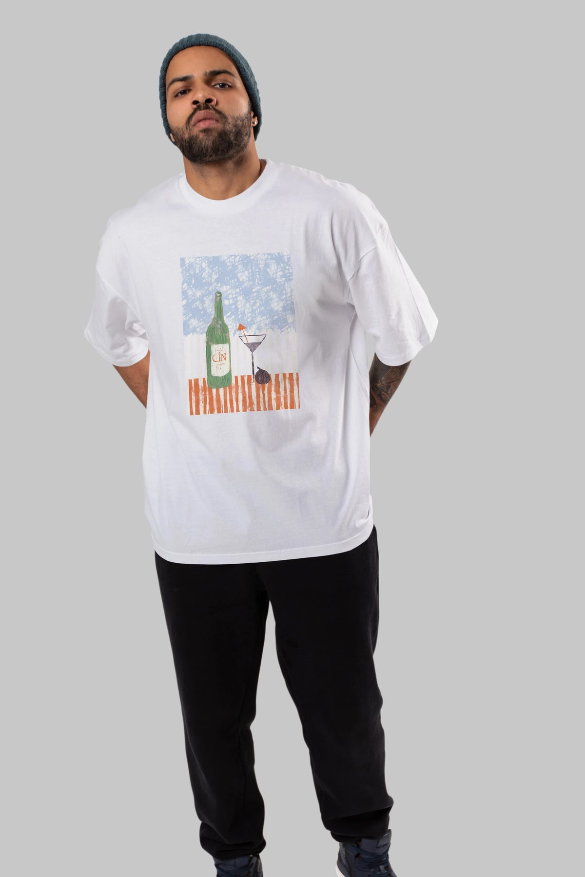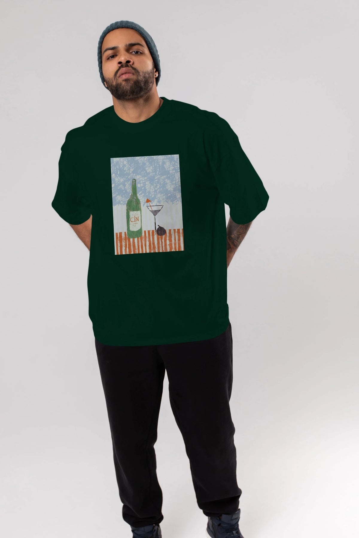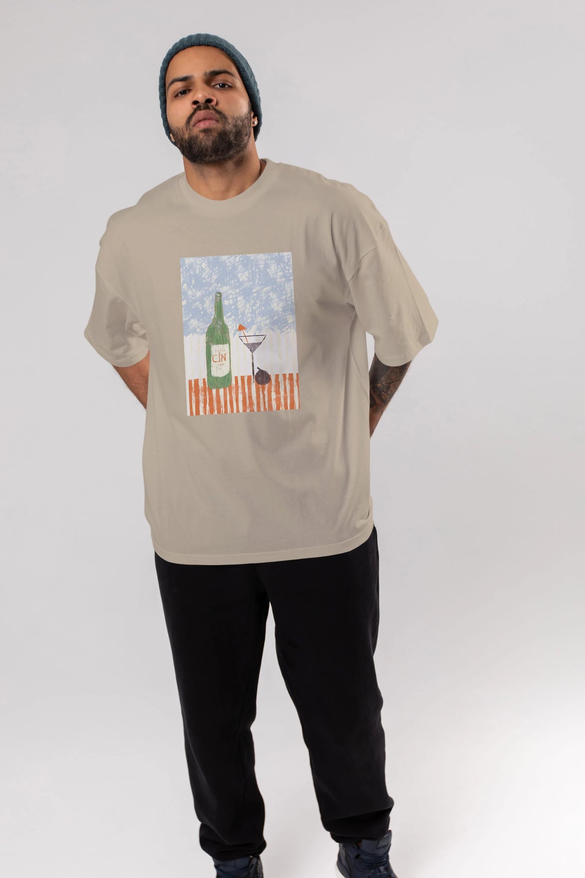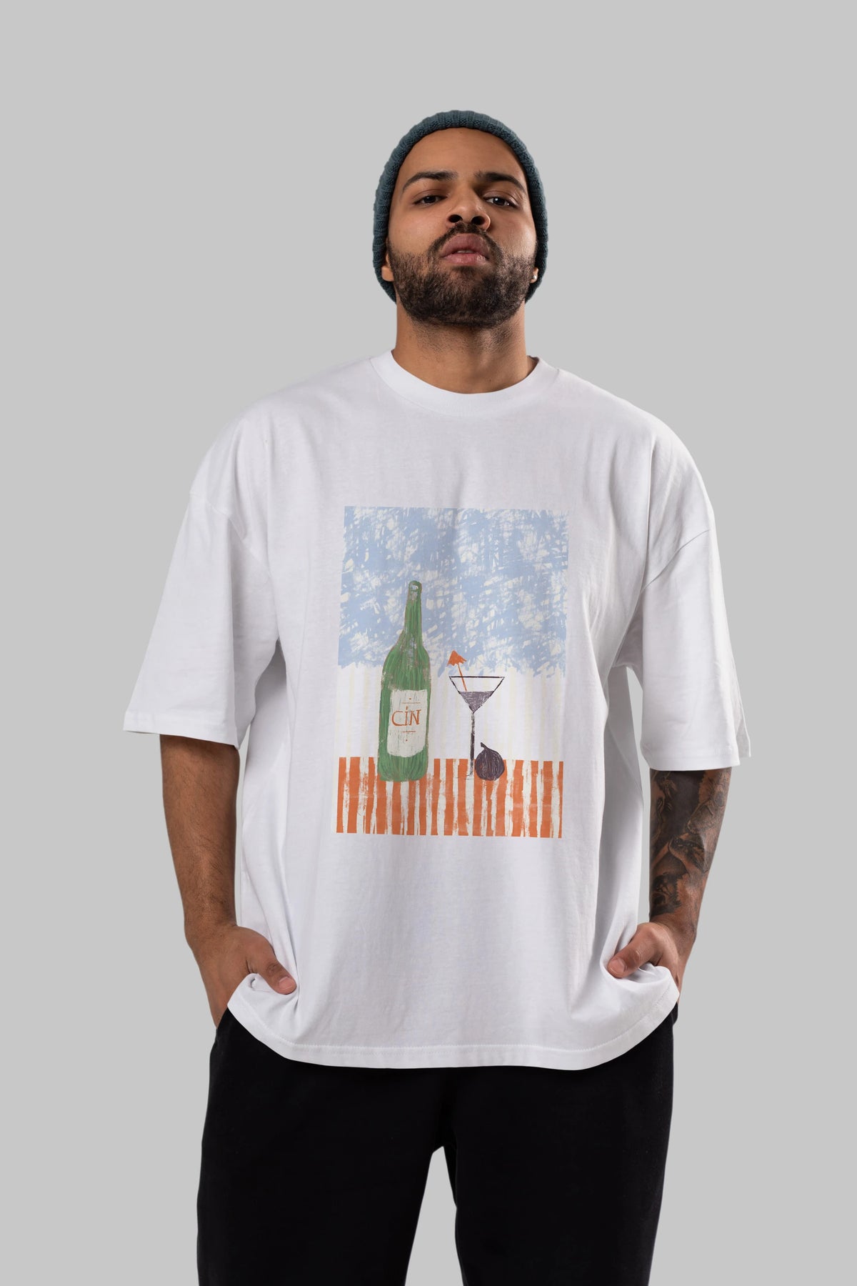 Gin Ön Baskılı Oversize t-shirt Erkek Kadın Unisex %100 Pamuk Bisiklet Yaka tişort