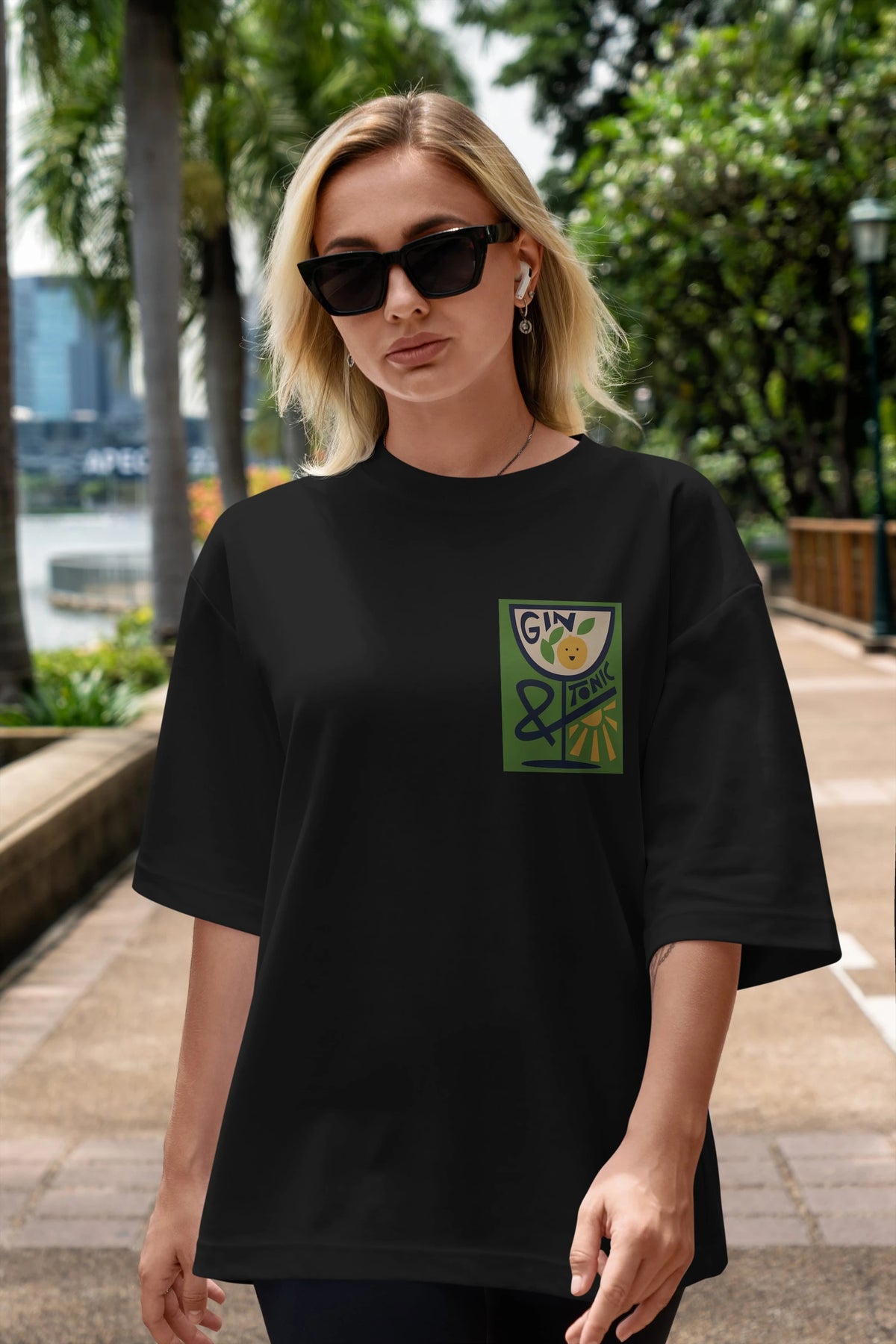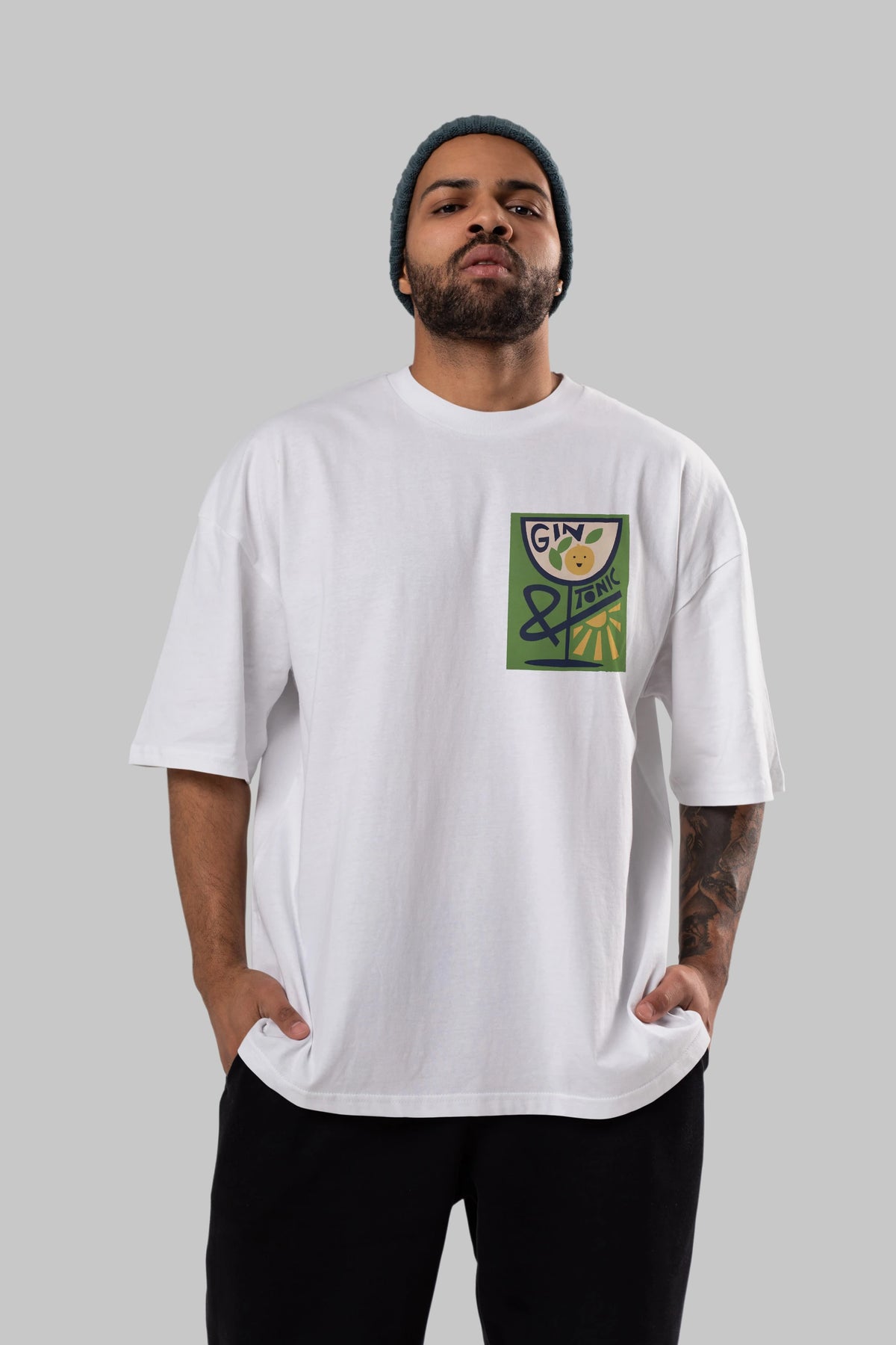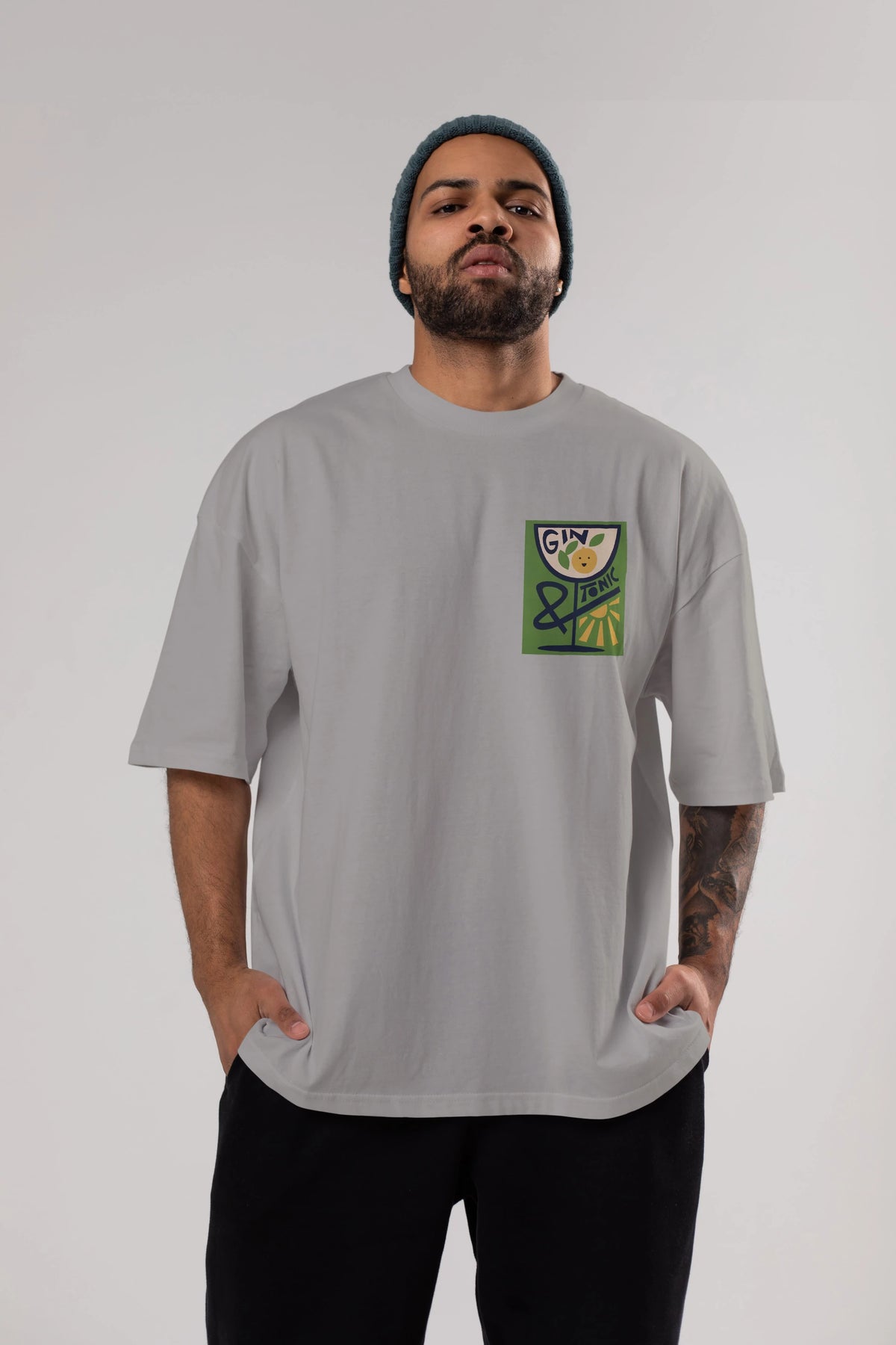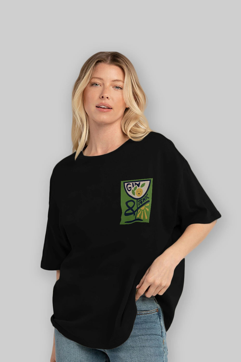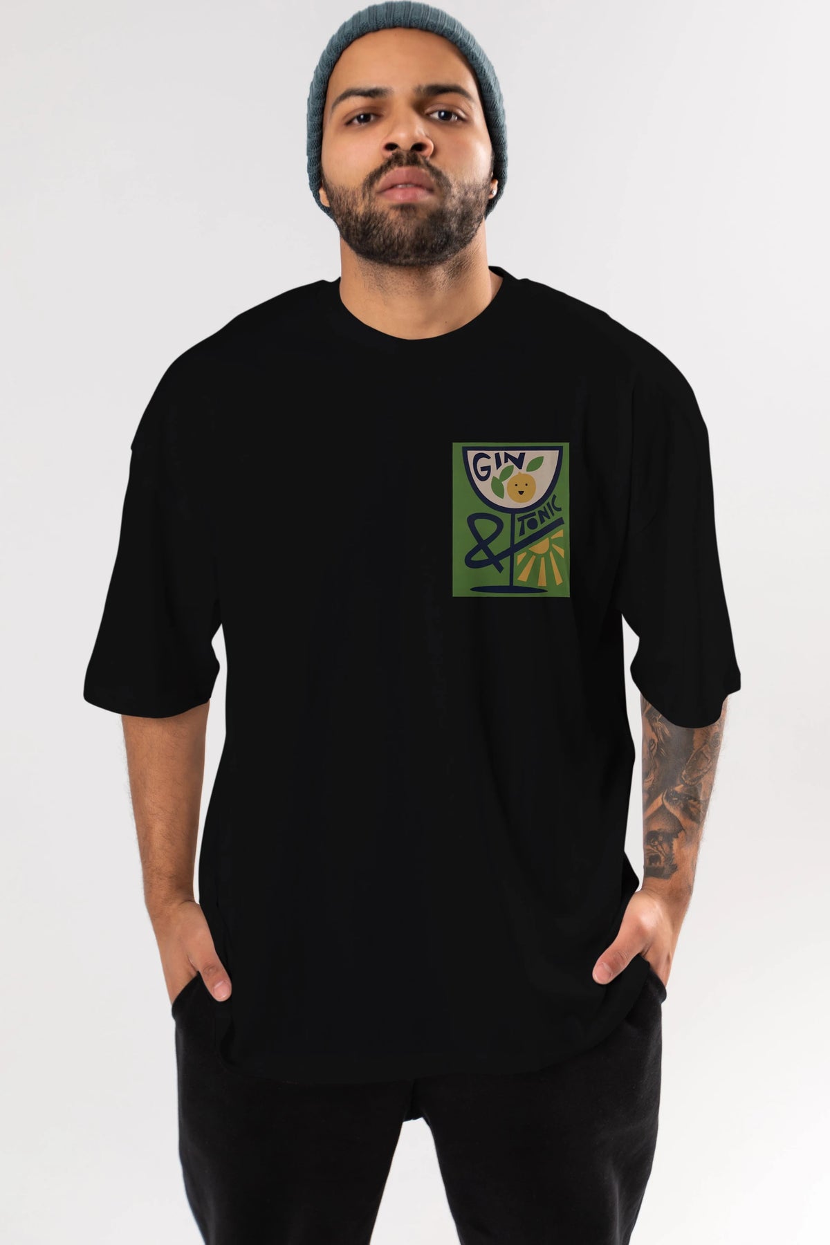 Gin Tonic 3 Ön Sol Baskılı Oversize t-shirt Erkek Kadın Unisex %100 Pamuk Bisiklet Yaka tişort