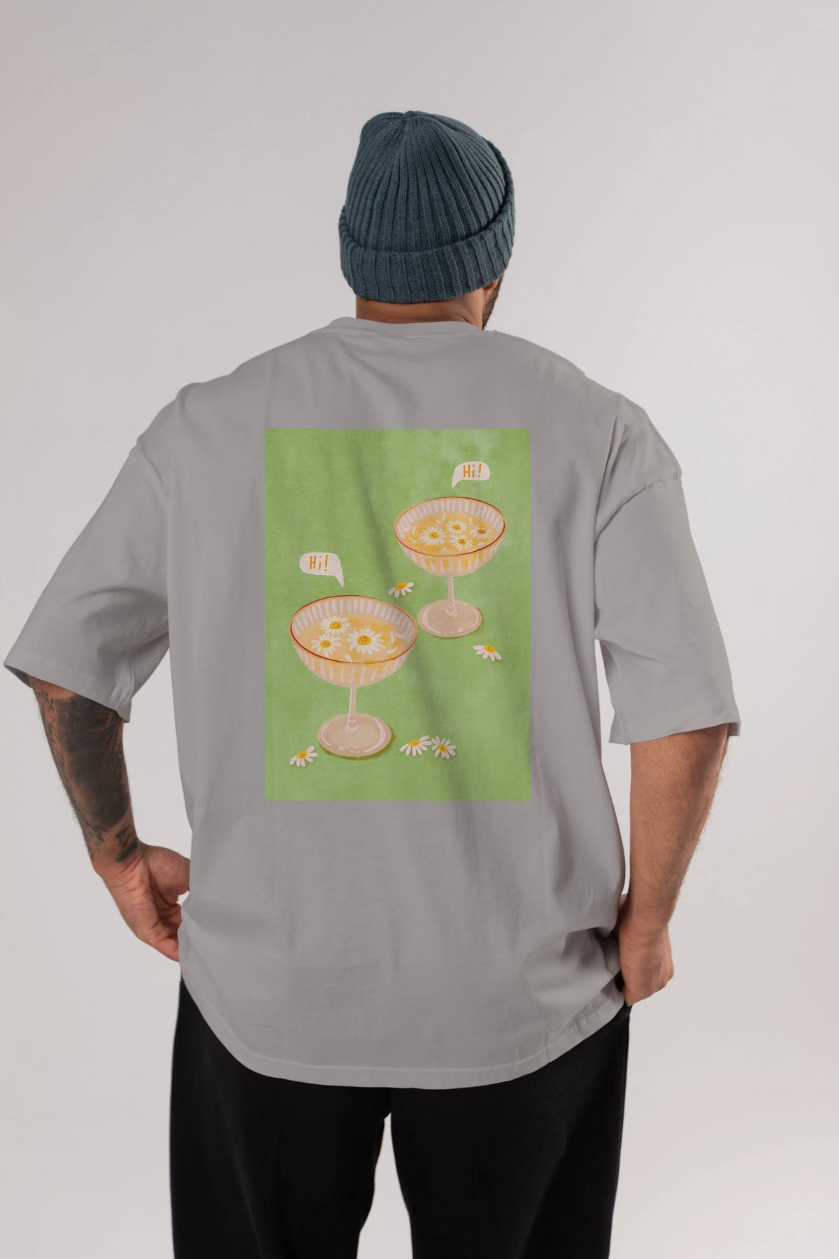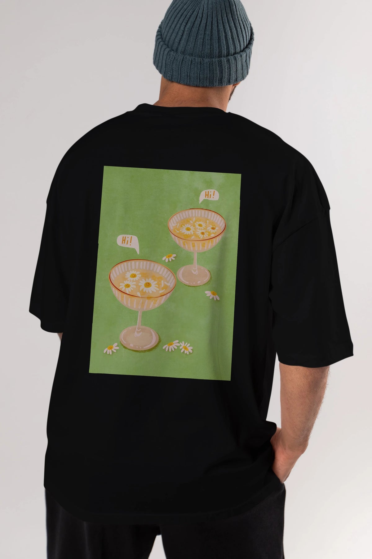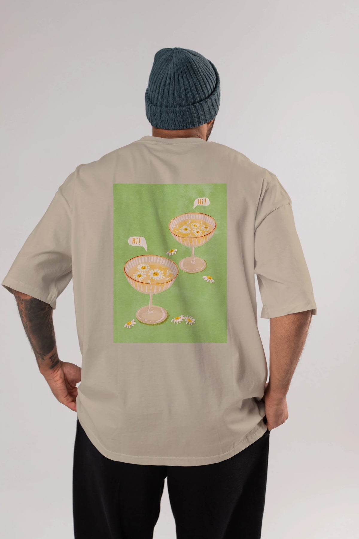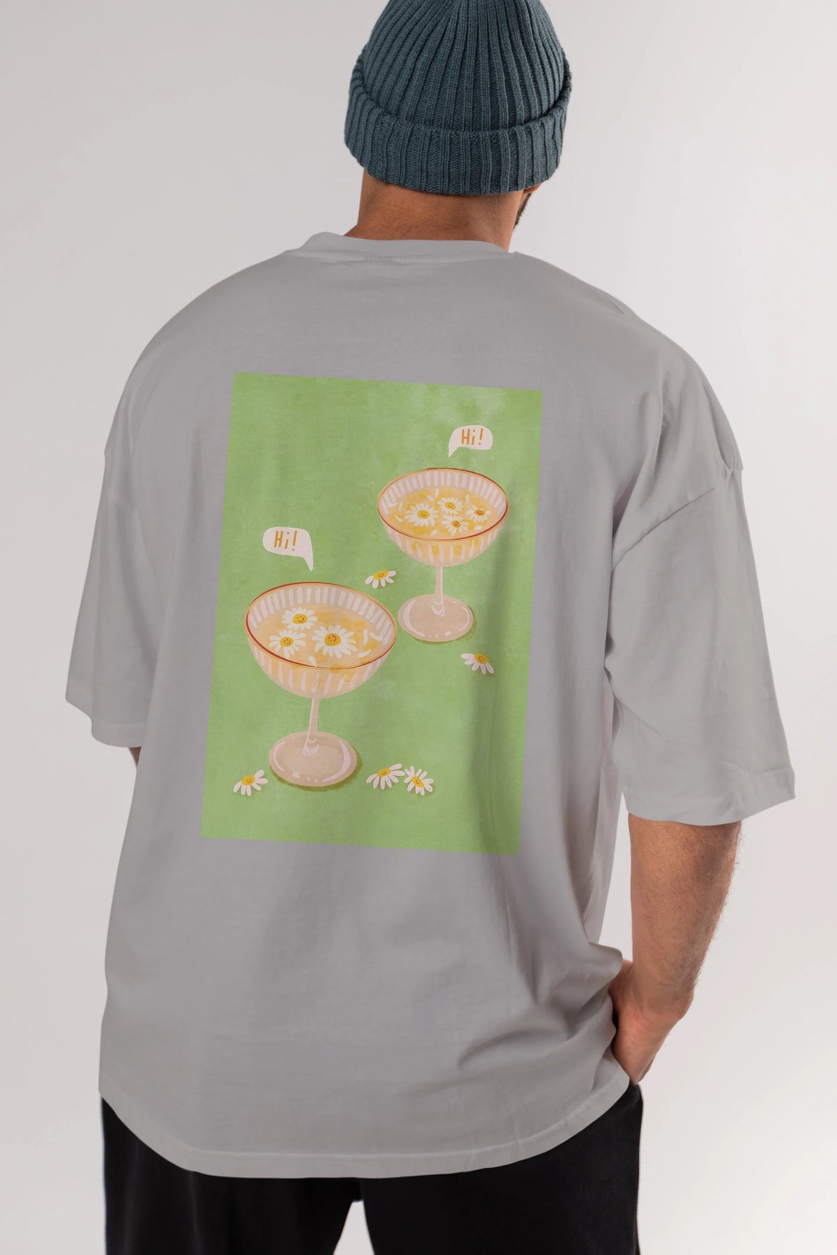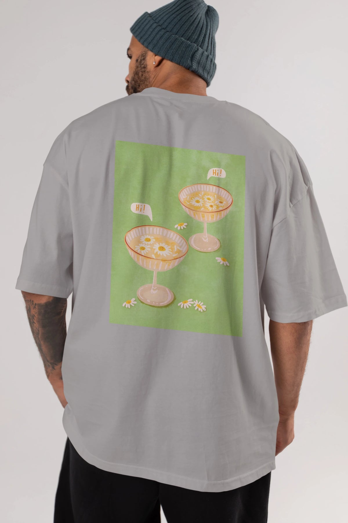 Hi Cheers Arka Baskılı Oversize t-shirt Erkek Kadın Unisex %100 Pamuk Bisiklet Yaka tişort