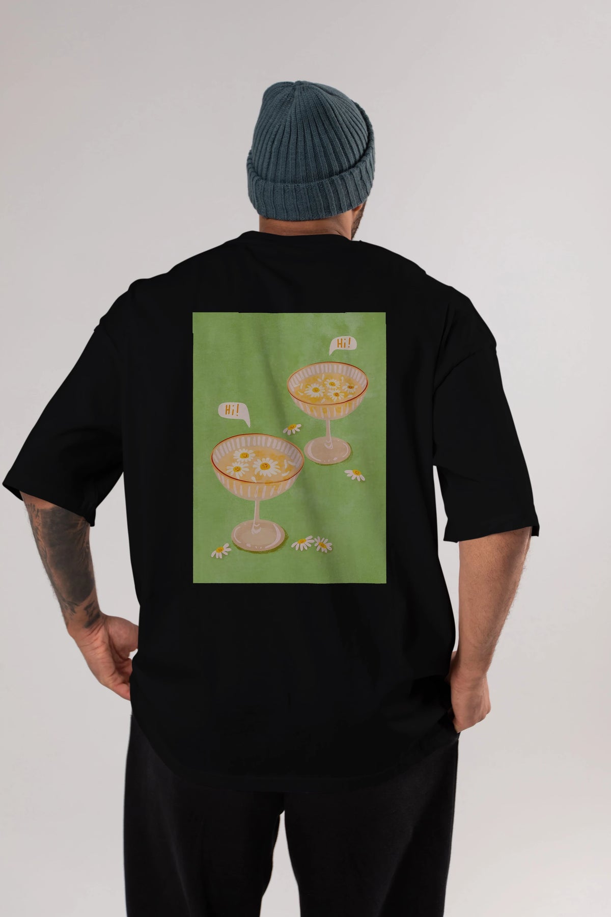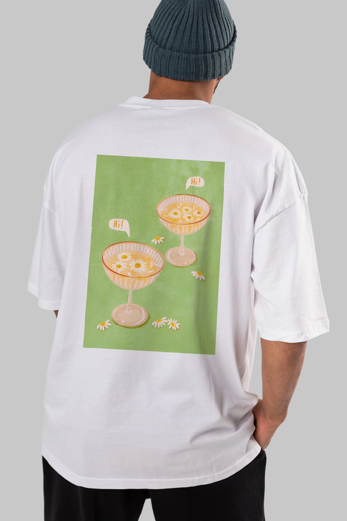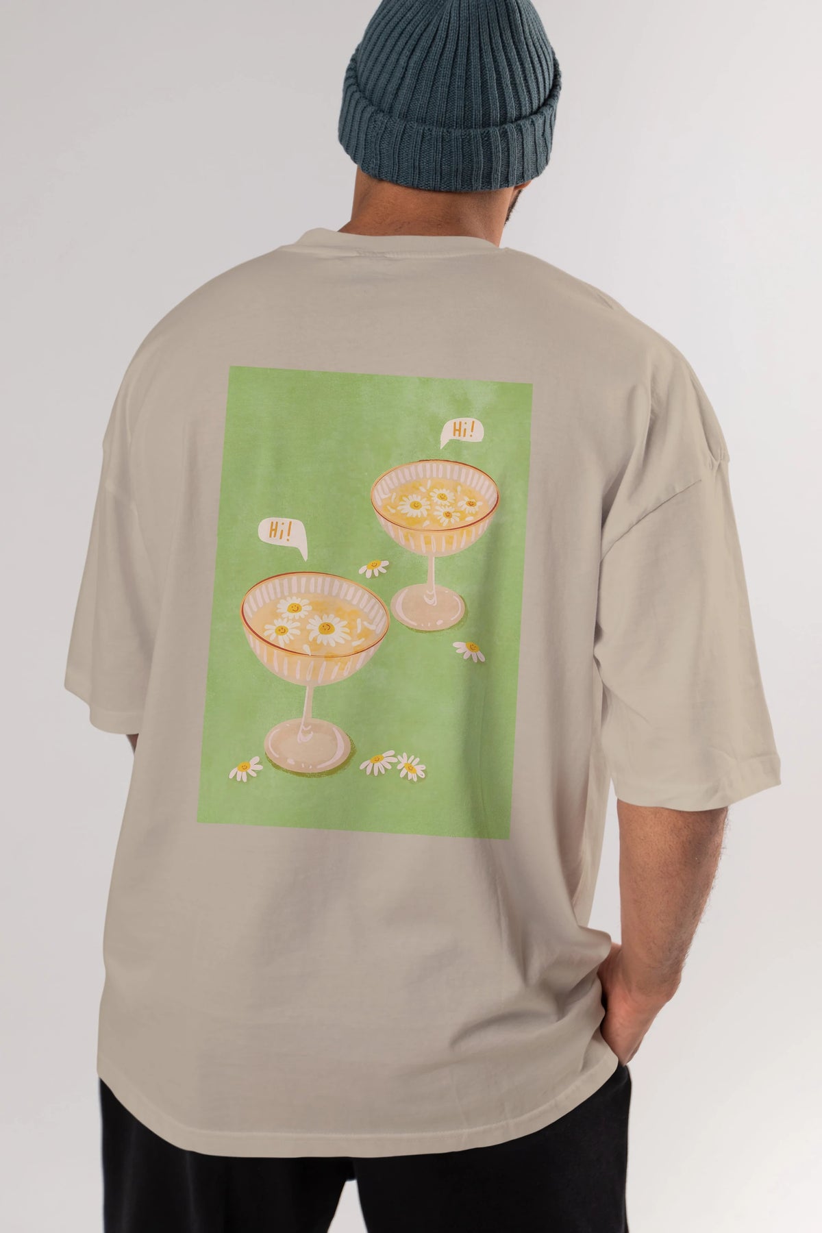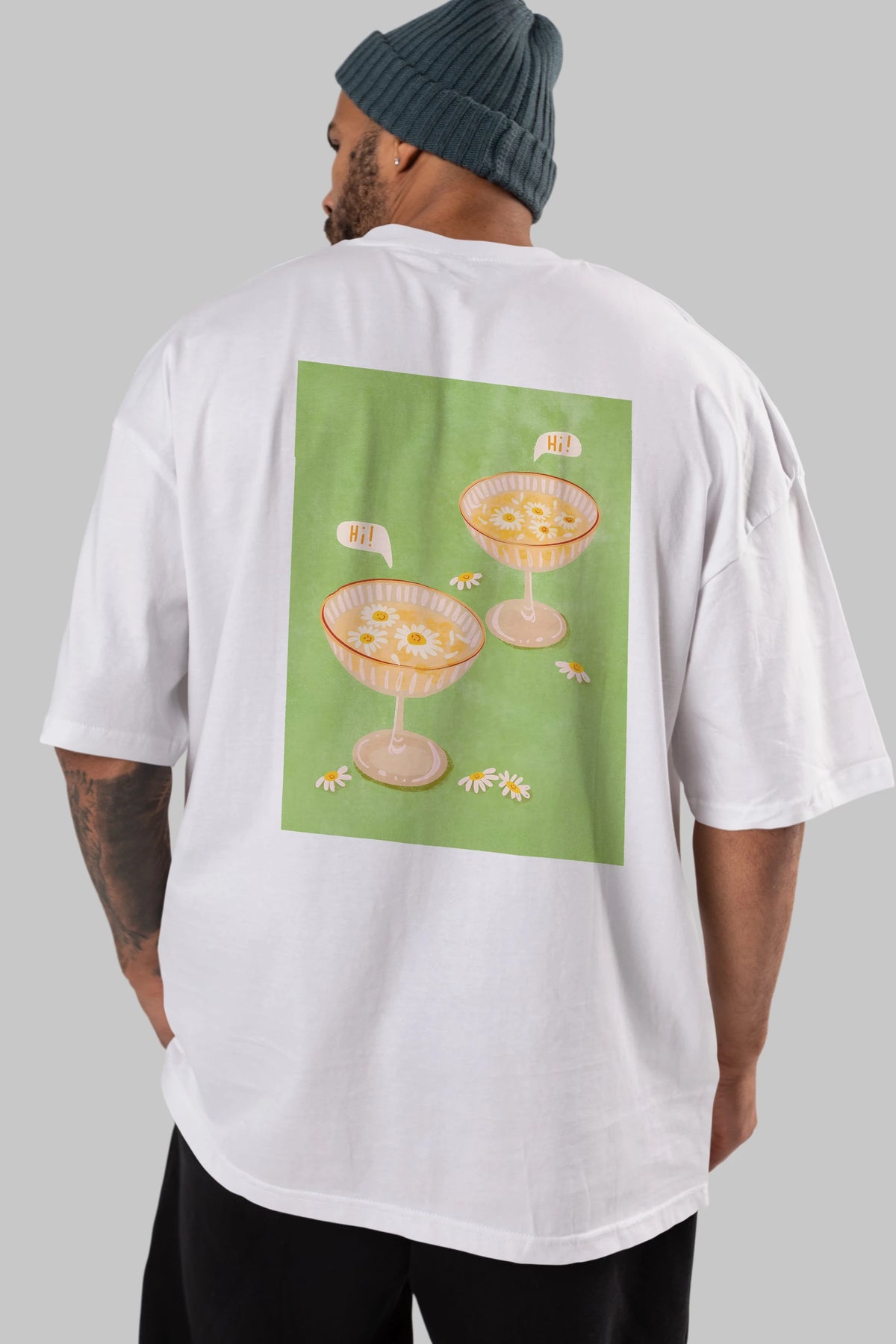 Hi Cheers Arka Baskılı Oversize t-shirt Erkek Kadın Unisex %100 Pamuk Bisiklet Yaka tişort