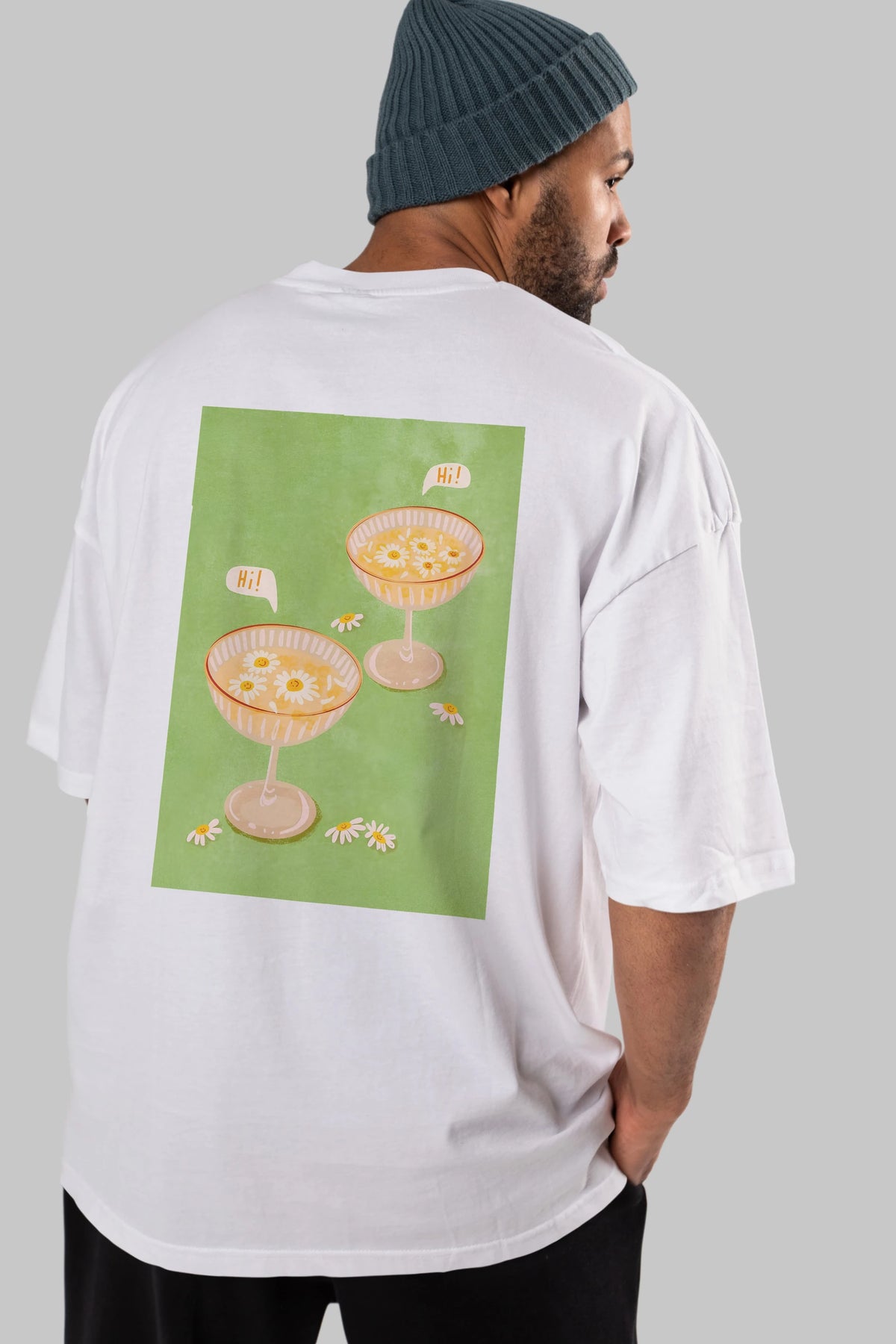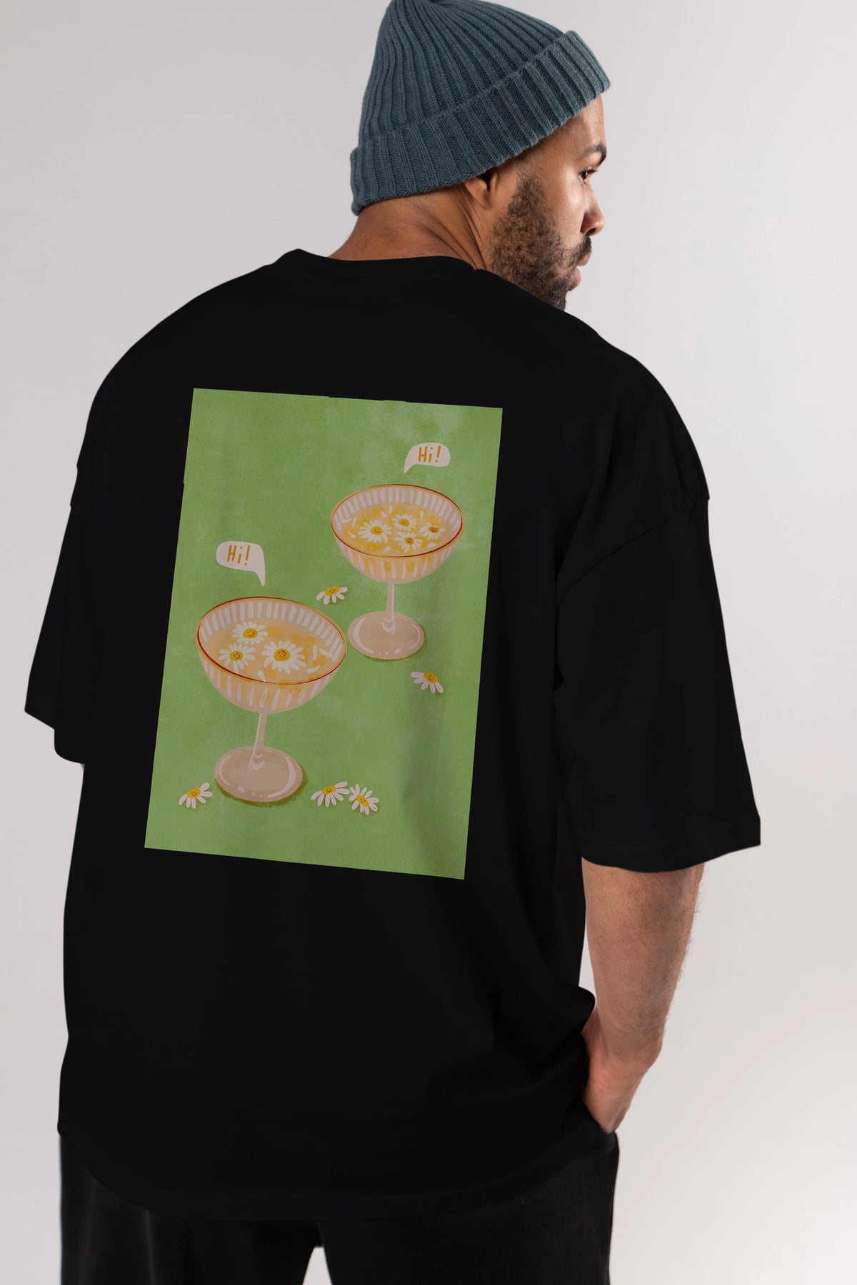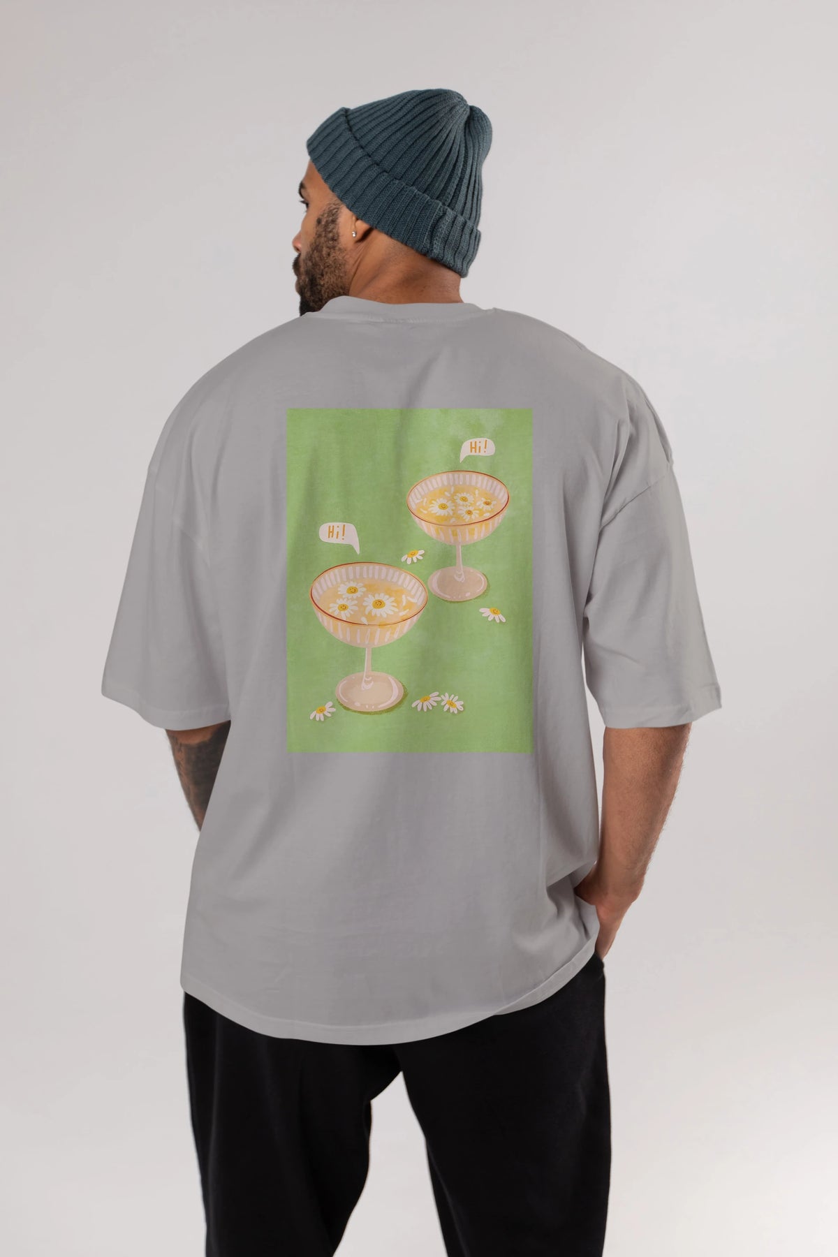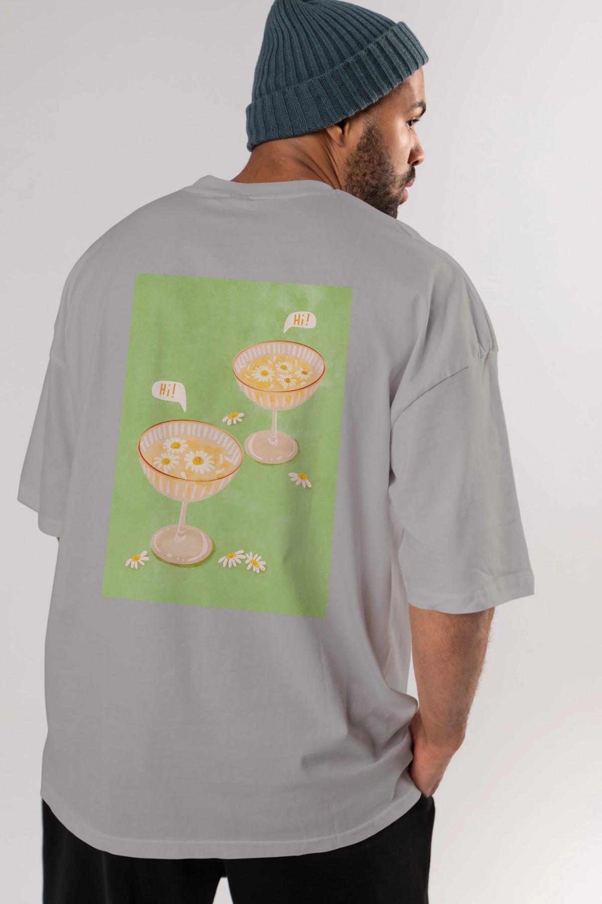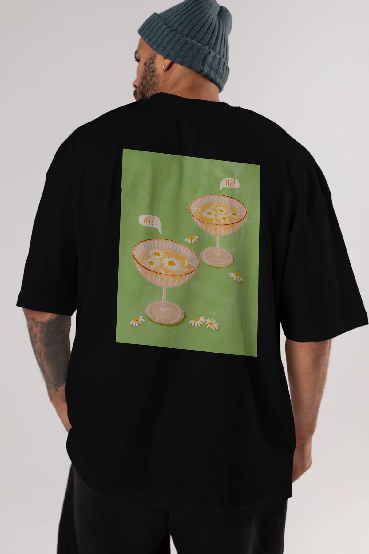 Hi Cheers Arka Baskılı Oversize t-shirt Erkek Kadın Unisex %100 Pamuk Bisiklet Yaka tişort