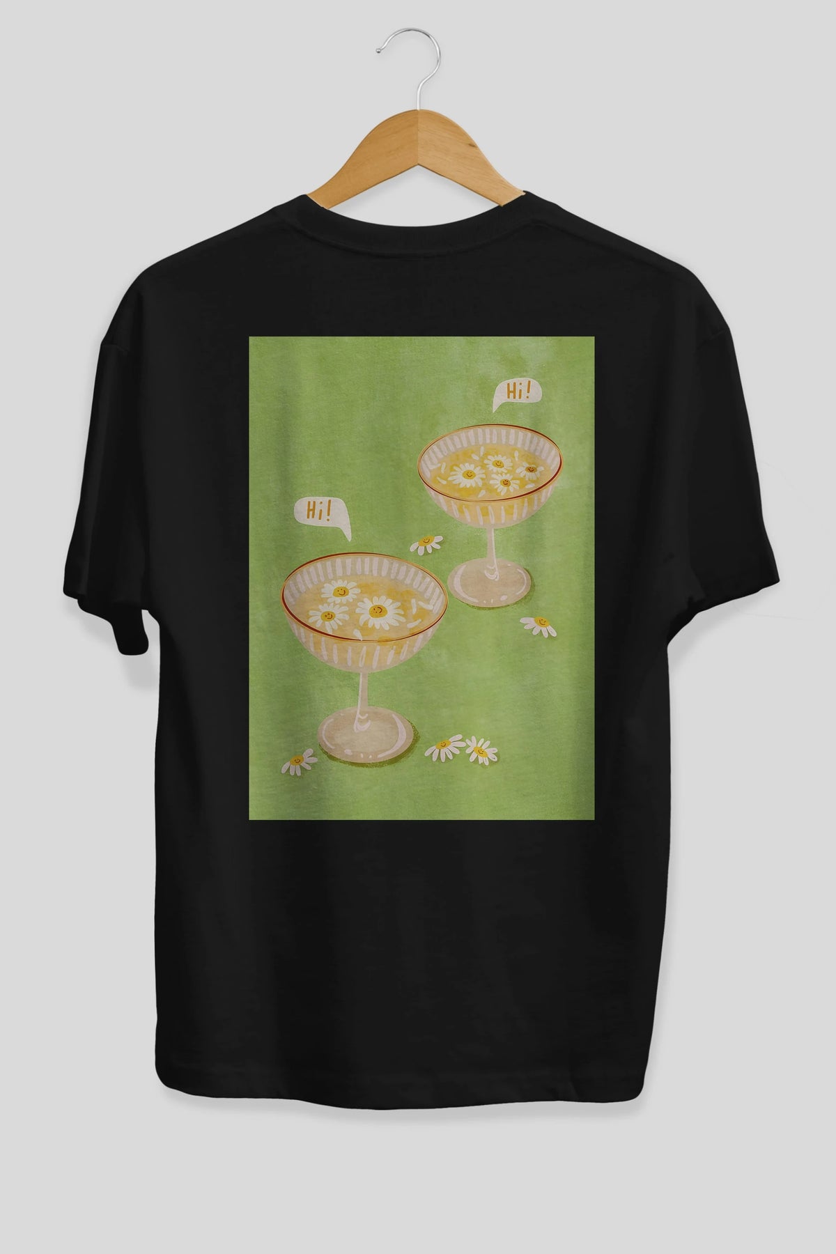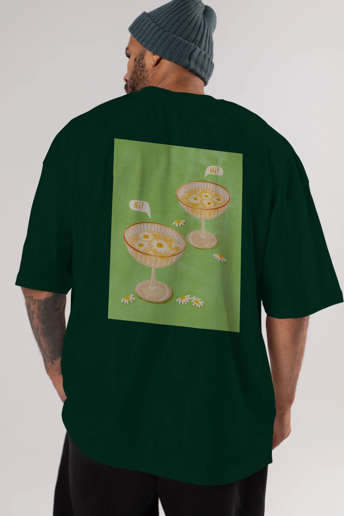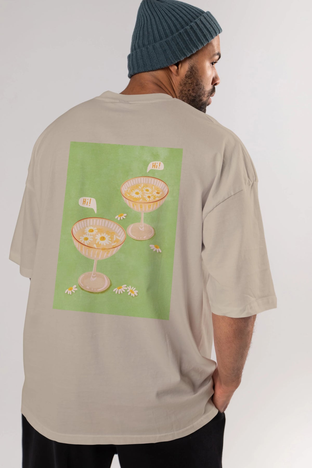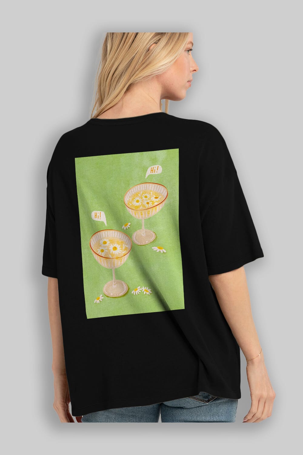 Hi Cheers Arka Baskılı Oversize t-shirt Erkek Kadın Unisex %100 Pamuk Bisiklet Yaka tişort
