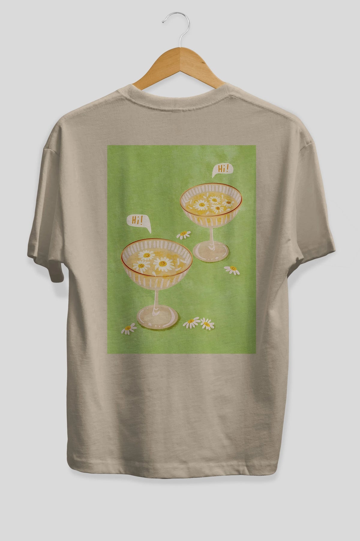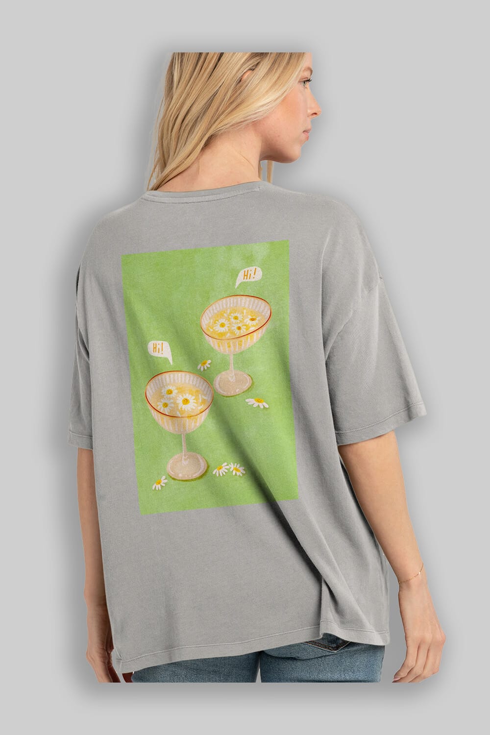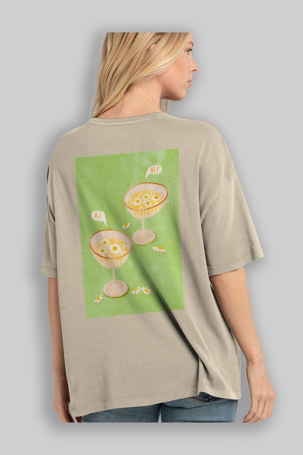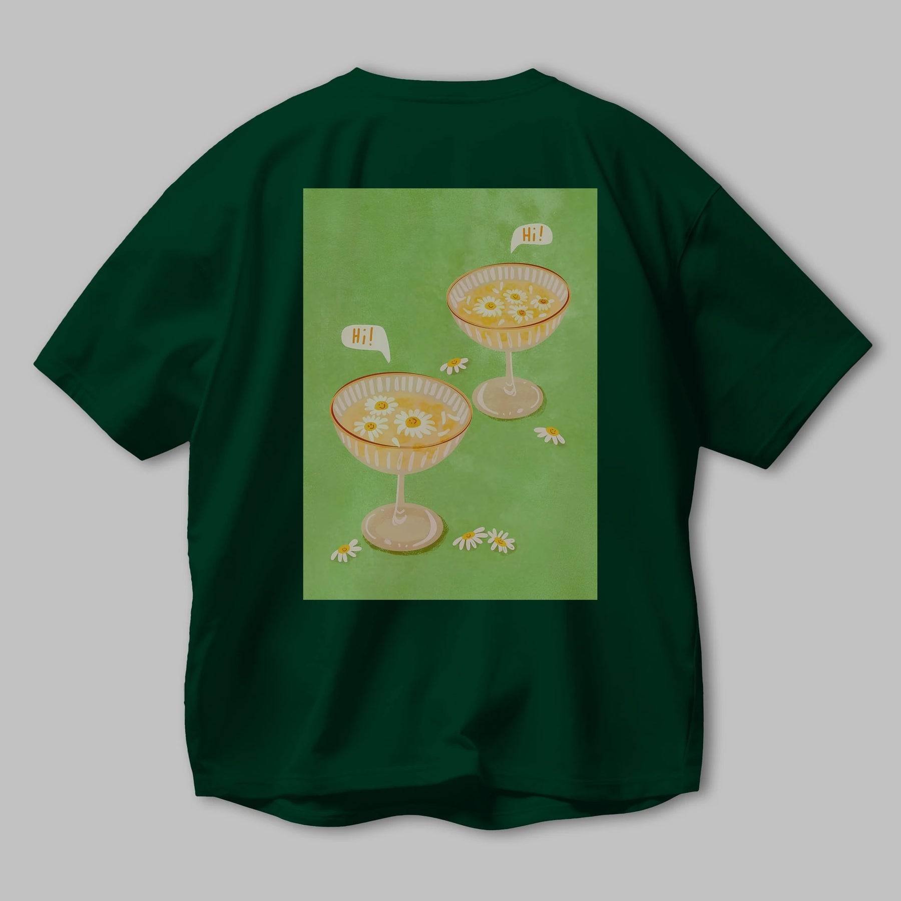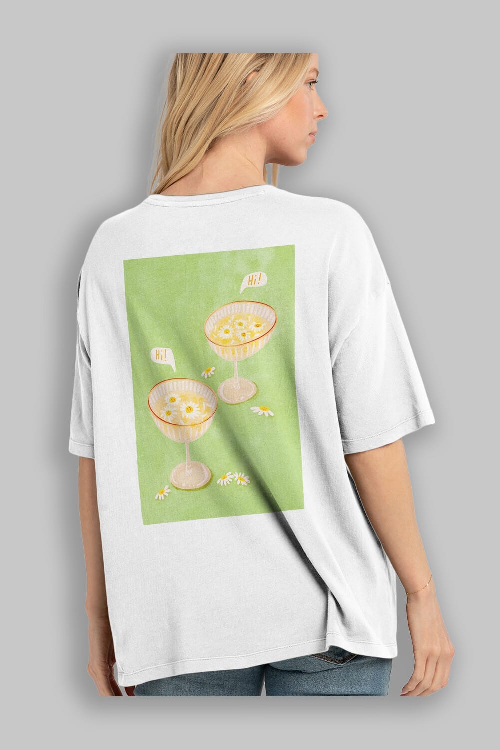 Hi Cheers Arka Baskılı Oversize t-shirt Erkek Kadın Unisex %100 Pamuk Bisiklet Yaka tişort