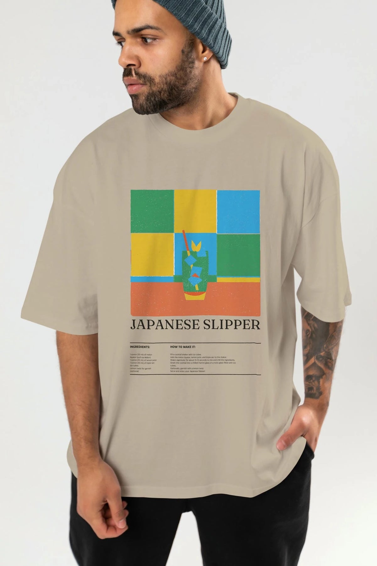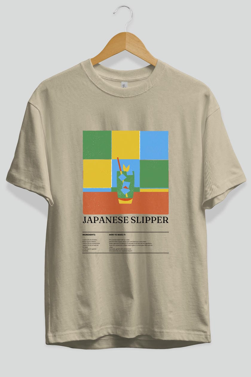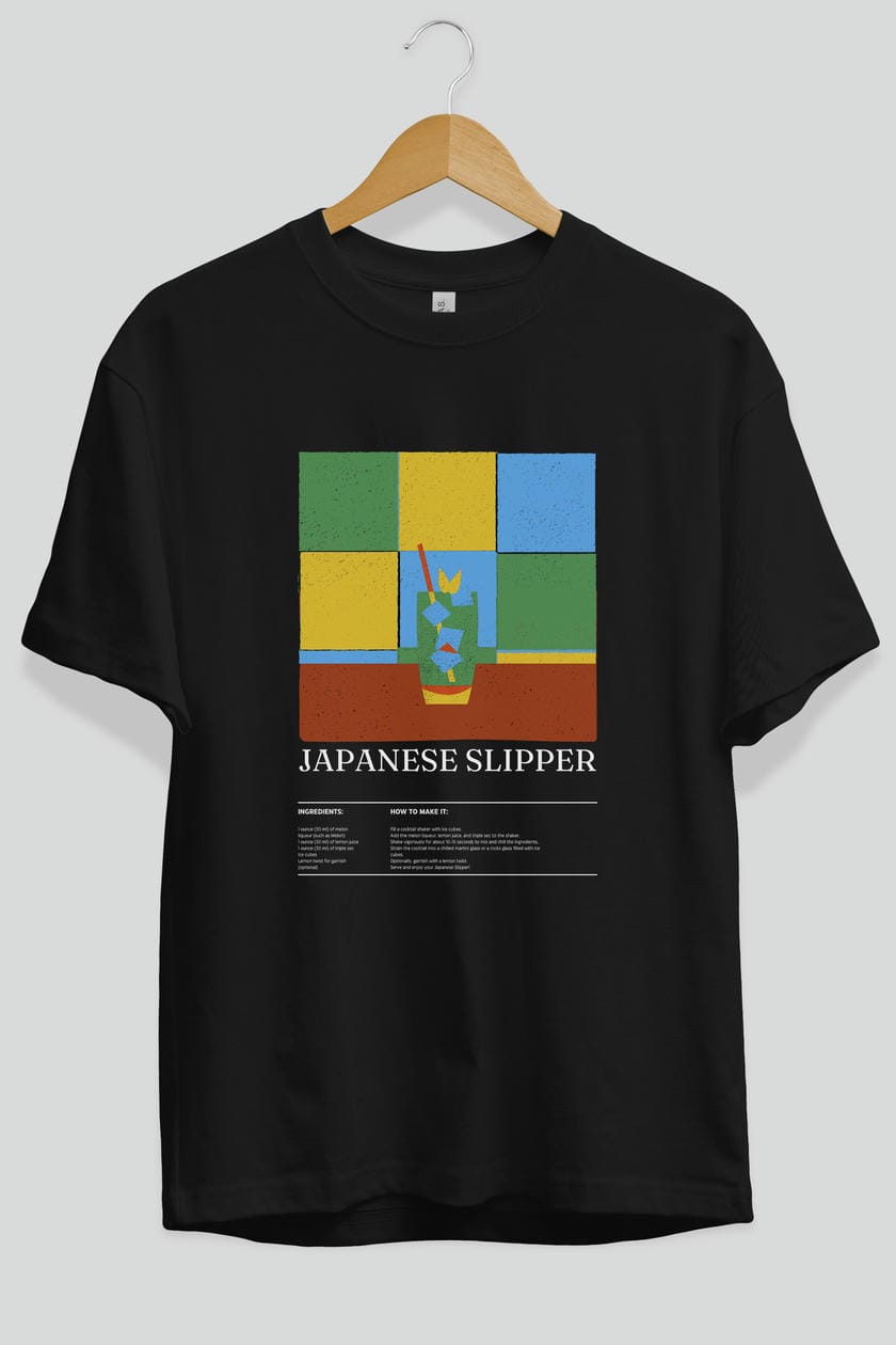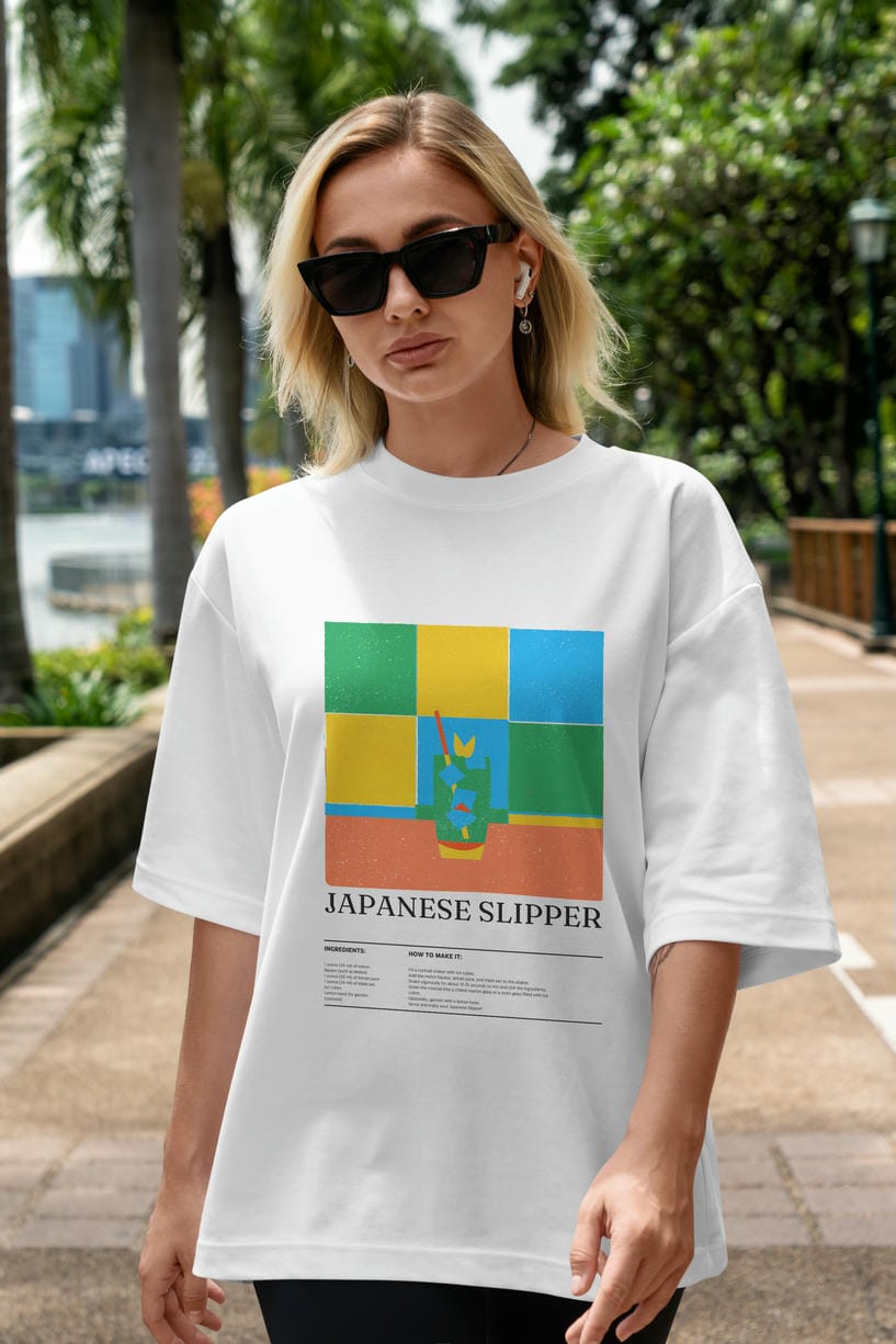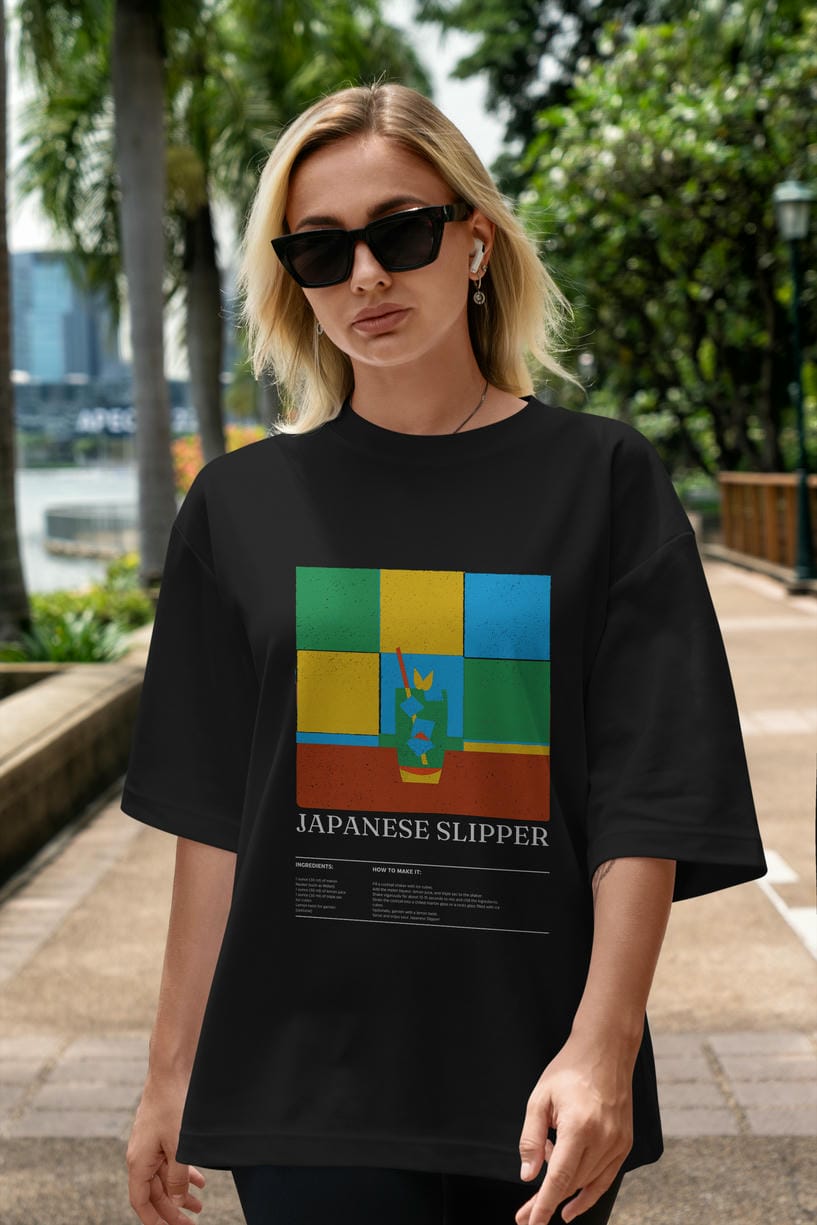Japanese Slipper Kokteyl Ön Baskılı Oversize t-shirt Erkek Kadın %100 Pamuk Bisiklet Yaka tişort