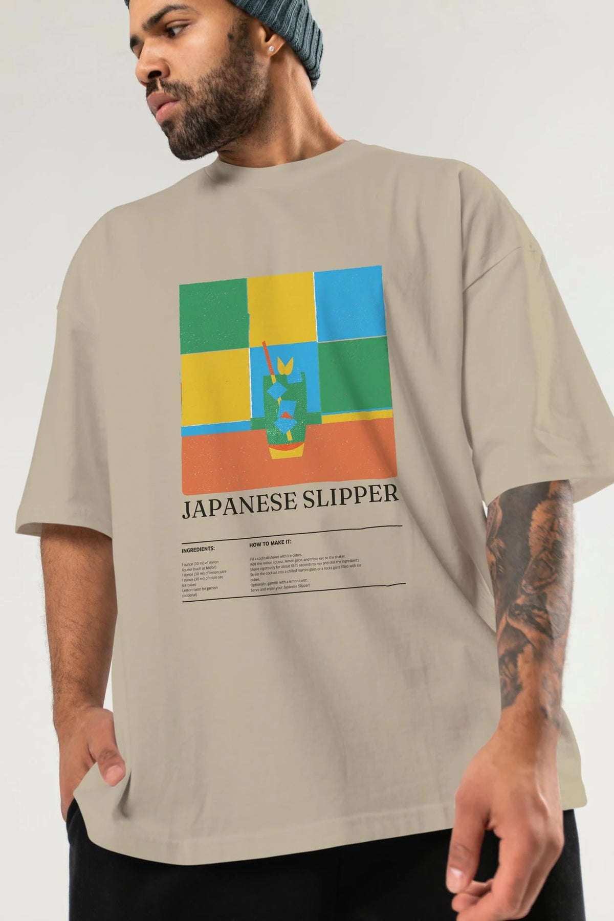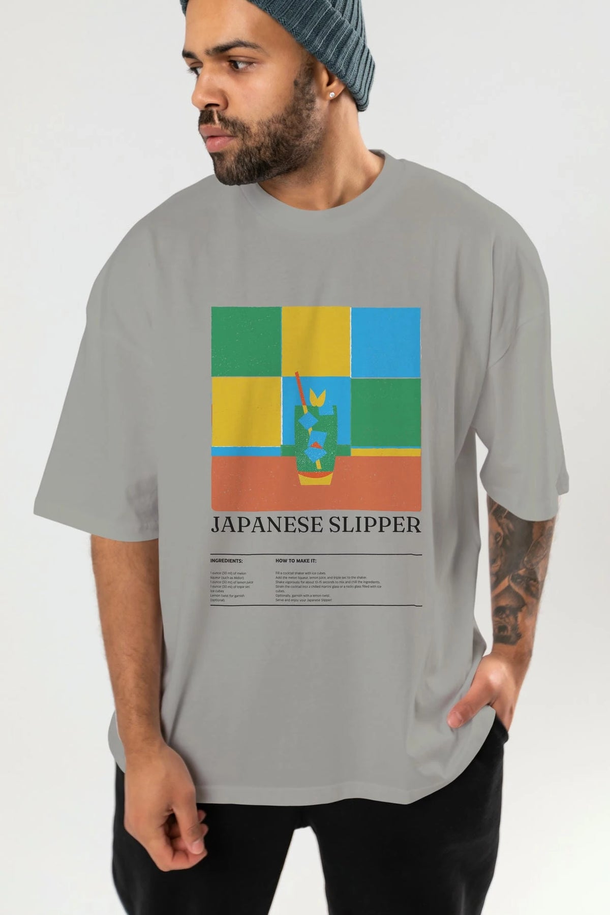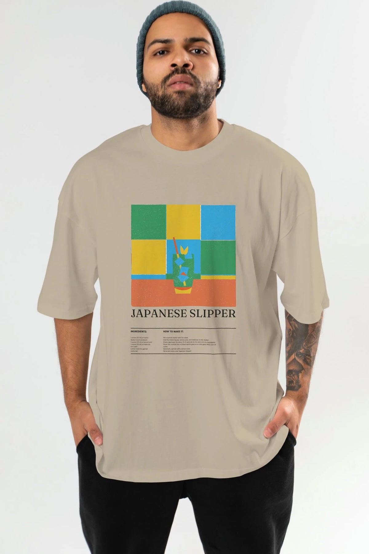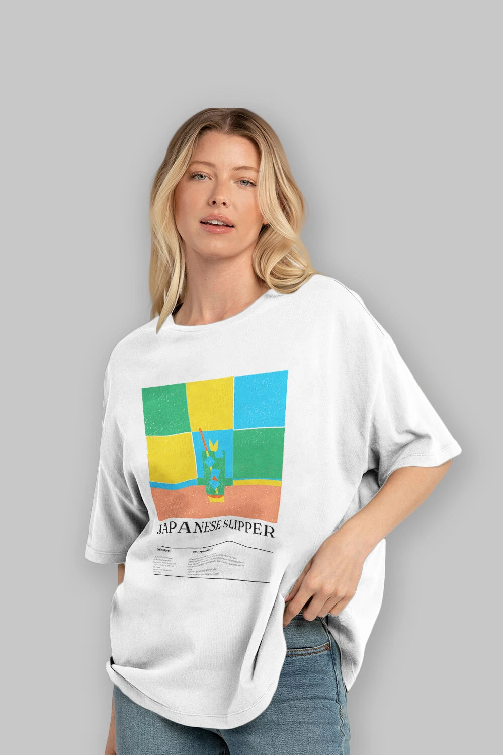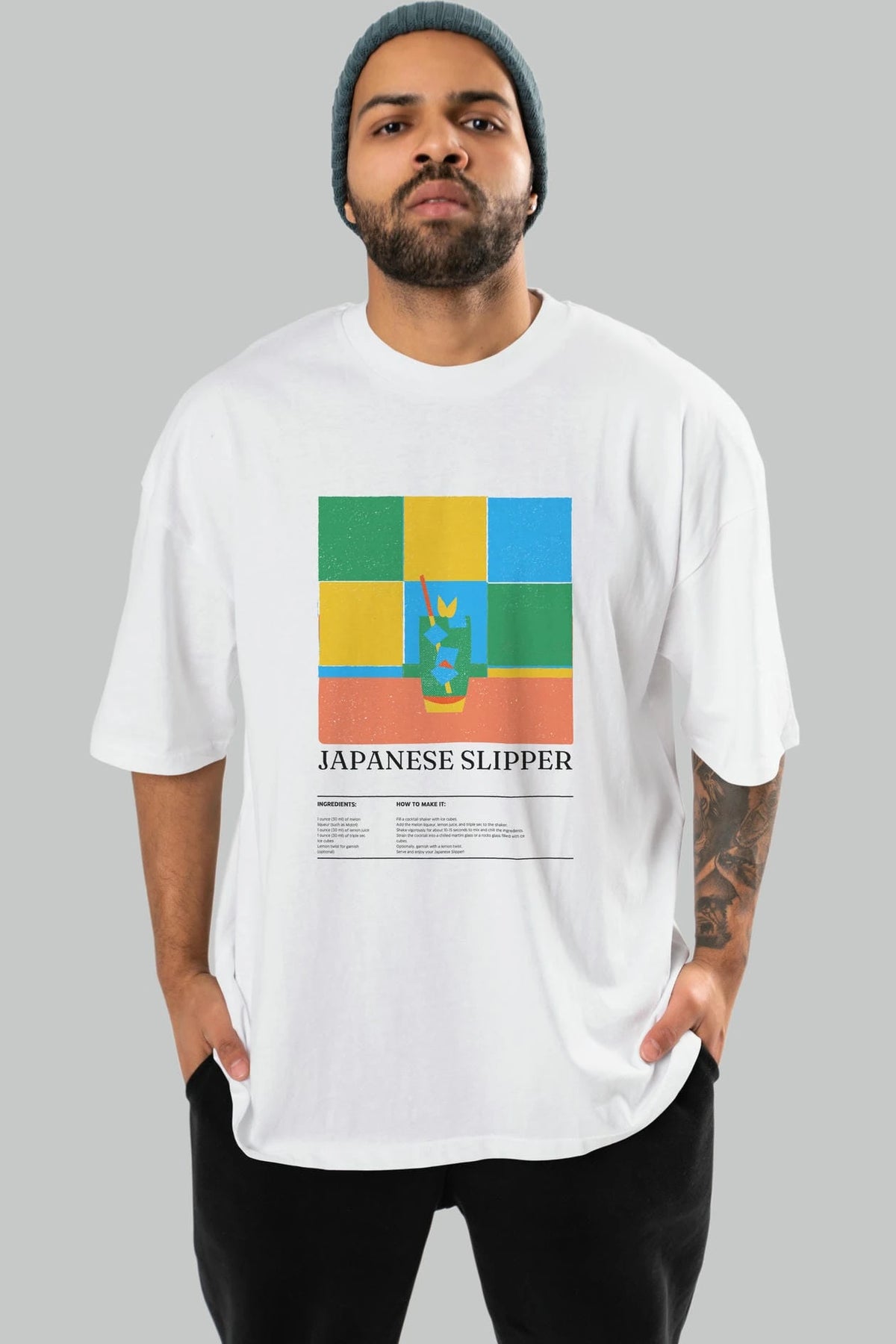 Japanese Slipper Kokteyl Ön Baskılı Oversize t-shirt Erkek Kadın %100 Pamuk Bisiklet Yaka tişort