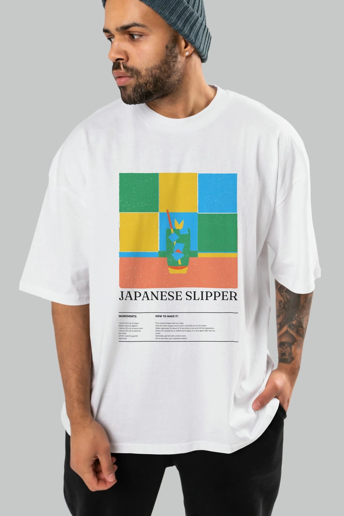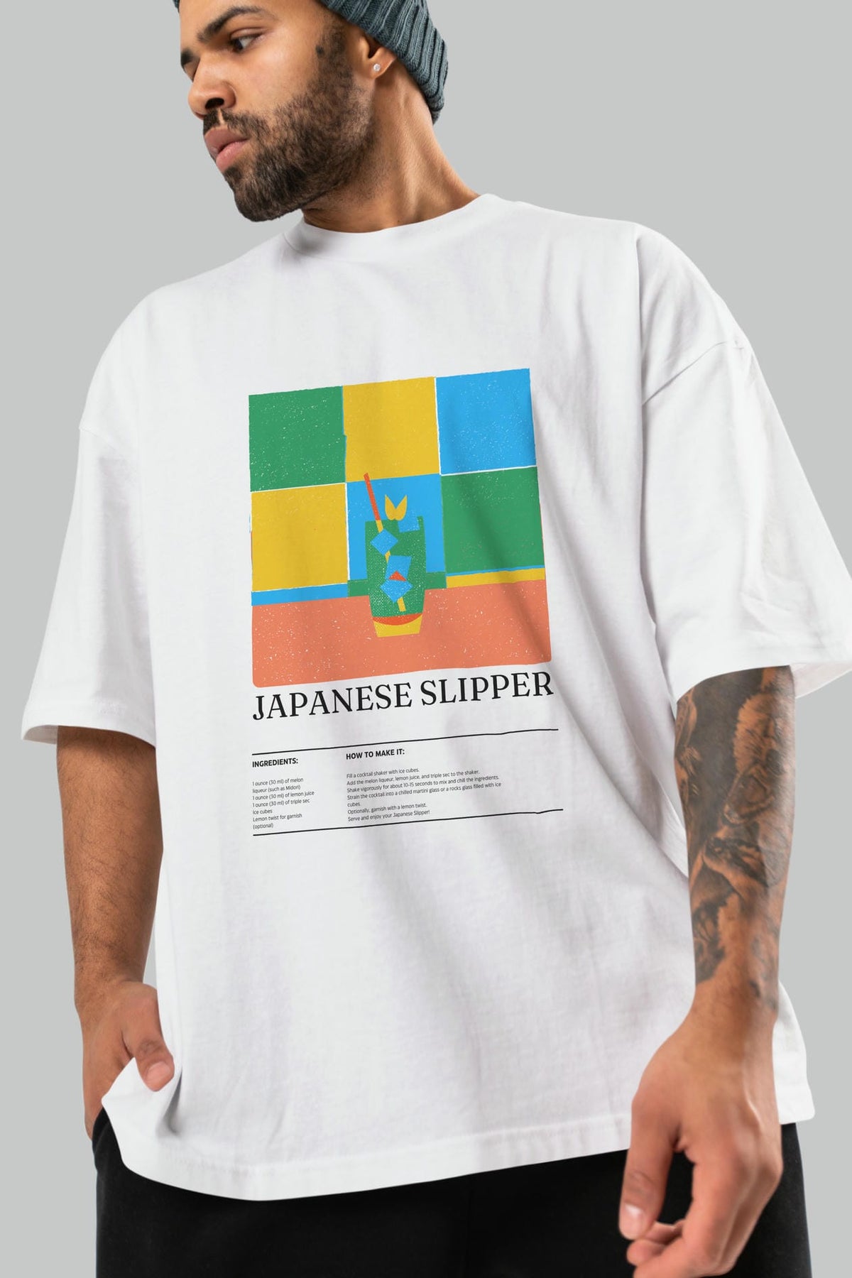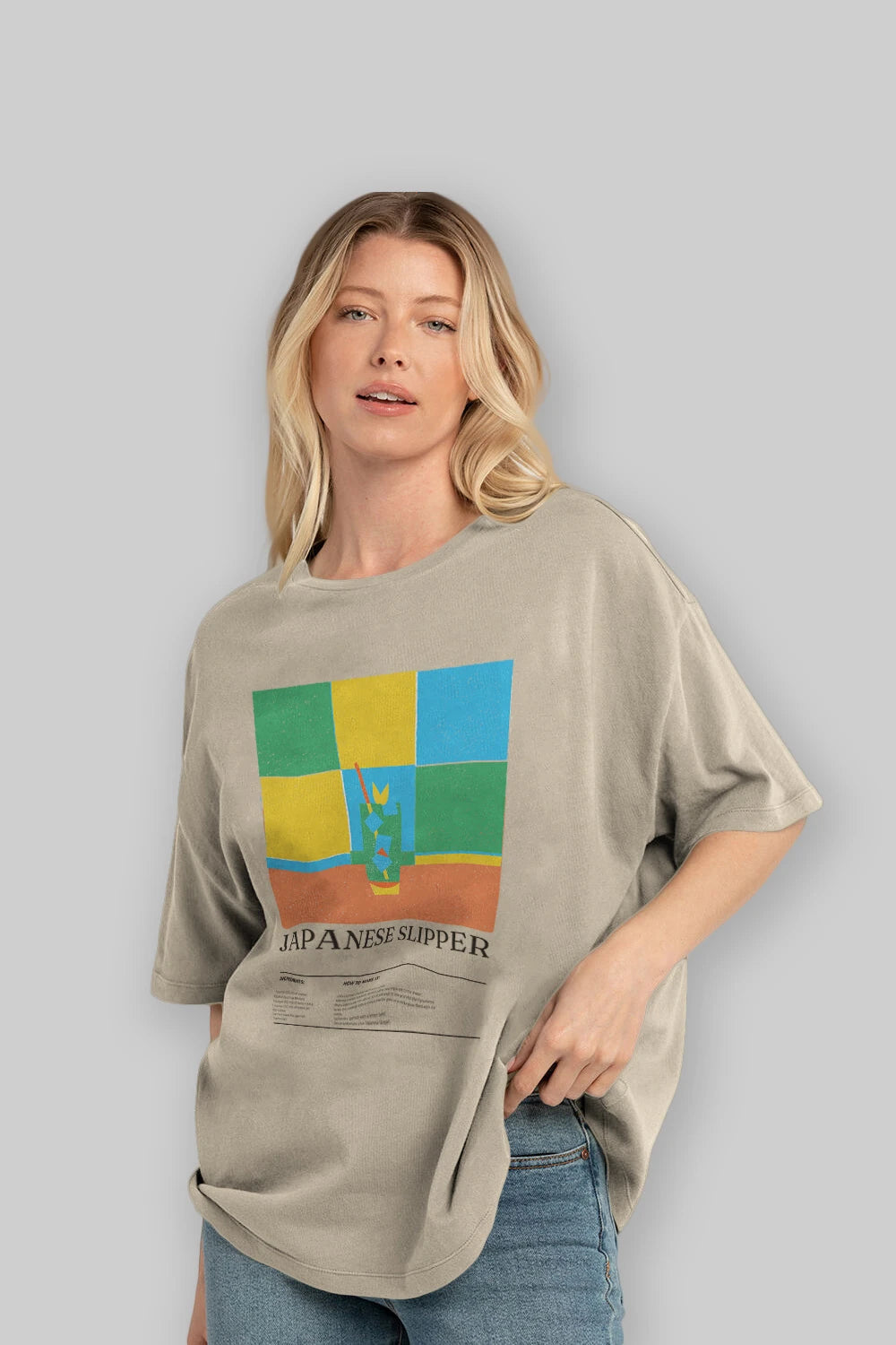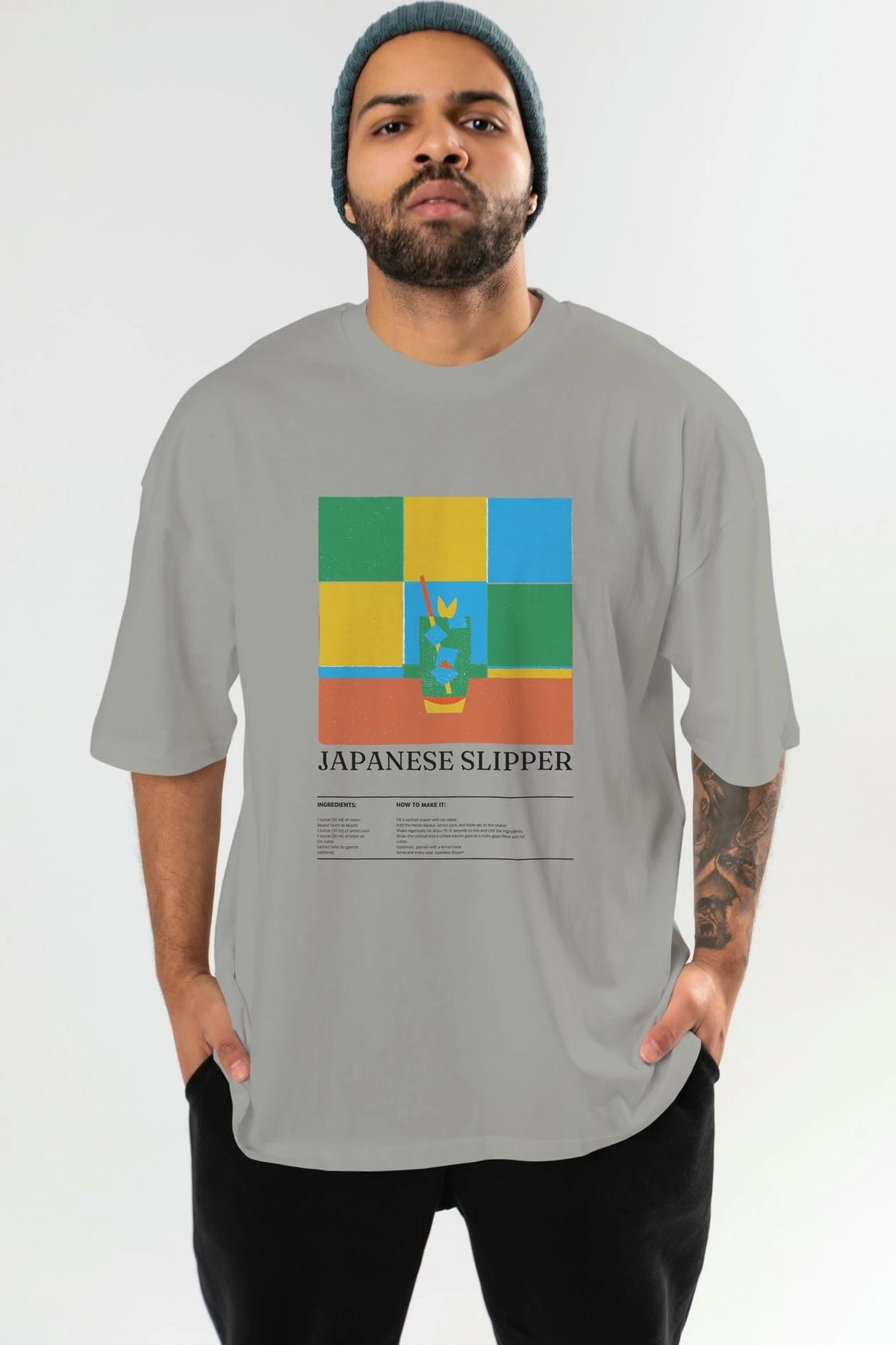 Japanese Slipper Kokteyl Ön Baskılı Oversize t-shirt Erkek Kadın %100 Pamuk Bisiklet Yaka tişort