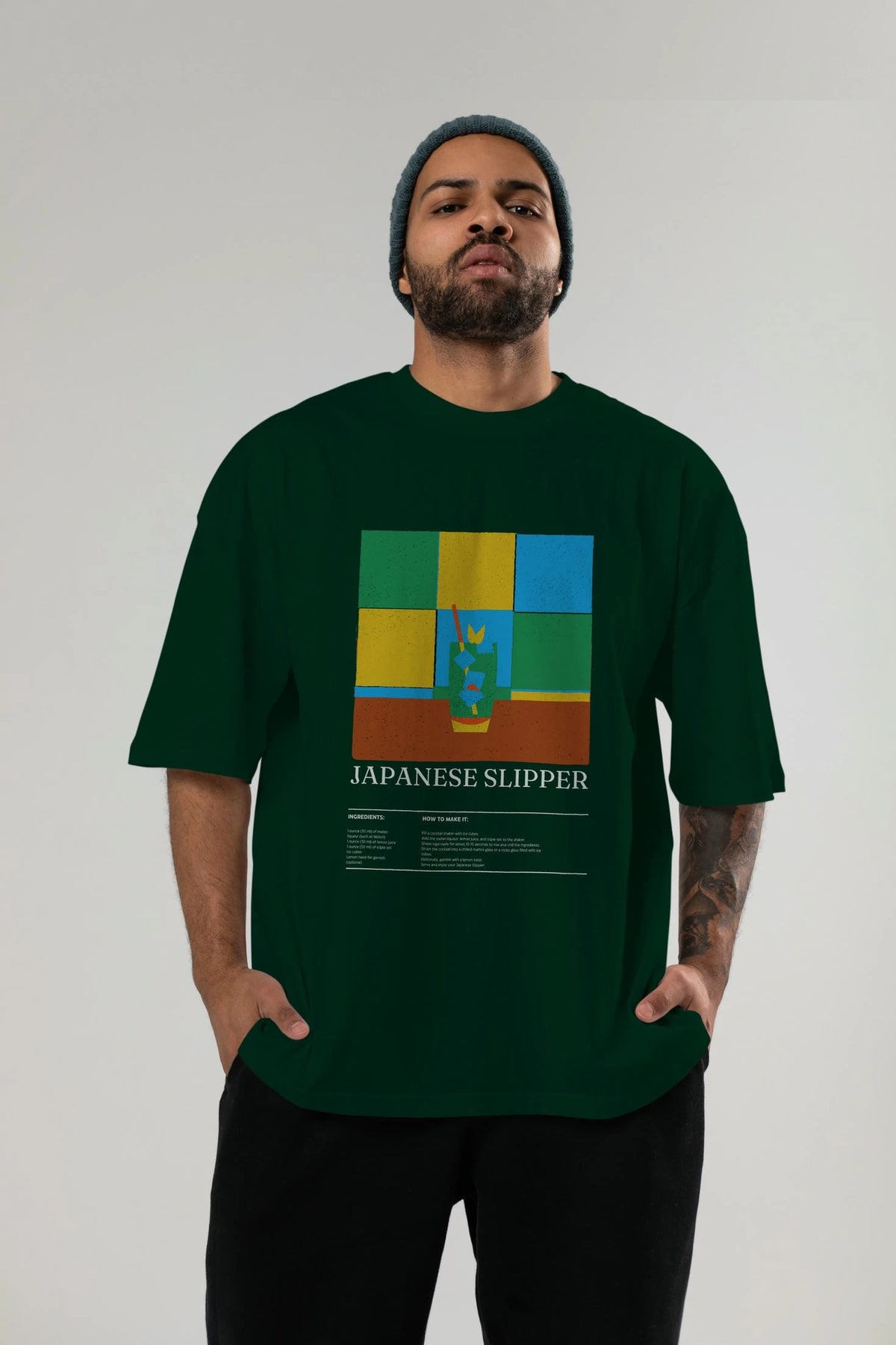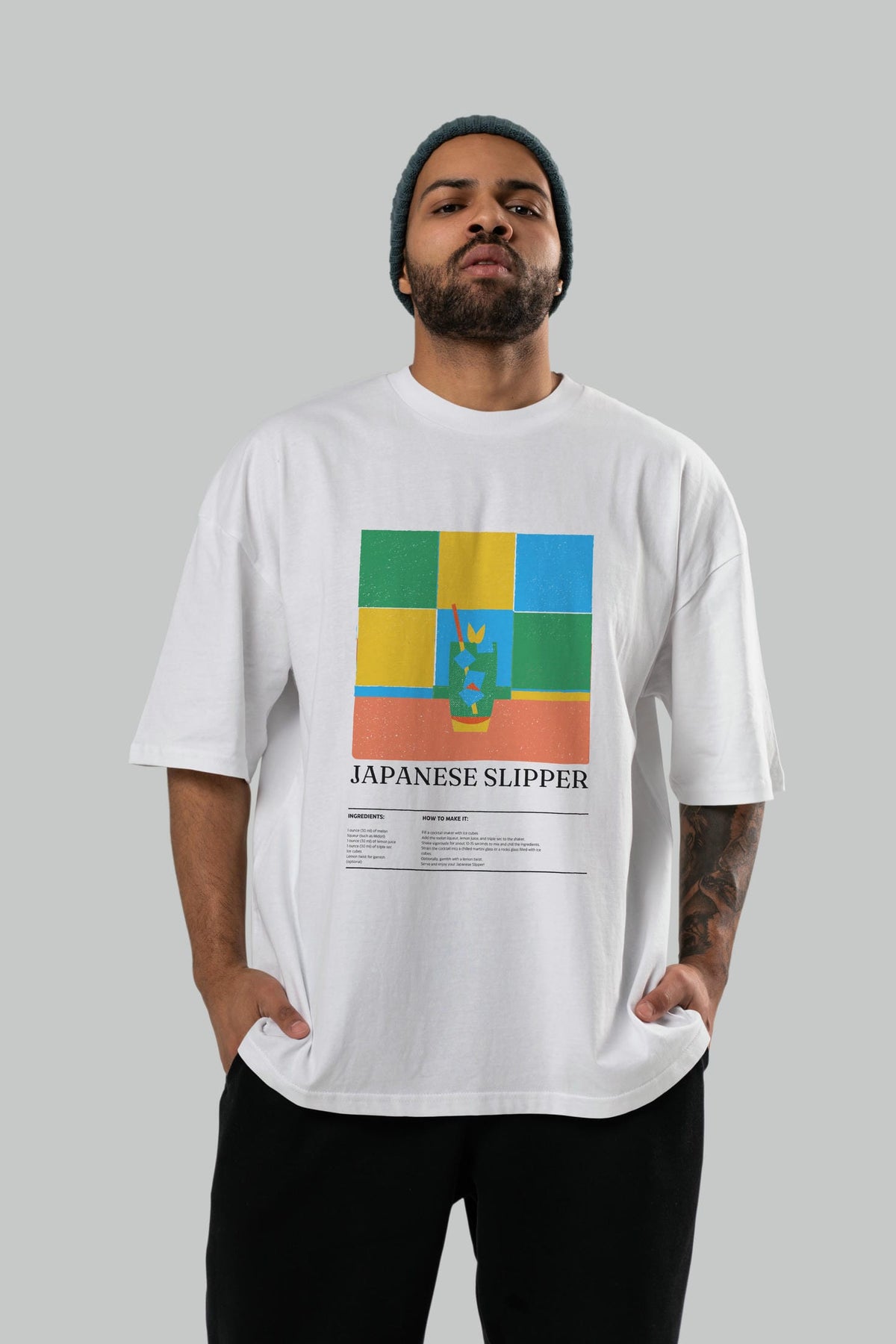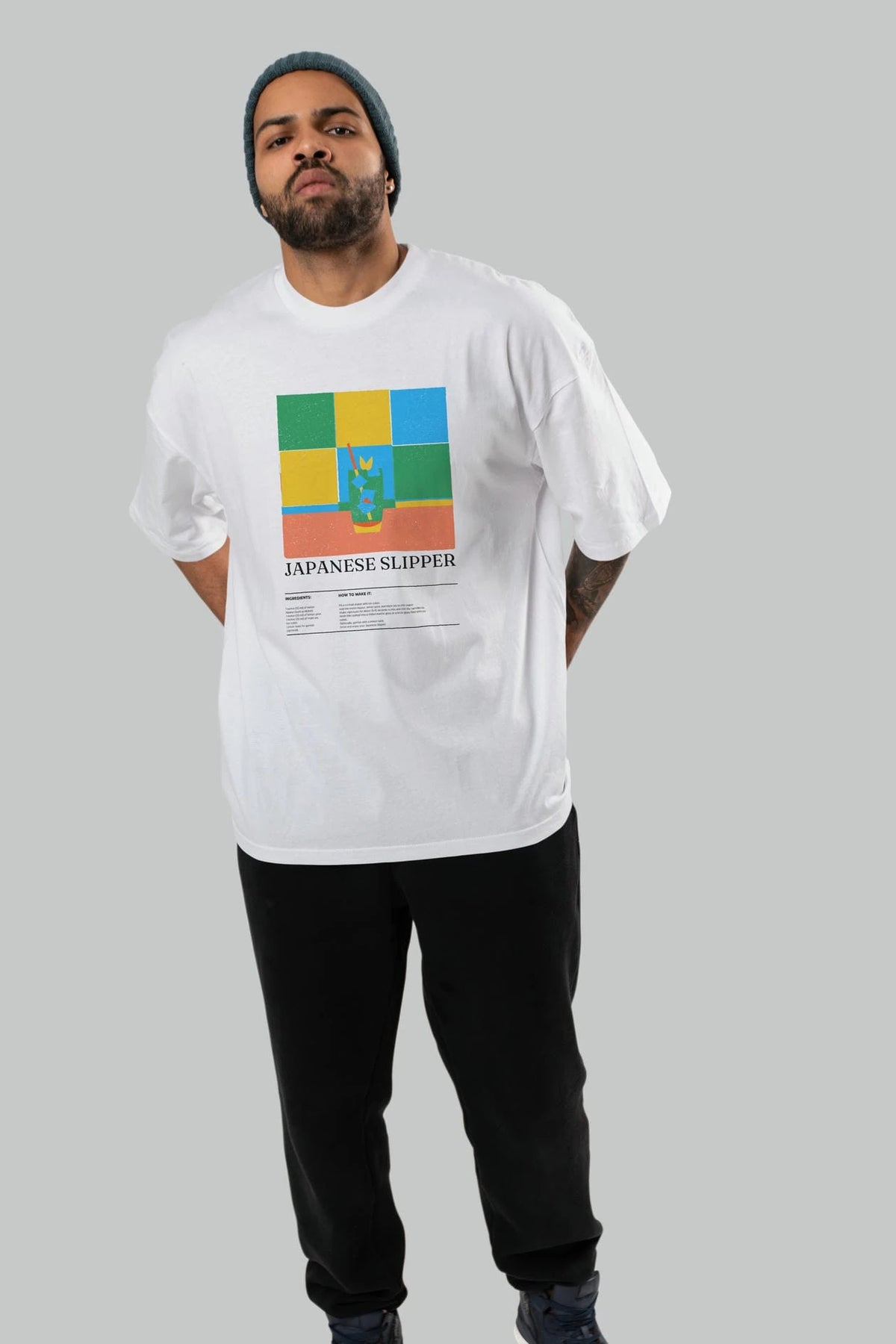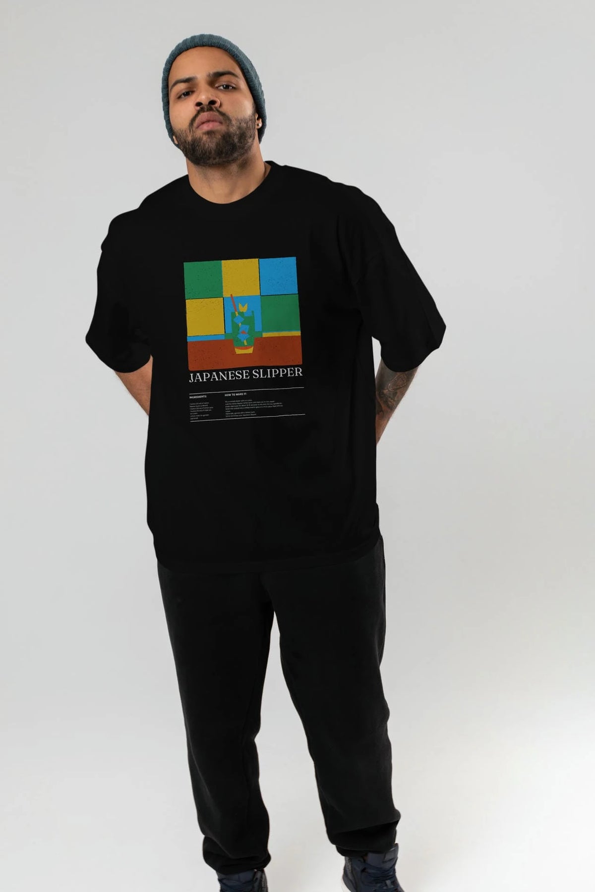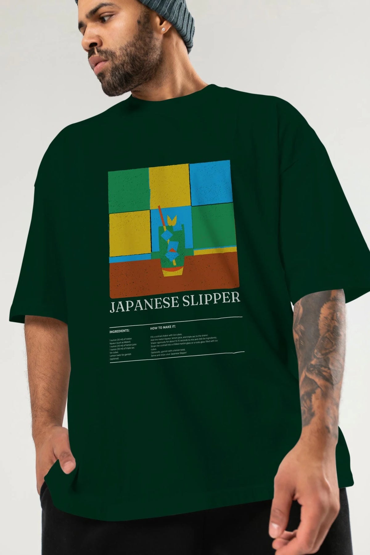 Japanese Slipper Kokteyl Ön Baskılı Oversize t-shirt Erkek Kadın %100 Pamuk Bisiklet Yaka tişort