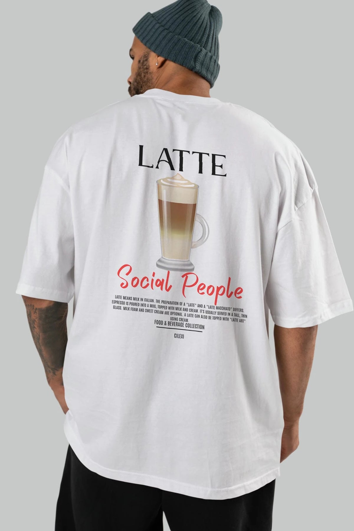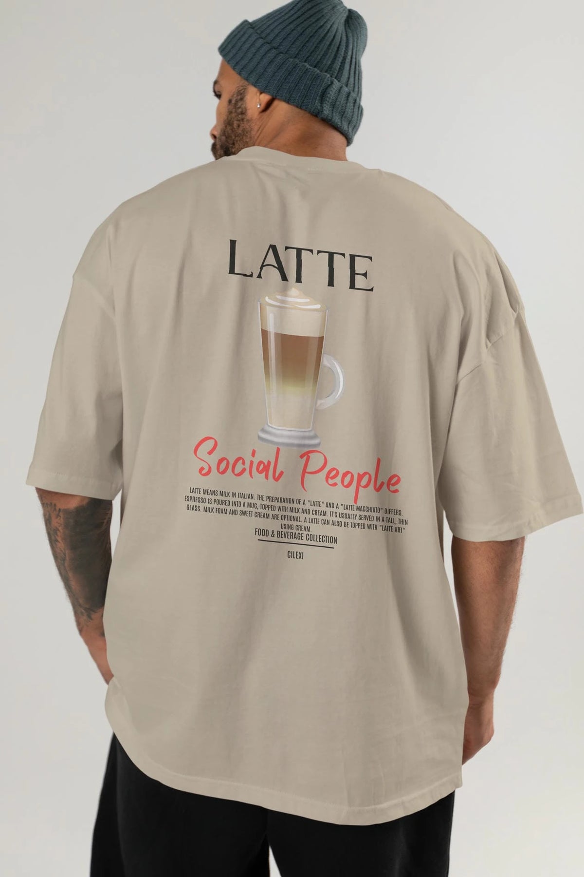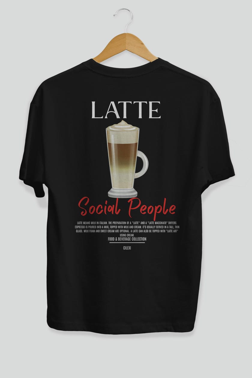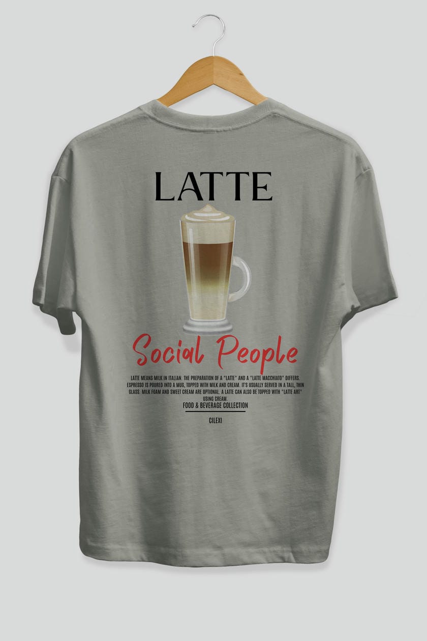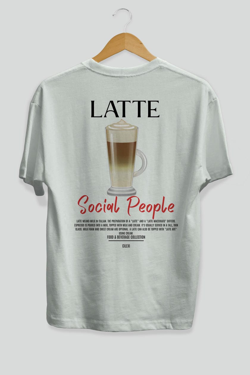 Latte Kokteyl Serisi Baskılı Oversize t-shirt Erkek Kadın Unisex %100 Pamuk Bisiklet Yaka tişort