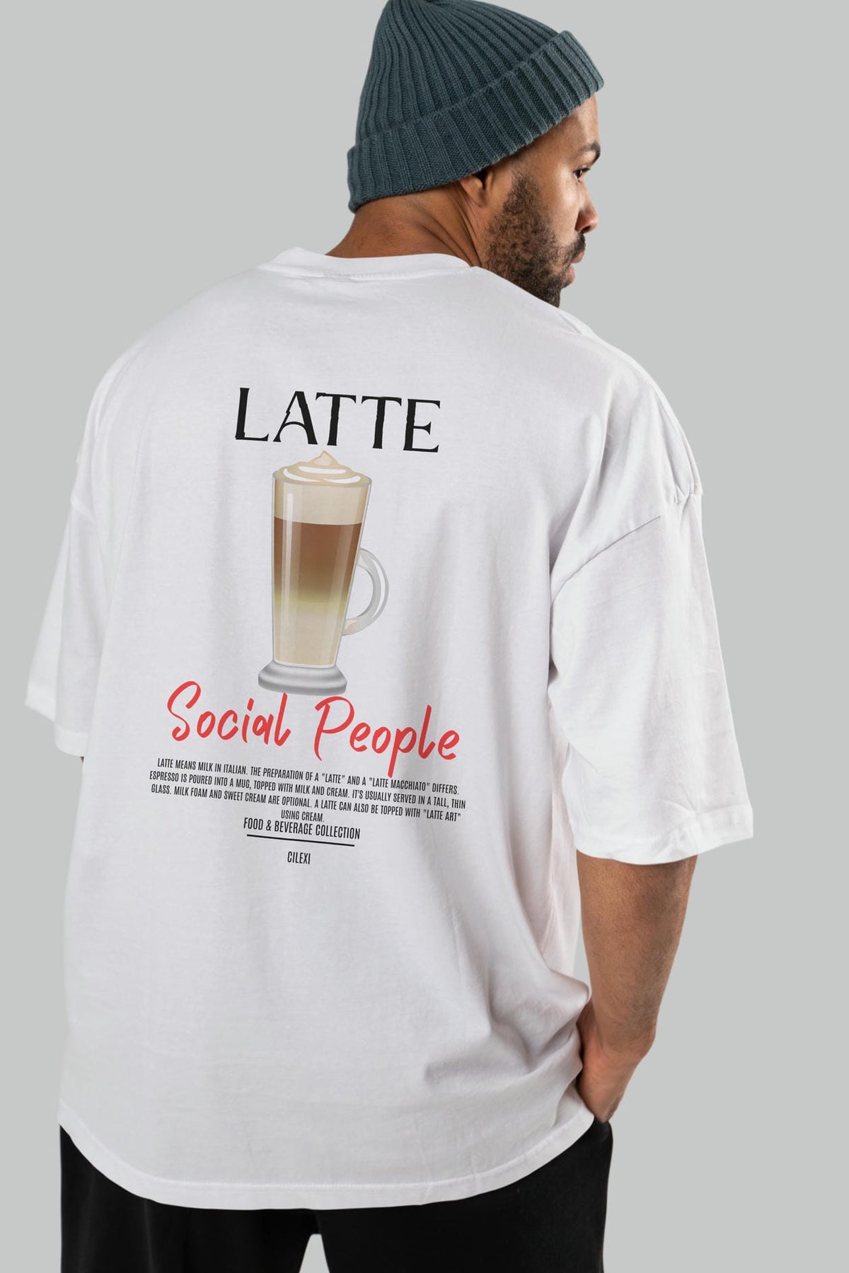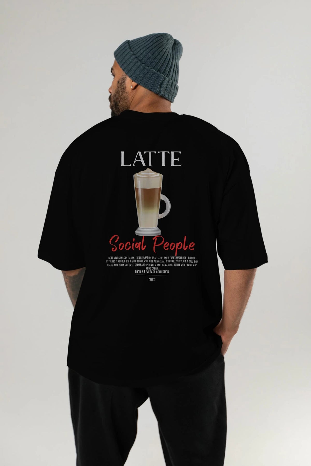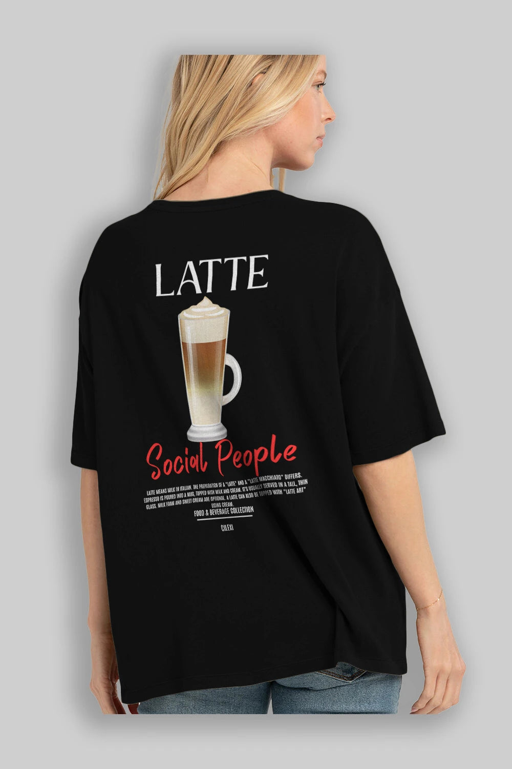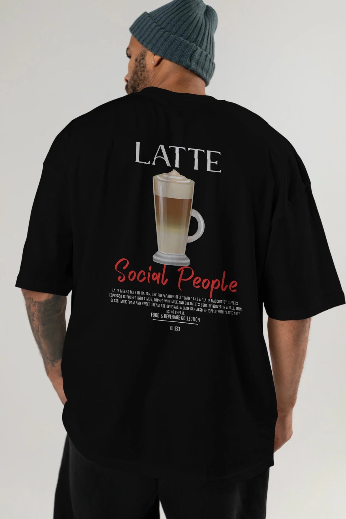 Latte Kokteyl Serisi Baskılı Oversize t-shirt Erkek Kadın Unisex %100 Pamuk Bisiklet Yaka tişort