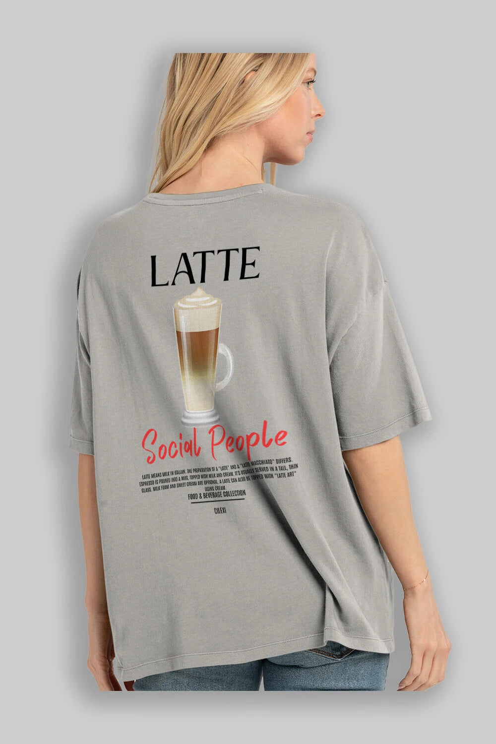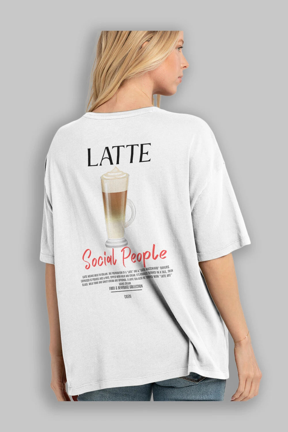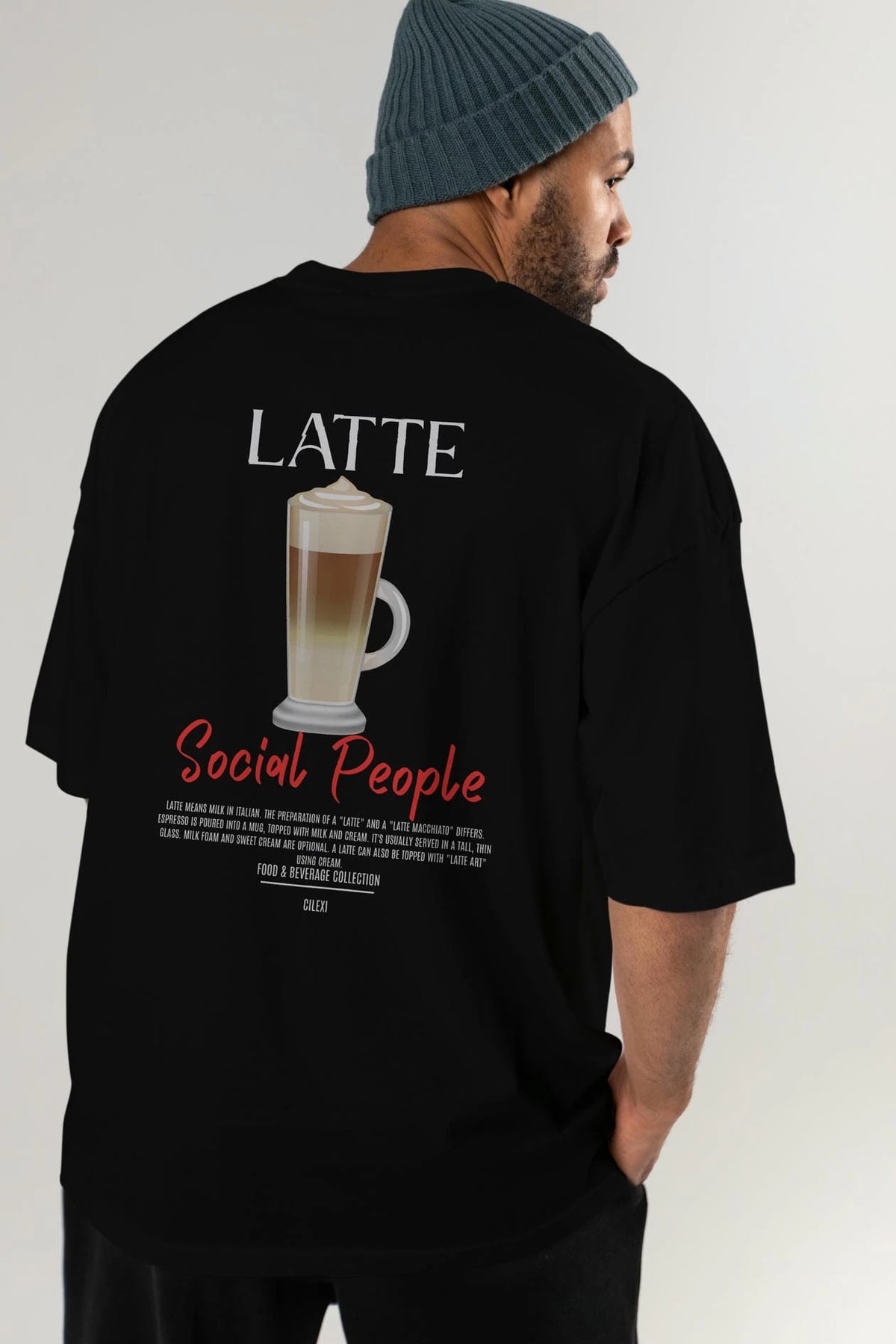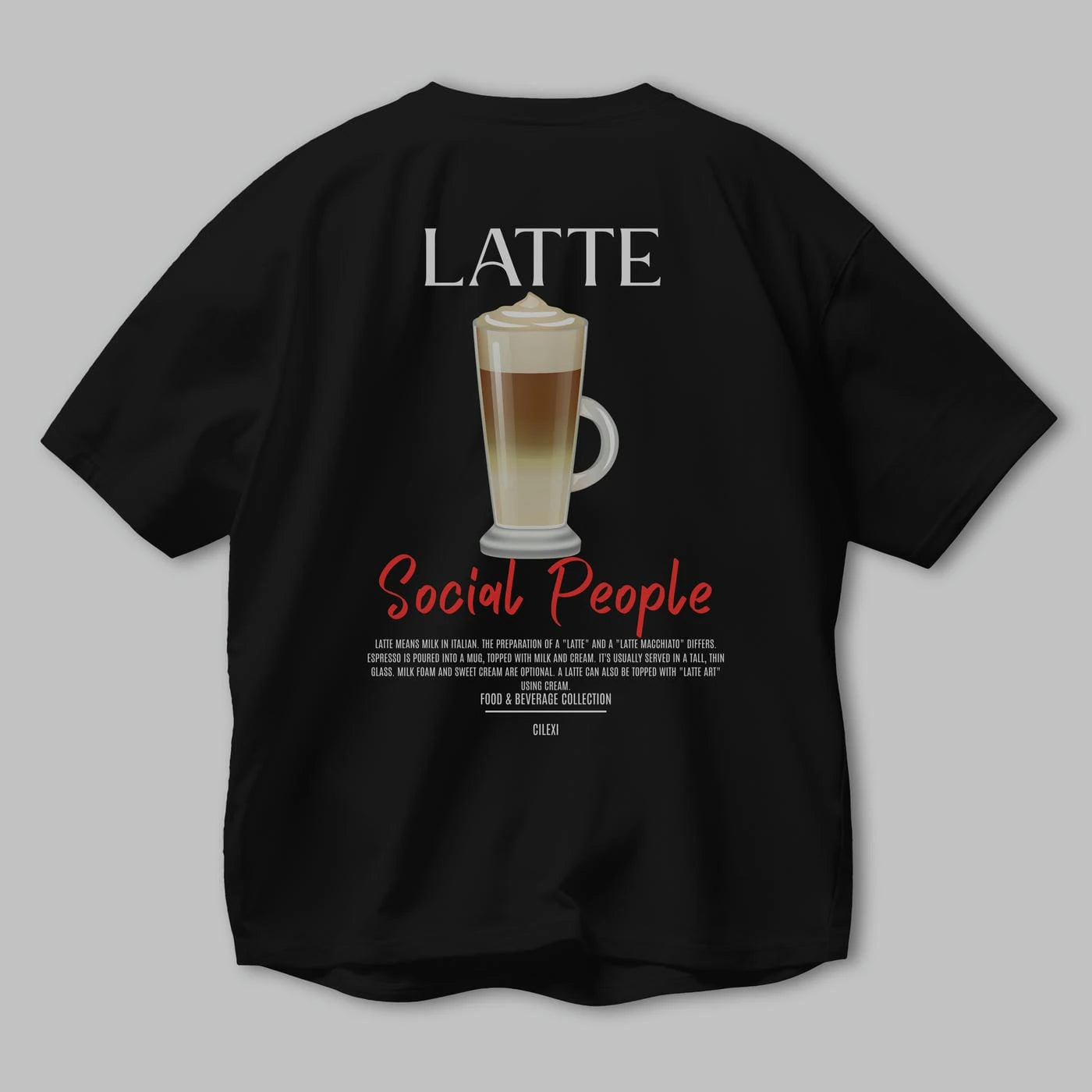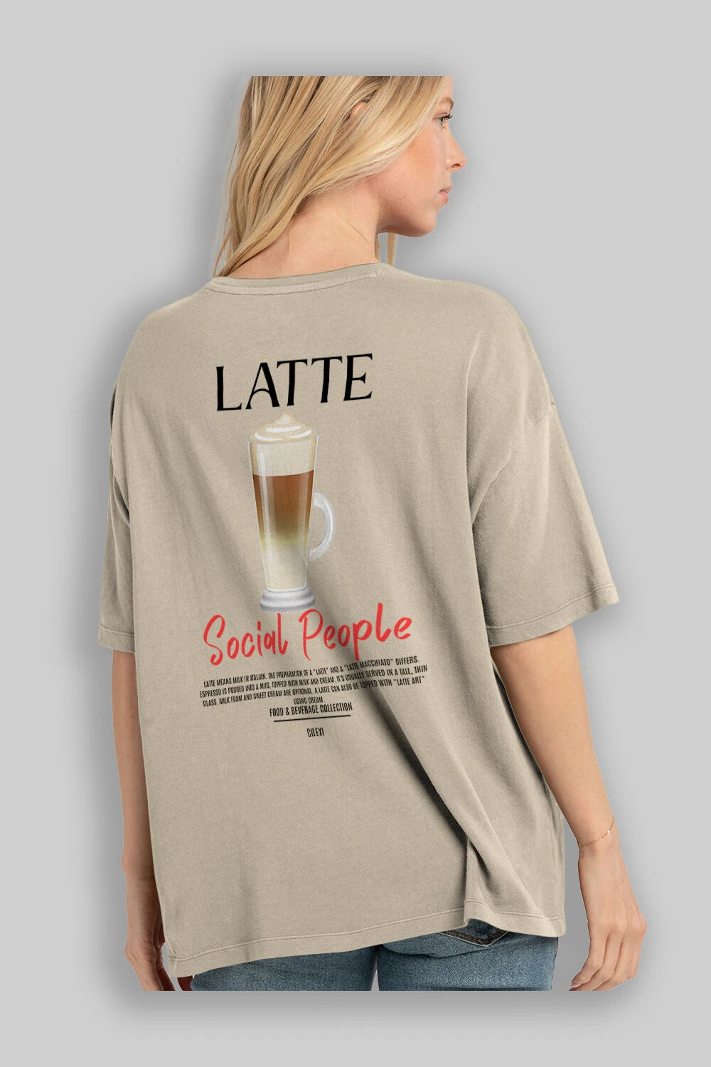 Latte Kokteyl Serisi Baskılı Oversize t-shirt Erkek Kadın Unisex %100 Pamuk Bisiklet Yaka tişort