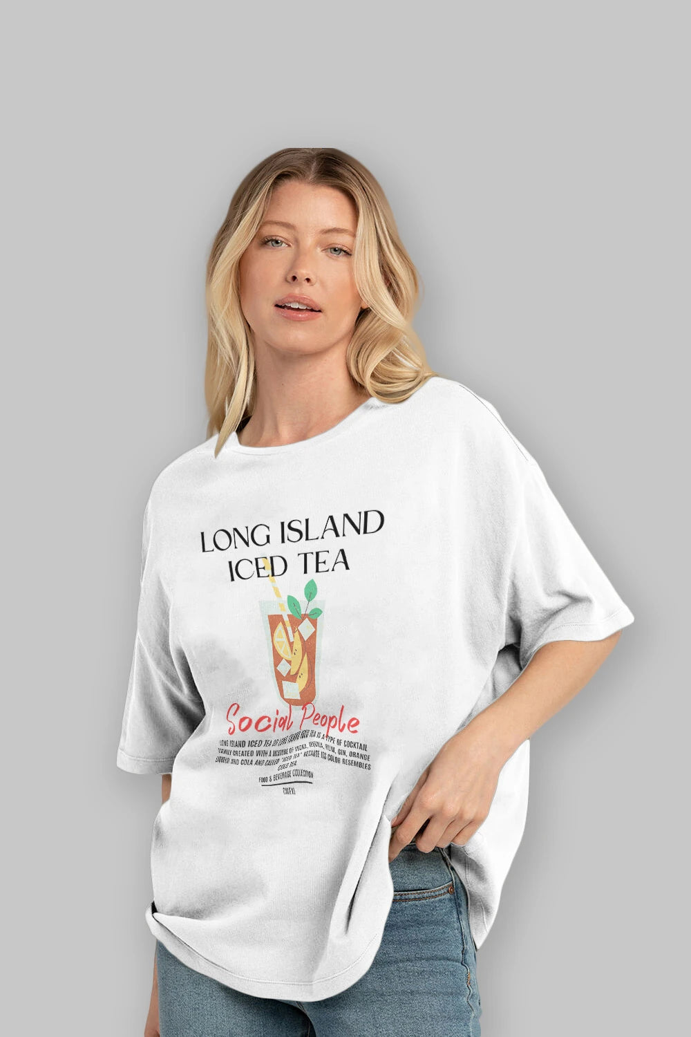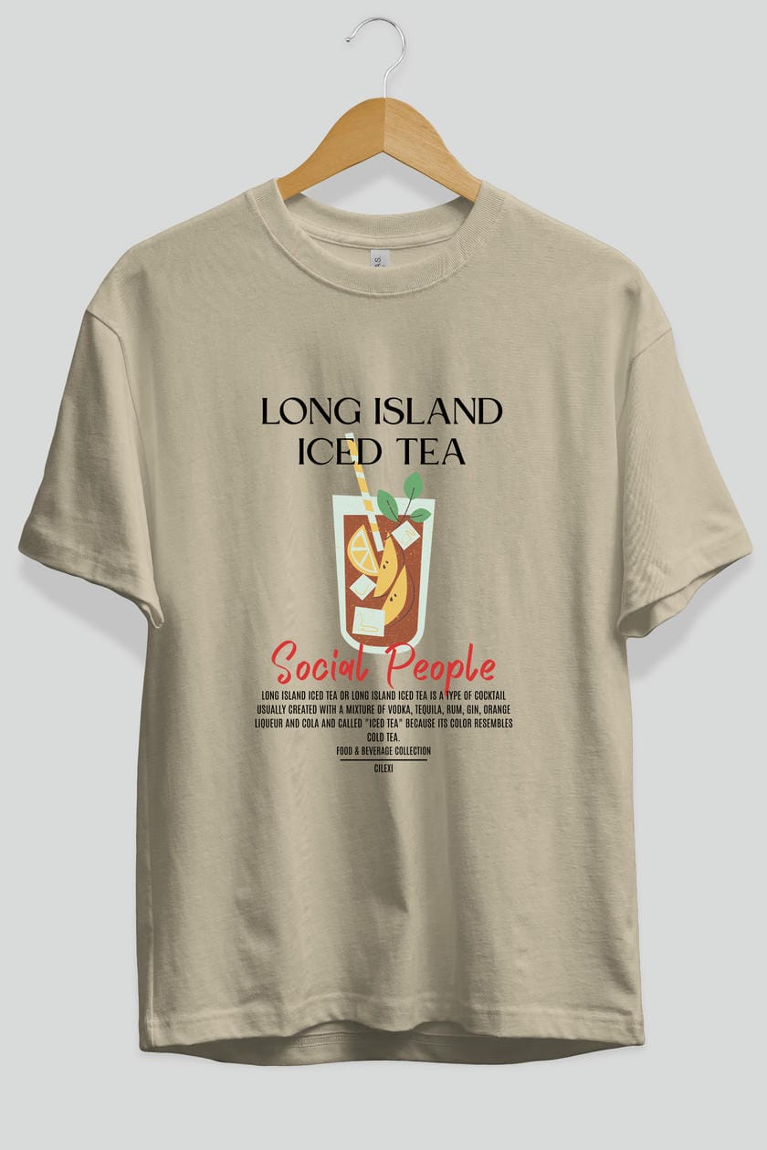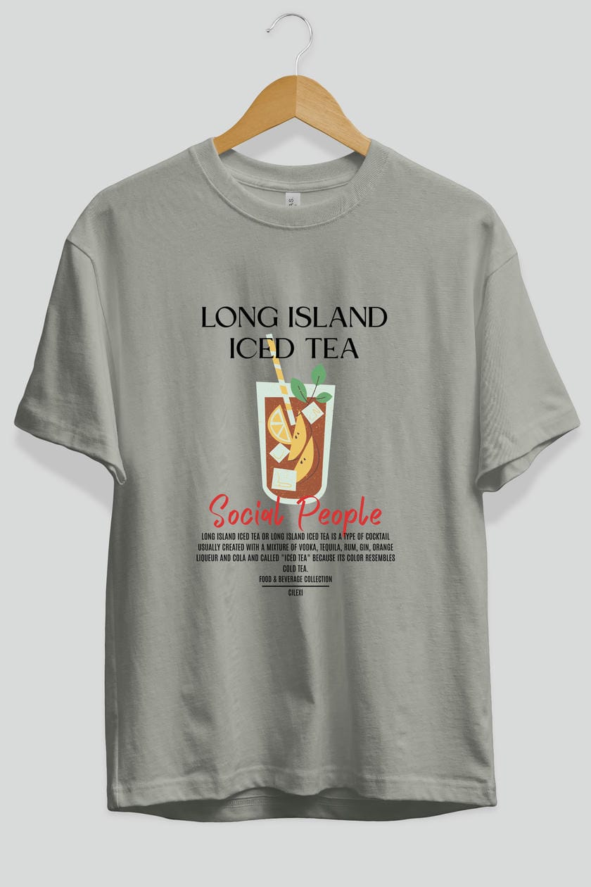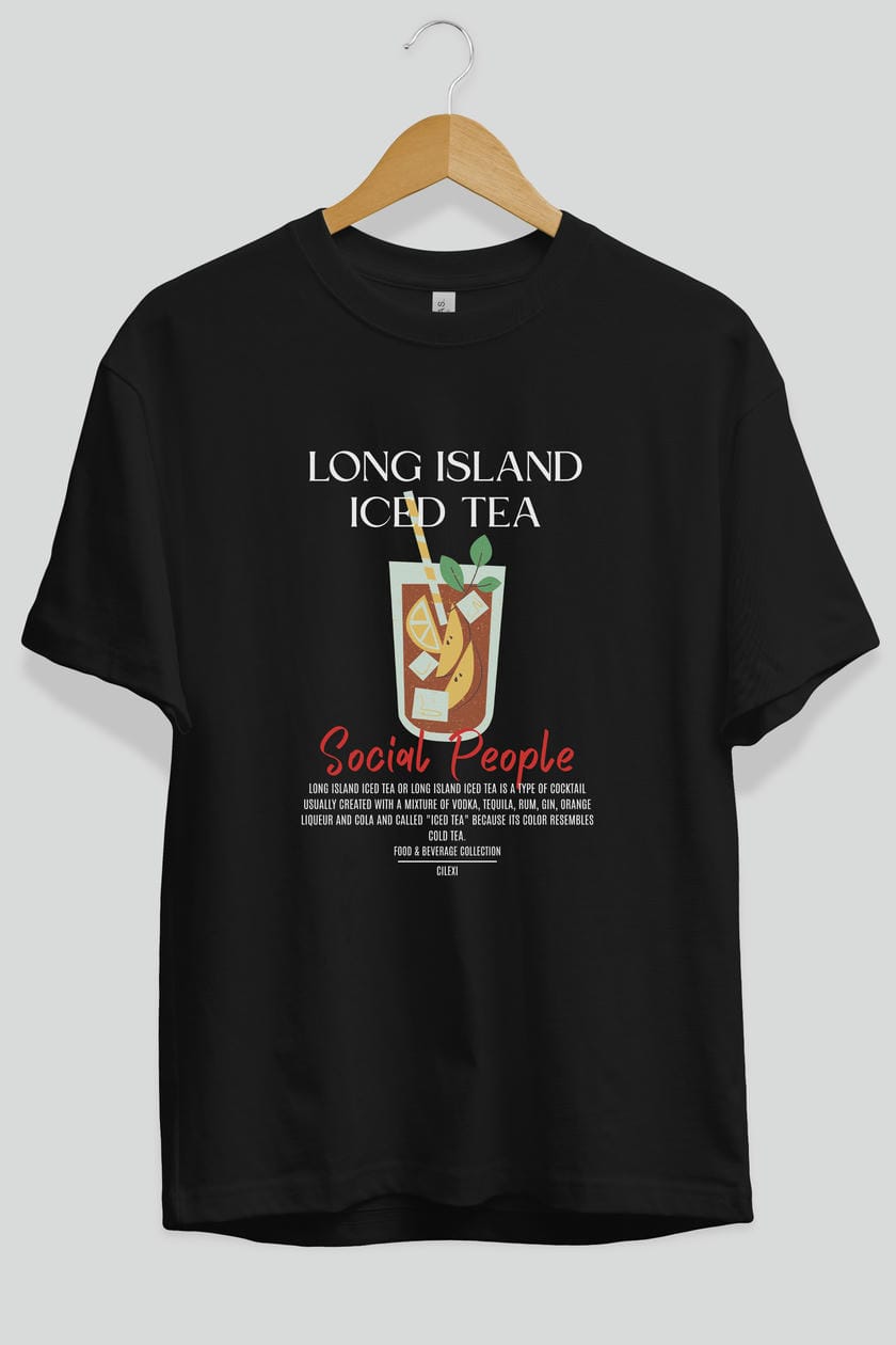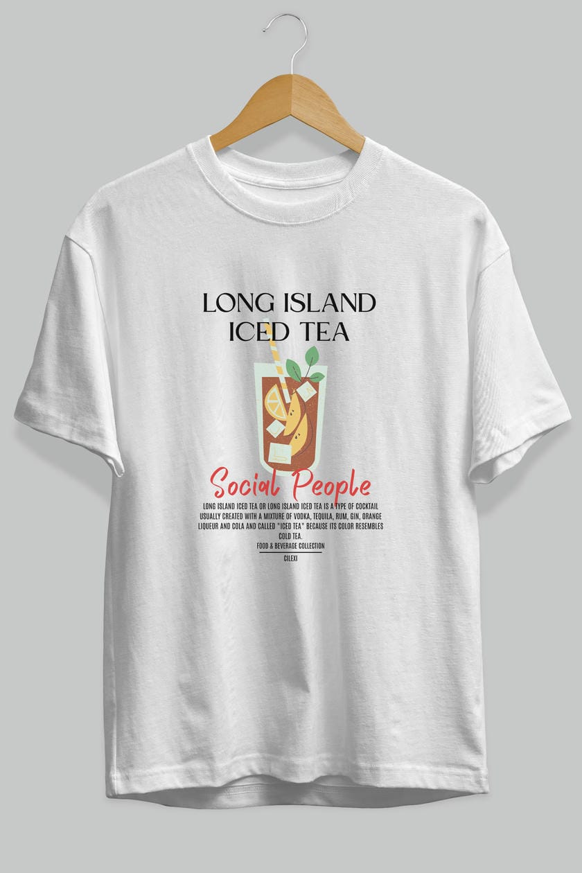 Long Island ıced tea Kokteyl Serisi ön Baskılı Oversize t-shirt Erkek Kadın %100 Pamuk Bisiklet Yaka tişort