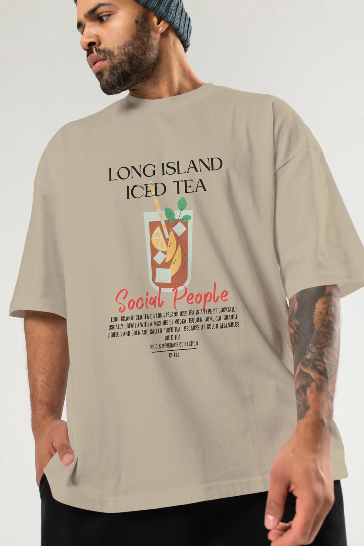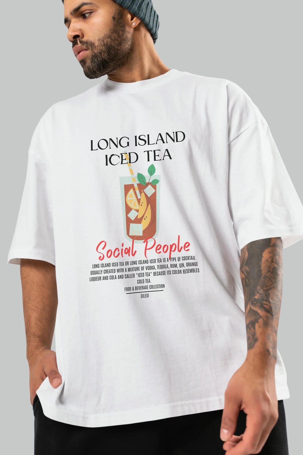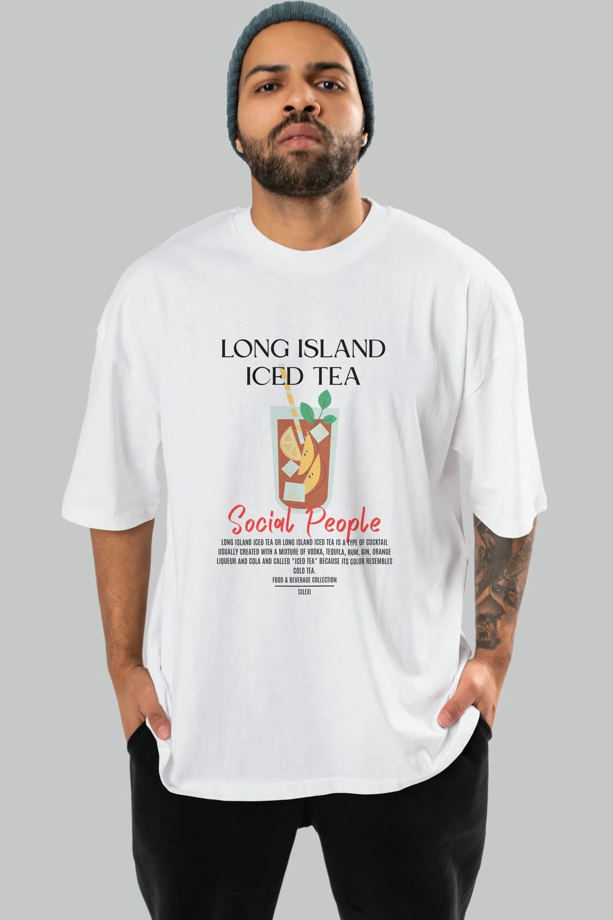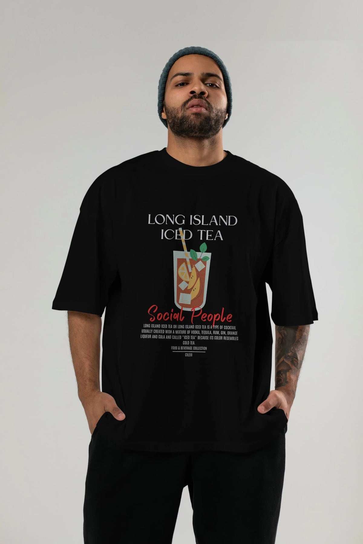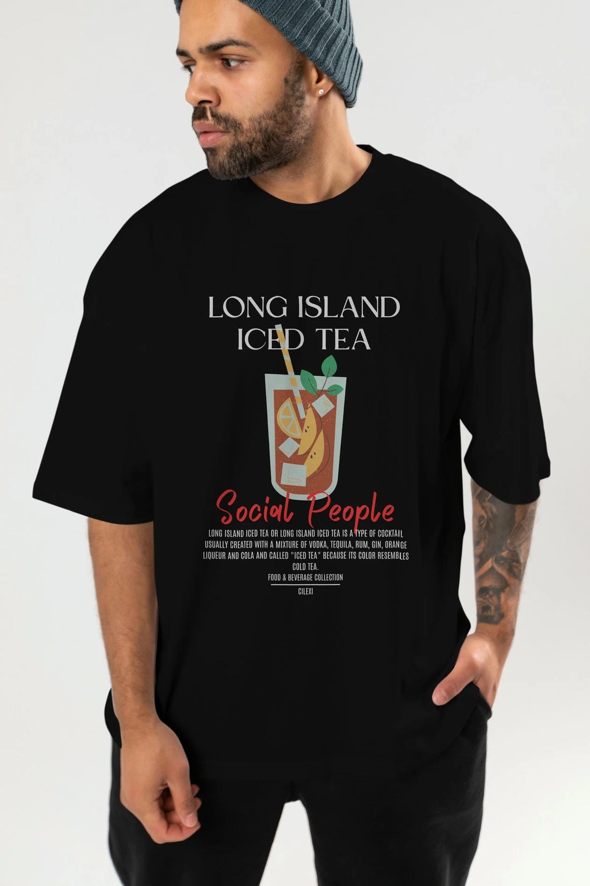 Long Island ıced tea Kokteyl Serisi ön Baskılı Oversize t-shirt Erkek Kadın %100 Pamuk Bisiklet Yaka tişort