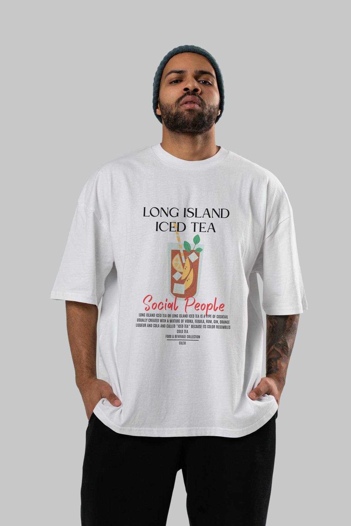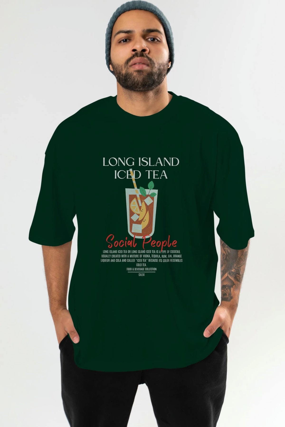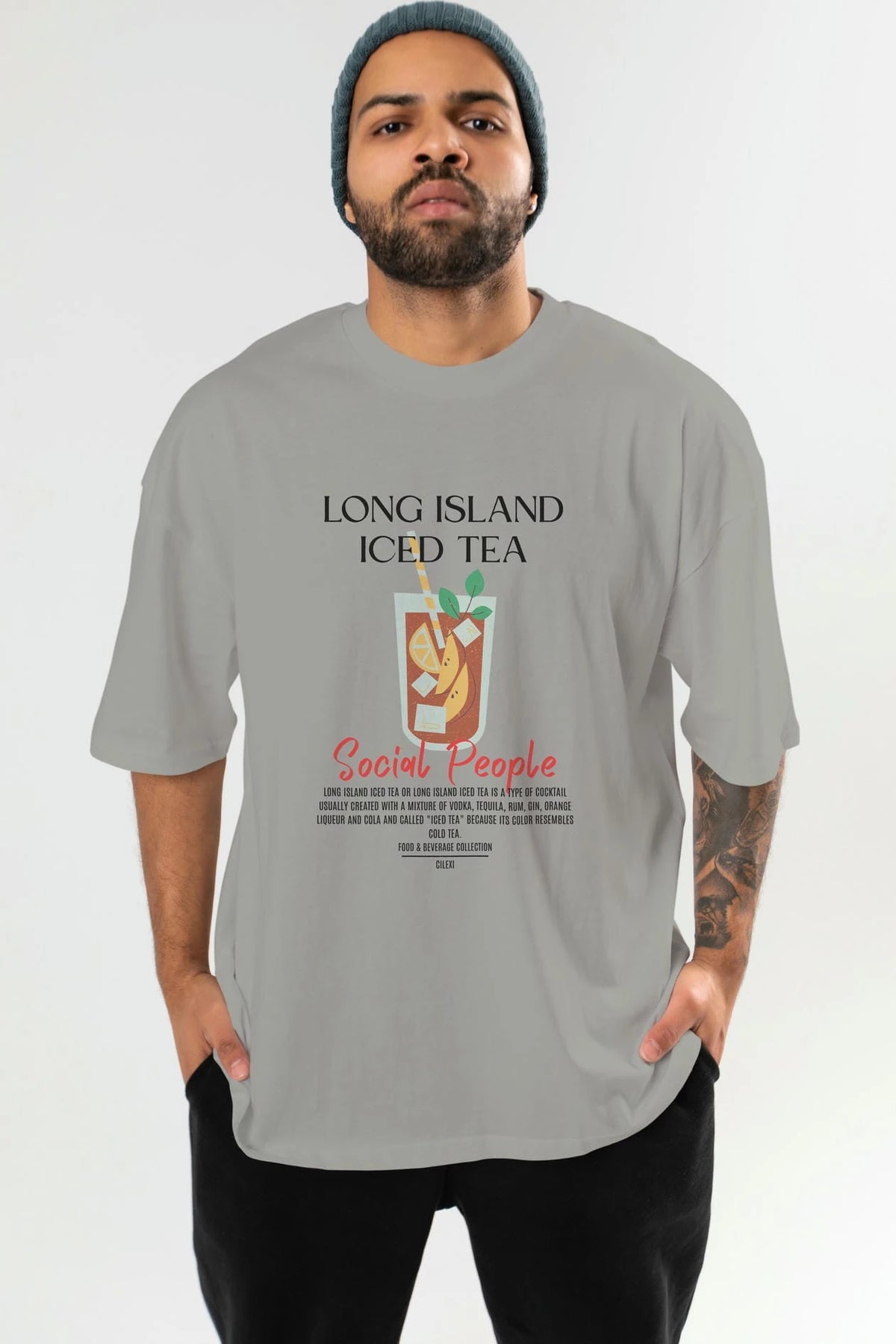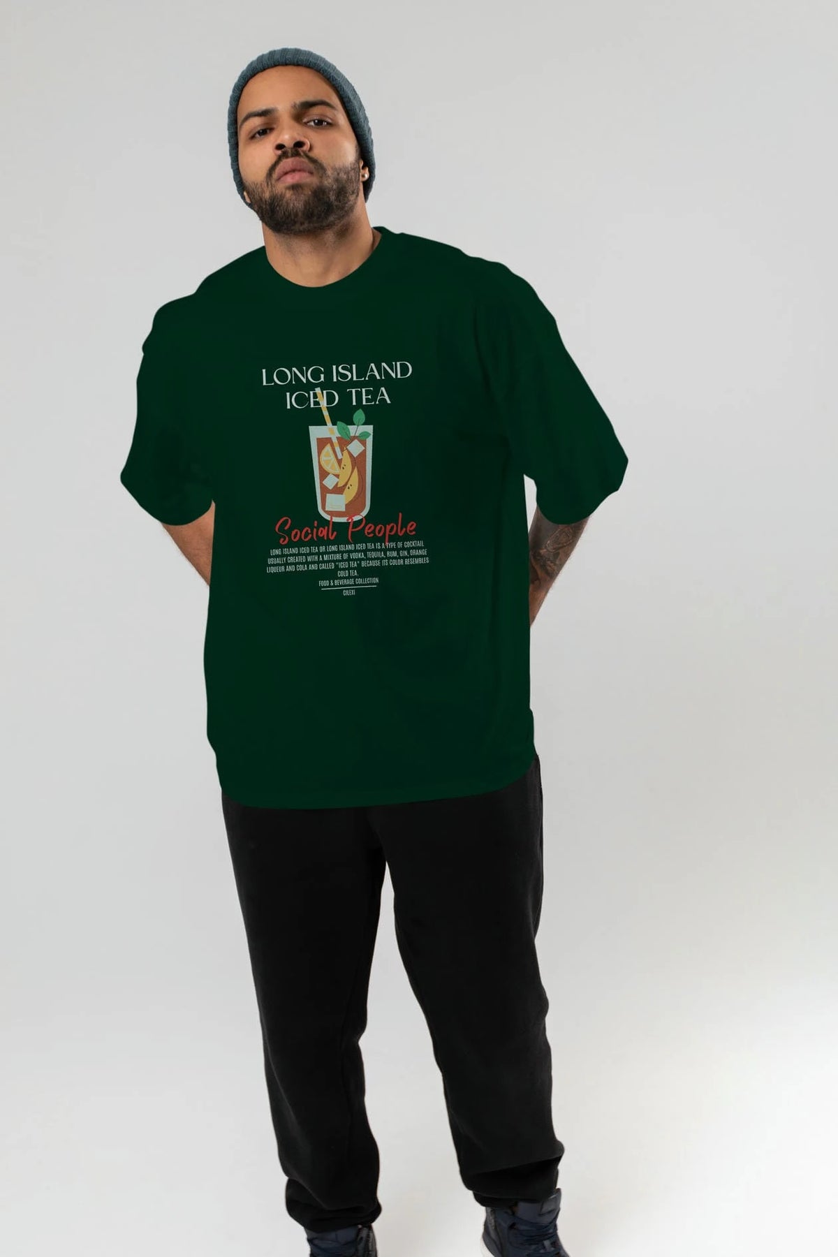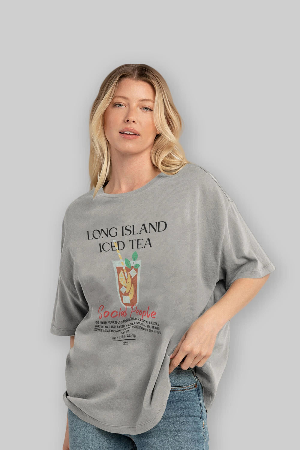 Long Island ıced tea Kokteyl Serisi ön Baskılı Oversize t-shirt Erkek Kadın %100 Pamuk Bisiklet Yaka tişort