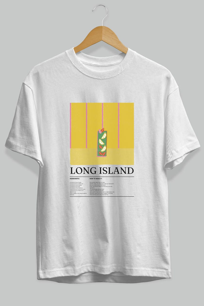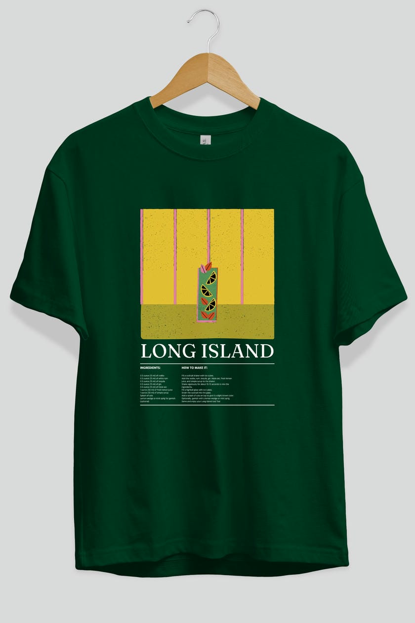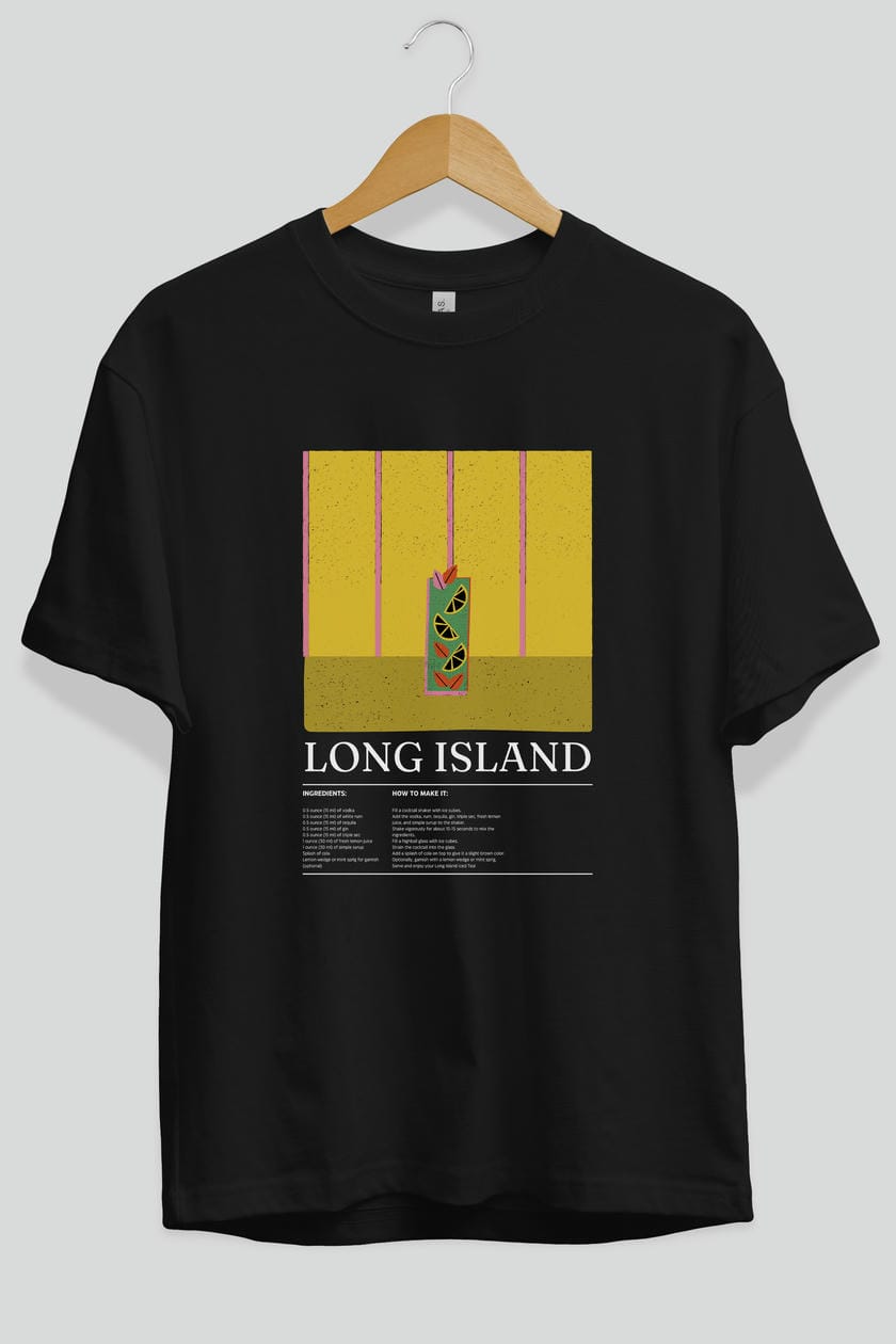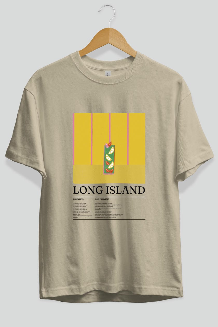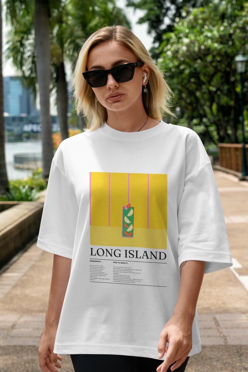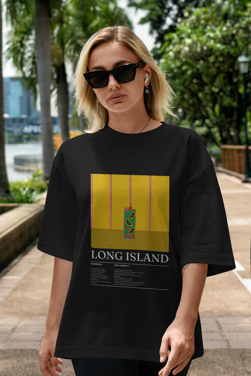 Long Island Kokteyl Ön Baskılı Oversize t-shirt Erkek Kadın %100 Pamuk Bisiklet Yaka tişort