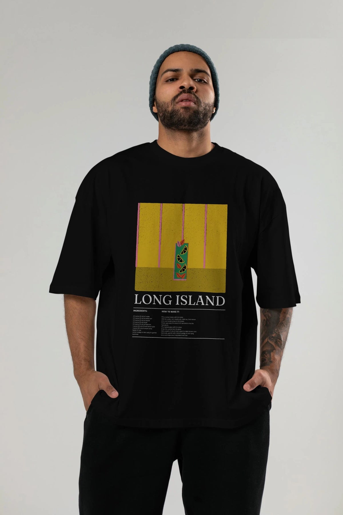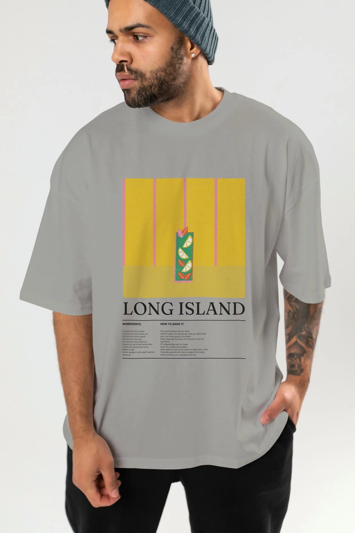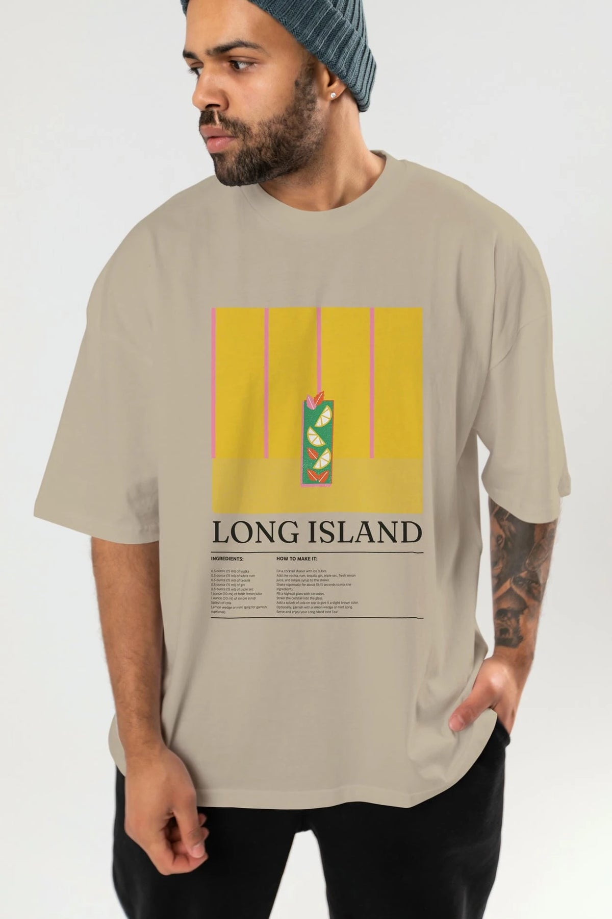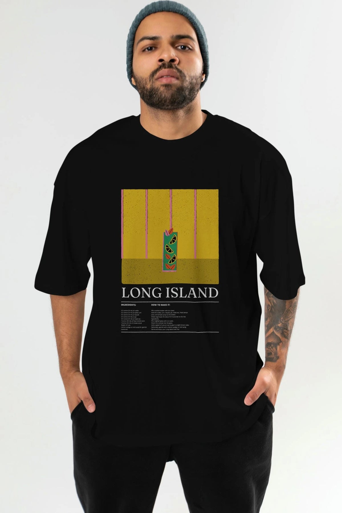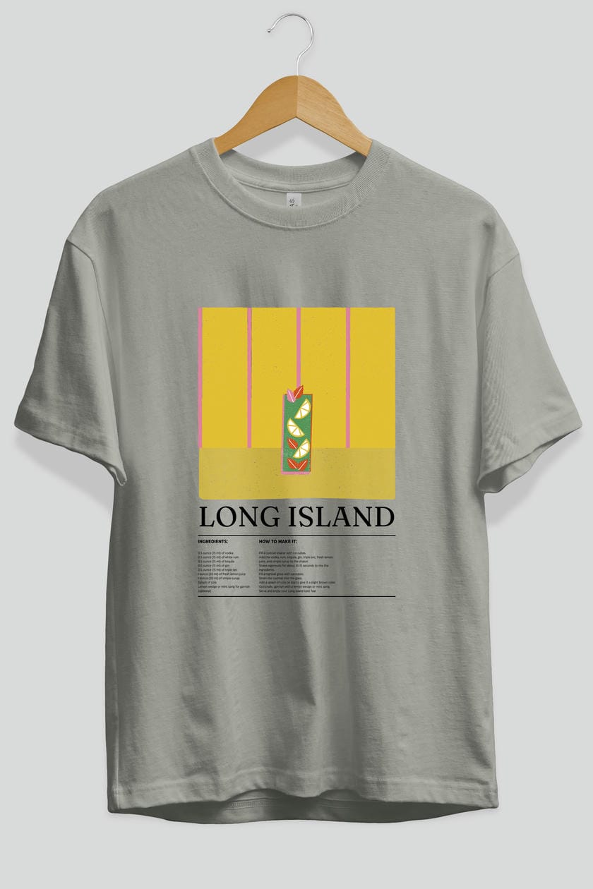 Long Island Kokteyl Ön Baskılı Oversize t-shirt Erkek Kadın %100 Pamuk Bisiklet Yaka tişort