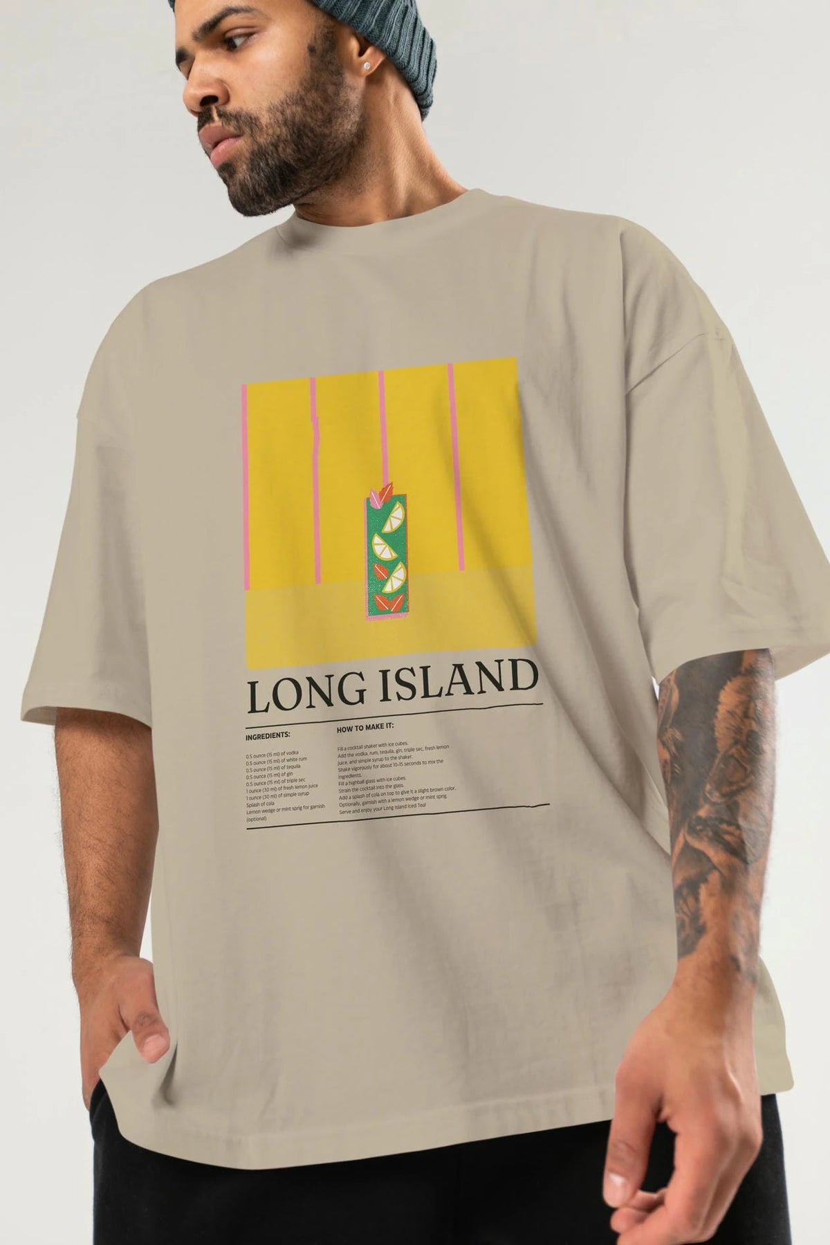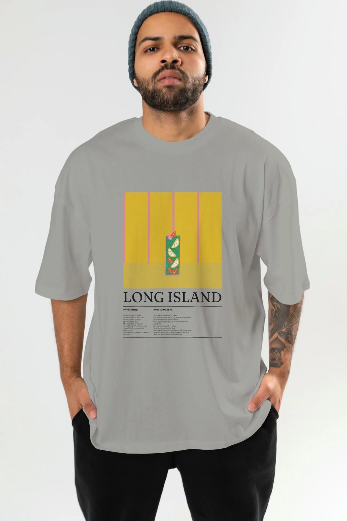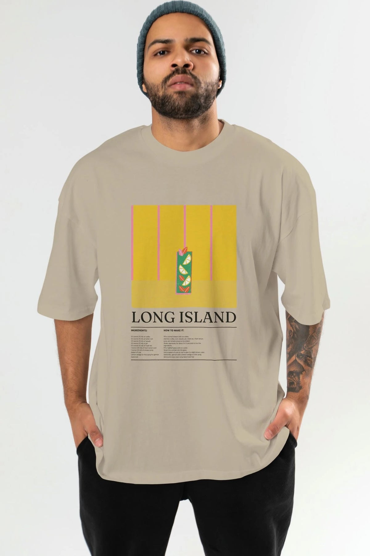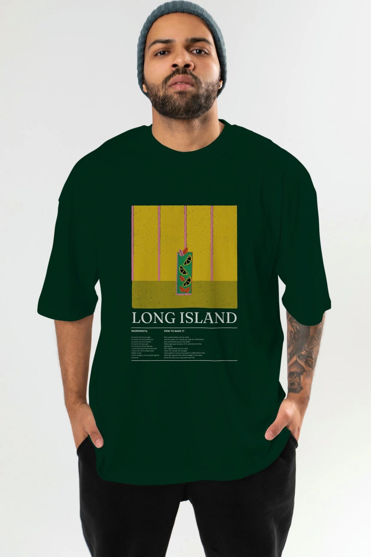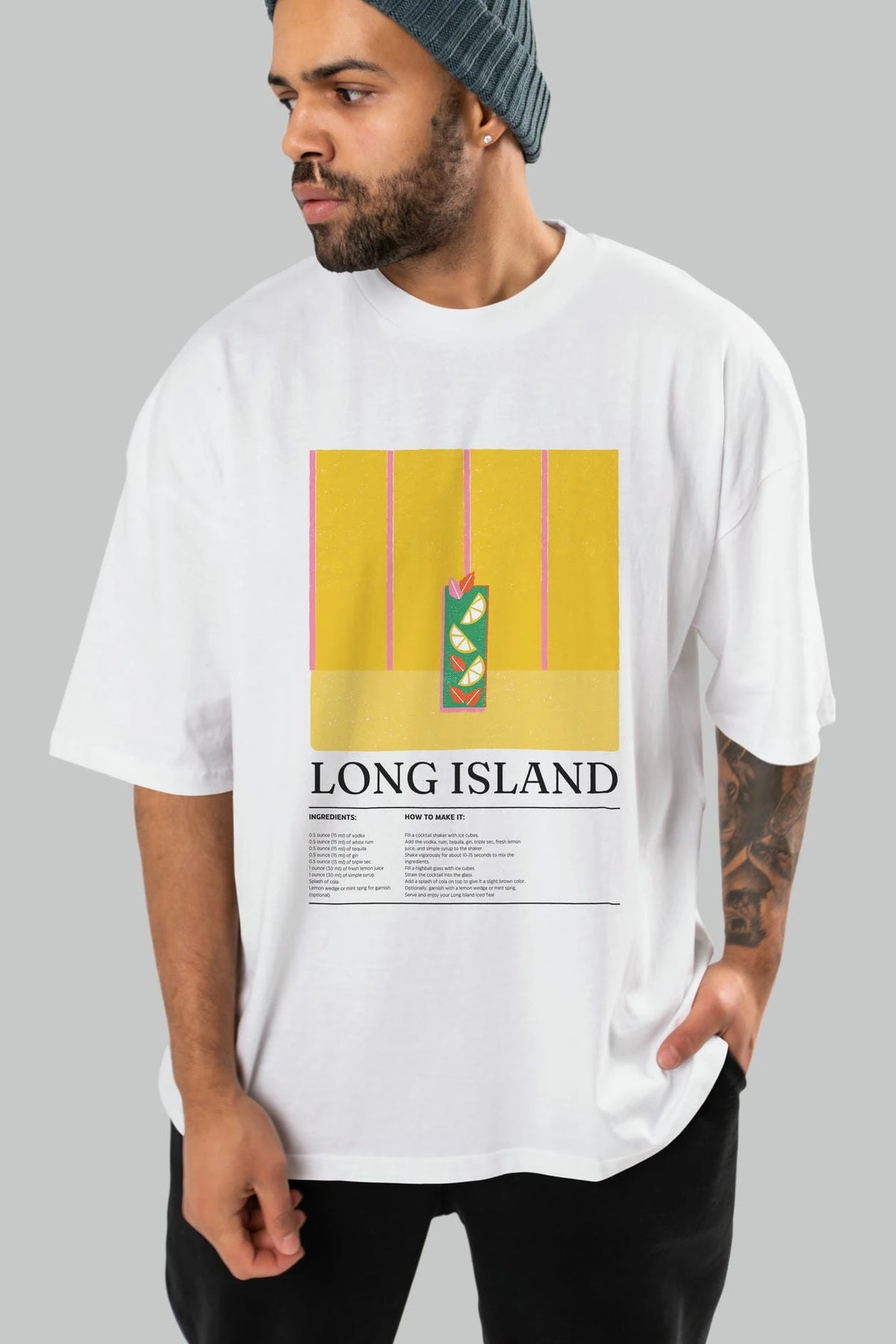 Long Island Kokteyl Ön Baskılı Oversize t-shirt Erkek Kadın %100 Pamuk Bisiklet Yaka tişort
