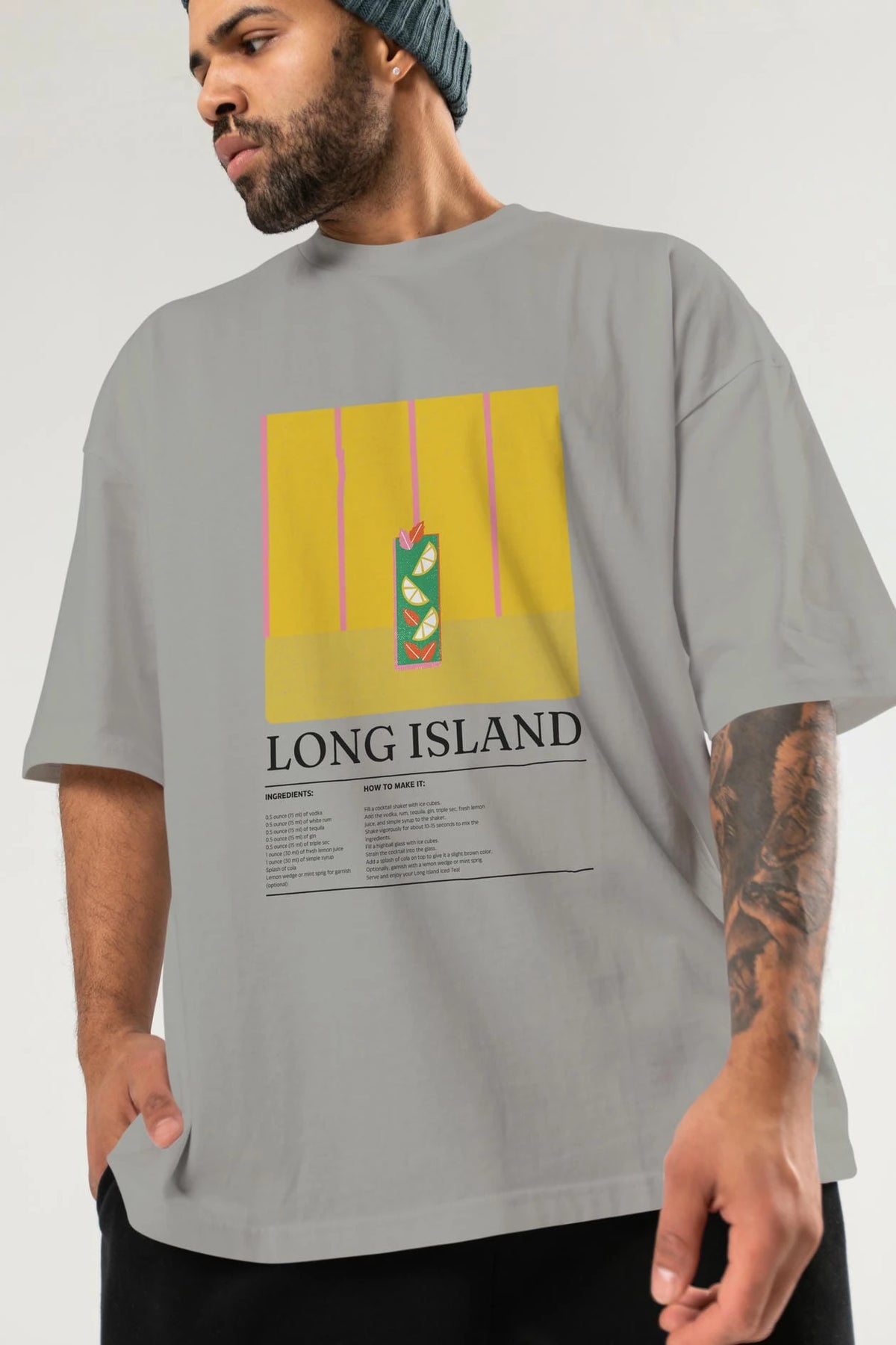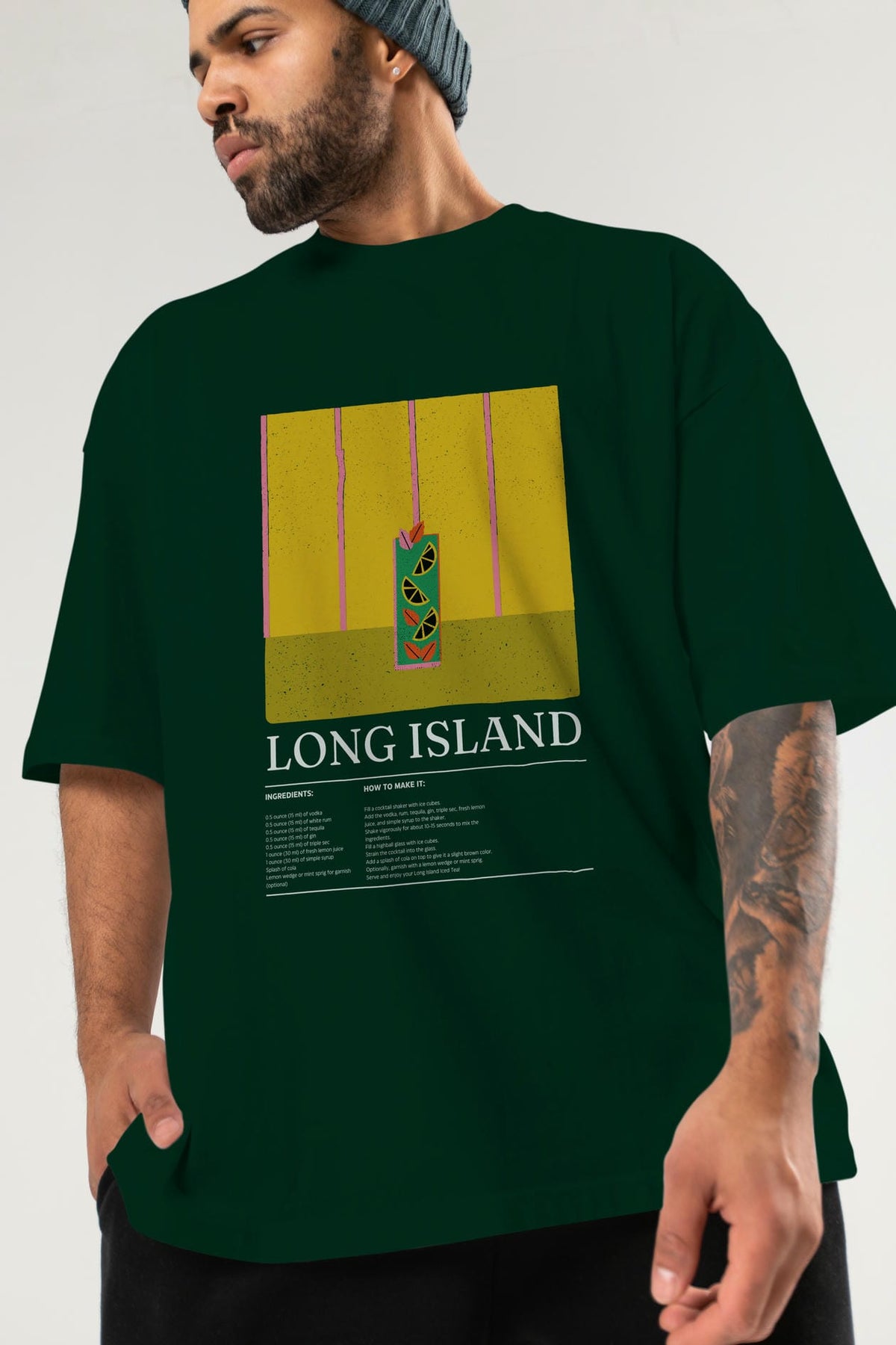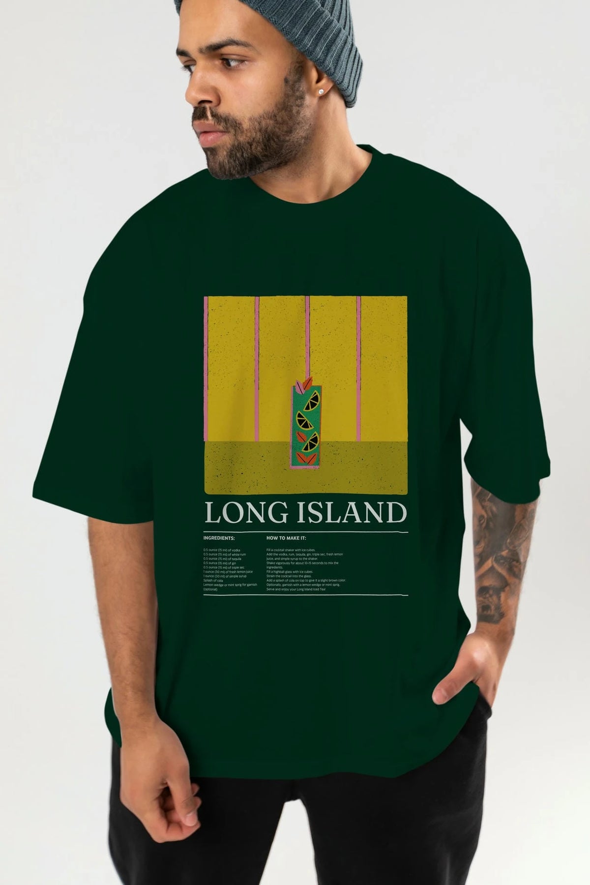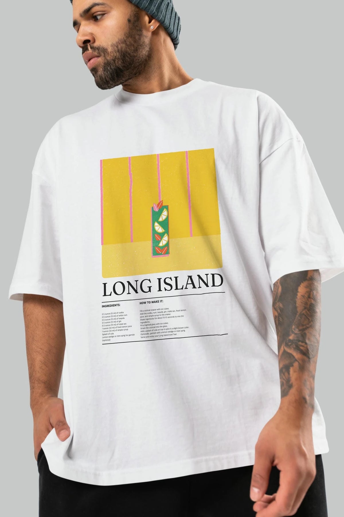 Long Island Kokteyl Ön Baskılı Oversize t-shirt Erkek Kadın %100 Pamuk Bisiklet Yaka tişort