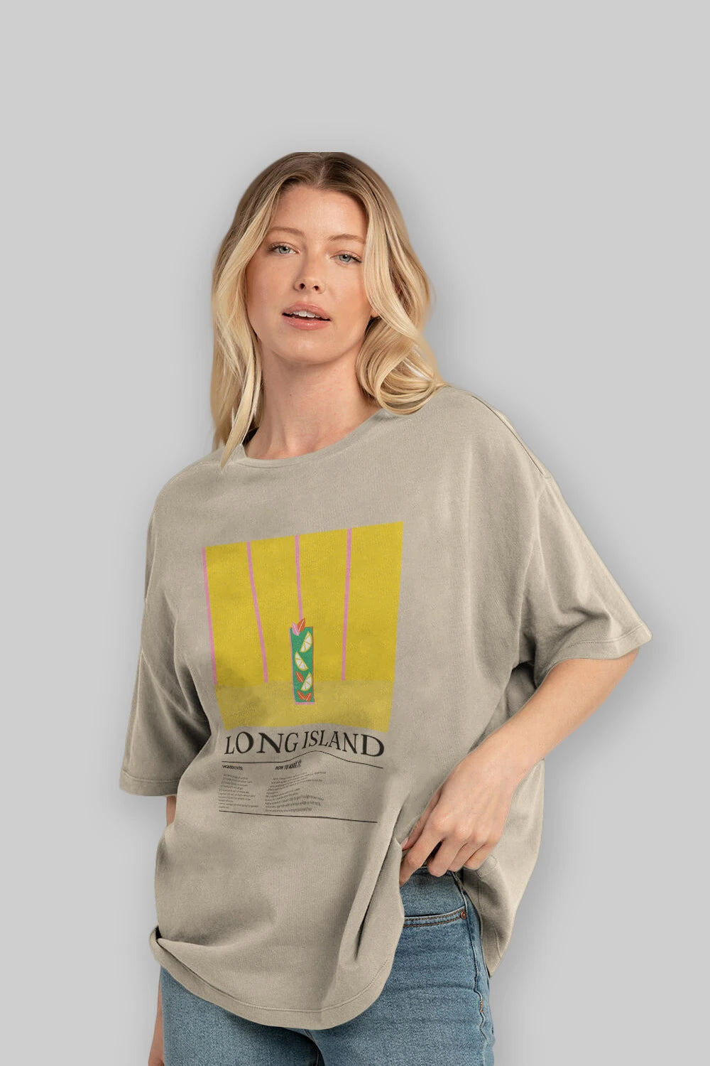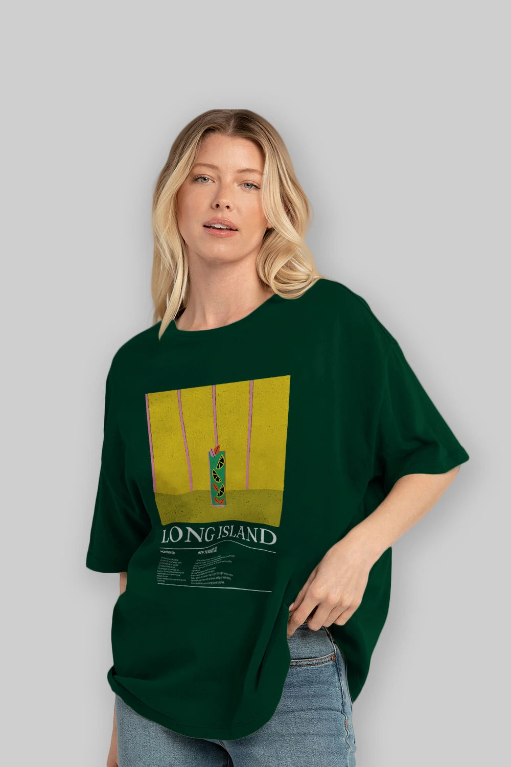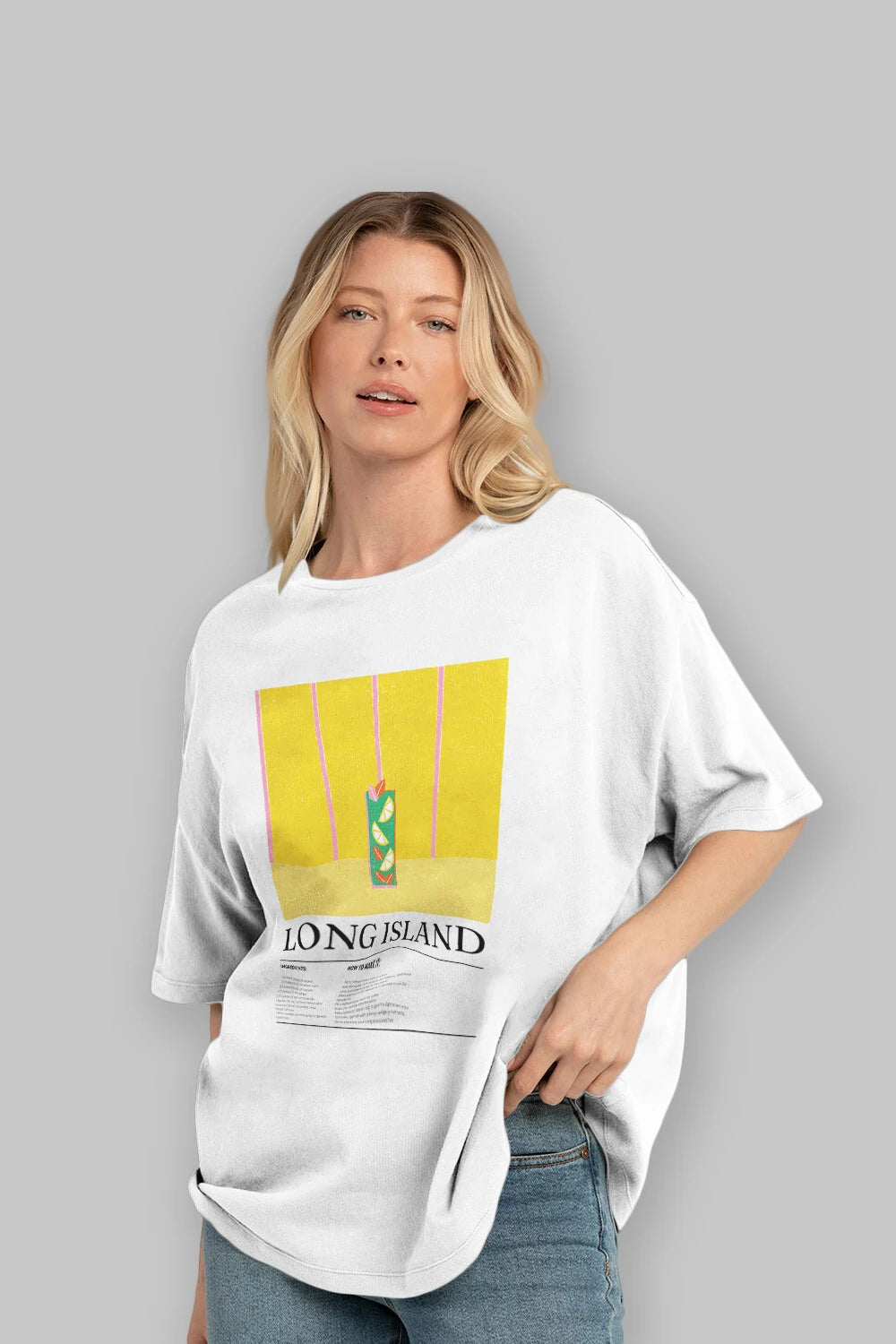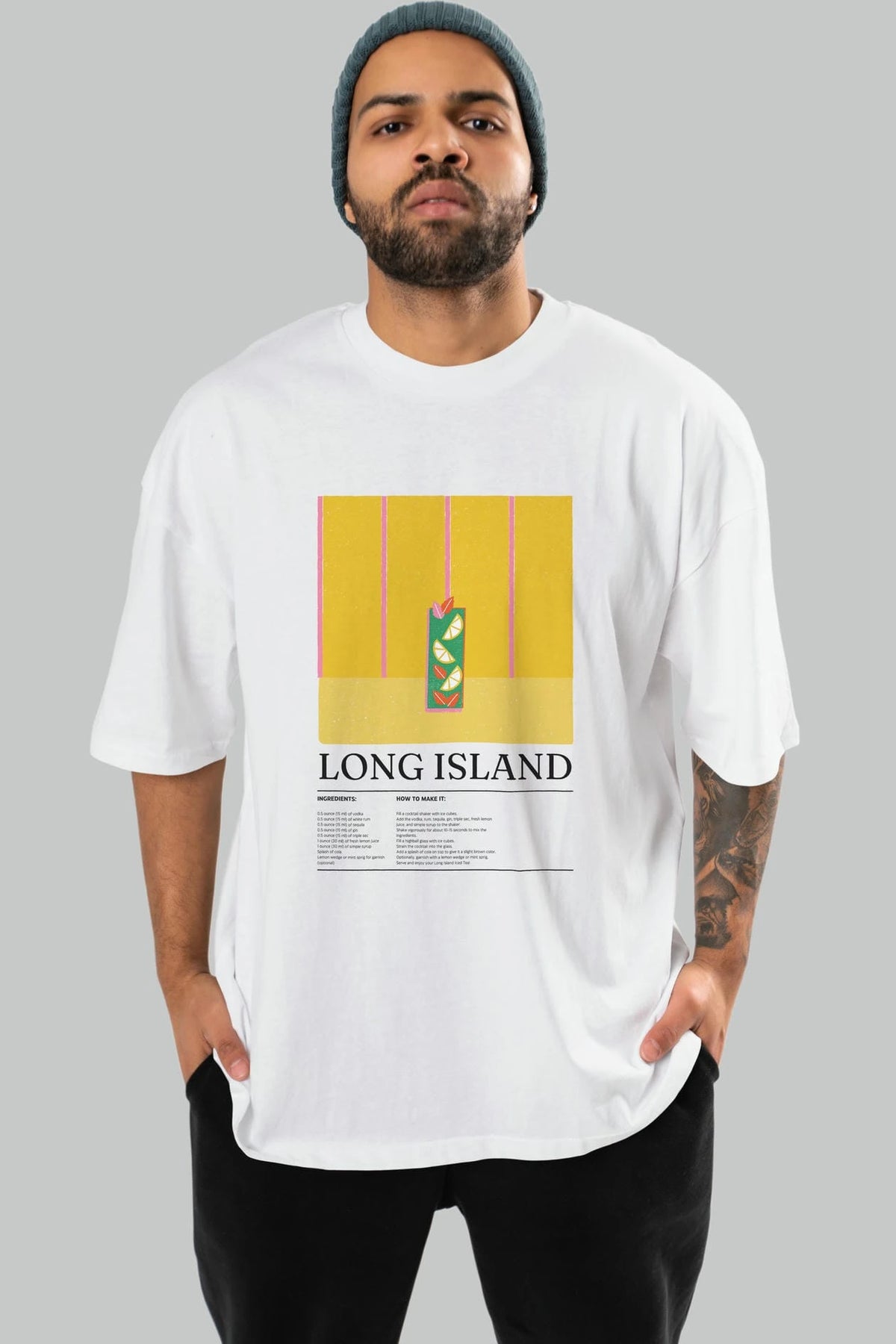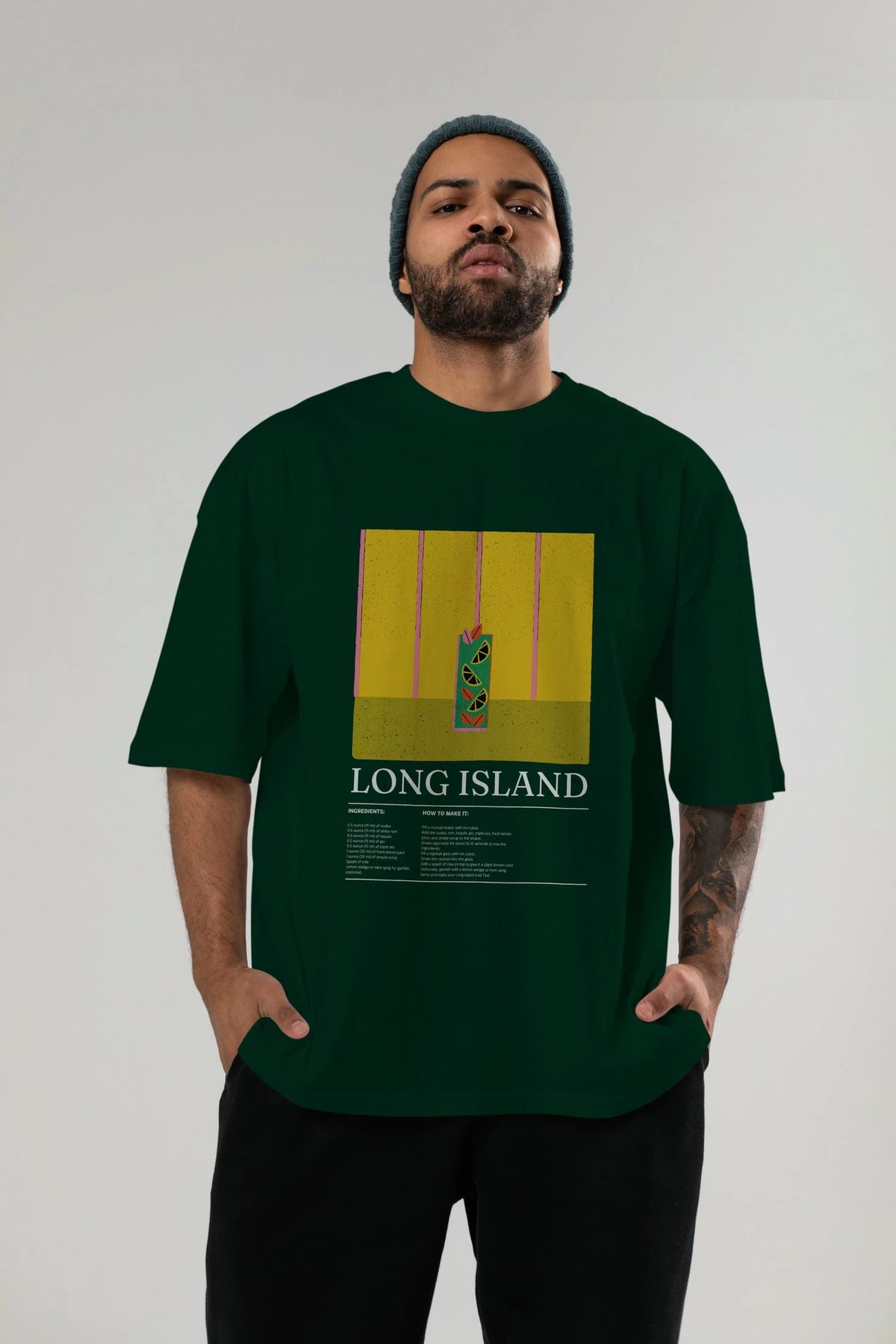 Long Island Kokteyl Ön Baskılı Oversize t-shirt Erkek Kadın %100 Pamuk Bisiklet Yaka tişort