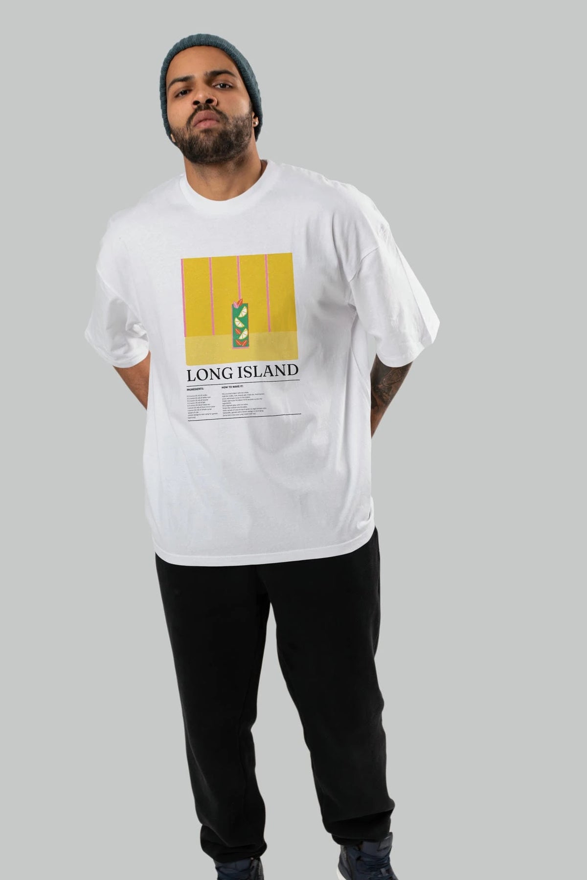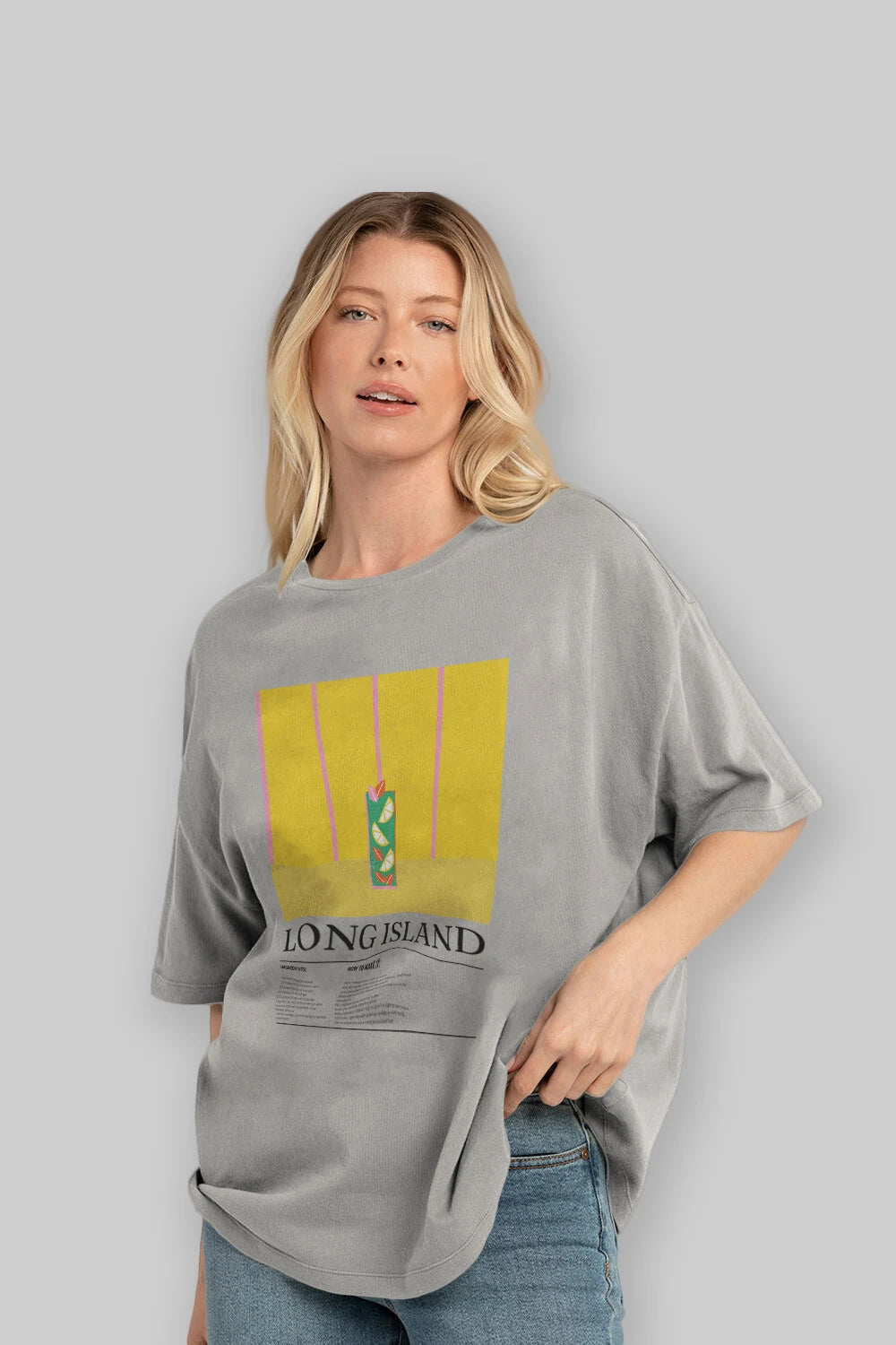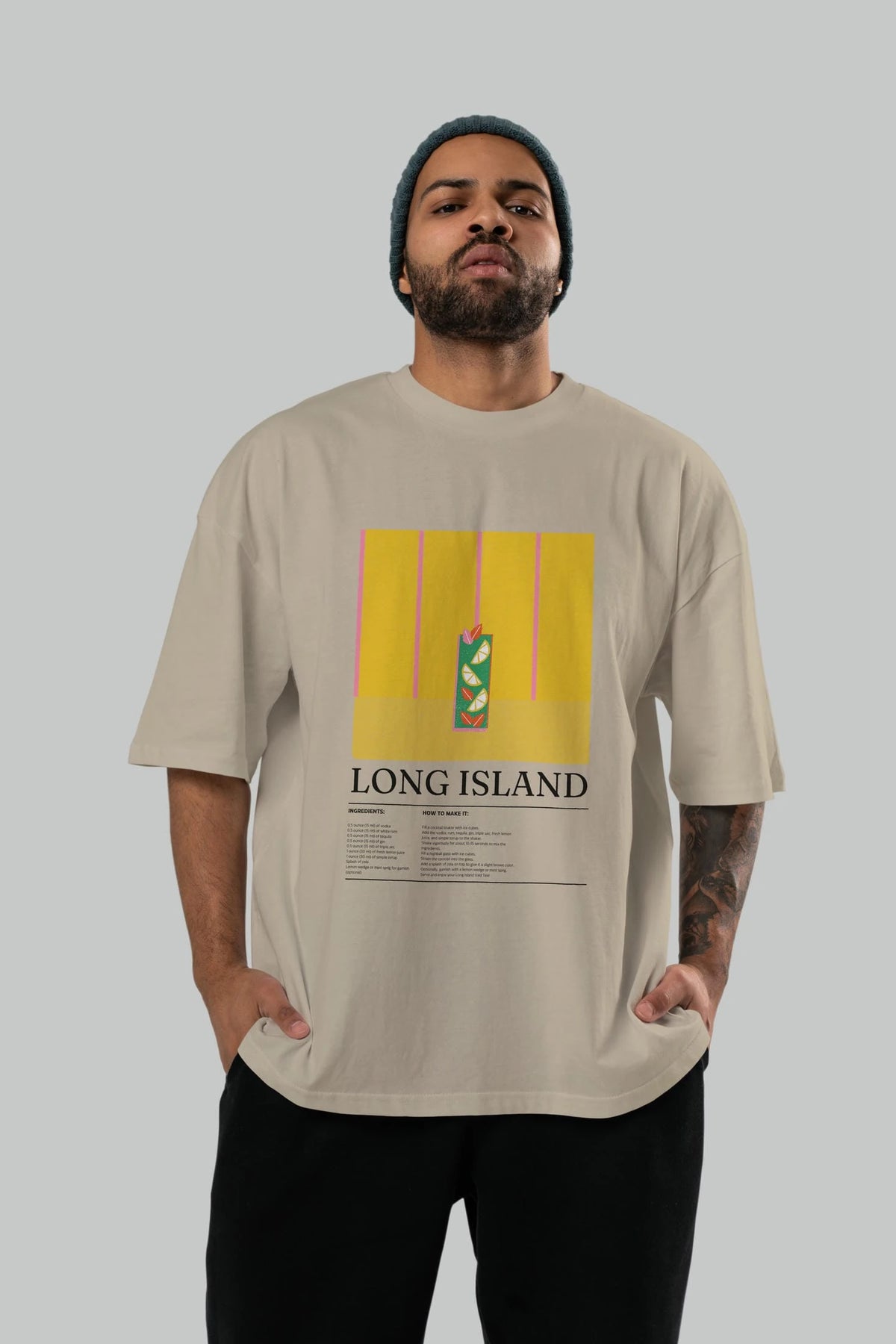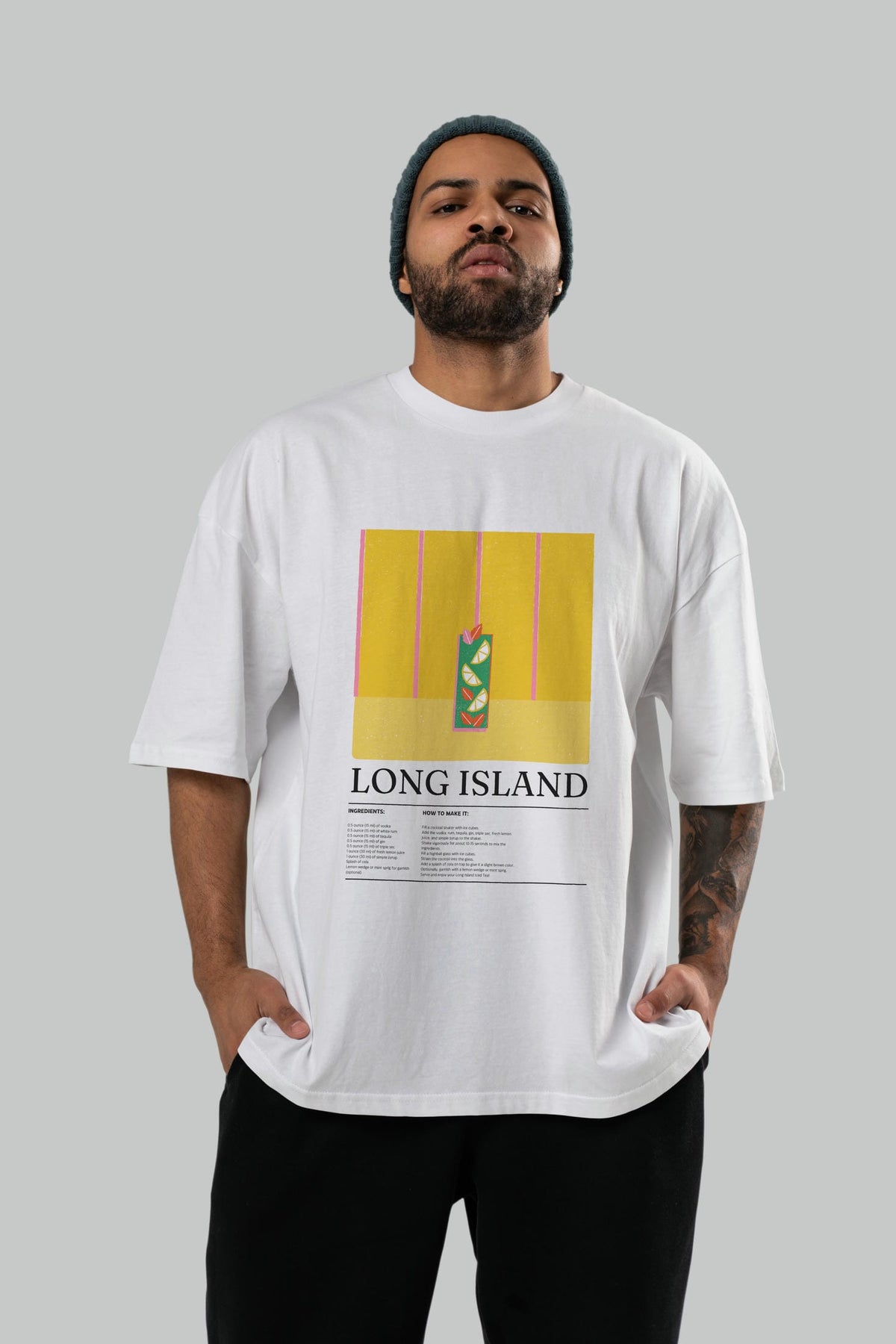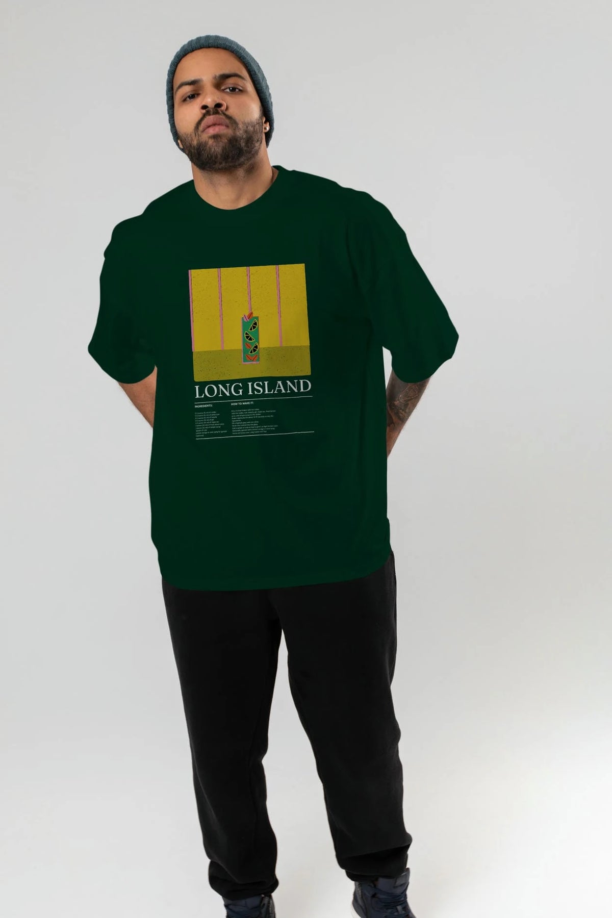Long Island Kokteyl Ön Baskılı Oversize t-shirt Erkek Kadın %100 Pamuk Bisiklet Yaka tişort