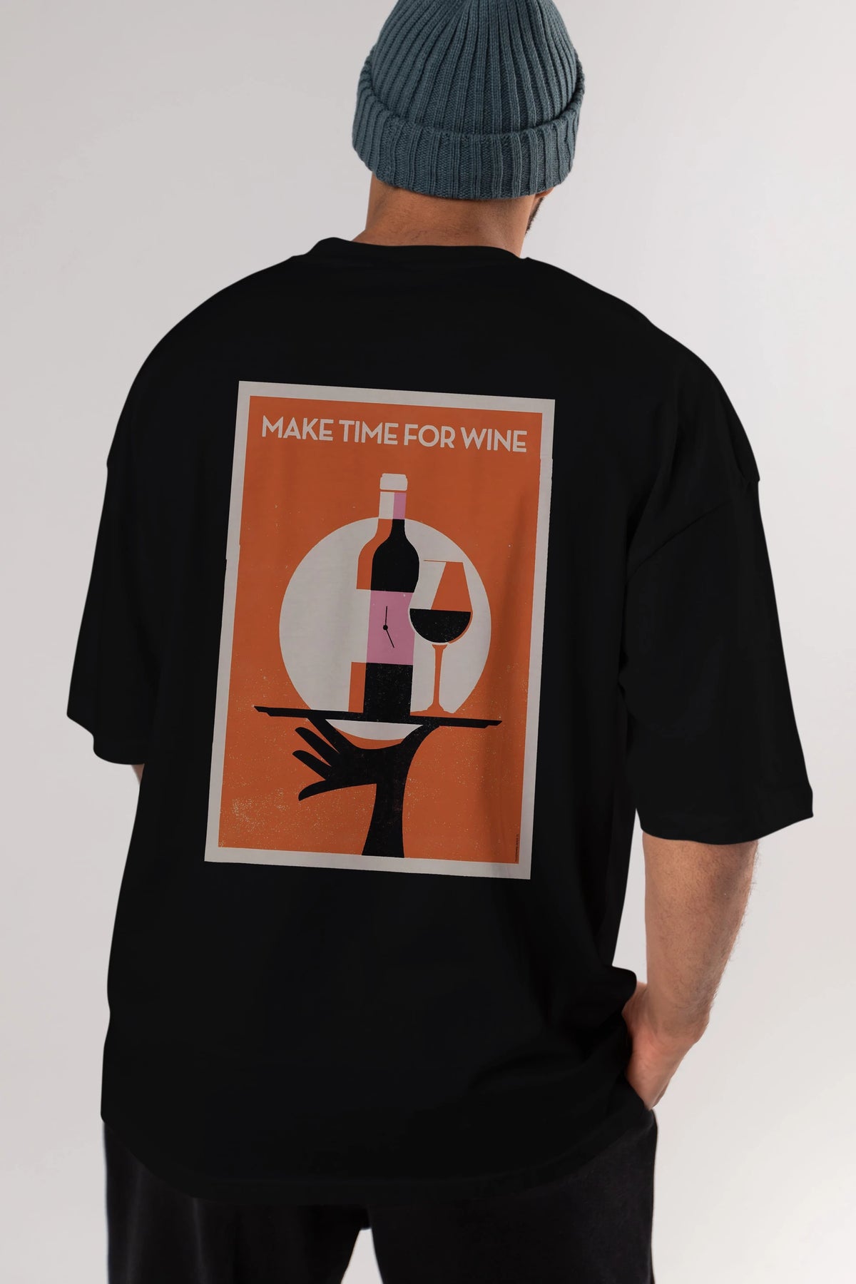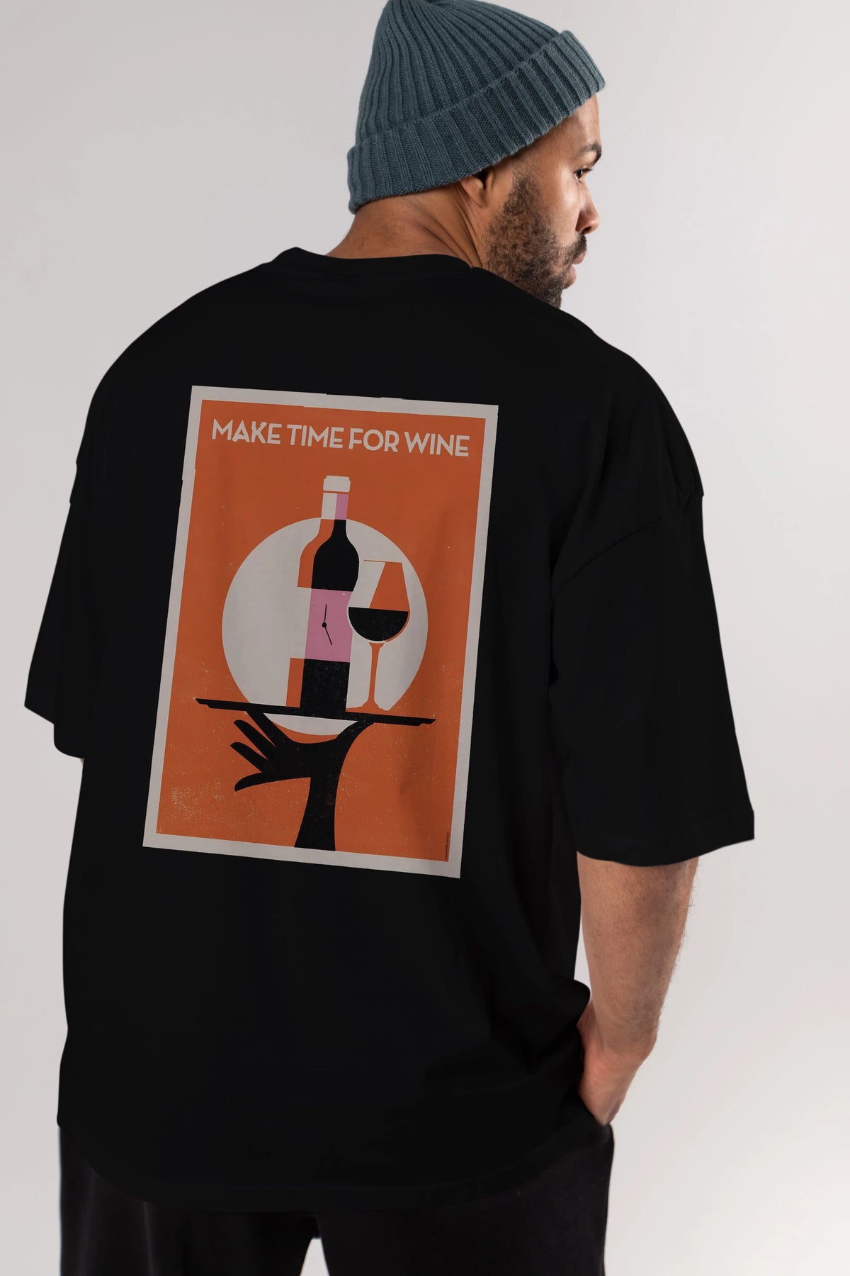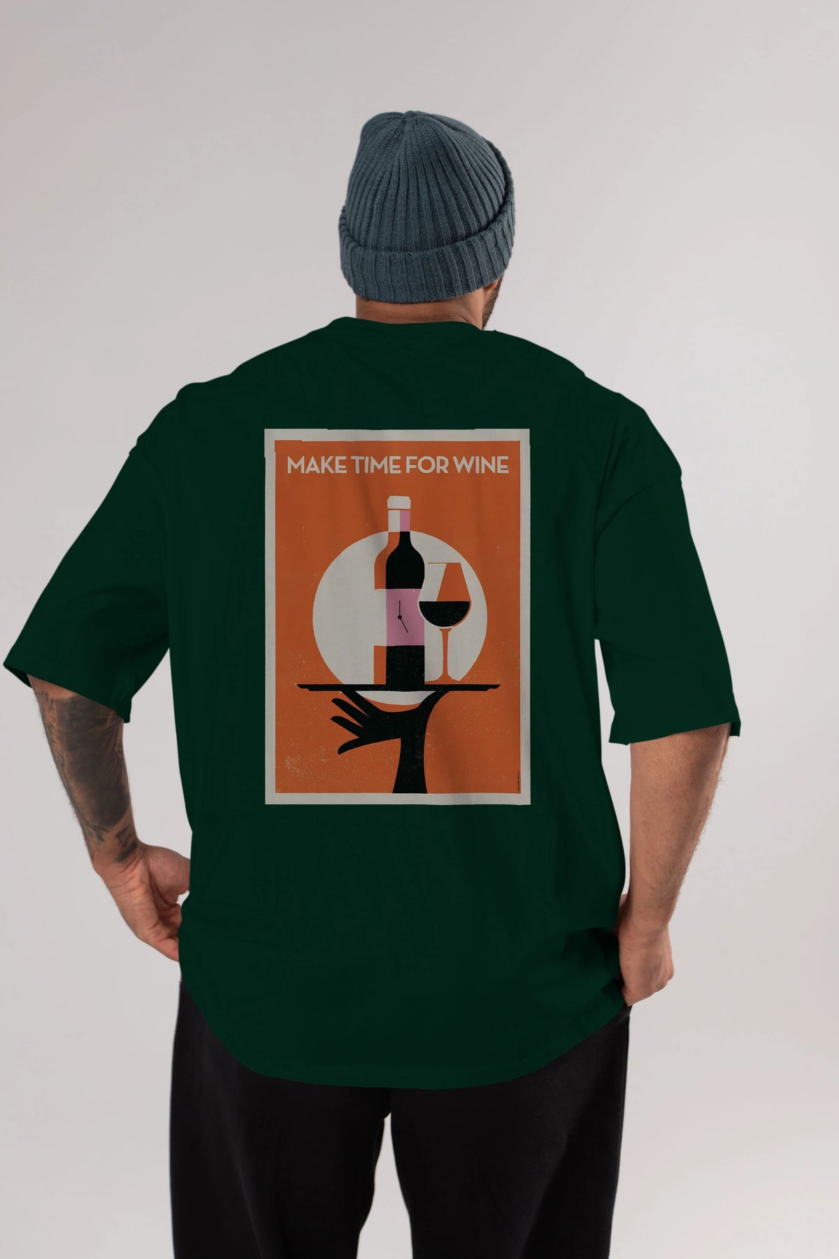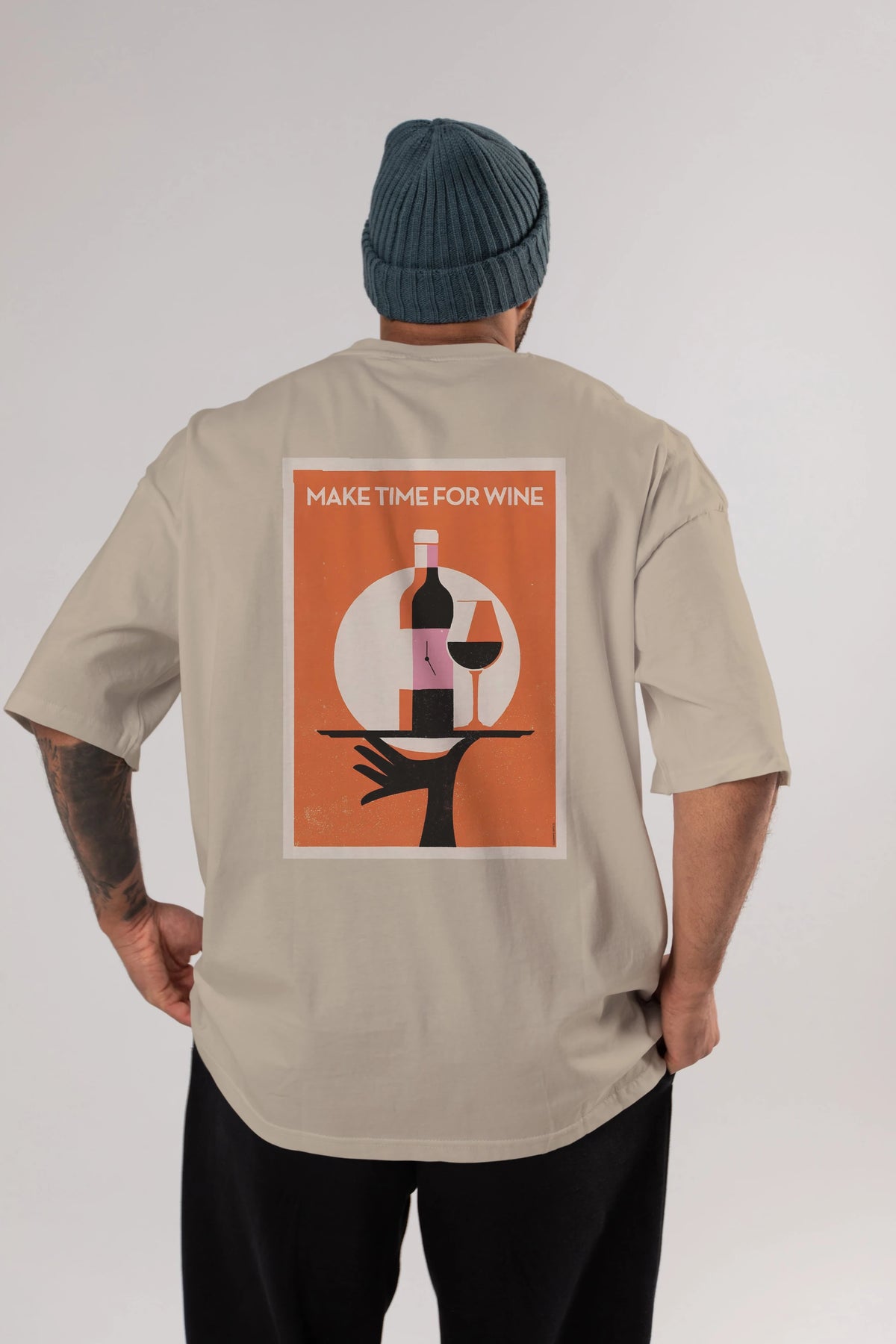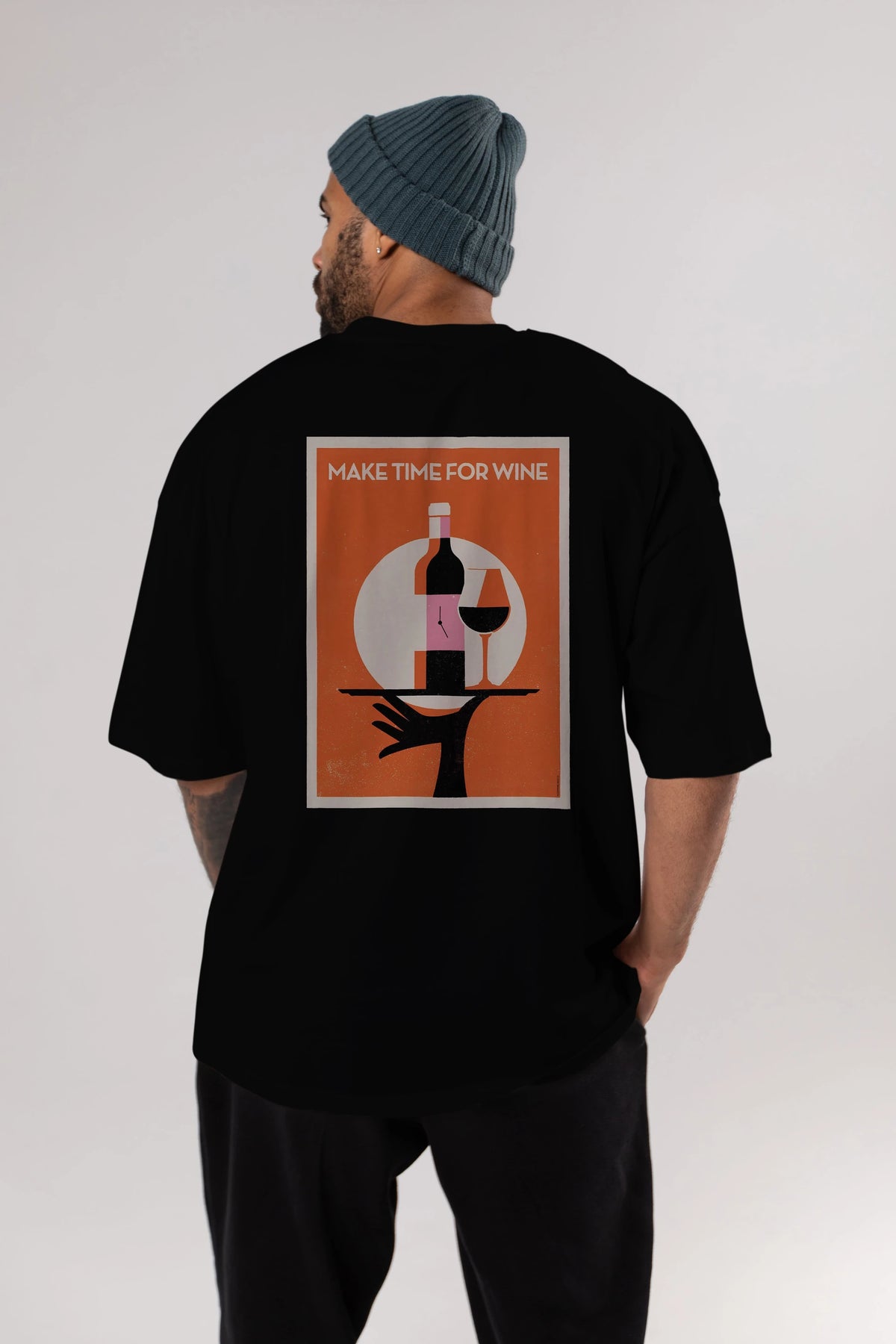 Make Time For Wine Arka Baskılı Oversize t-shirt Erkek Kadın Unisex %100 Pamuk Bisiklet Yaka tişort