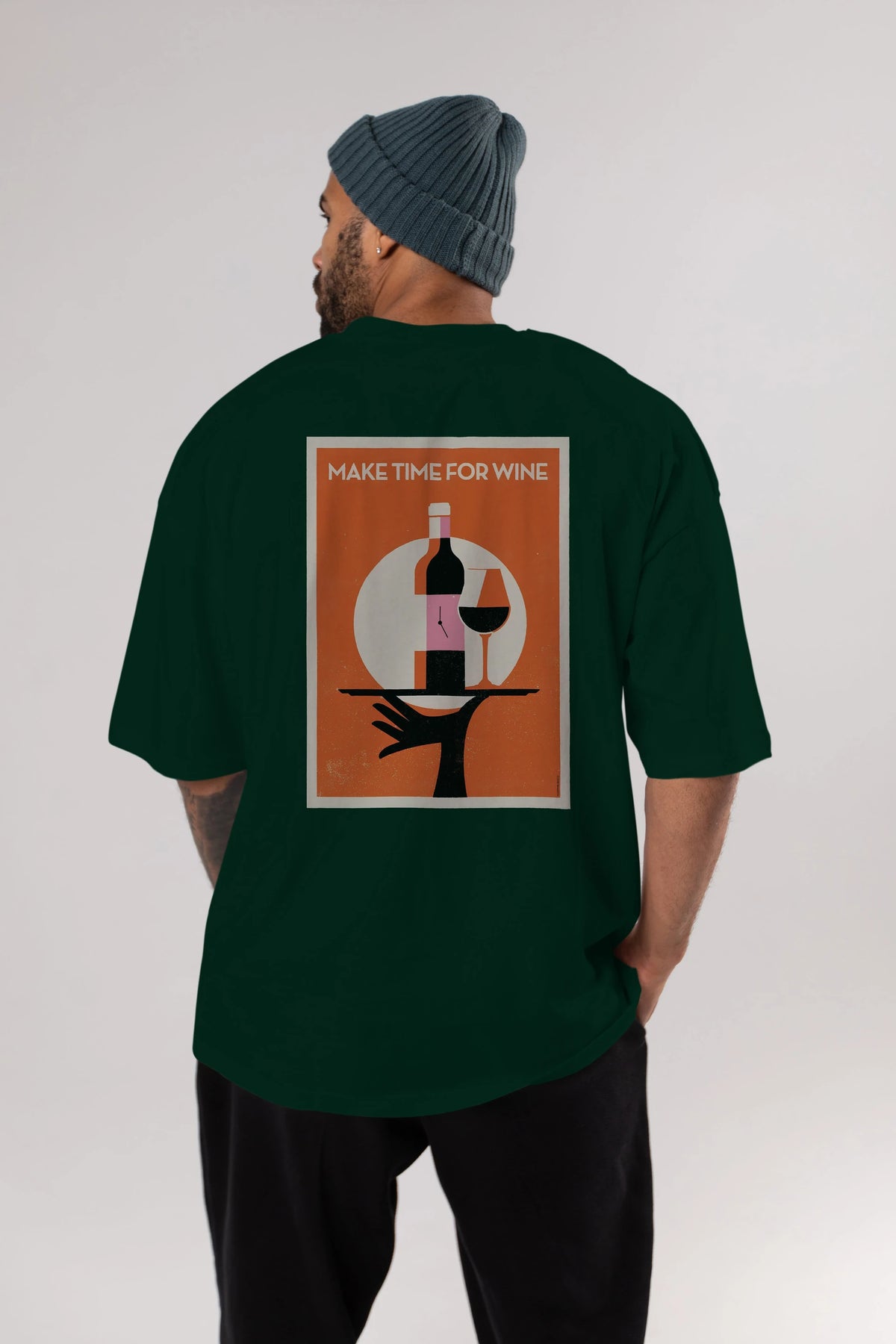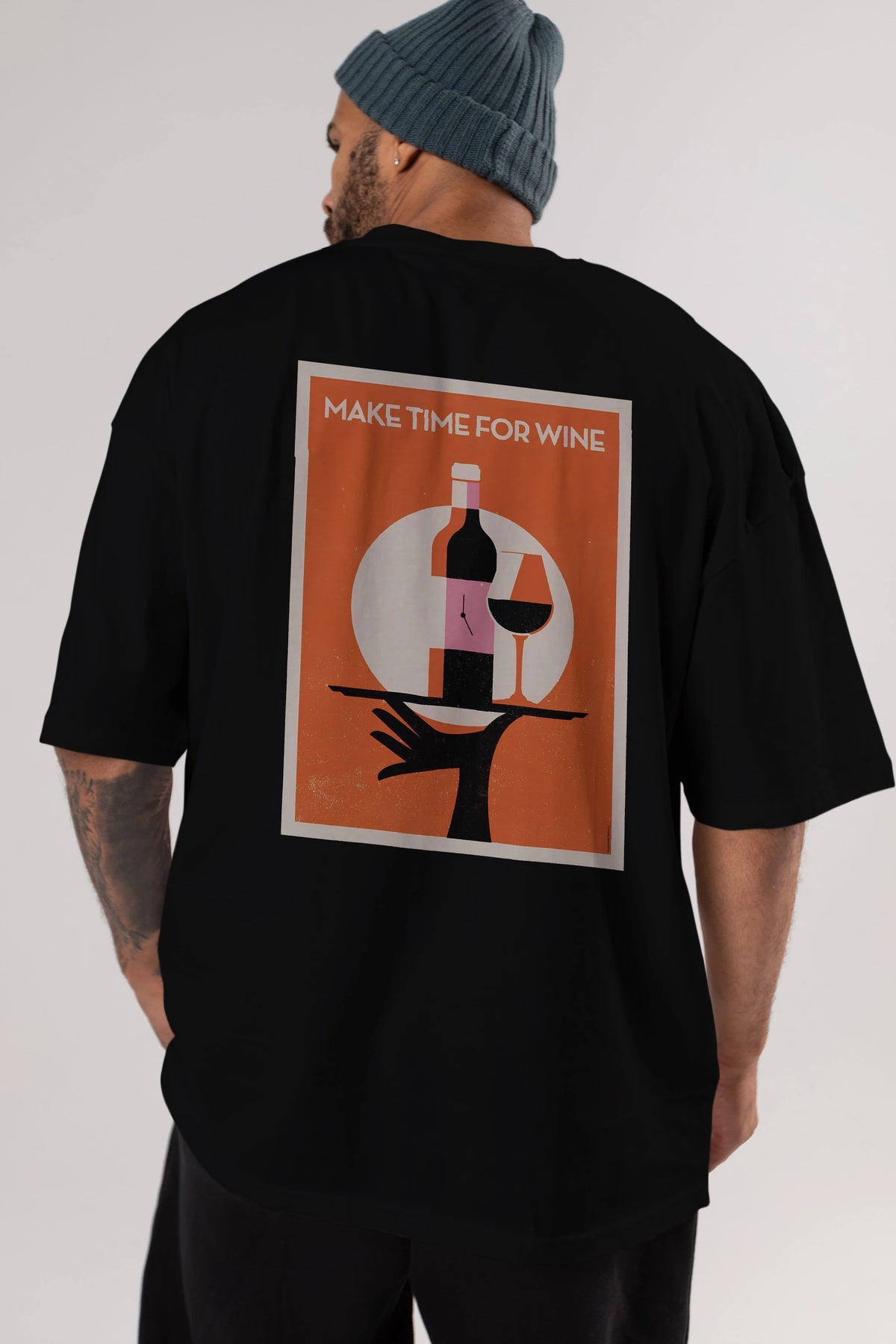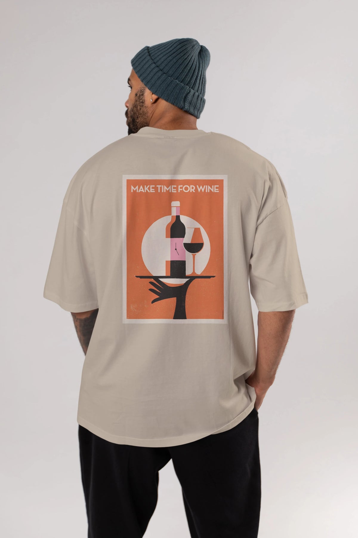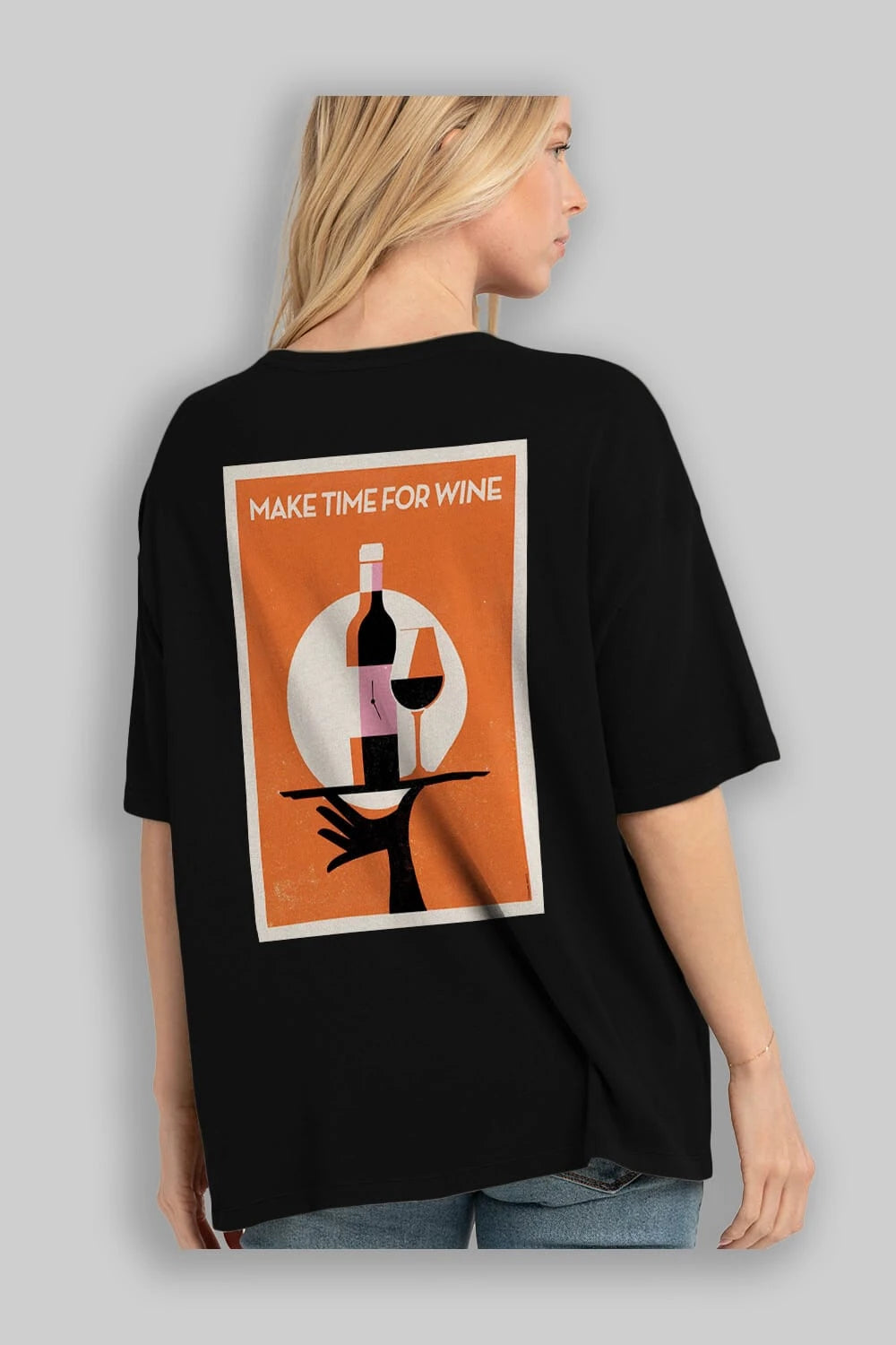 Make Time For Wine Arka Baskılı Oversize t-shirt Erkek Kadın Unisex %100 Pamuk Bisiklet Yaka tişort