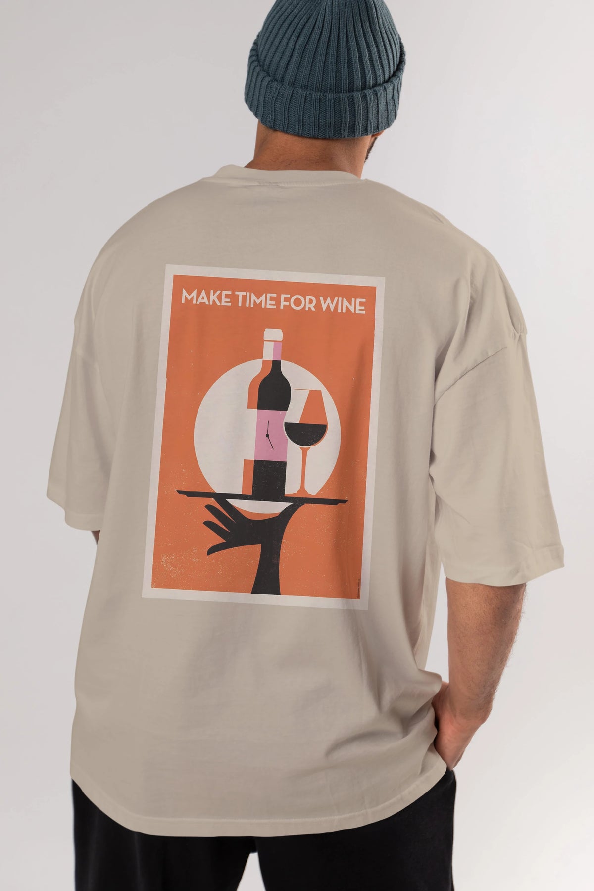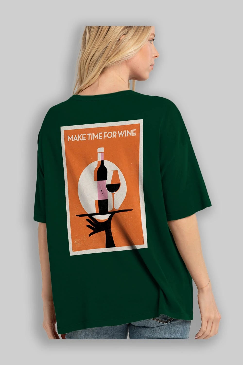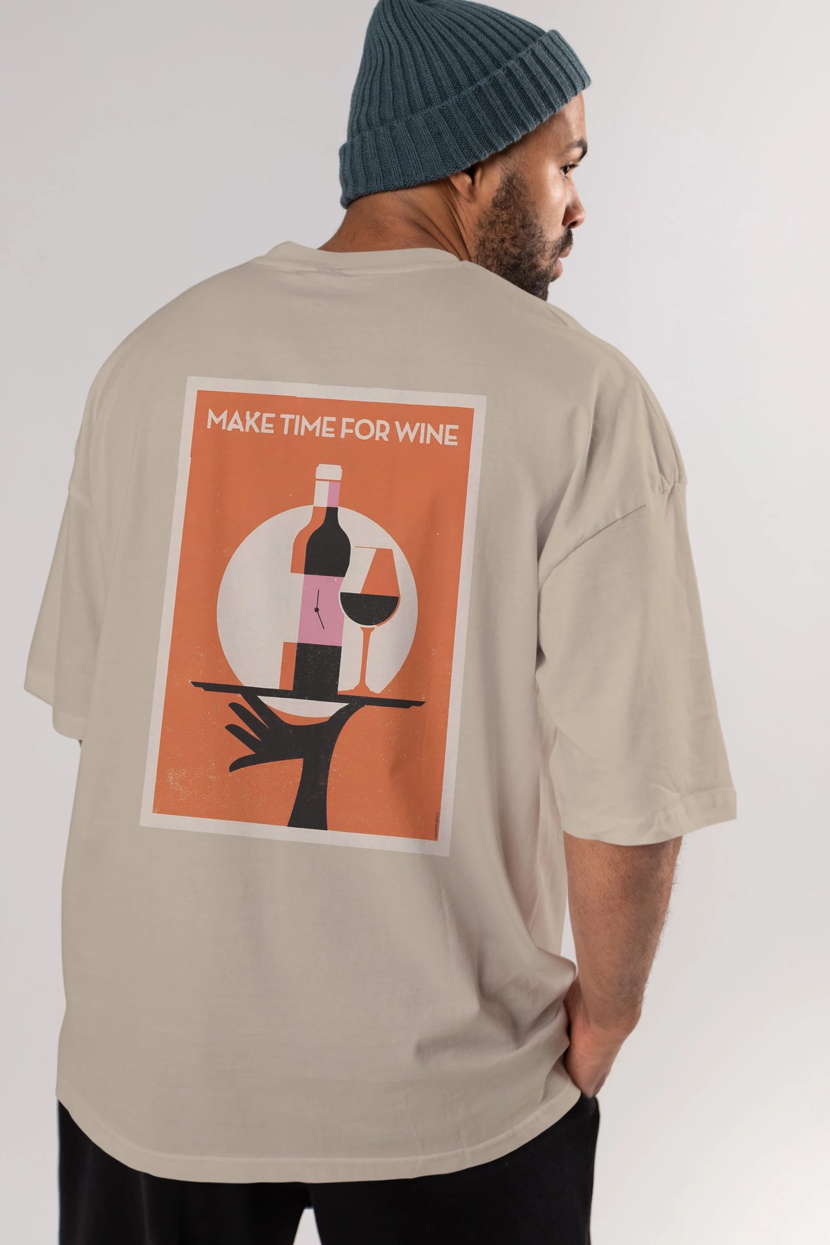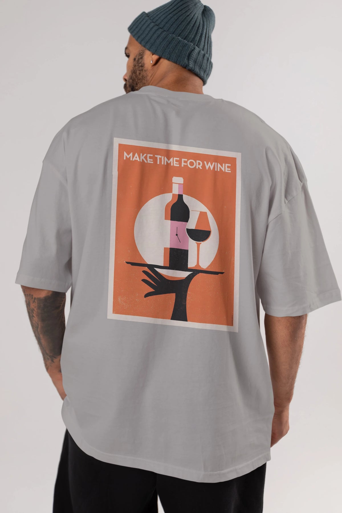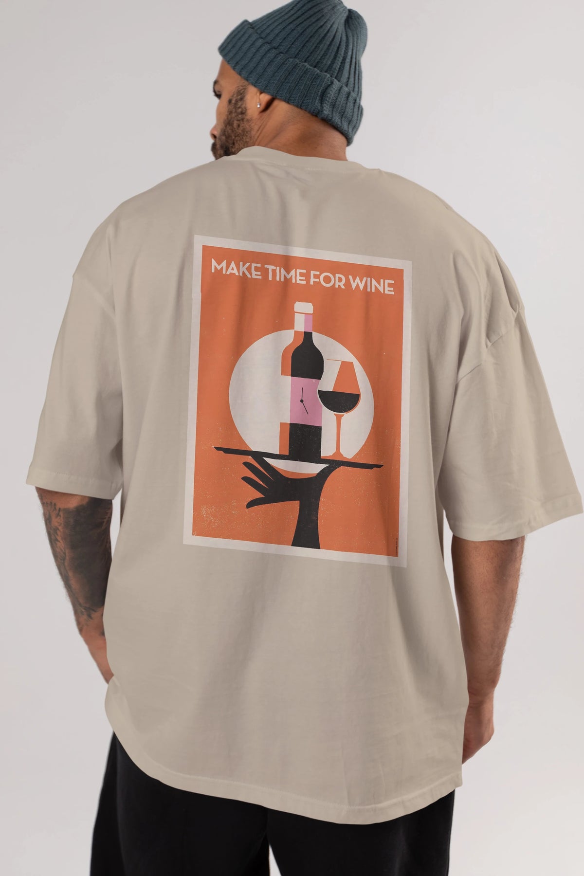 Make Time For Wine Arka Baskılı Oversize t-shirt Erkek Kadın Unisex %100 Pamuk Bisiklet Yaka tişort