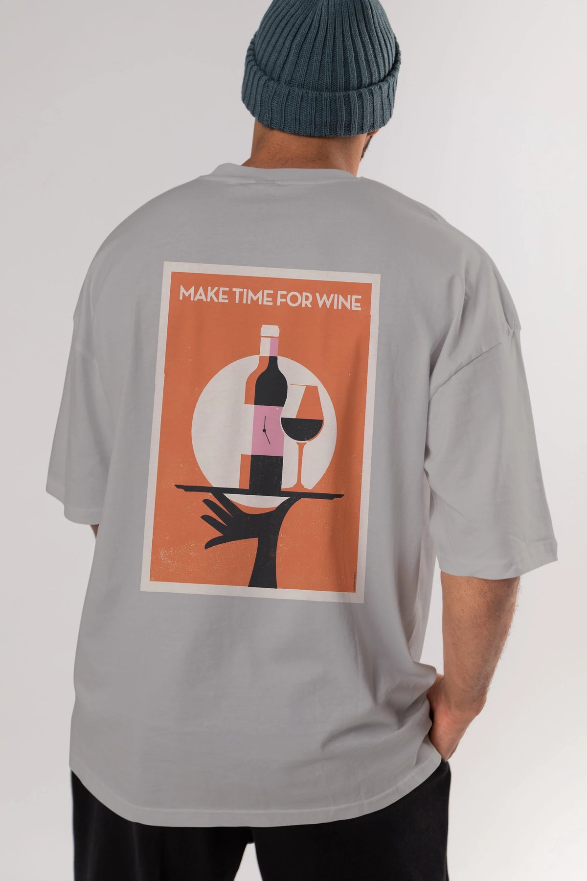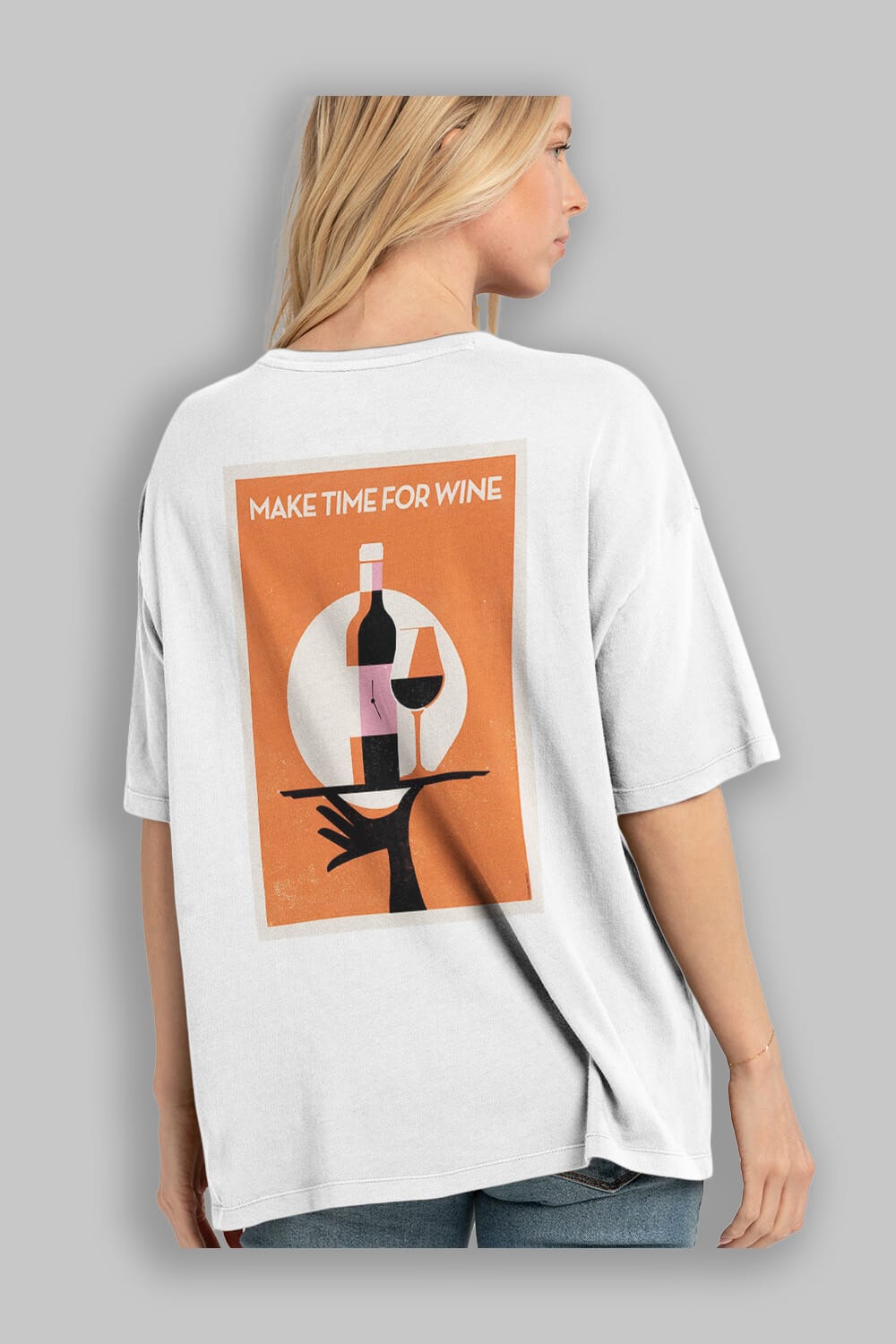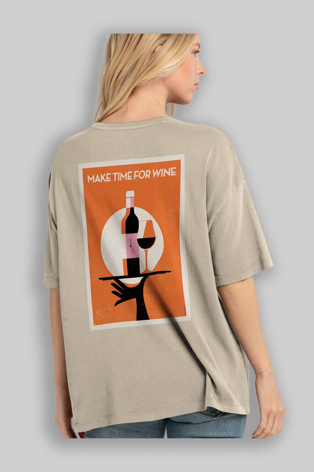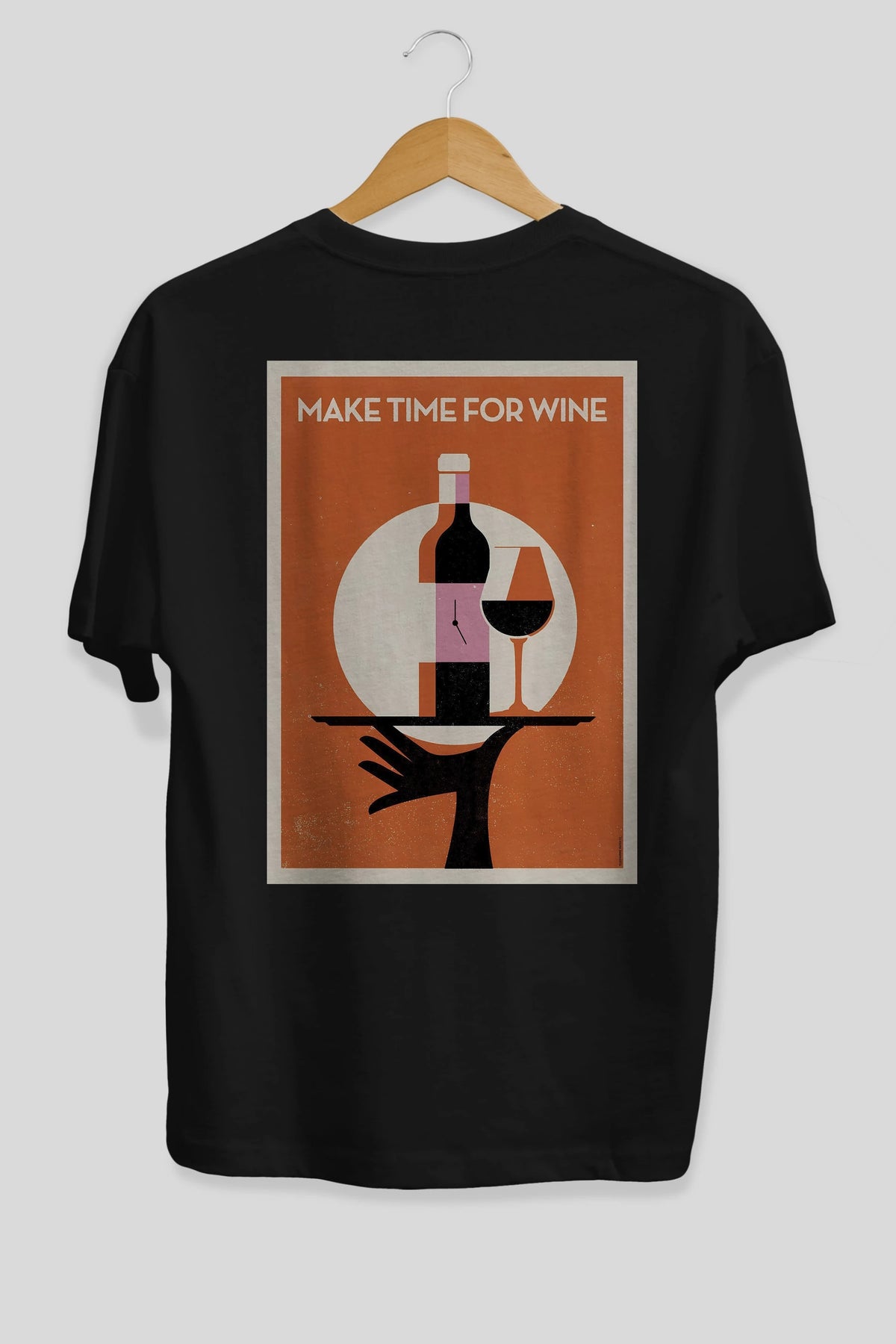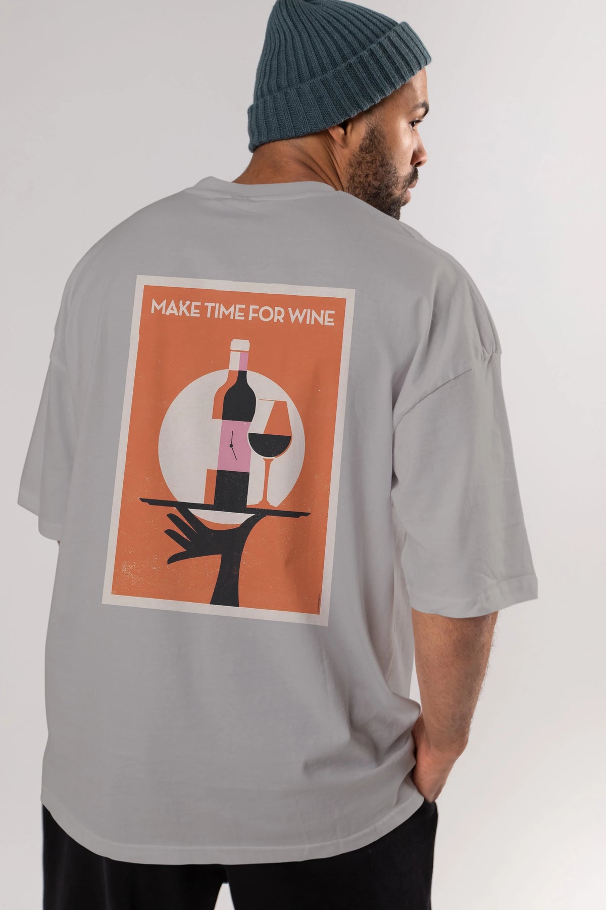 Make Time For Wine Arka Baskılı Oversize t-shirt Erkek Kadın Unisex %100 Pamuk Bisiklet Yaka tişort