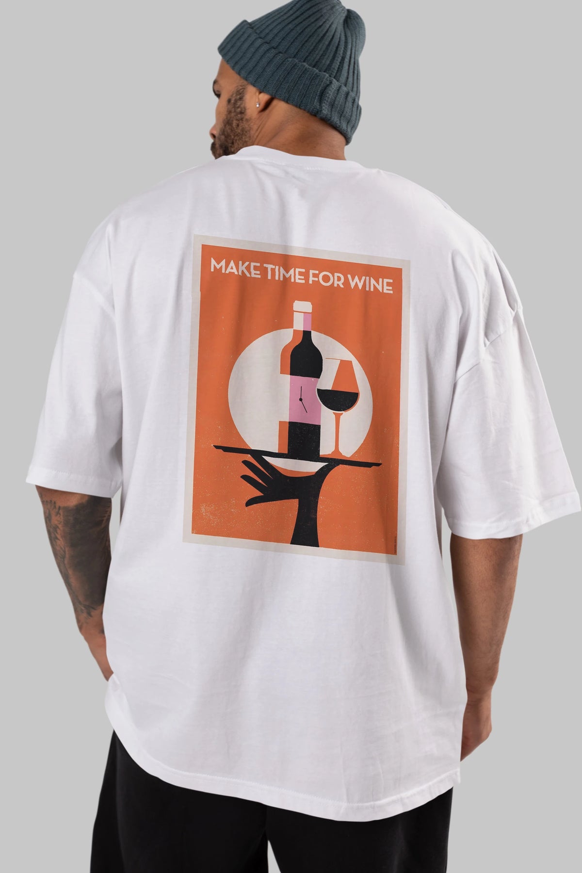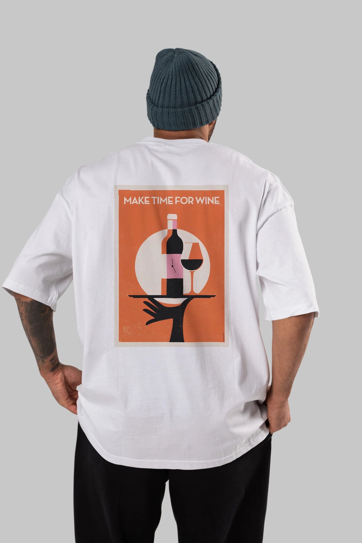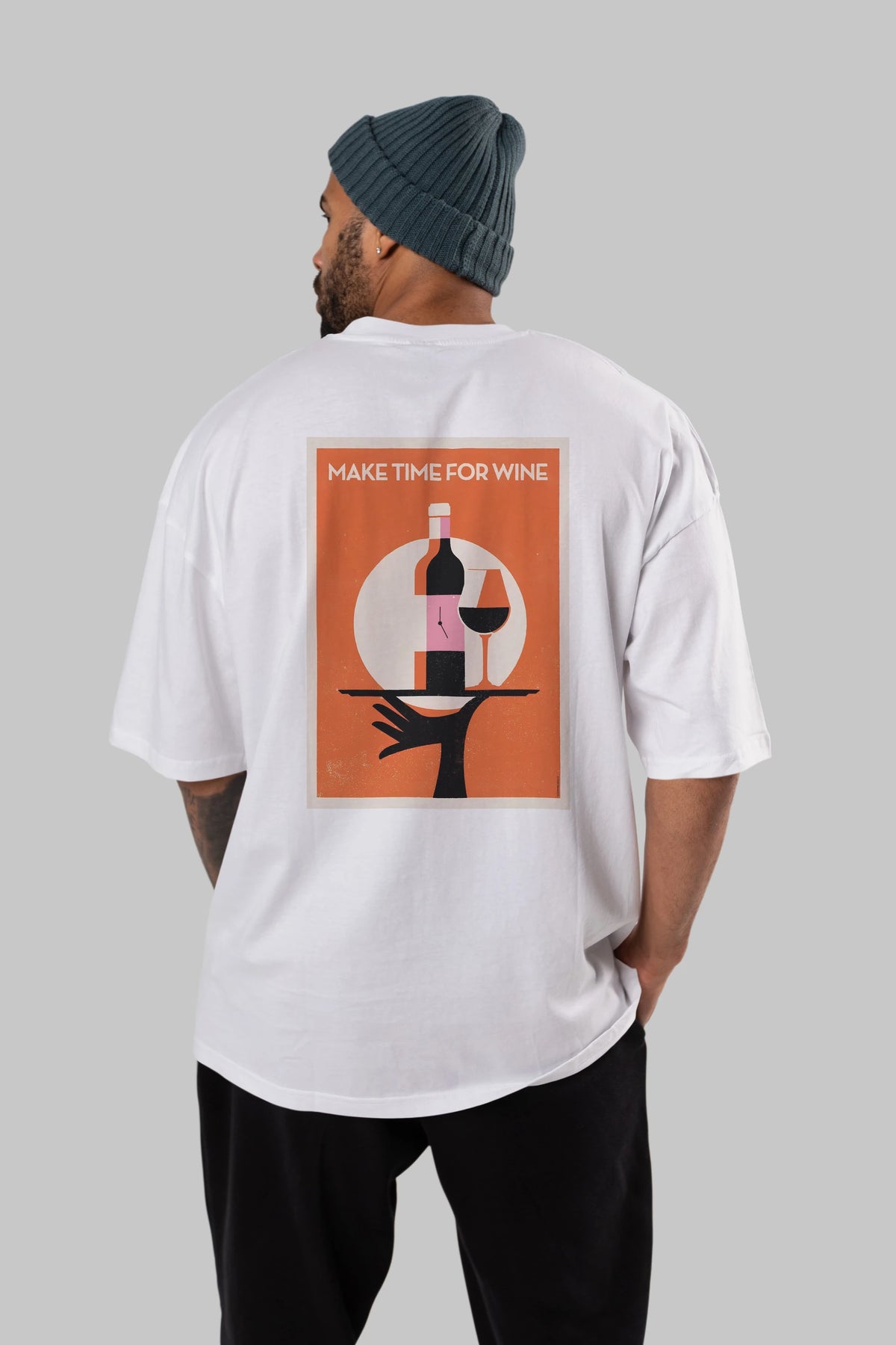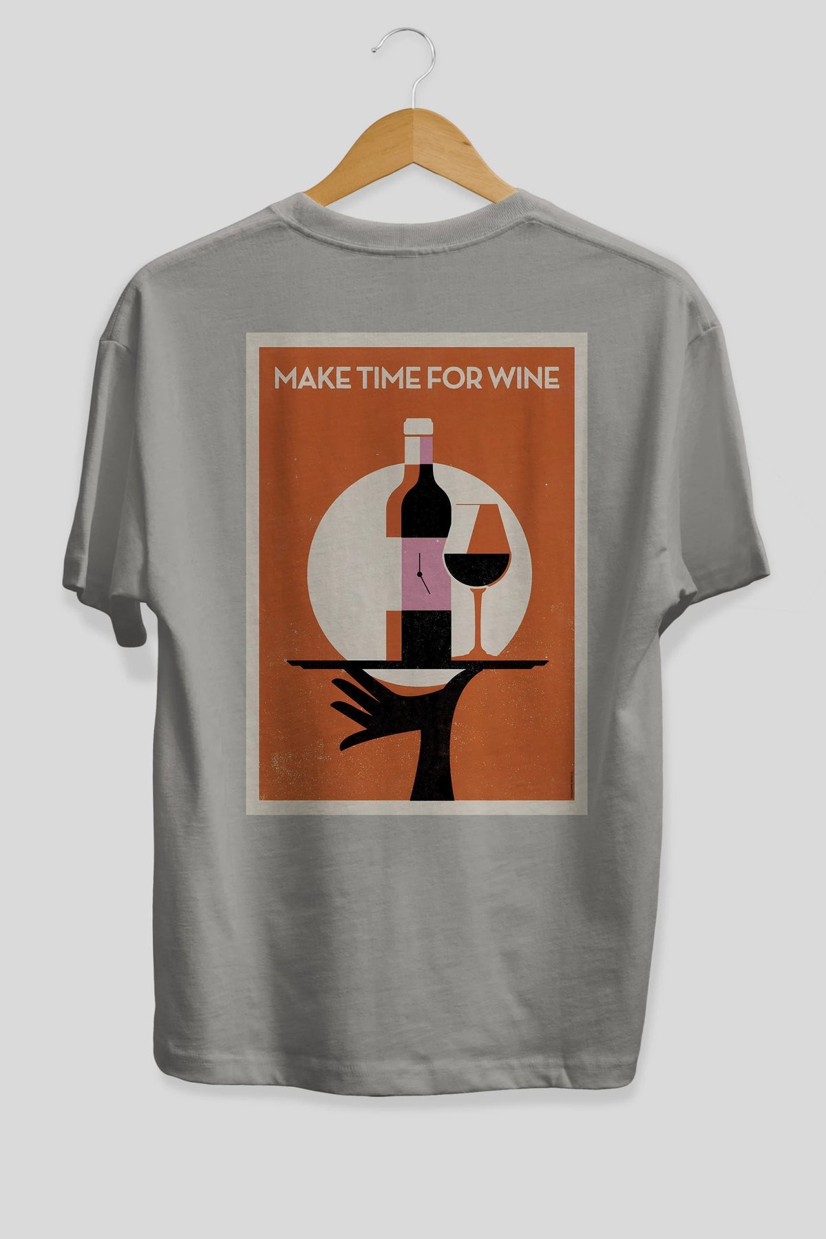 Make Time For Wine Arka Baskılı Oversize t-shirt Erkek Kadın Unisex %100 Pamuk Bisiklet Yaka tişort