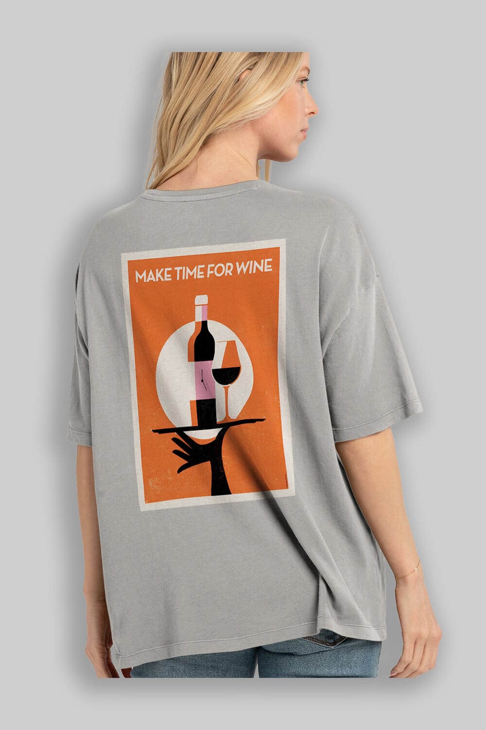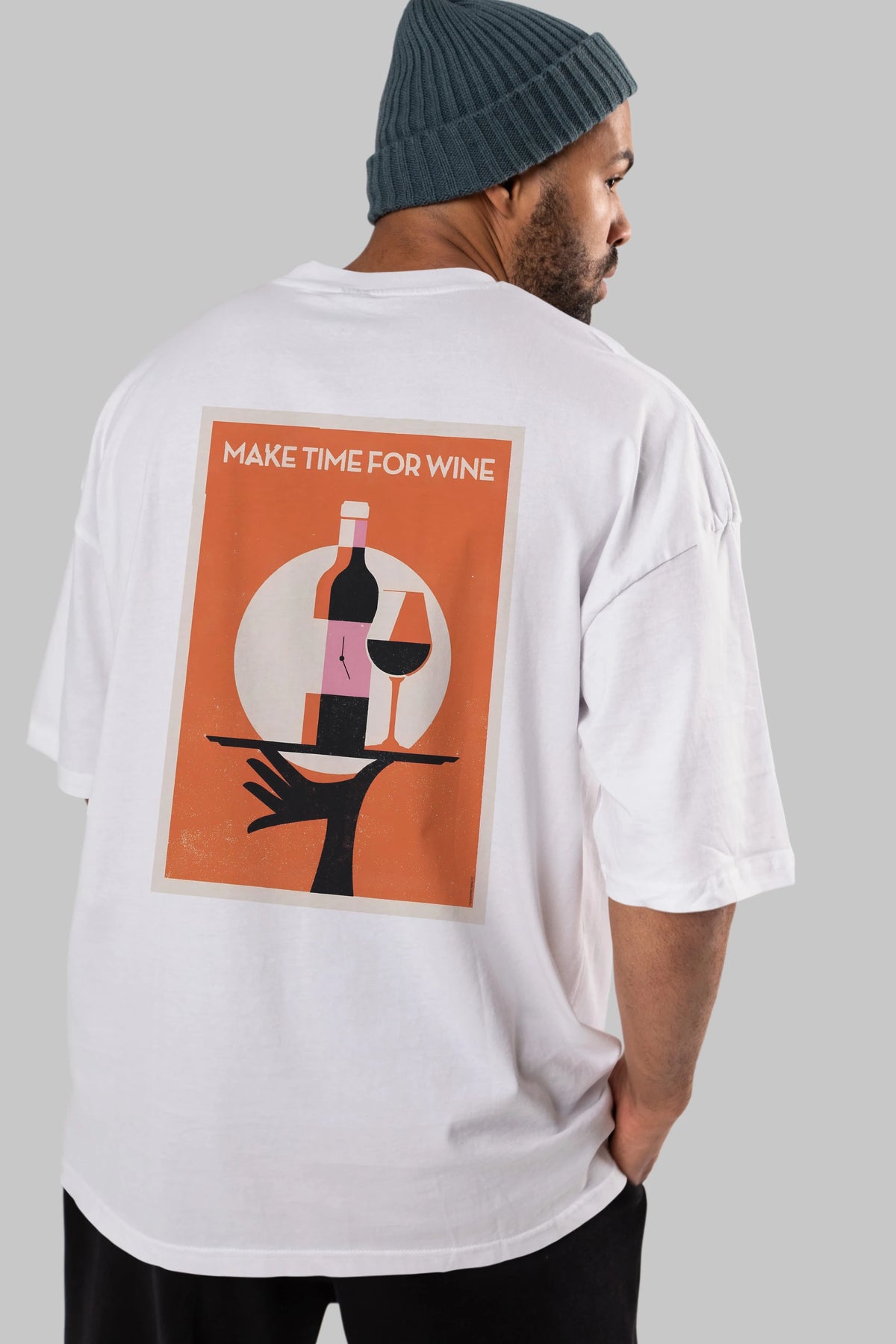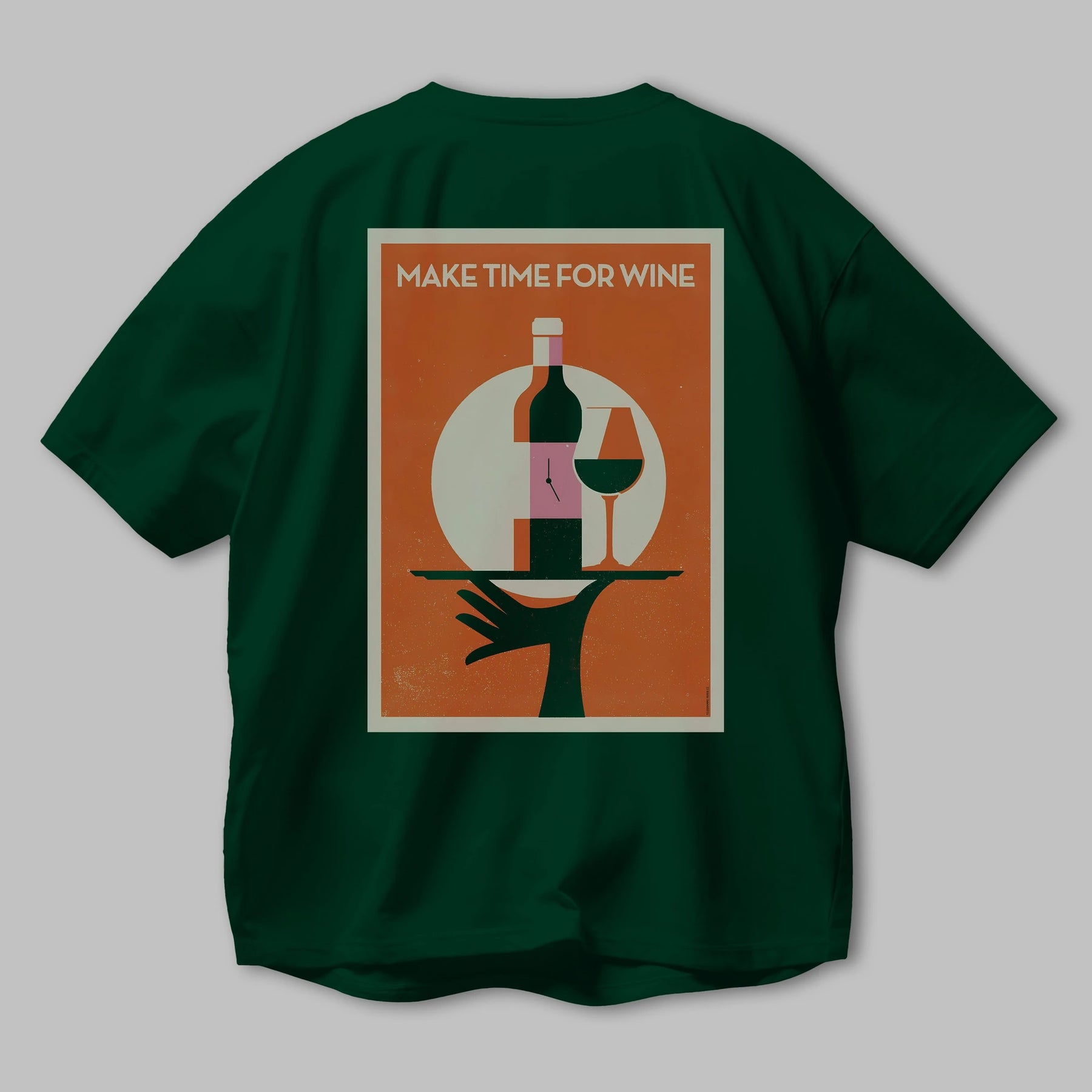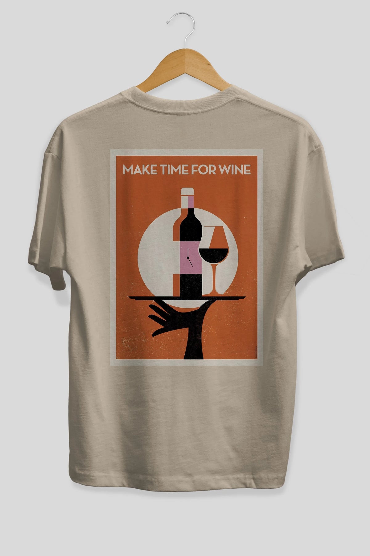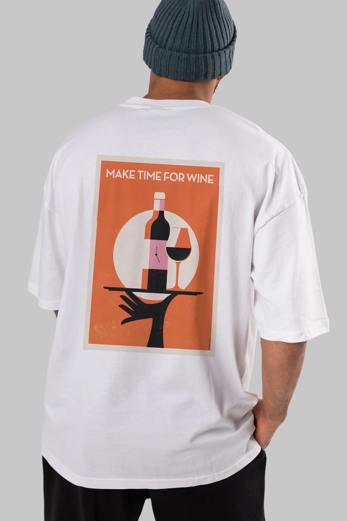 Make Time For Wine Arka Baskılı Oversize t-shirt Erkek Kadın Unisex %100 Pamuk Bisiklet Yaka tişort