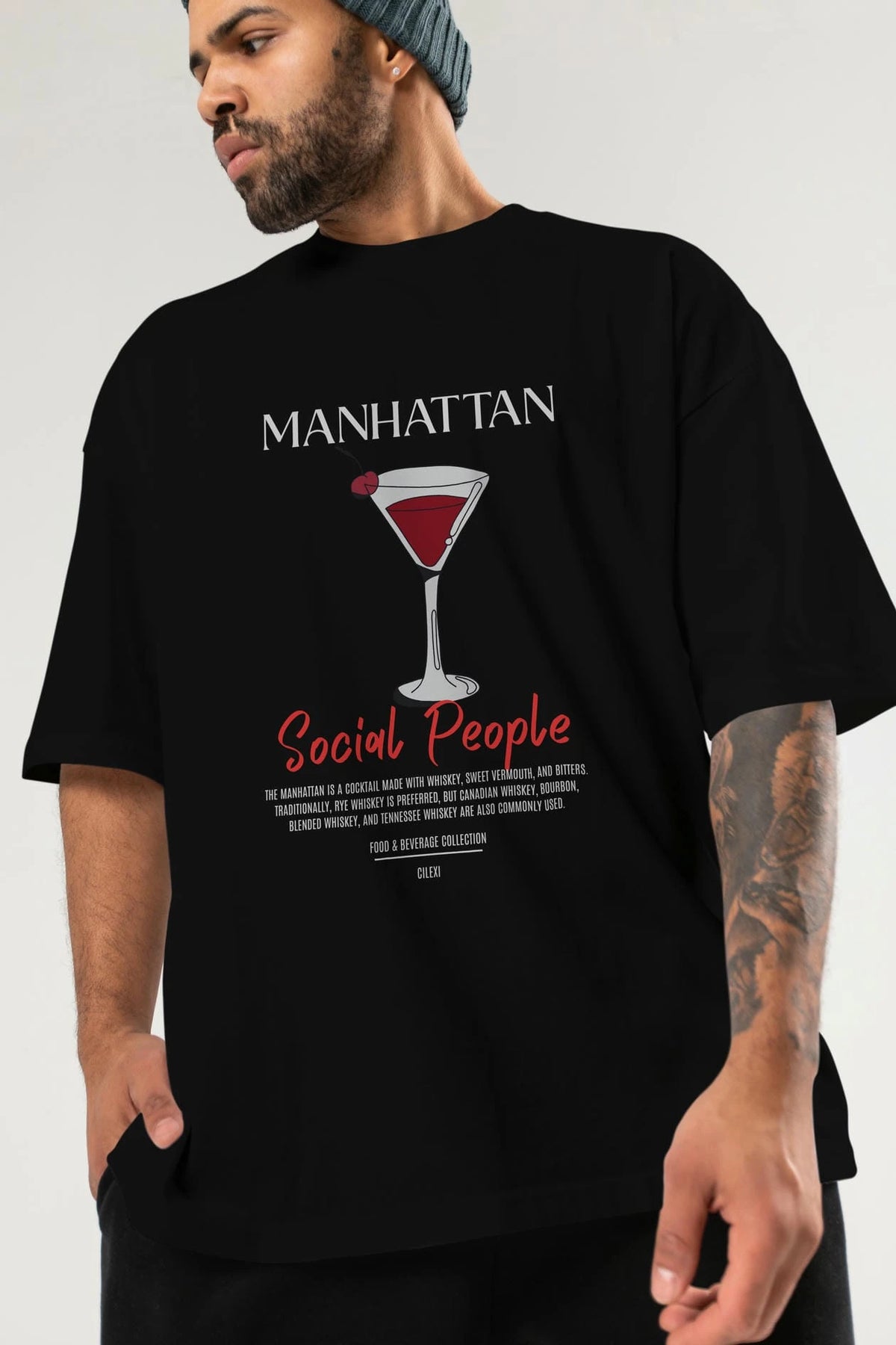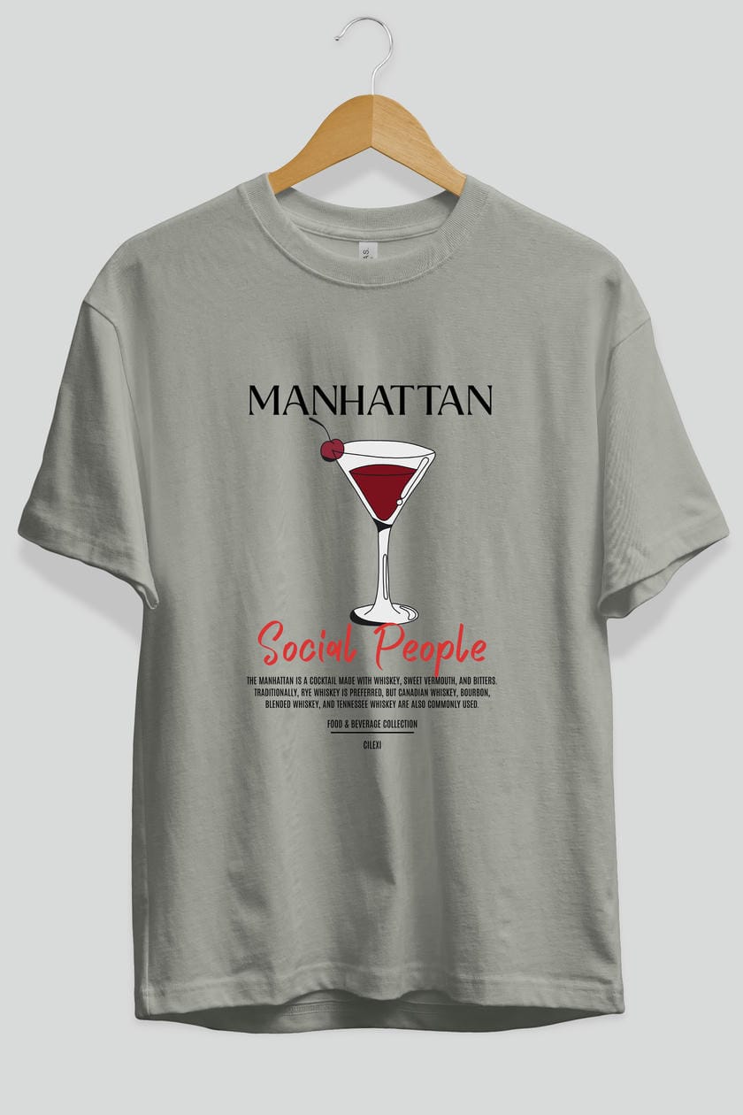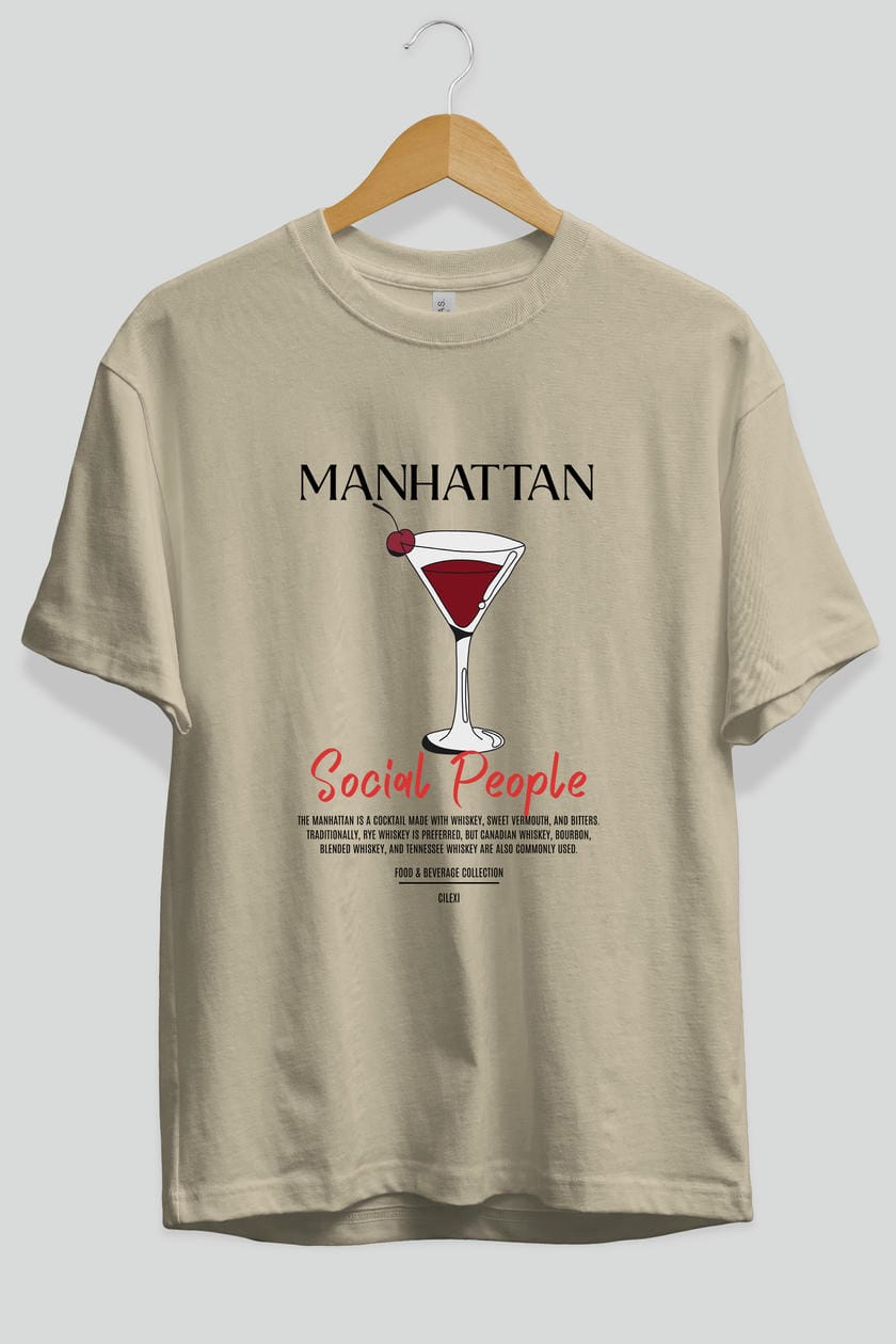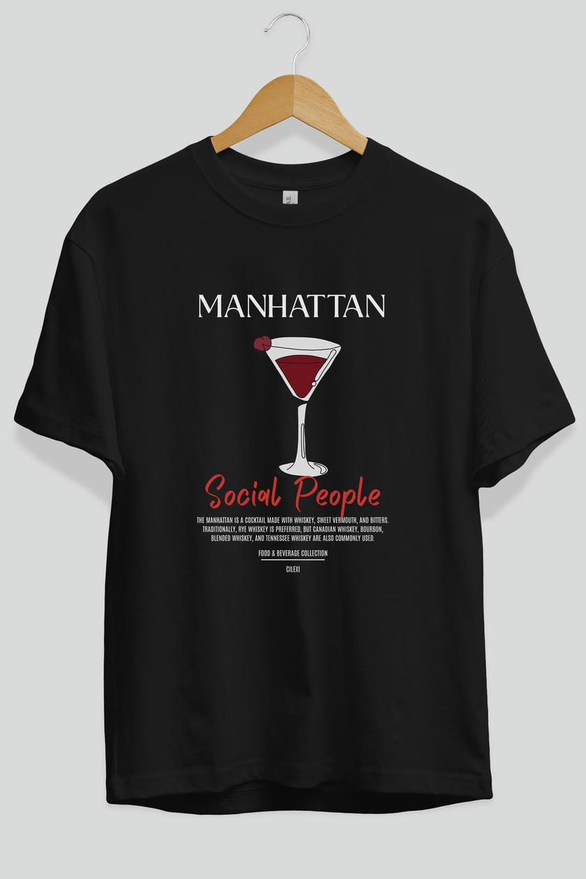 Manhattan Kokteyl Serisi ön Baskılı Oversize t-shirt Erkek Kadın %100 Pamuk Bisiklet Yaka tişort