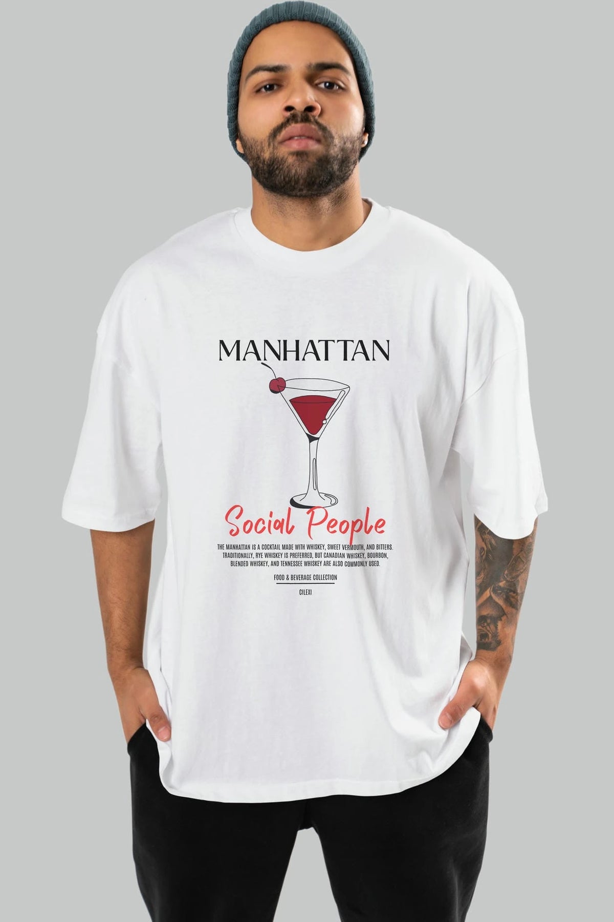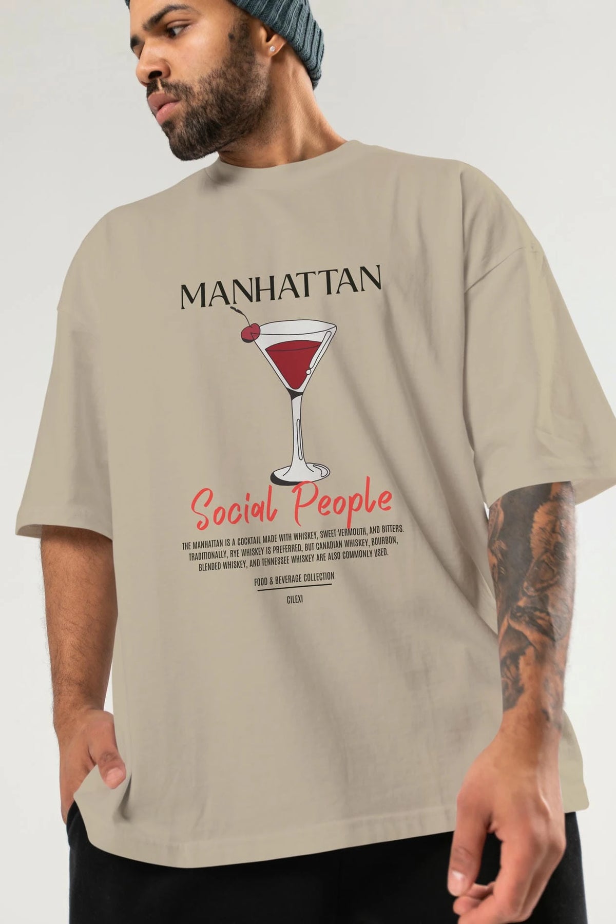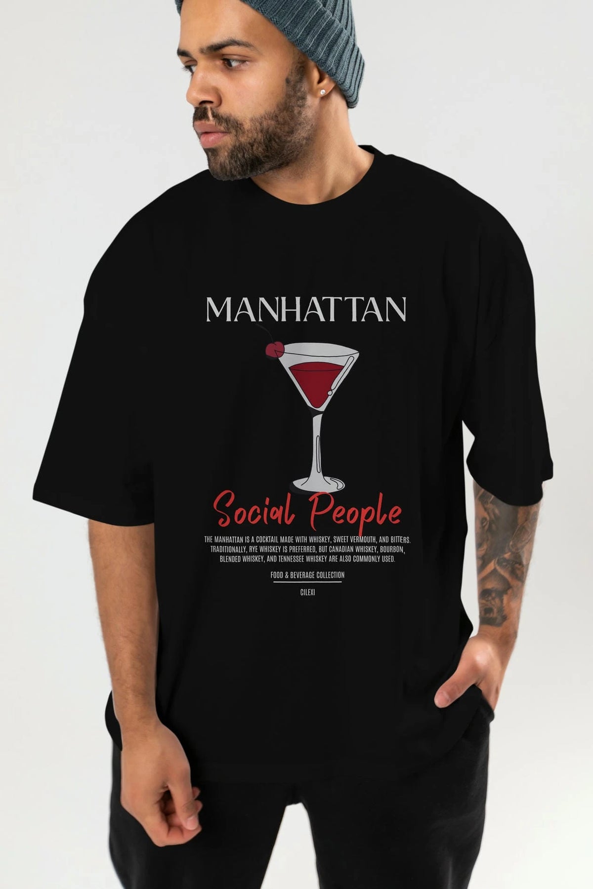 Manhattan Kokteyl Serisi ön Baskılı Oversize t-shirt Erkek Kadın %100 Pamuk Bisiklet Yaka tişort
