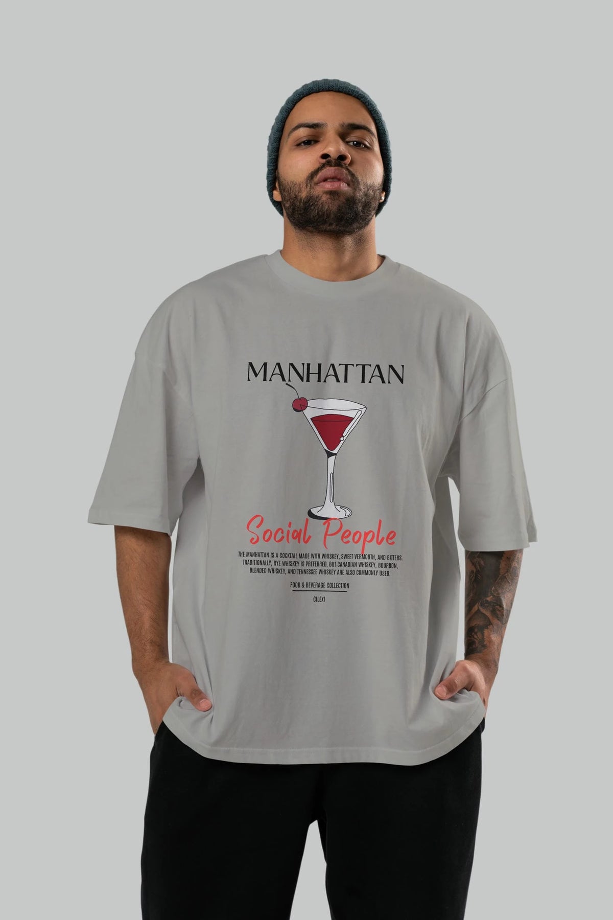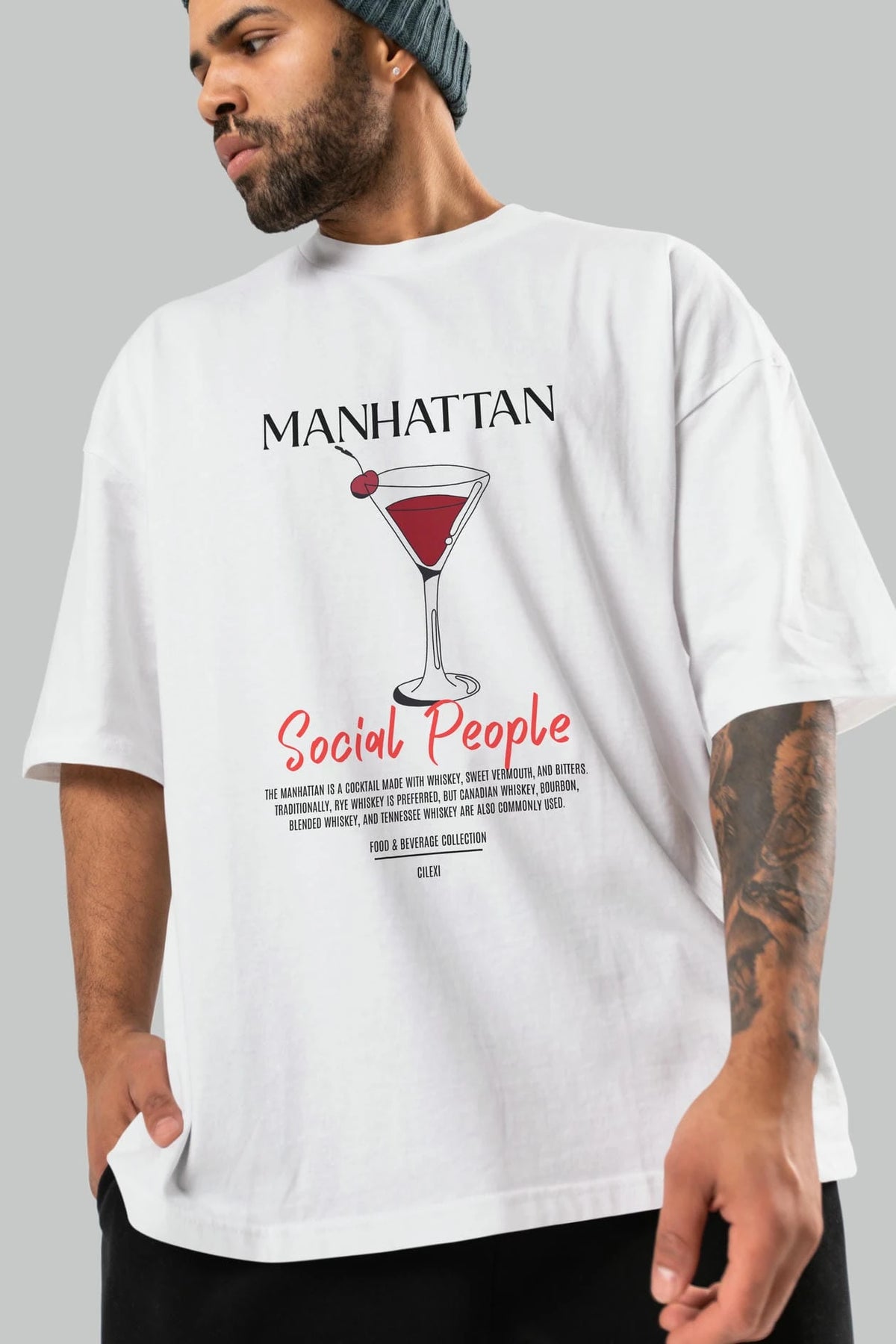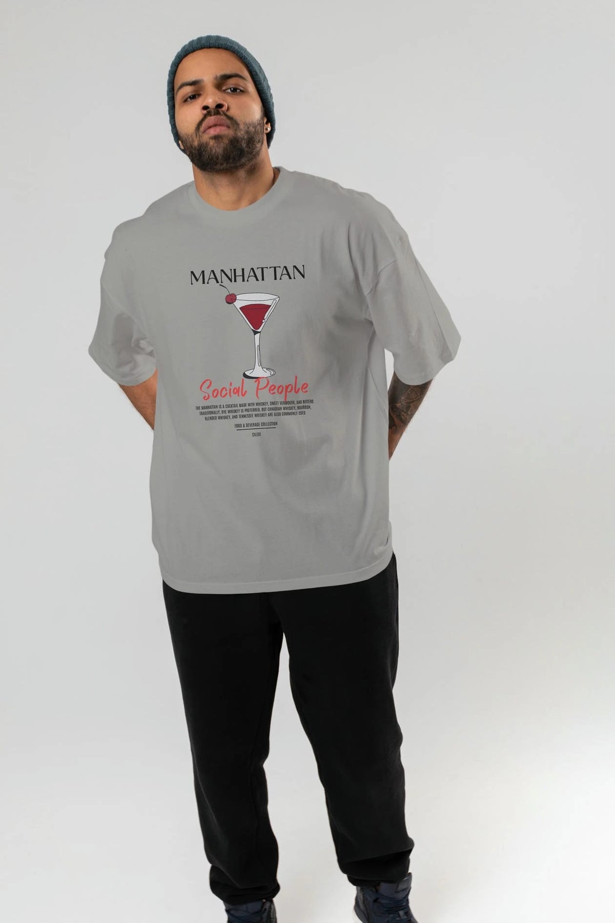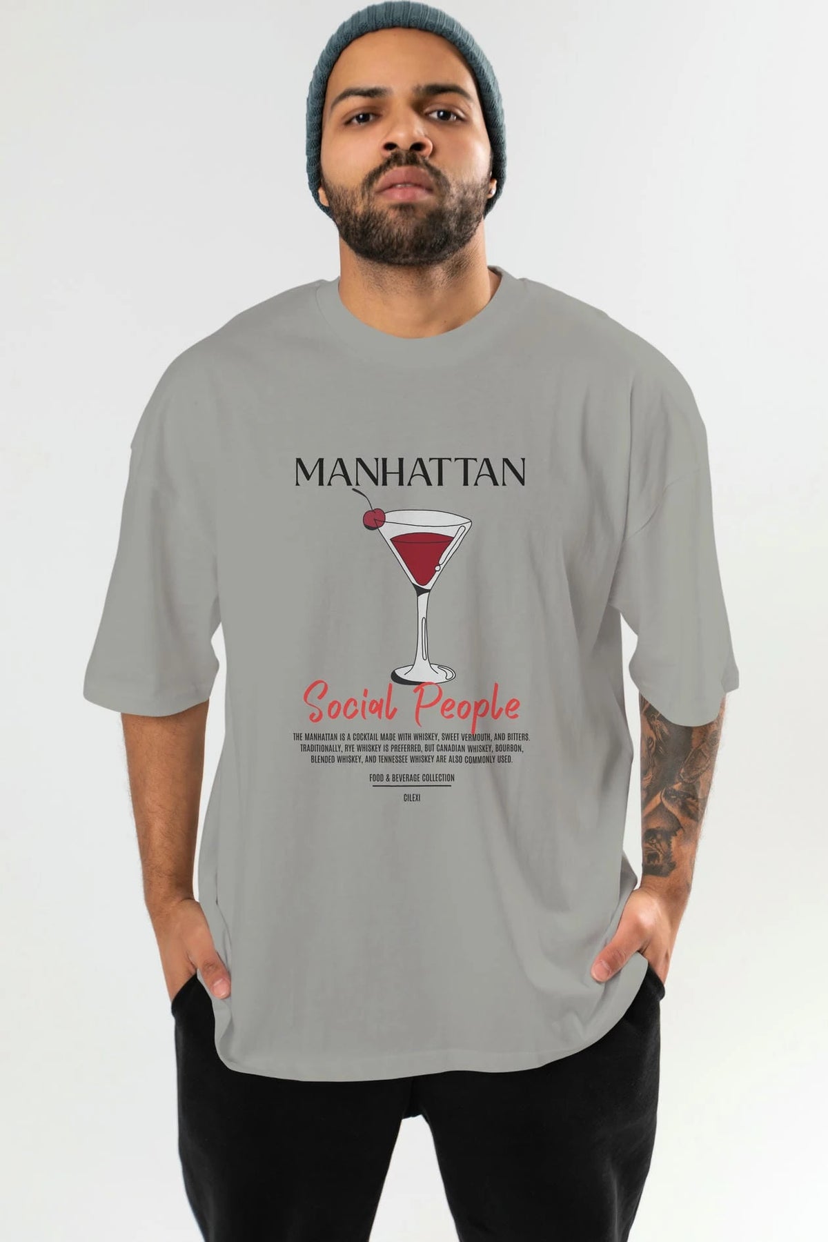 Manhattan Kokteyl Serisi ön Baskılı Oversize t-shirt Erkek Kadın %100 Pamuk Bisiklet Yaka tişort