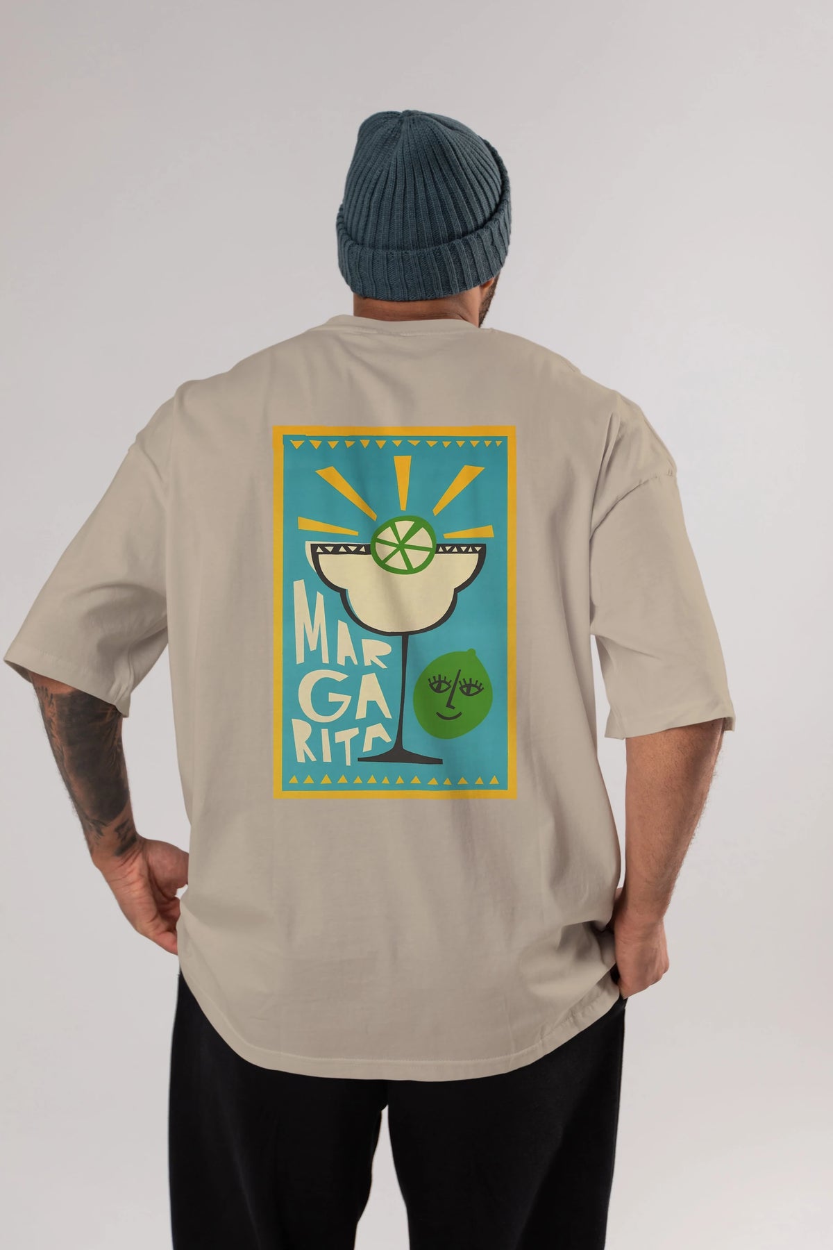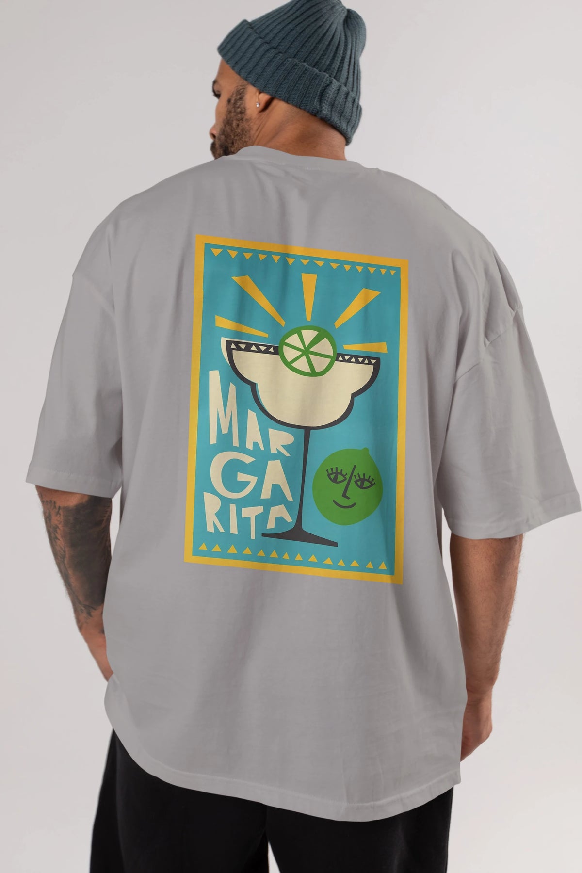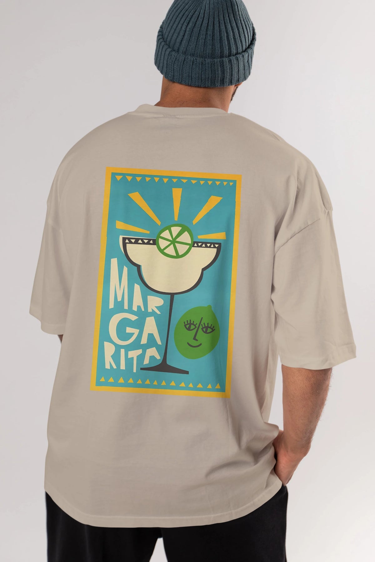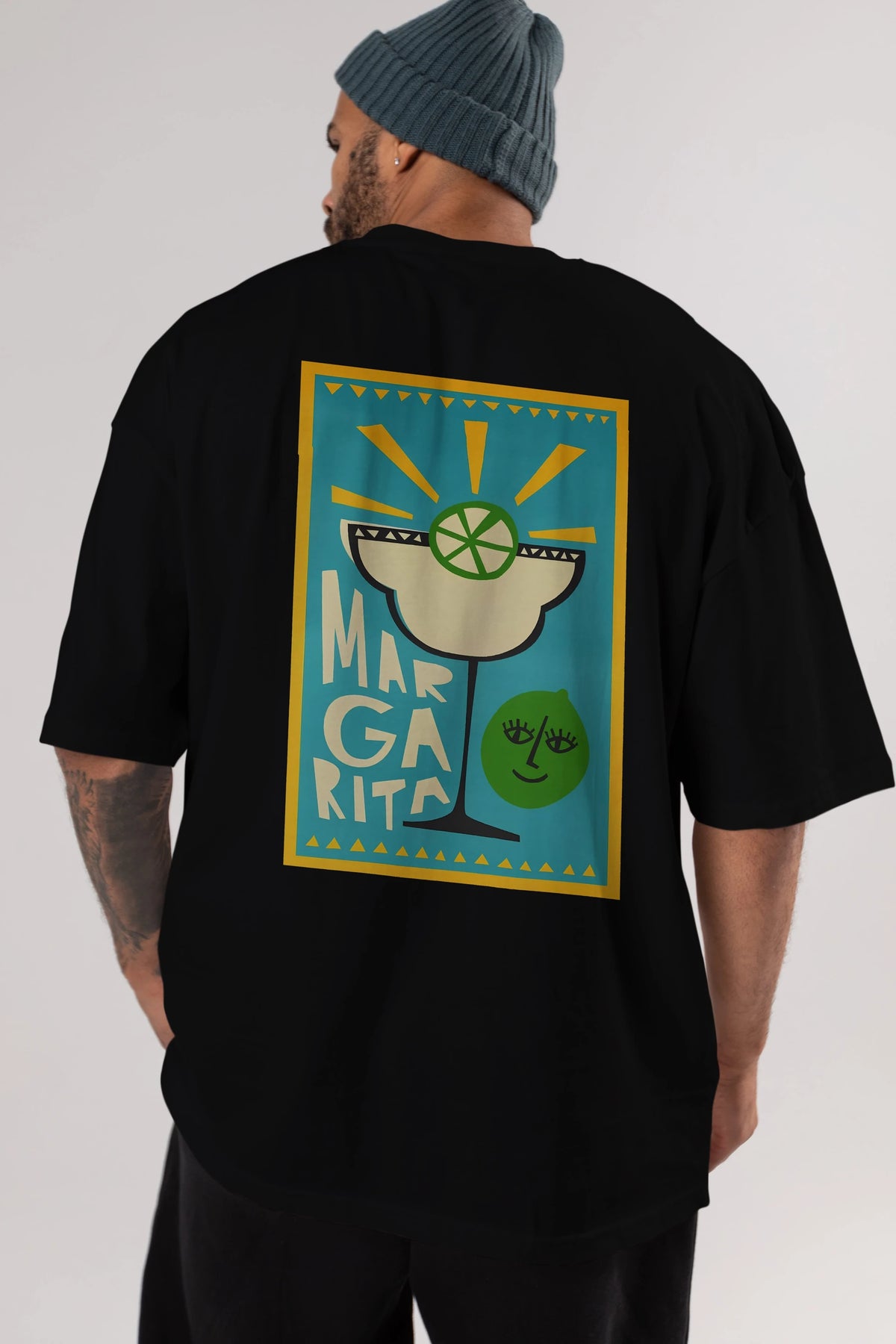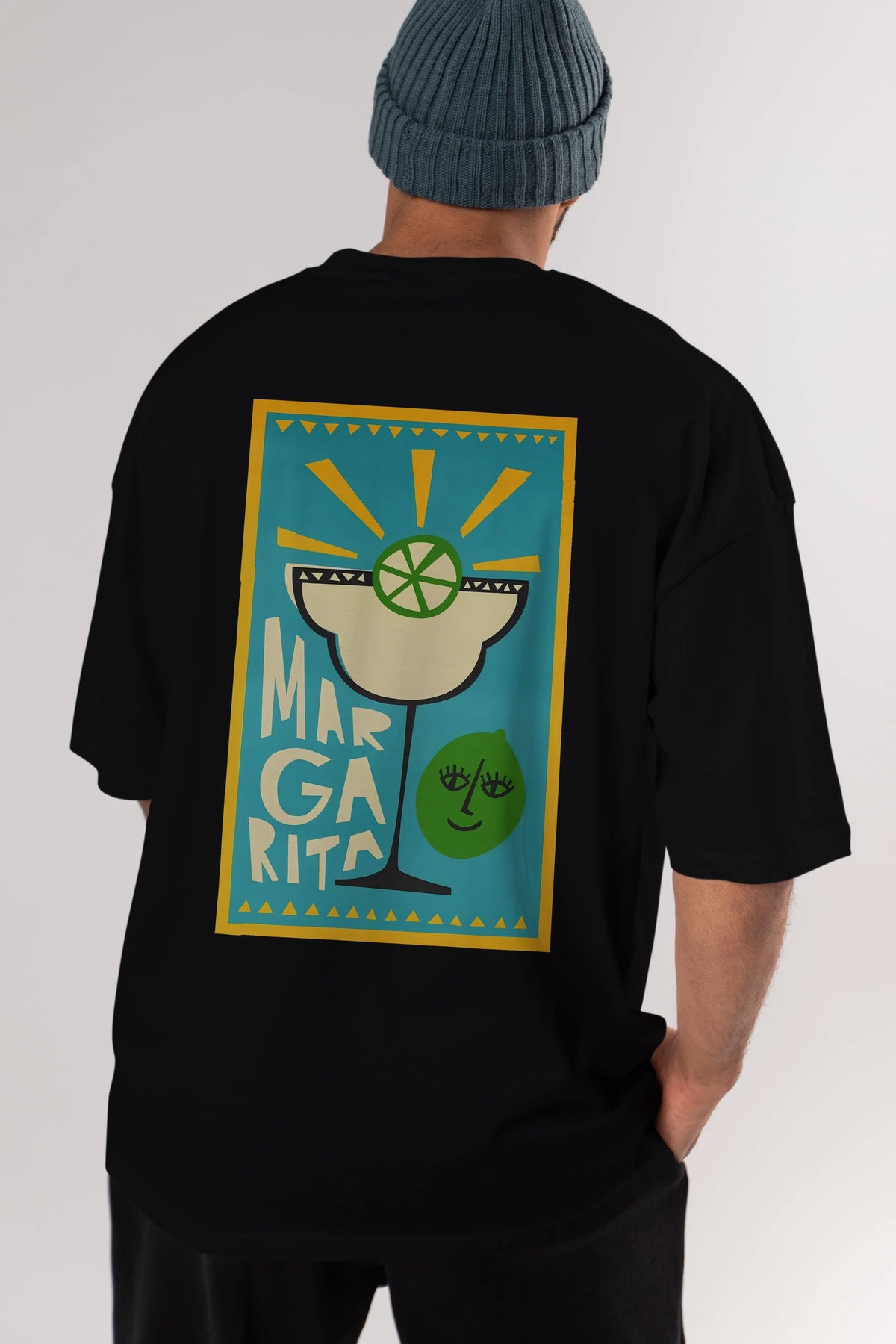 Margarita 4 Arka Baskılı Oversize t-shirt Erkek Kadın Unisex %100 Pamuk Bisiklet Yaka tişort