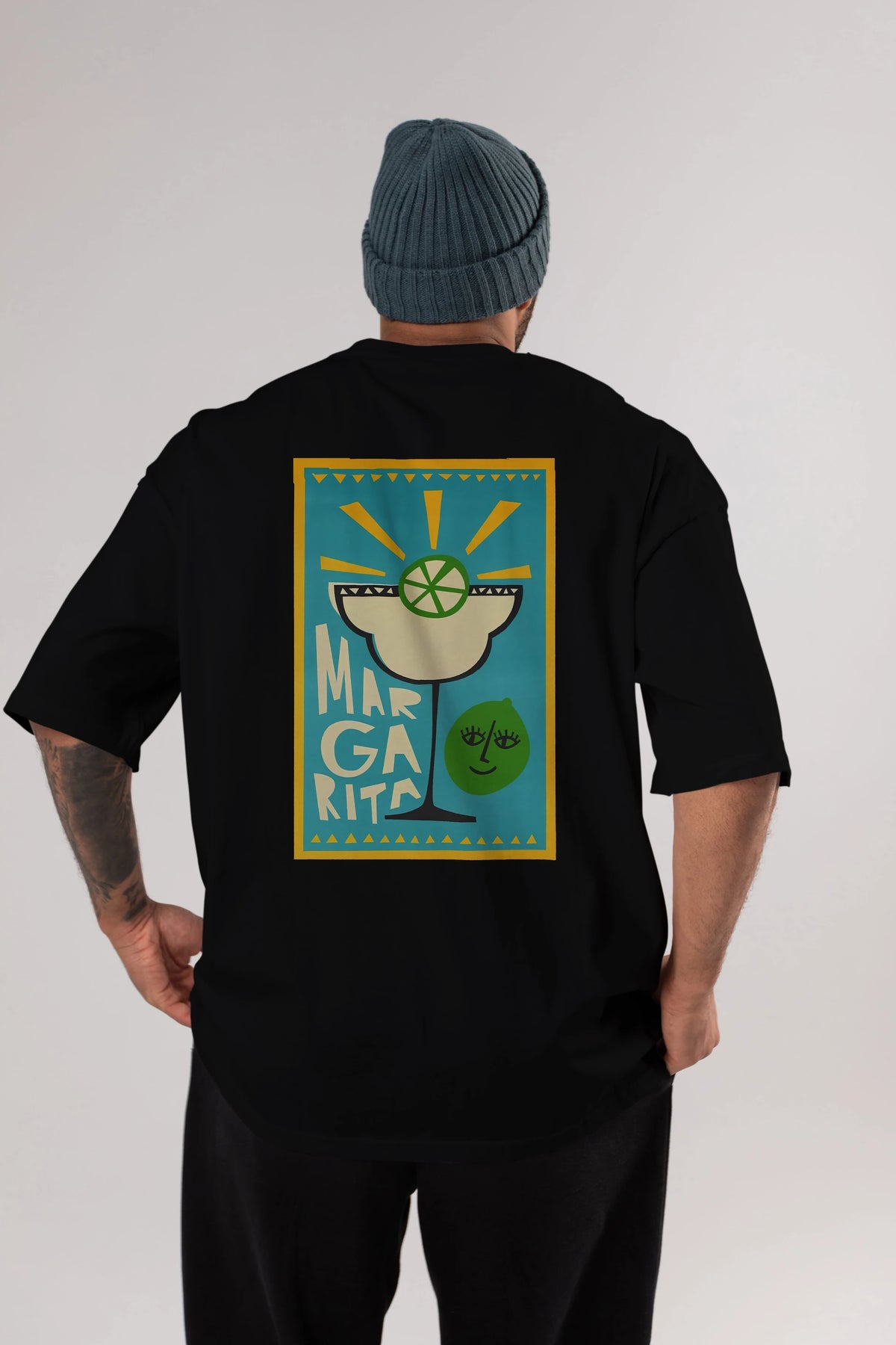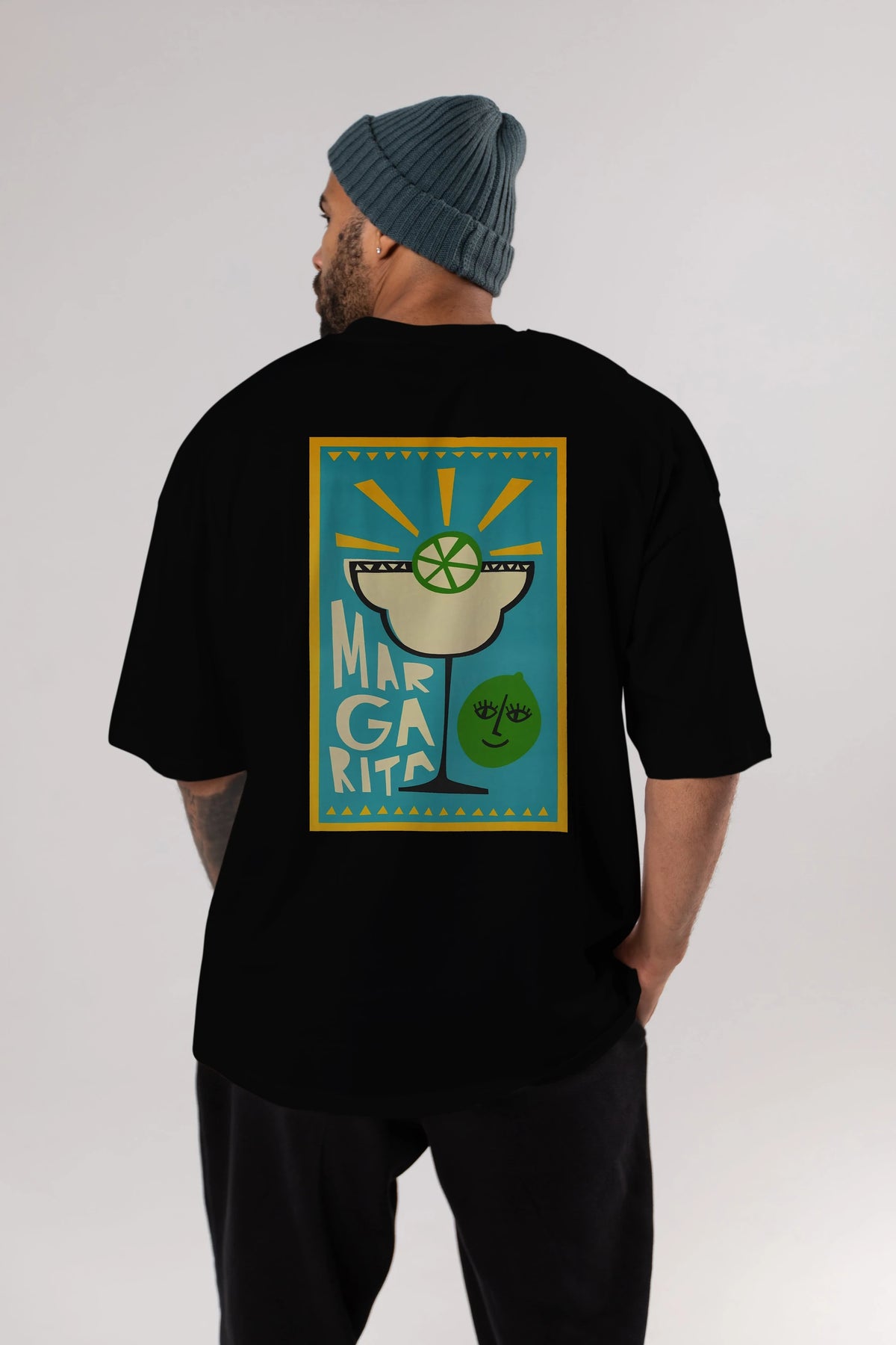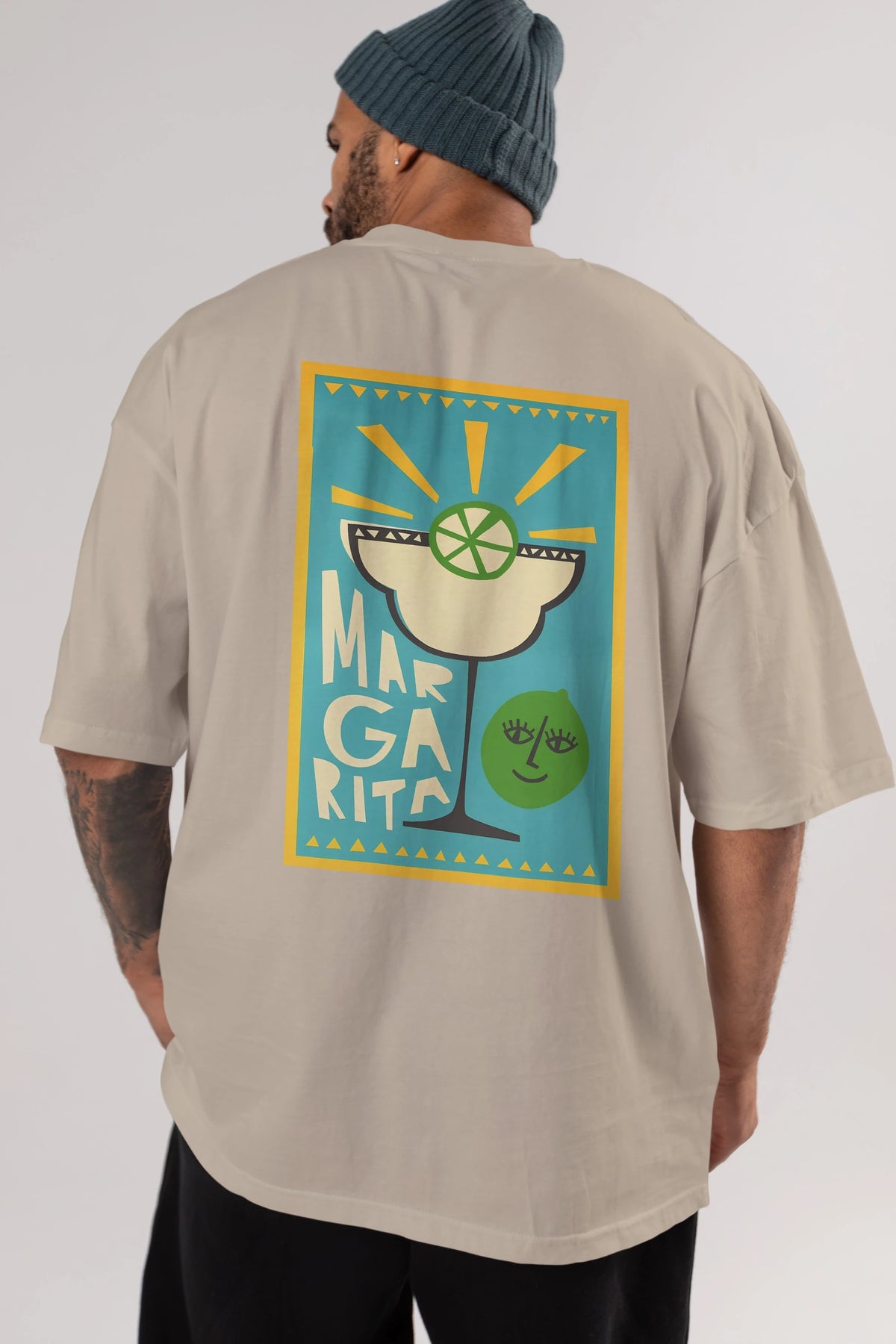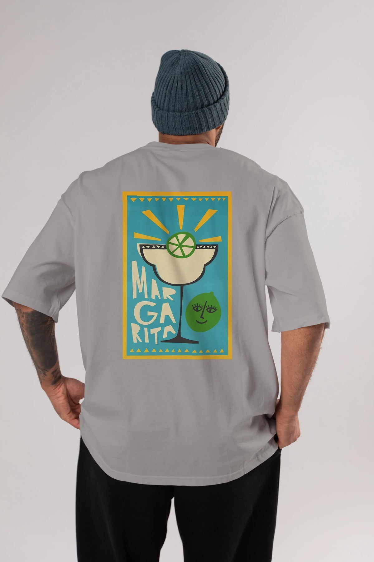 Margarita 4 Arka Baskılı Oversize t-shirt Erkek Kadın Unisex %100 Pamuk Bisiklet Yaka tişort