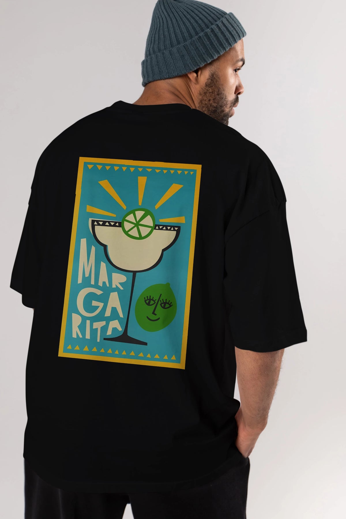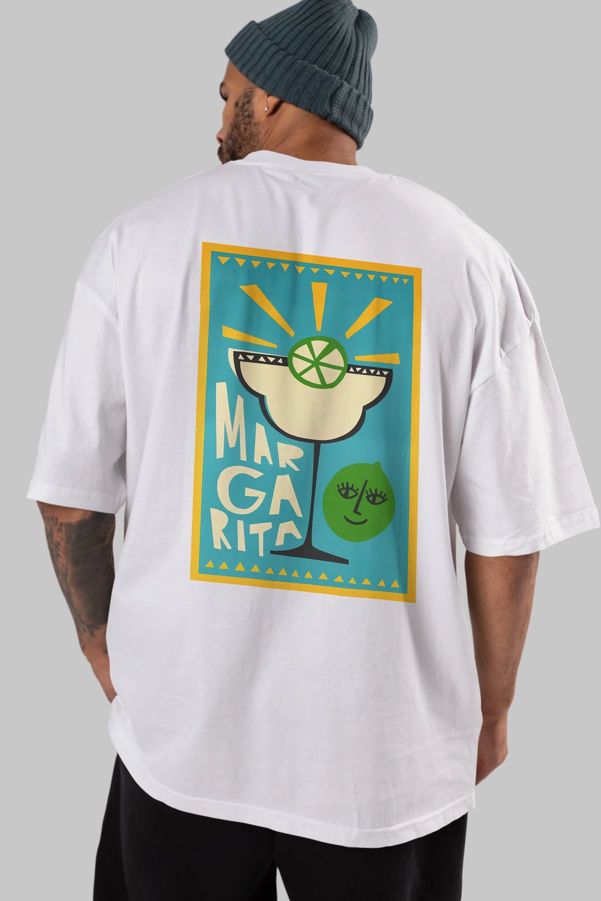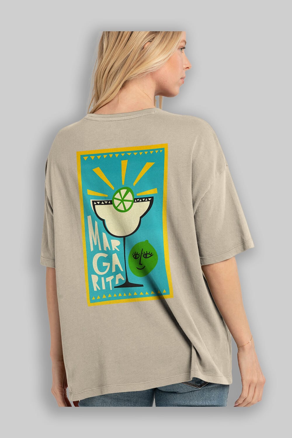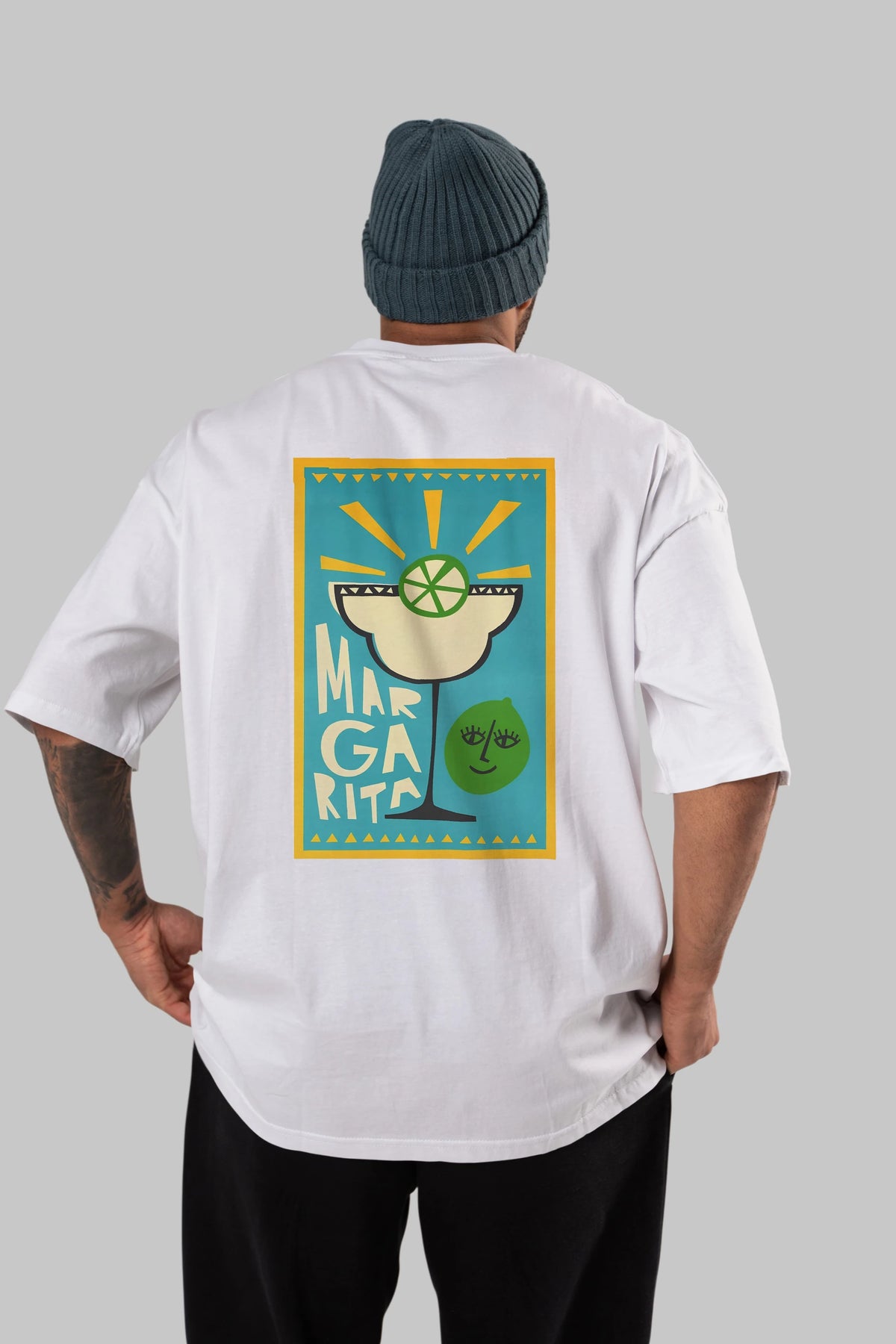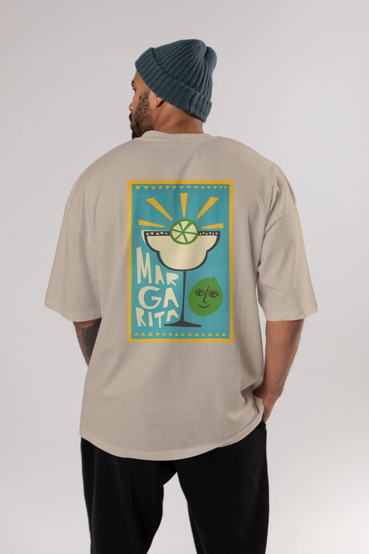 Margarita 4 Arka Baskılı Oversize t-shirt Erkek Kadın Unisex %100 Pamuk Bisiklet Yaka tişort