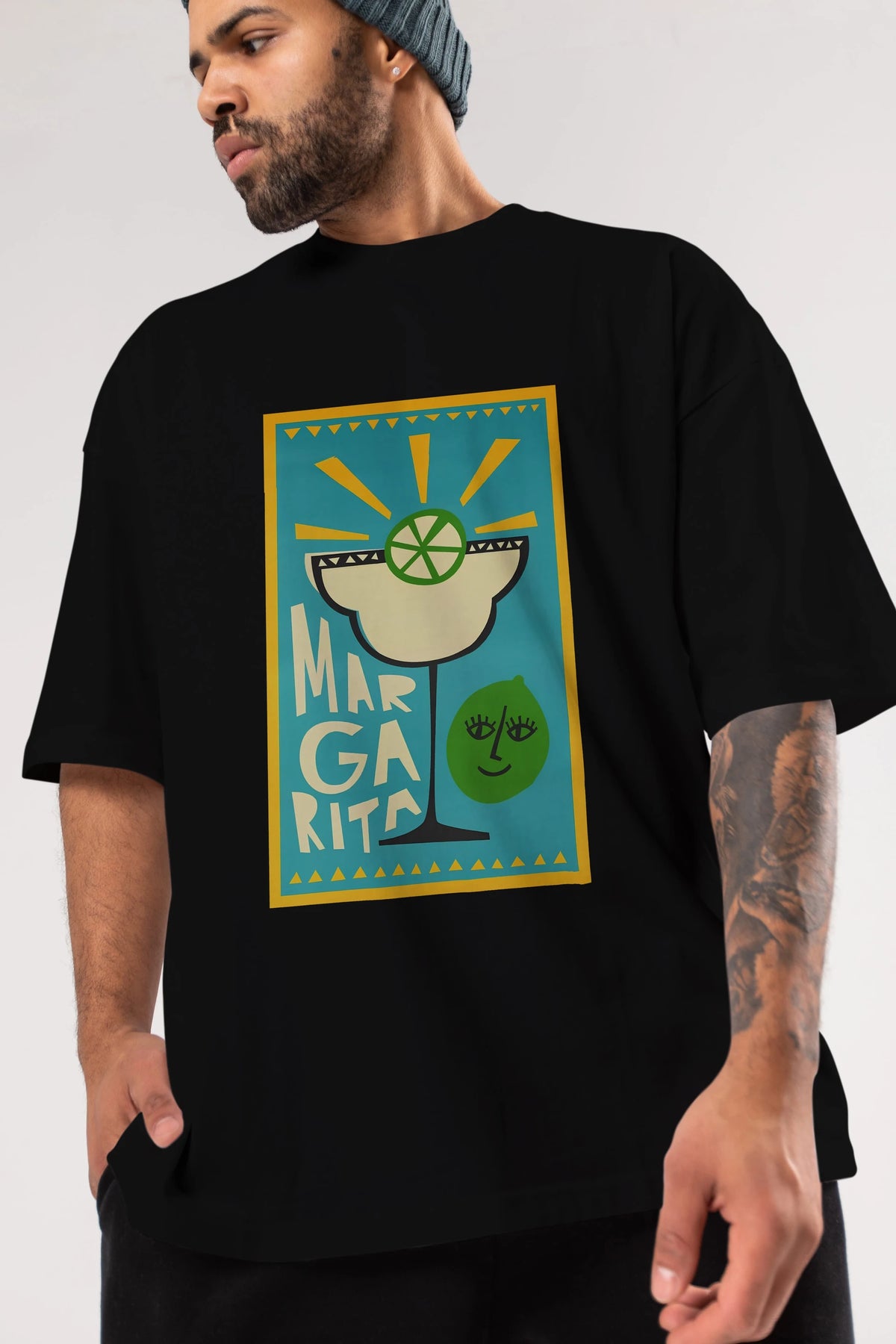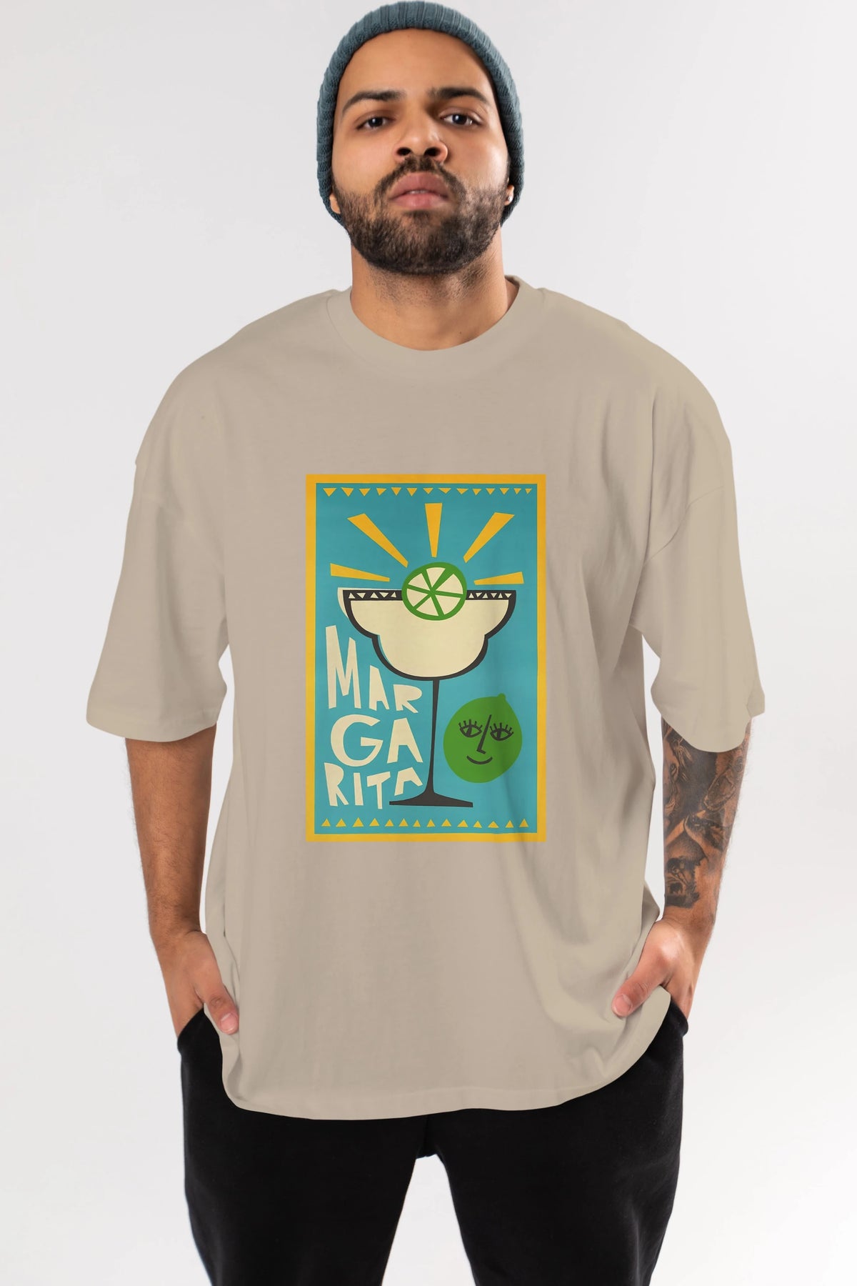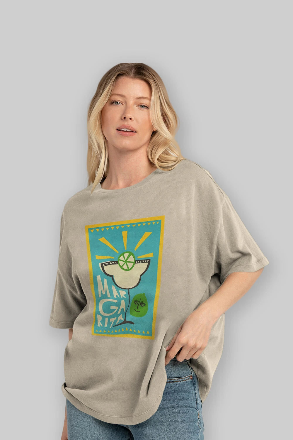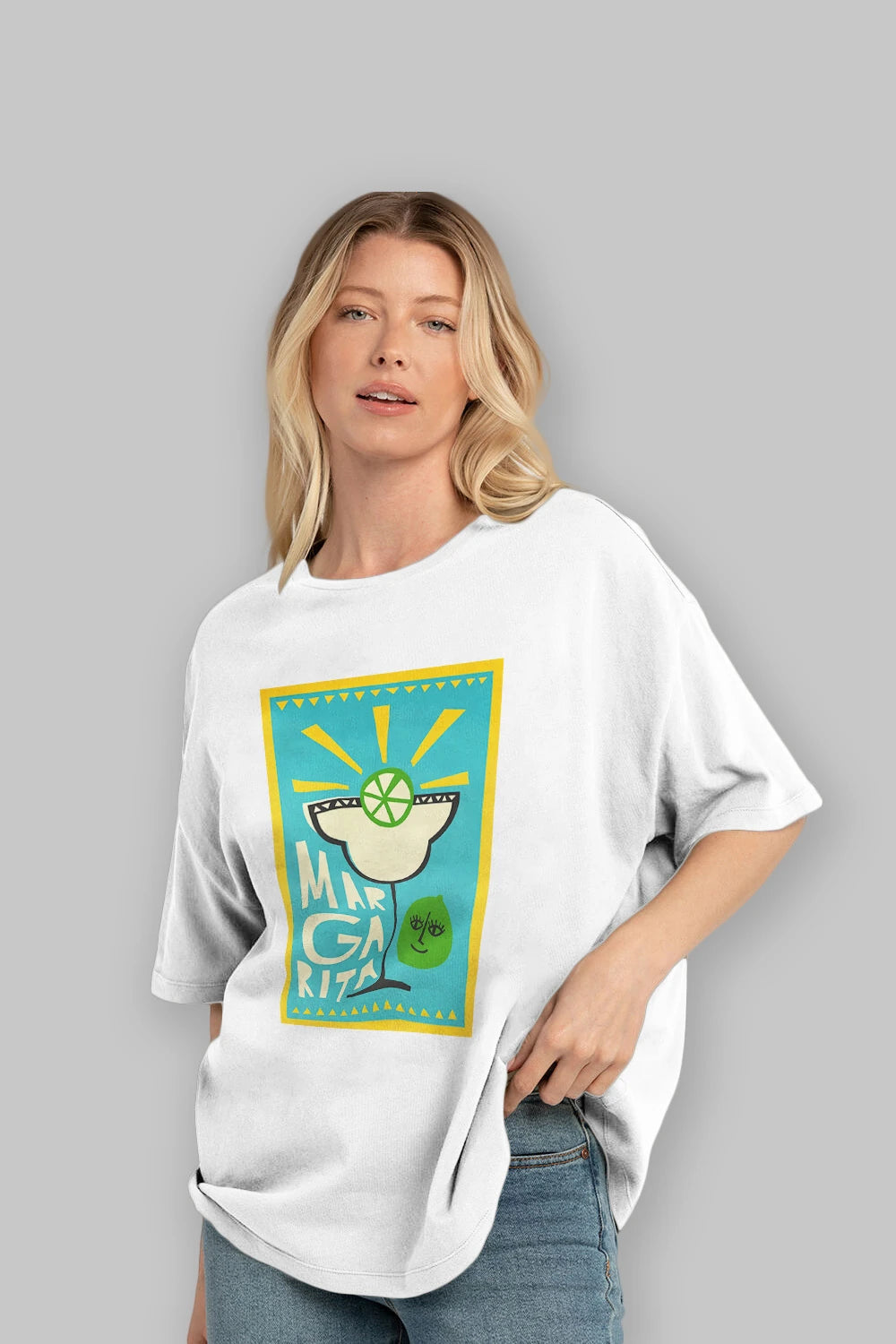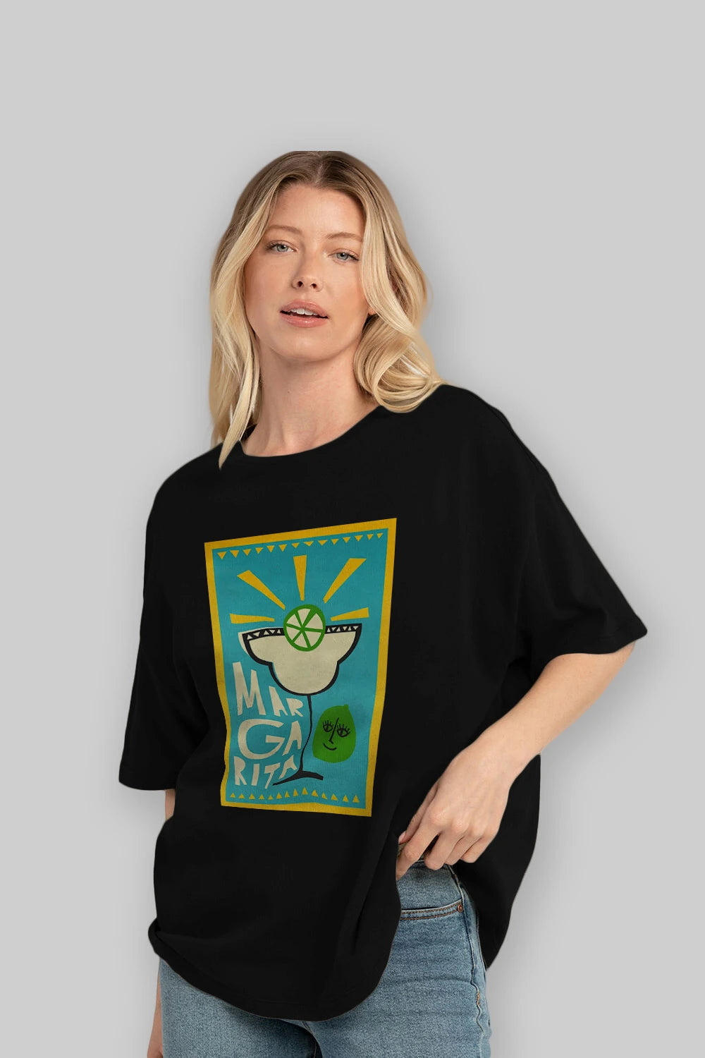 Margarita 4 Ön Baskılı Oversize t-shirt Erkek Kadın Unisex %100 Pamuk Bisiklet Yaka tişort
