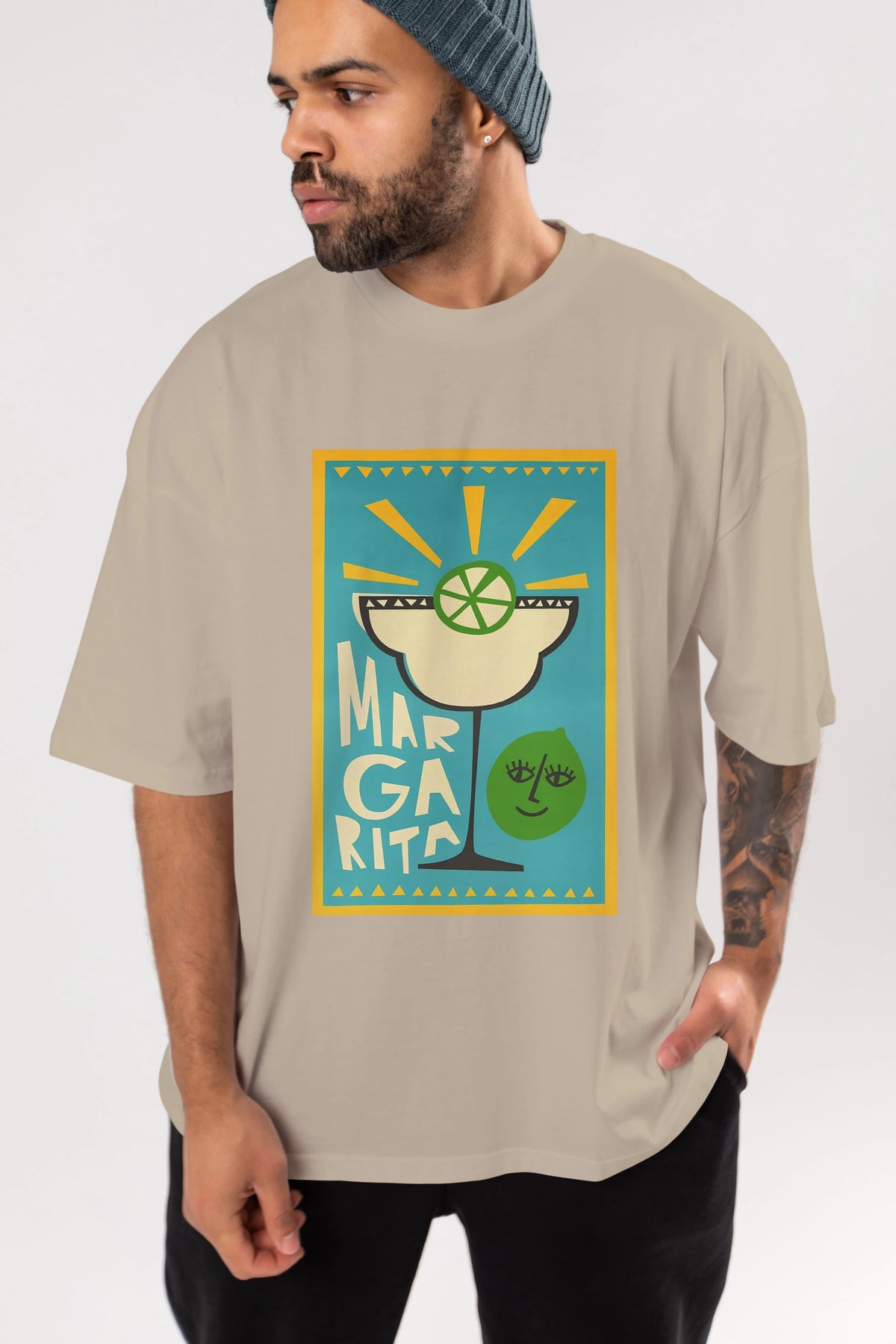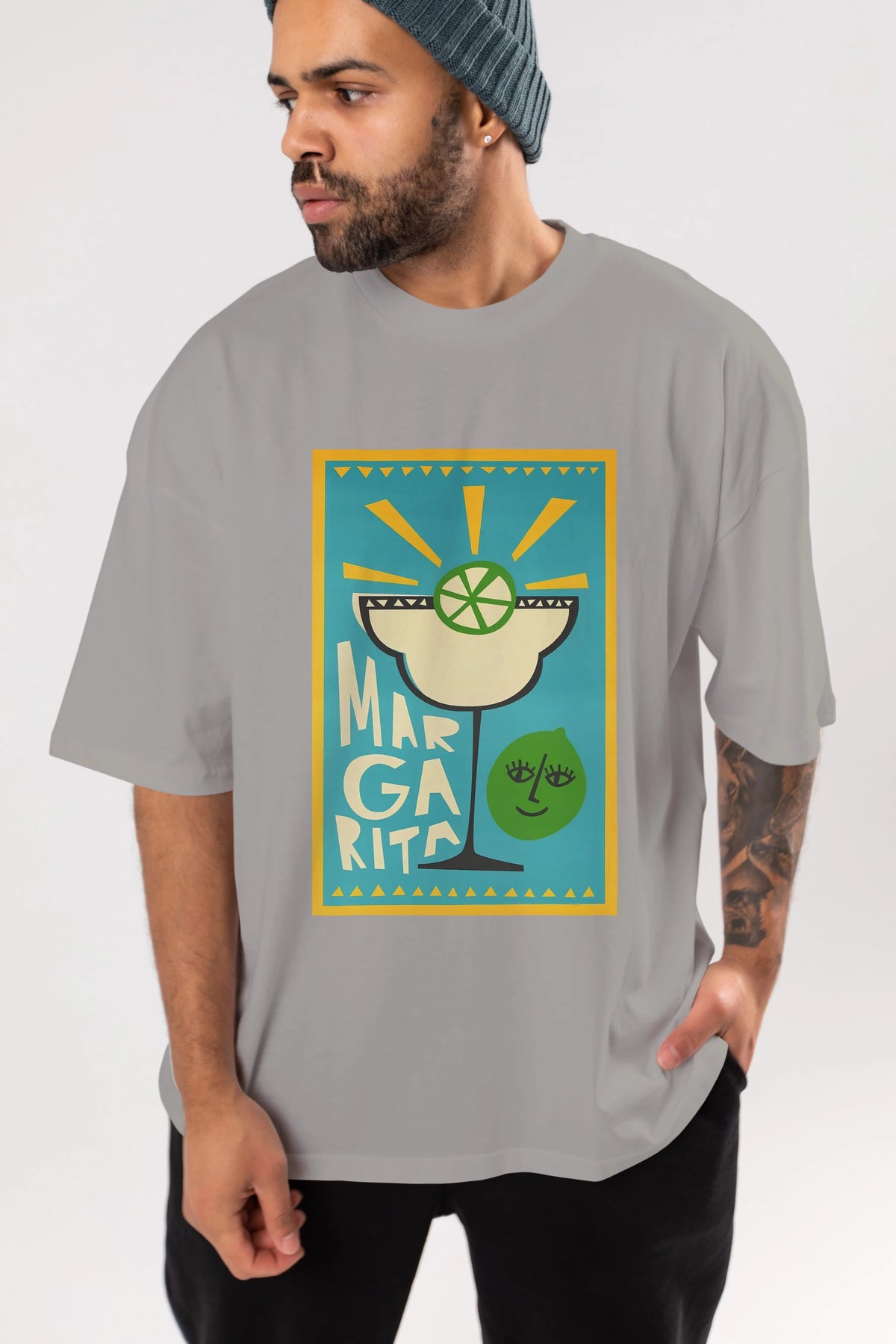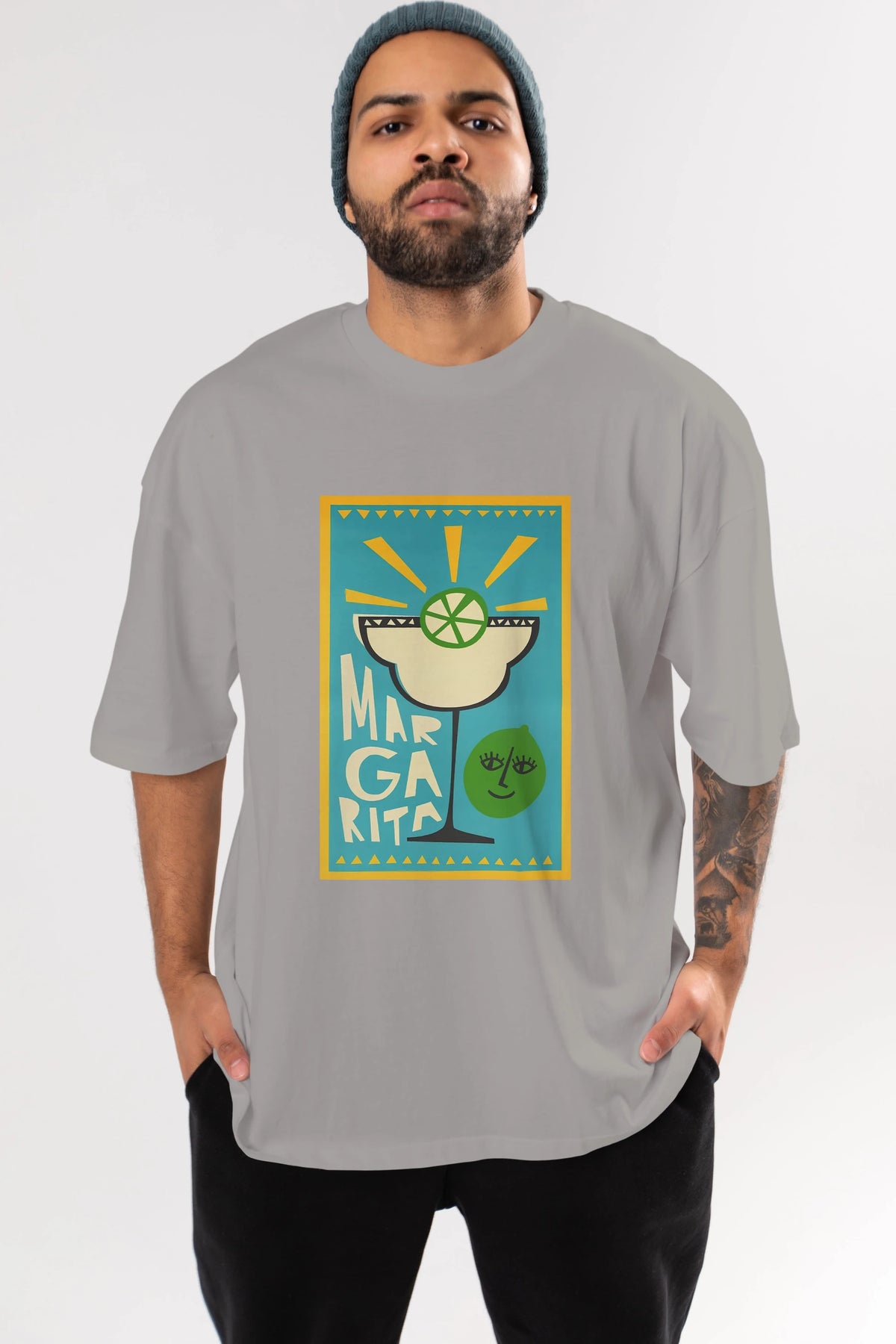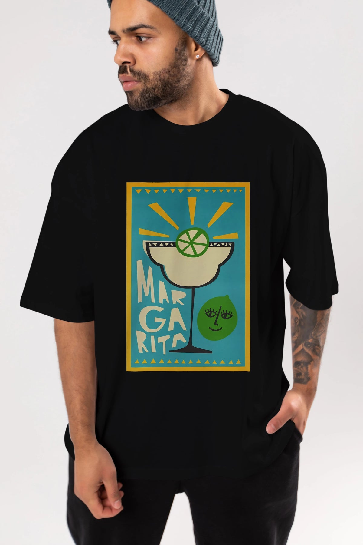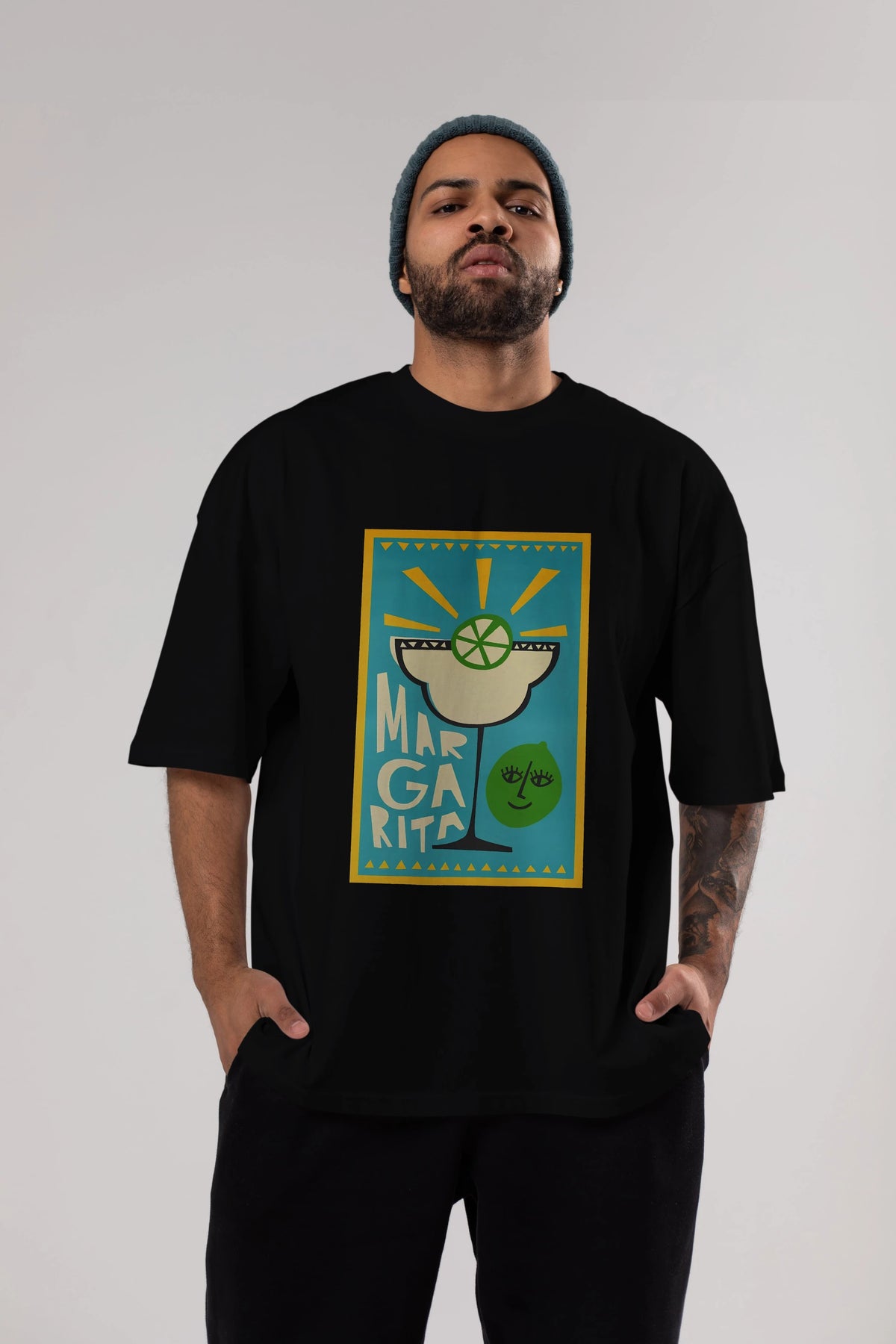 Margarita 4 Ön Baskılı Oversize t-shirt Erkek Kadın Unisex %100 Pamuk Bisiklet Yaka tişort