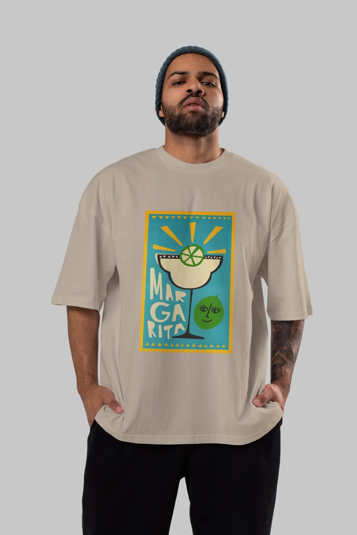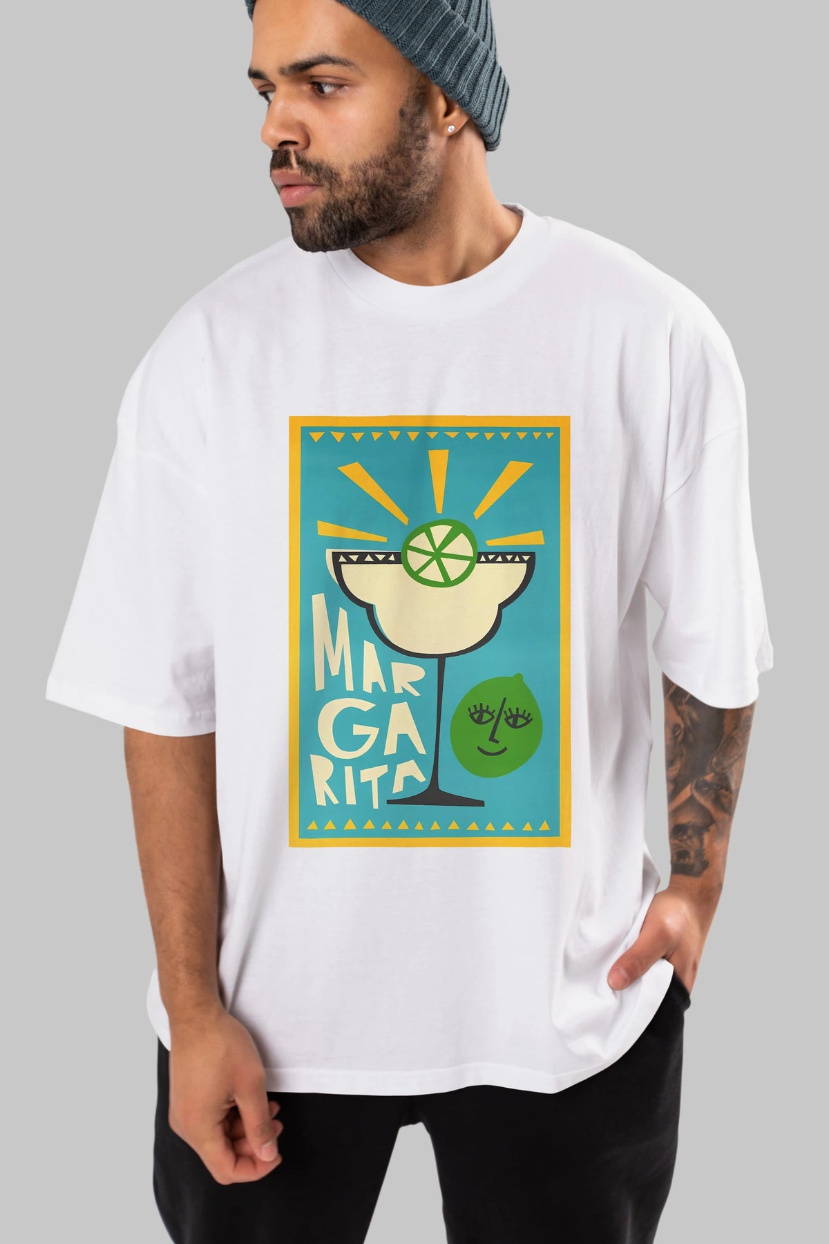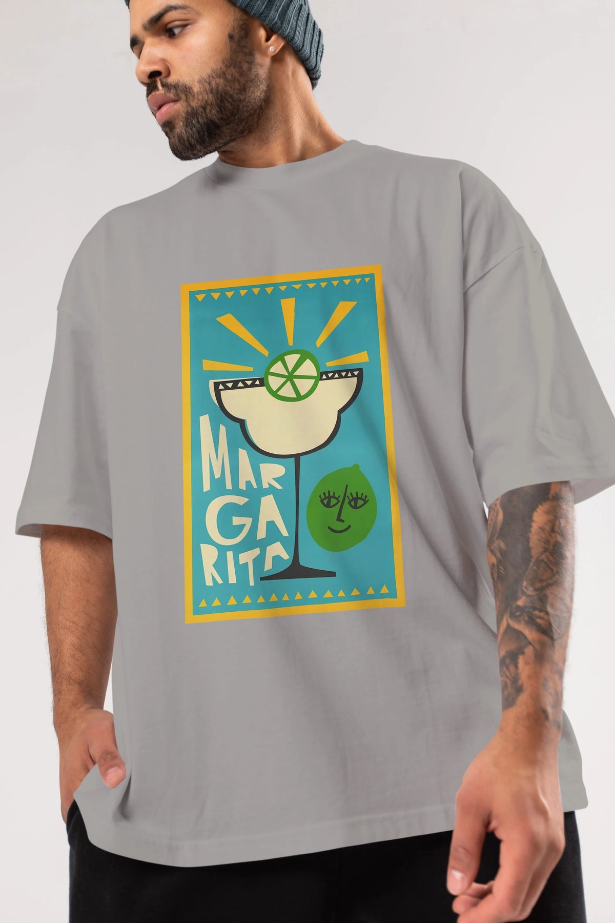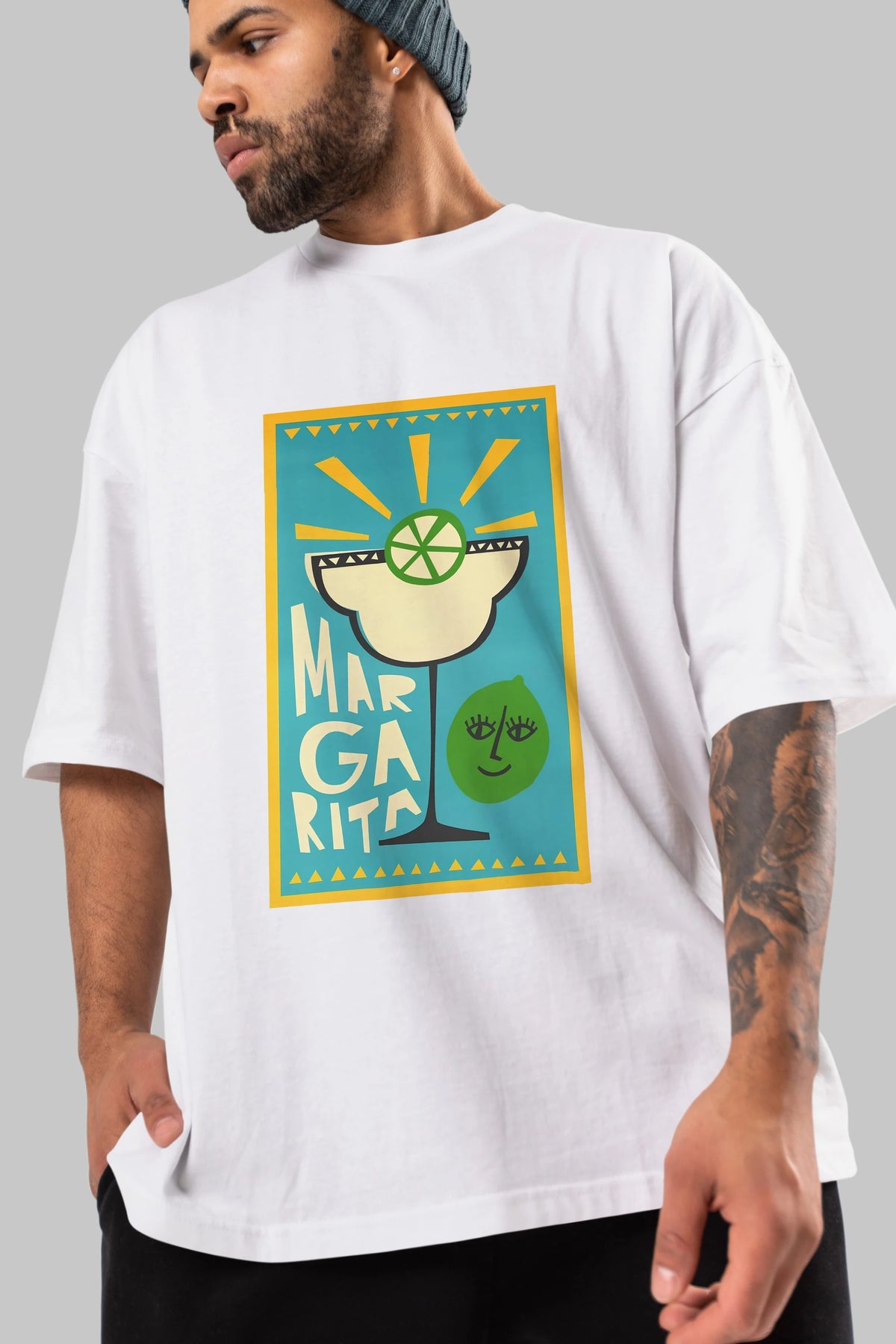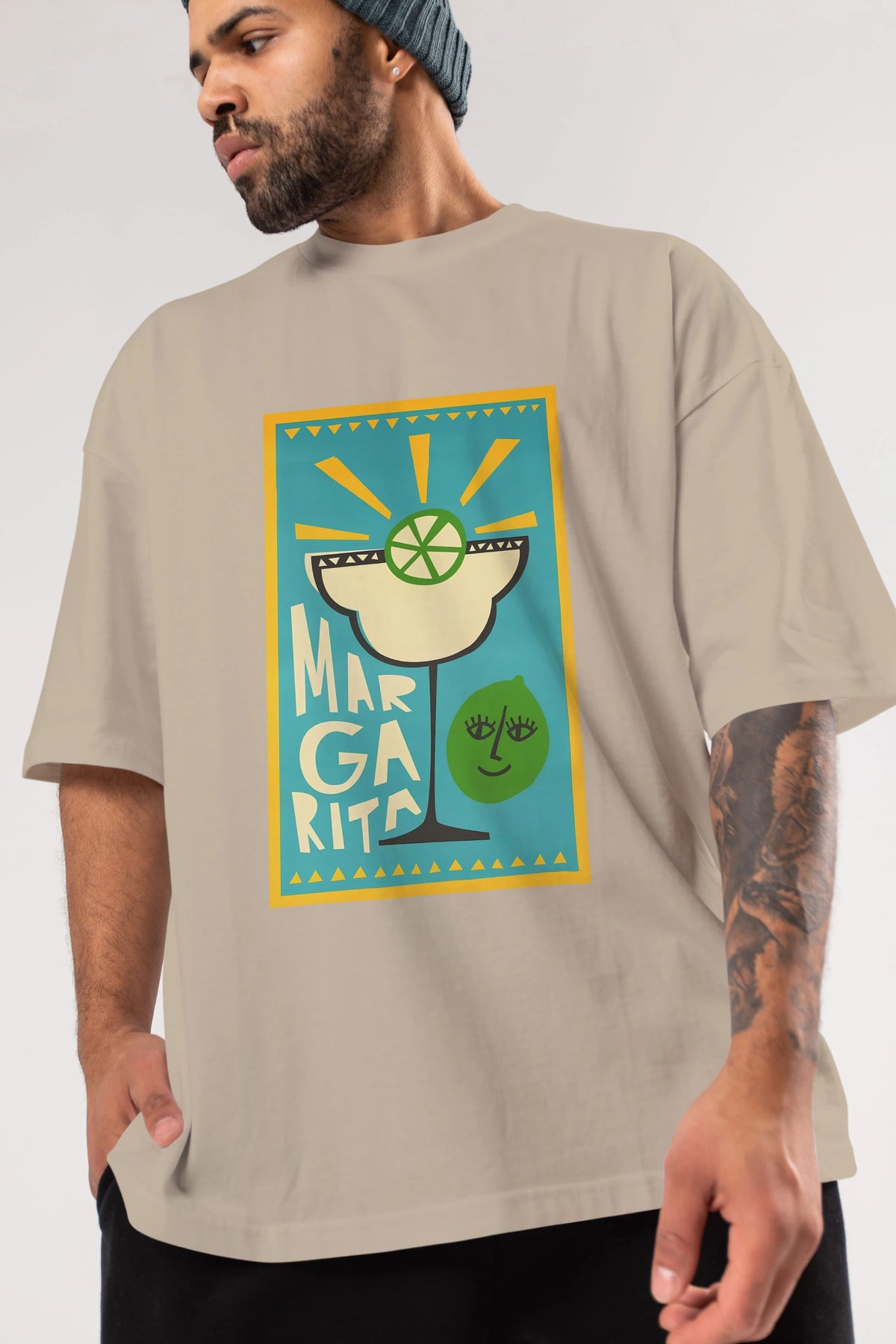 Margarita 4 Ön Baskılı Oversize t-shirt Erkek Kadın Unisex %100 Pamuk Bisiklet Yaka tişort