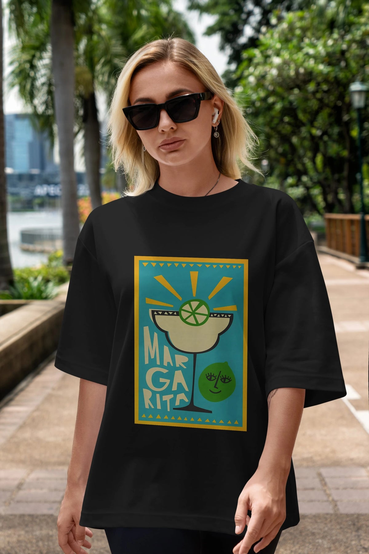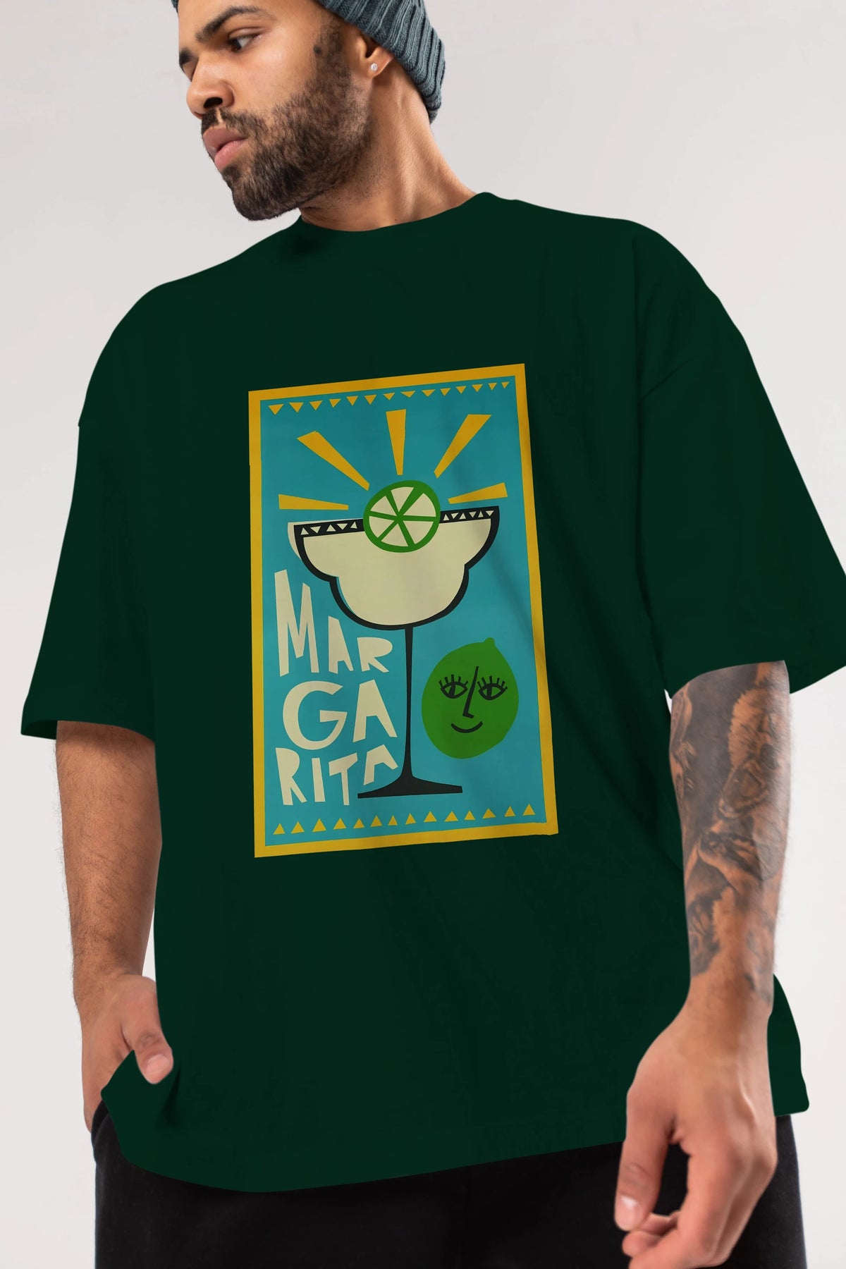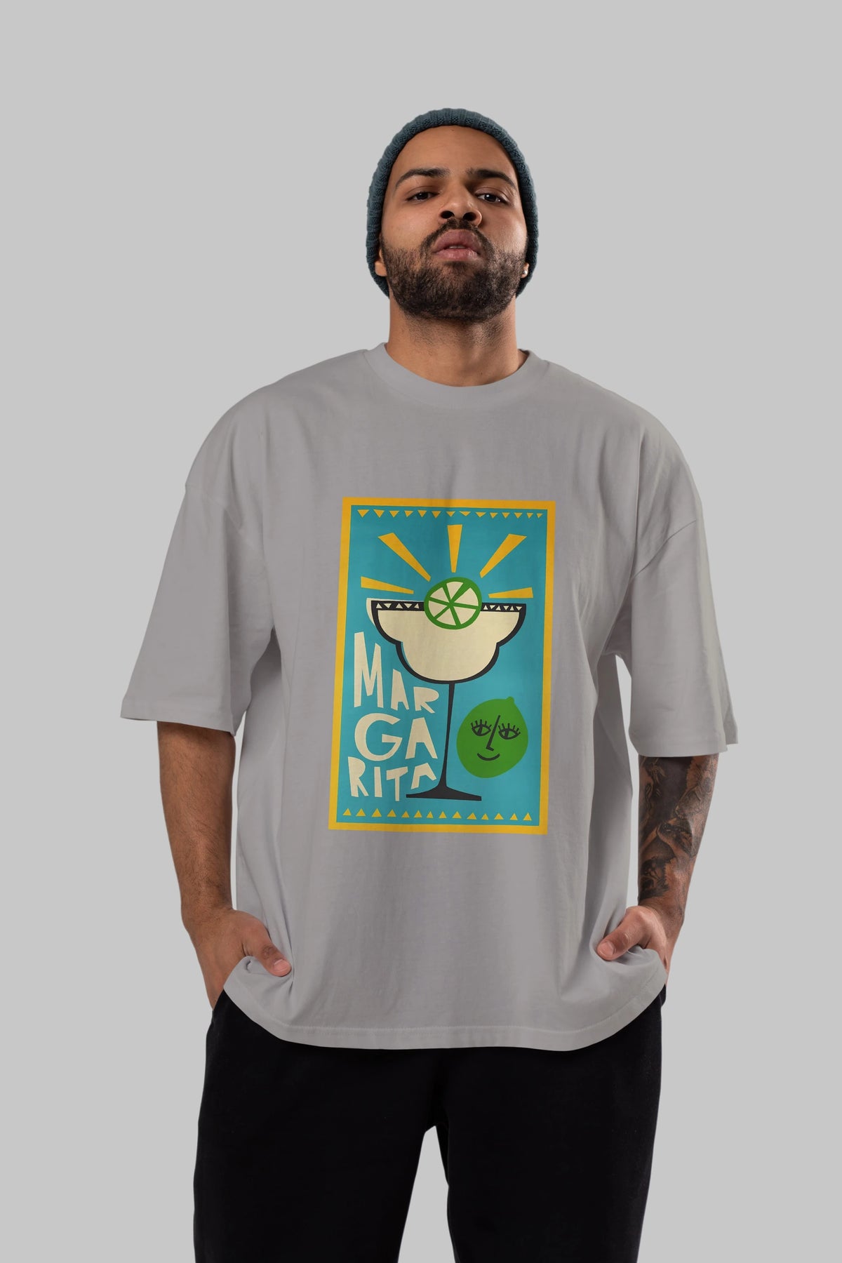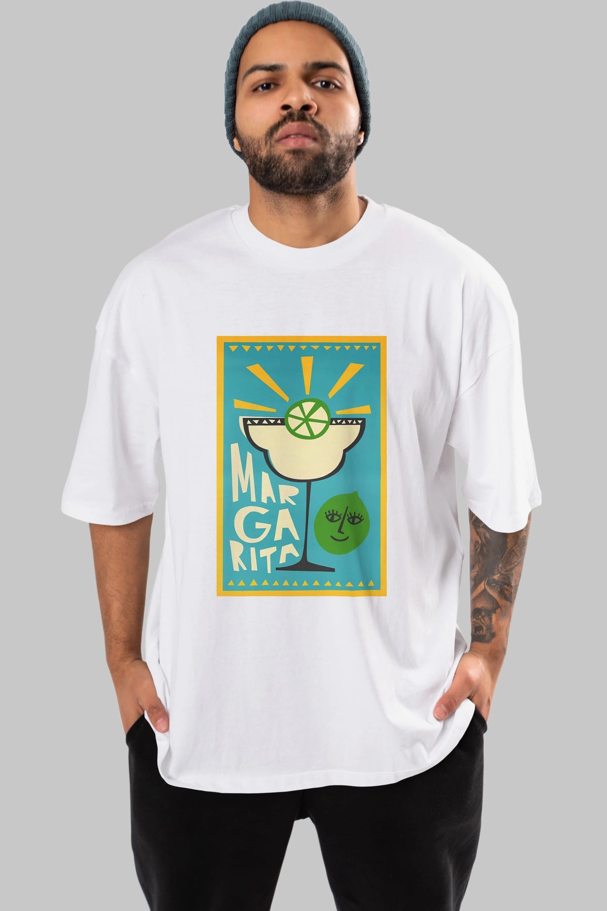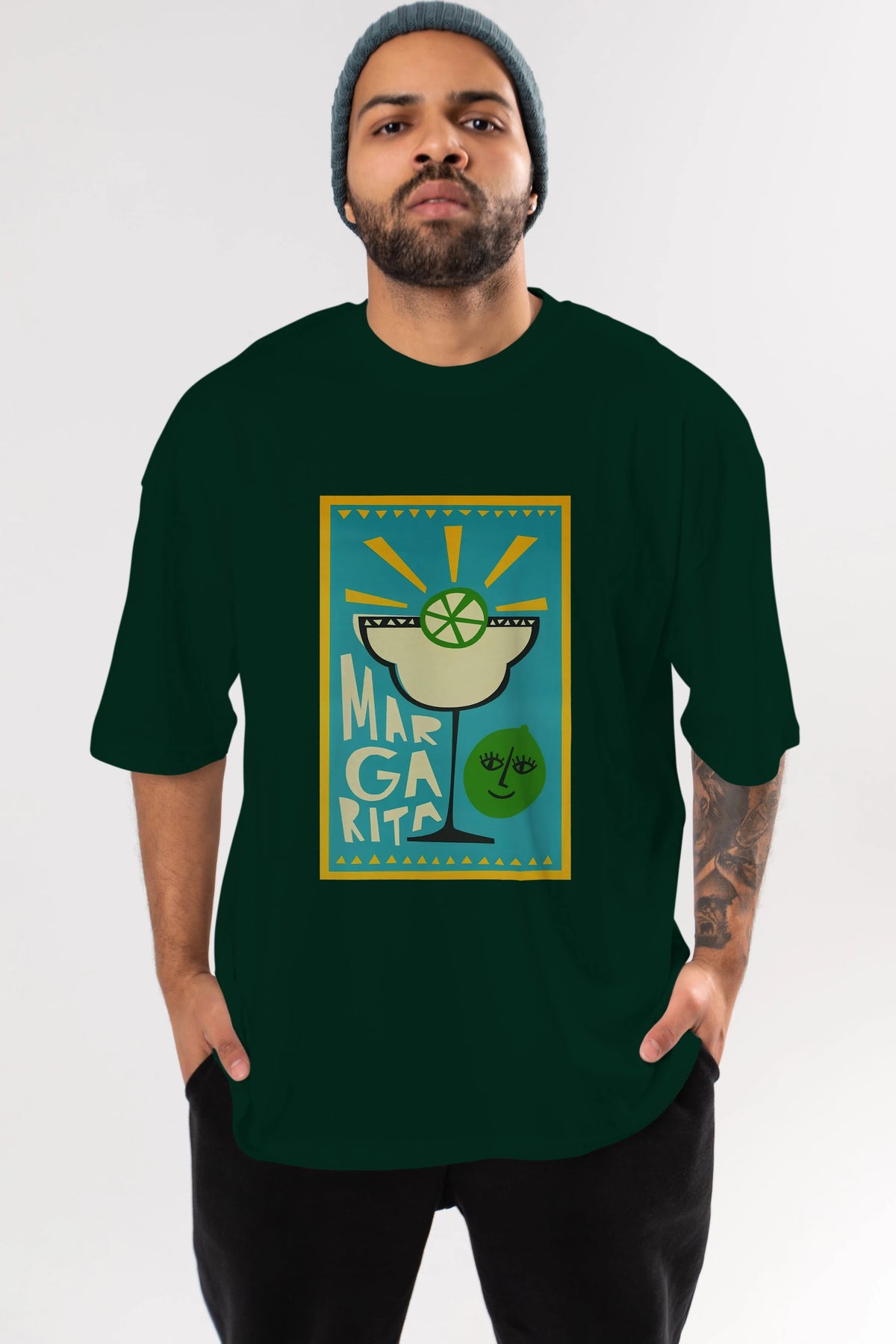 Margarita 4 Ön Baskılı Oversize t-shirt Erkek Kadın Unisex %100 Pamuk Bisiklet Yaka tişort