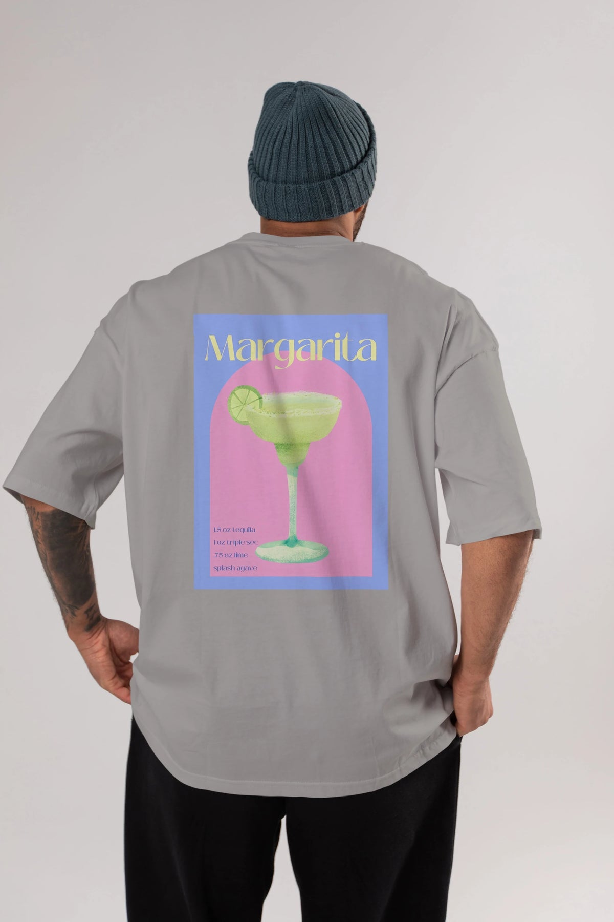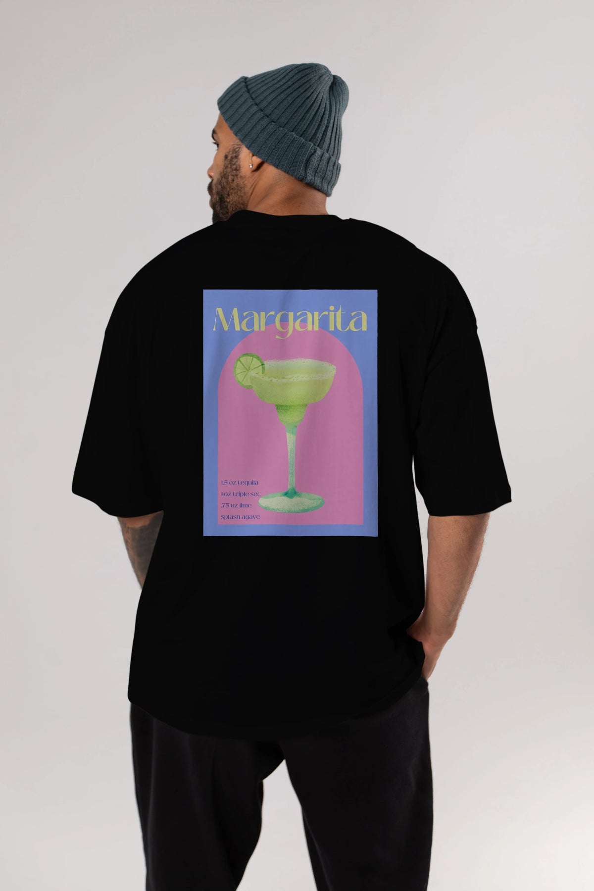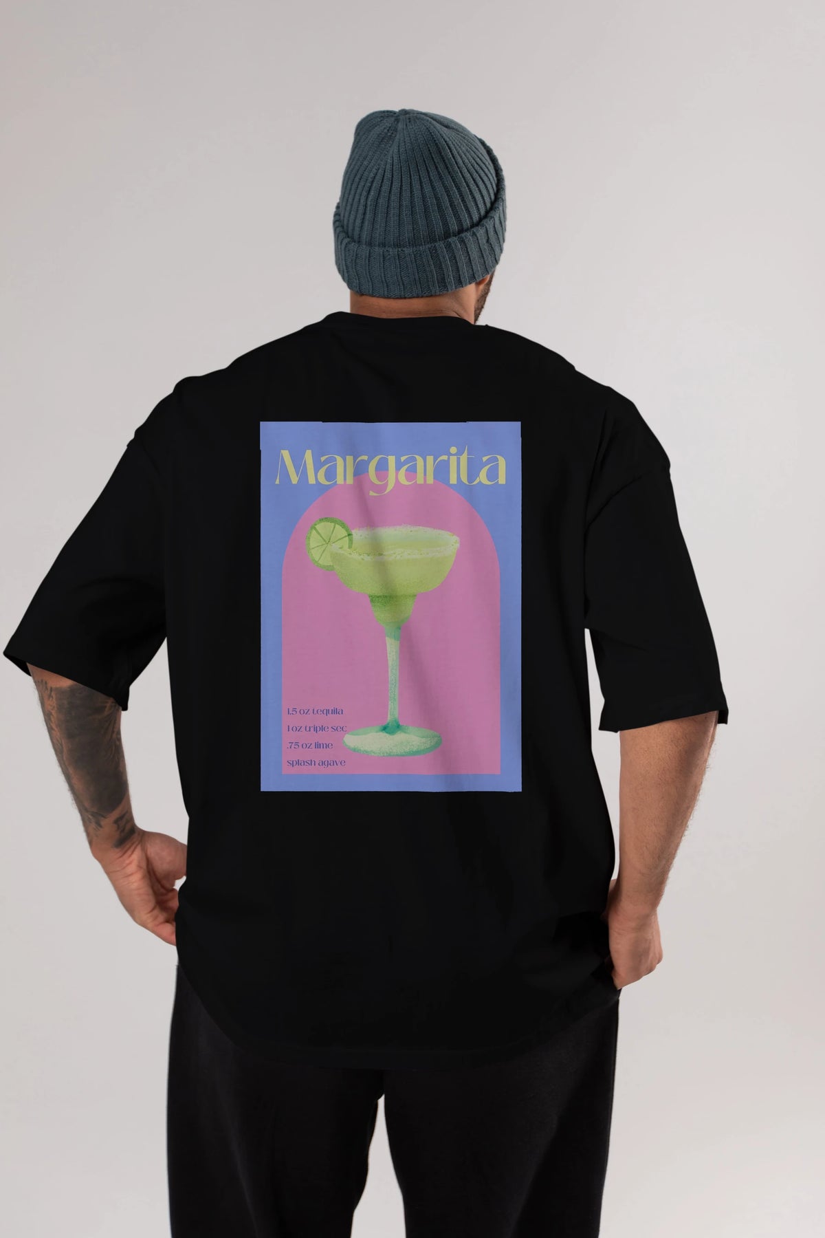 Margarita 6 Arka Baskılı Oversize t-shirt Erkek Kadın Unisex %100 Pamuk Bisiklet Yaka tişort