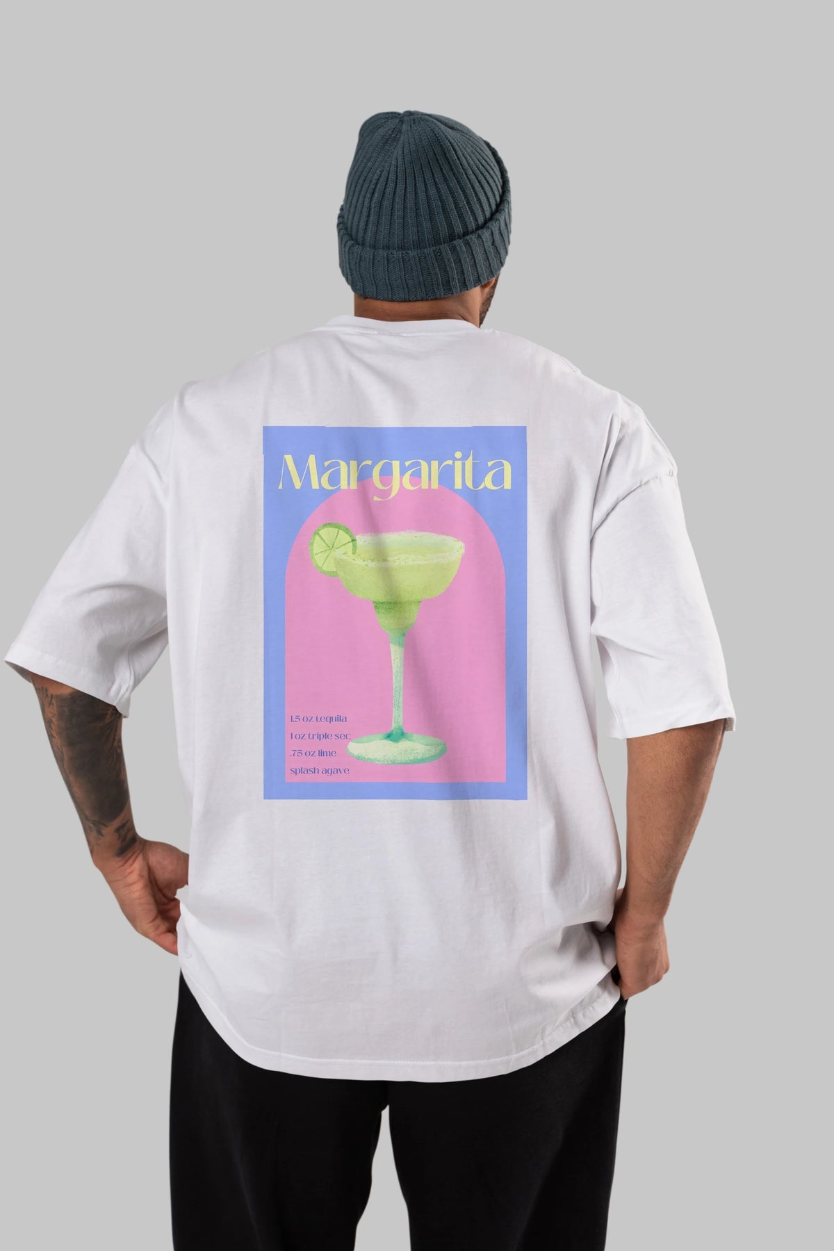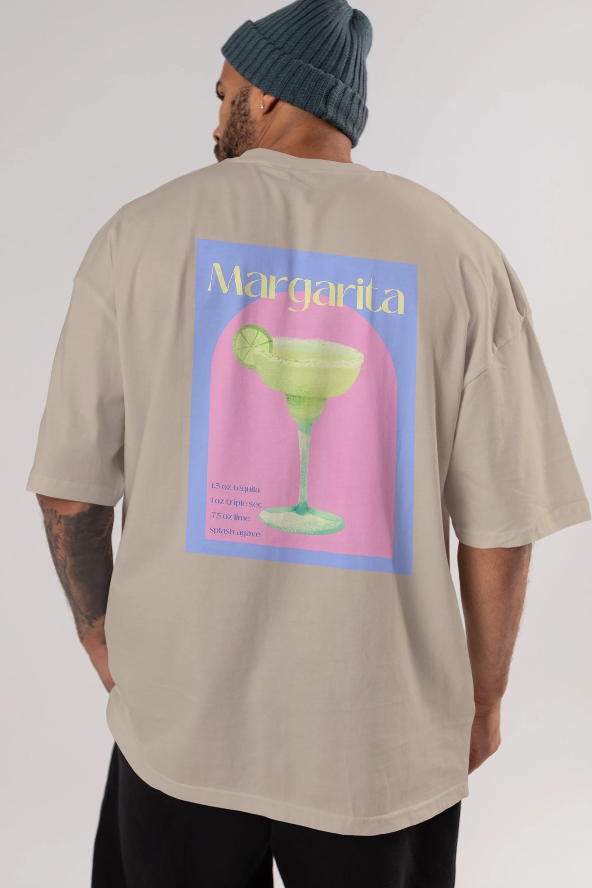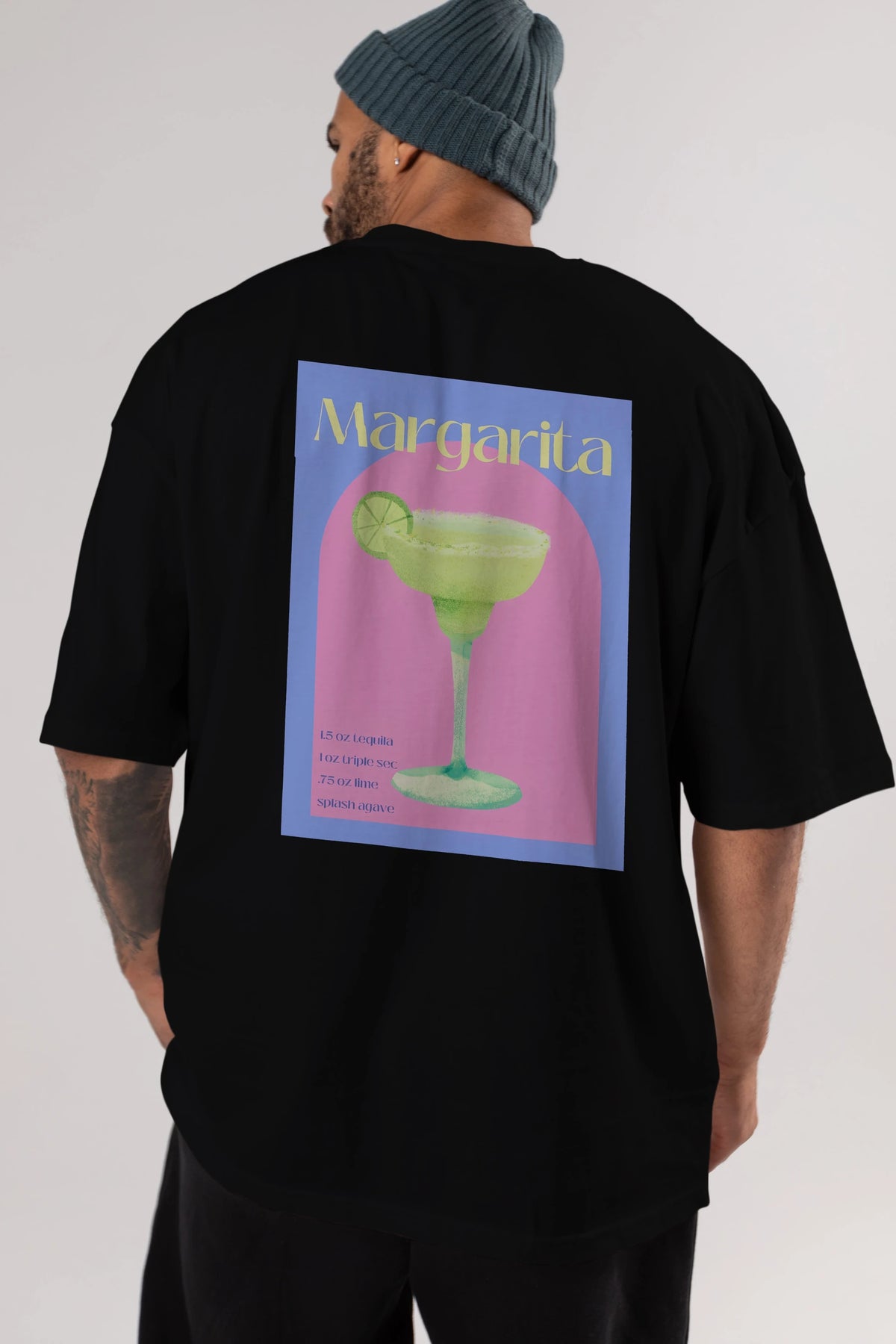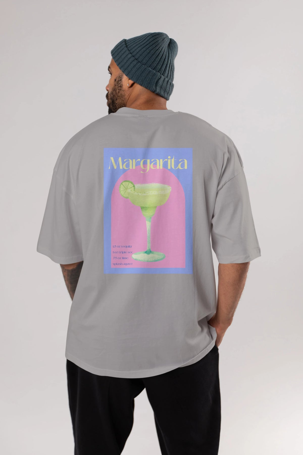 Margarita 6 Arka Baskılı Oversize t-shirt Erkek Kadın Unisex %100 Pamuk Bisiklet Yaka tişort