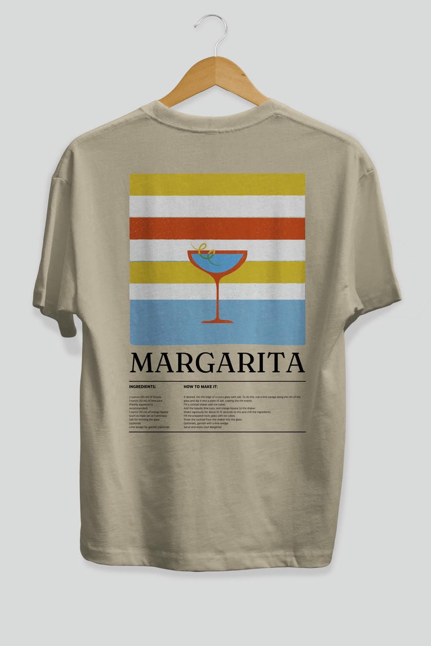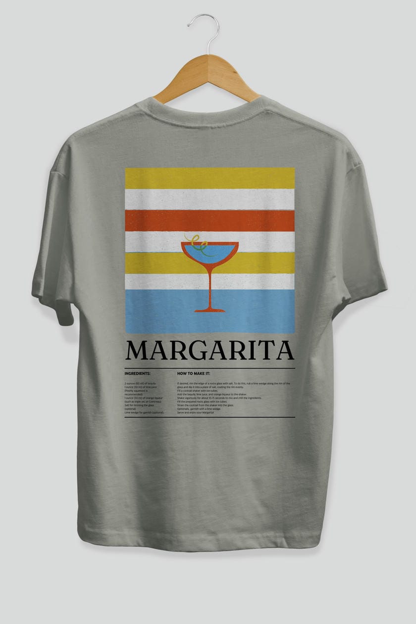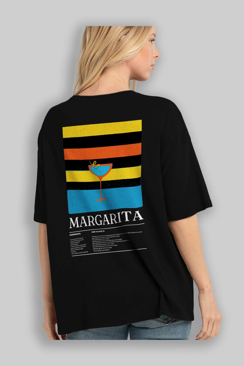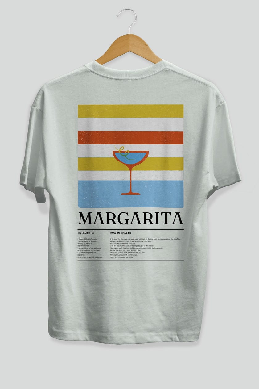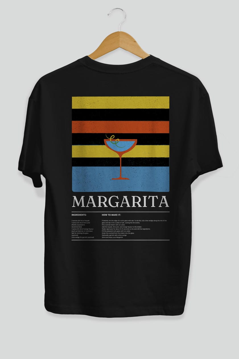 Margarita Kokteyl Serisi Arka Baskılı Oversize t-shirt Erkek Kadın %100 Pamuk Bisiklet Yaka tişort