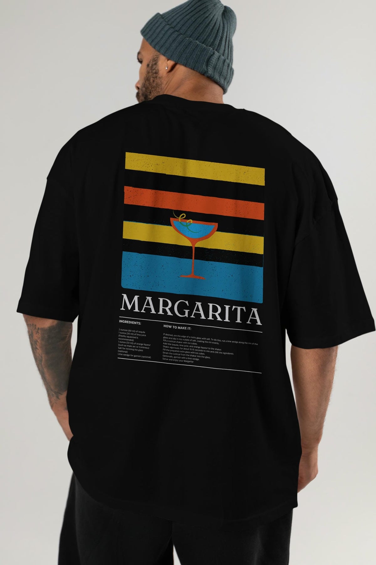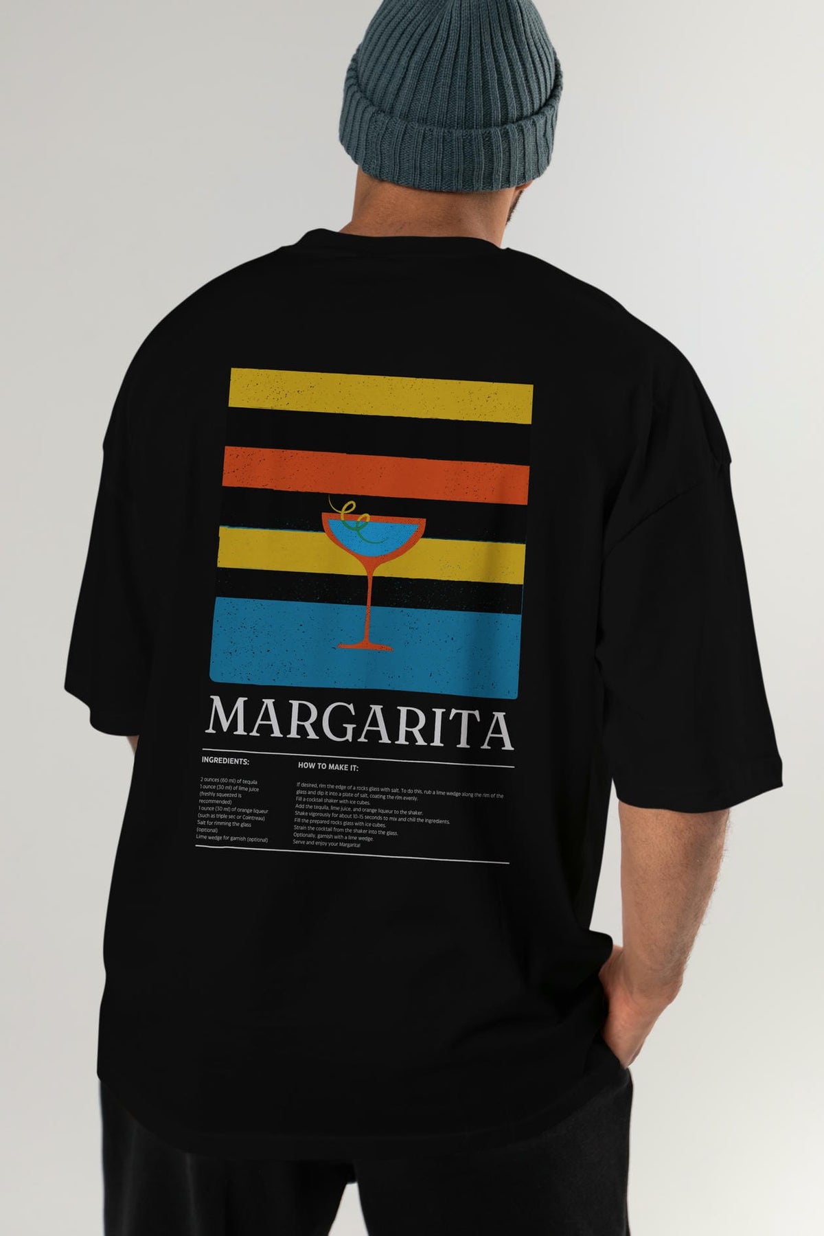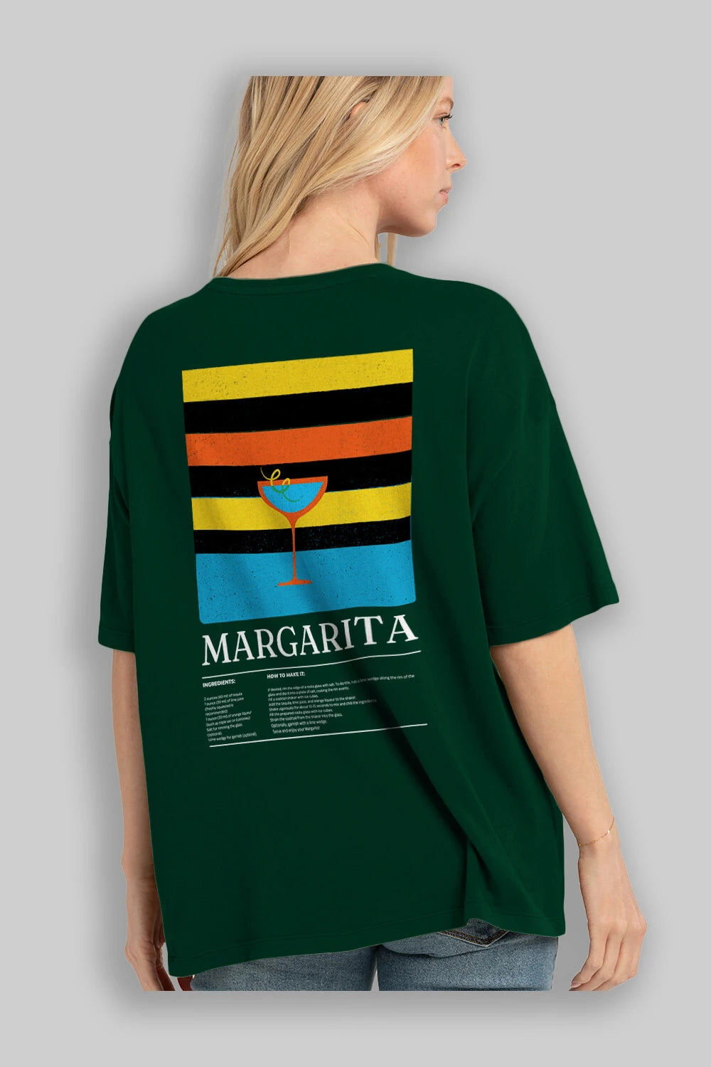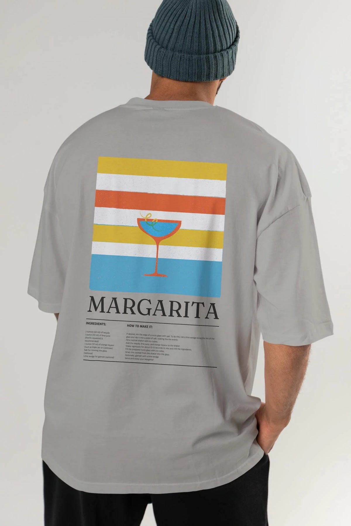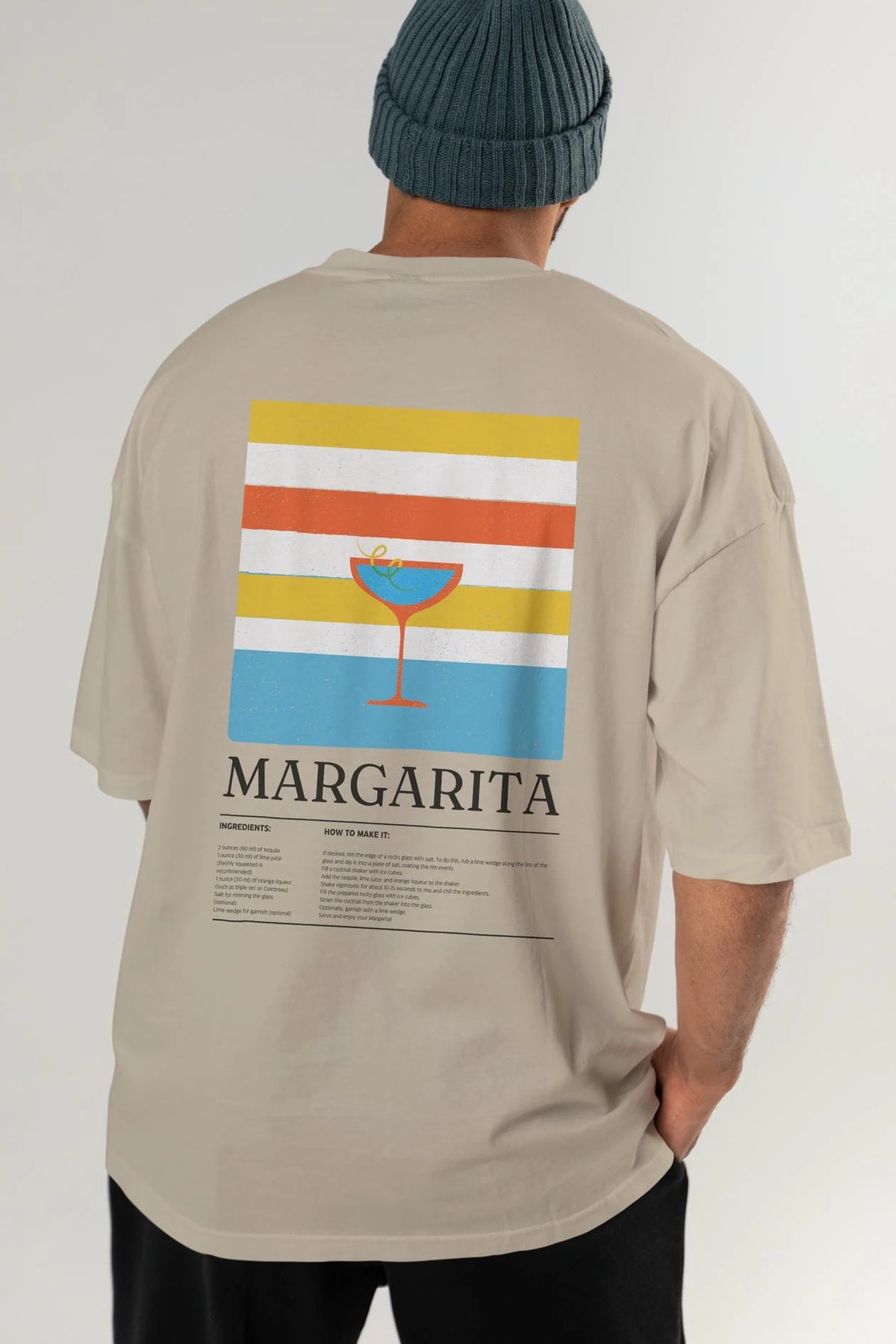 Margarita Kokteyl Serisi Arka Baskılı Oversize t-shirt Erkek Kadın %100 Pamuk Bisiklet Yaka tişort