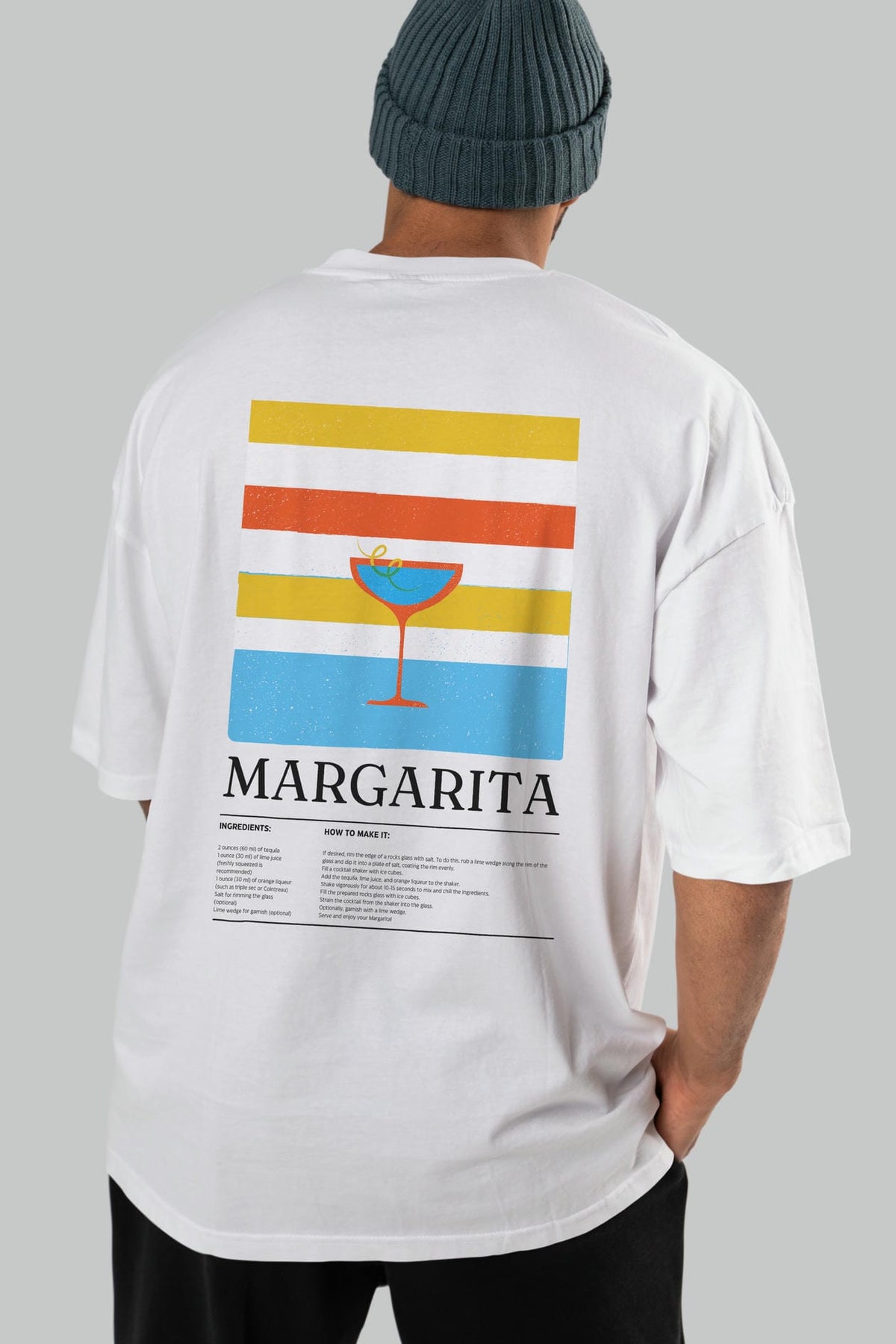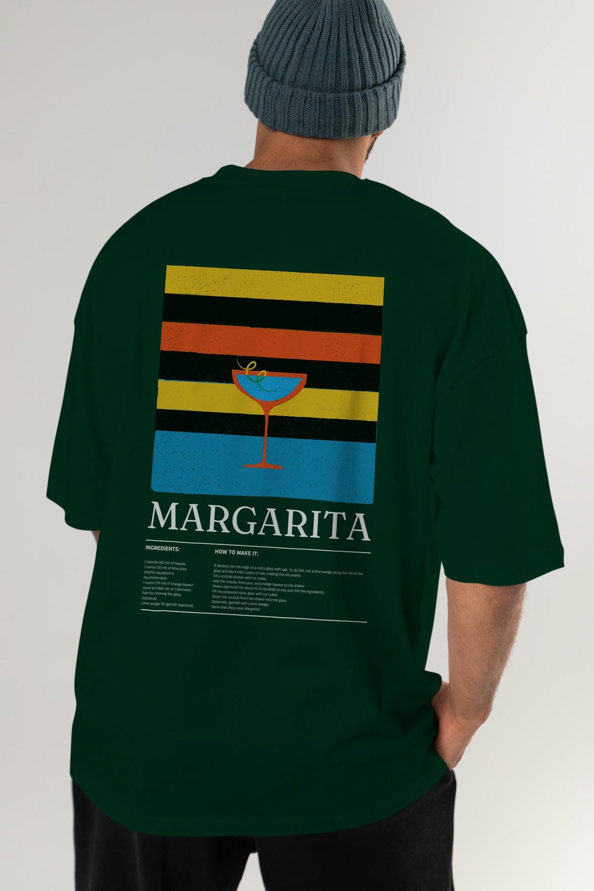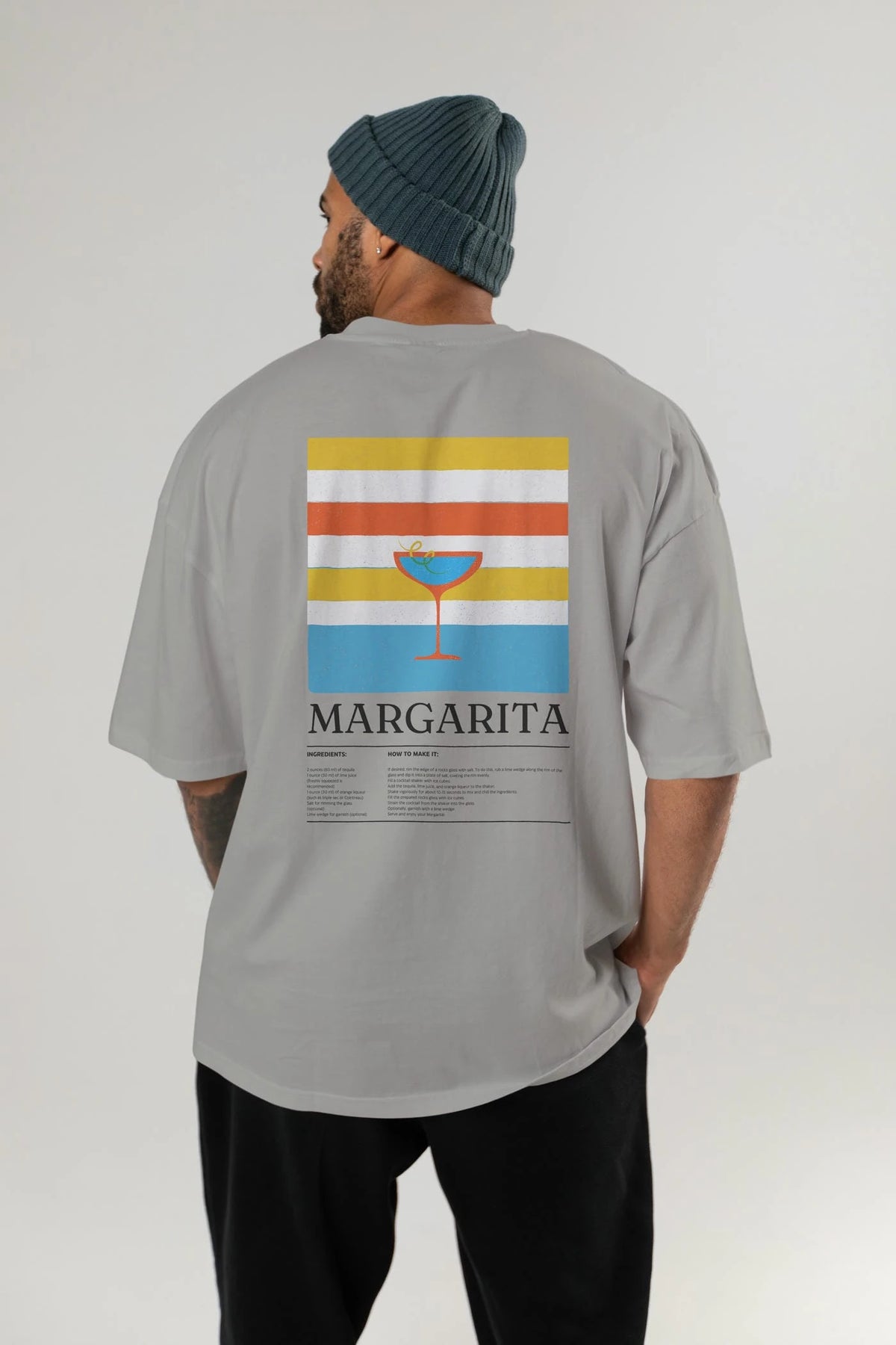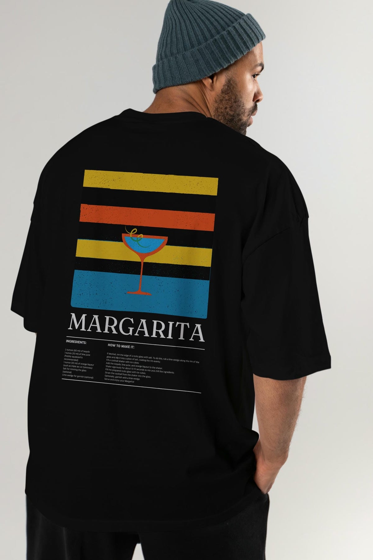 Margarita Kokteyl Serisi Arka Baskılı Oversize t-shirt Erkek Kadın %100 Pamuk Bisiklet Yaka tişort