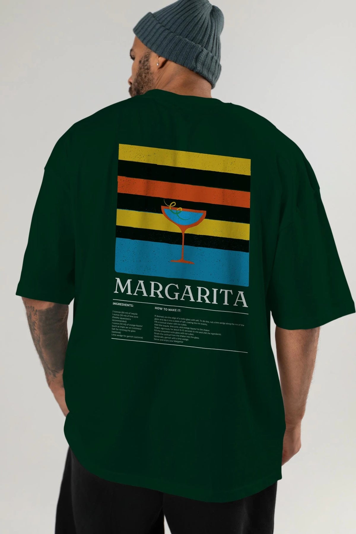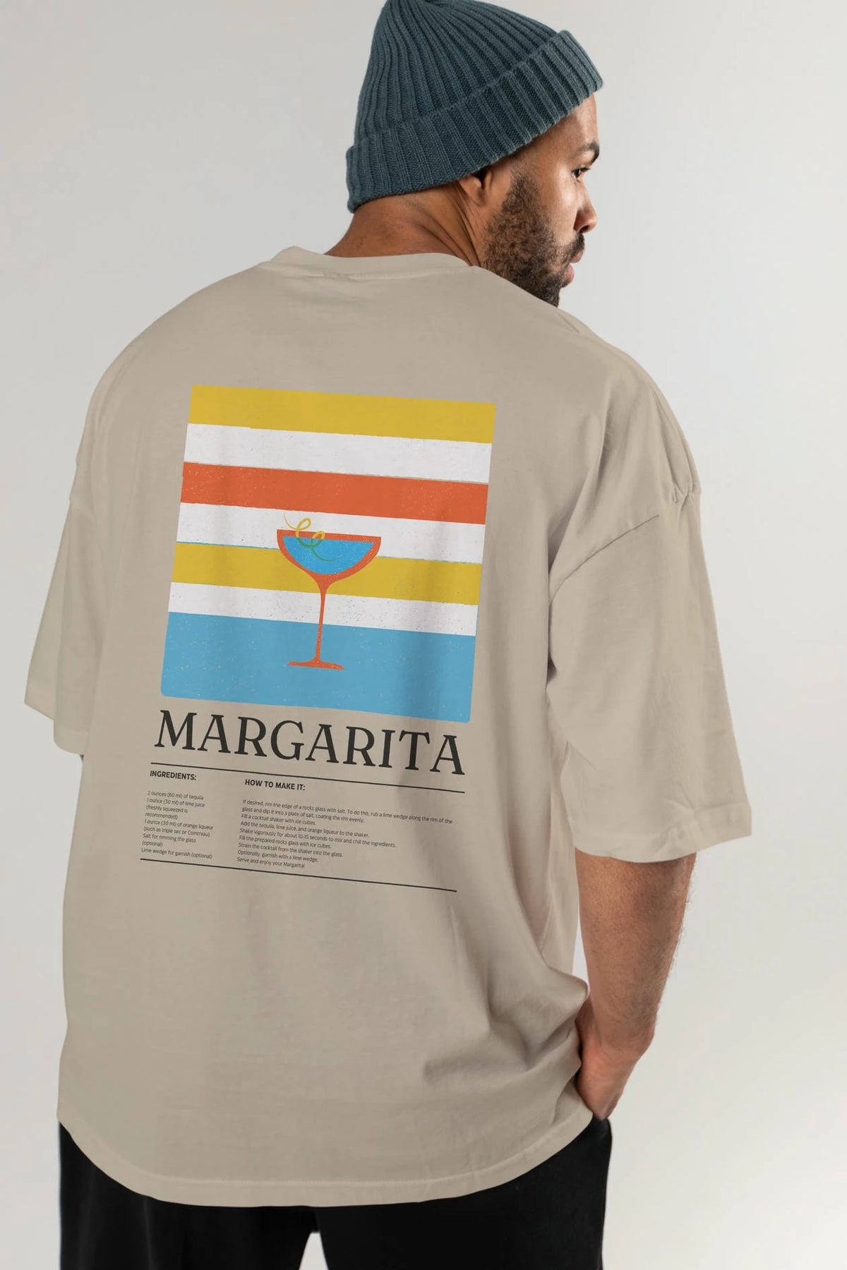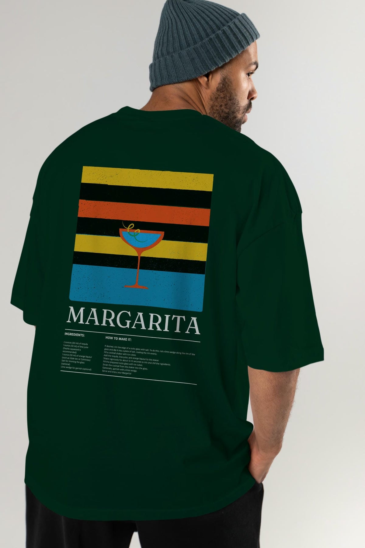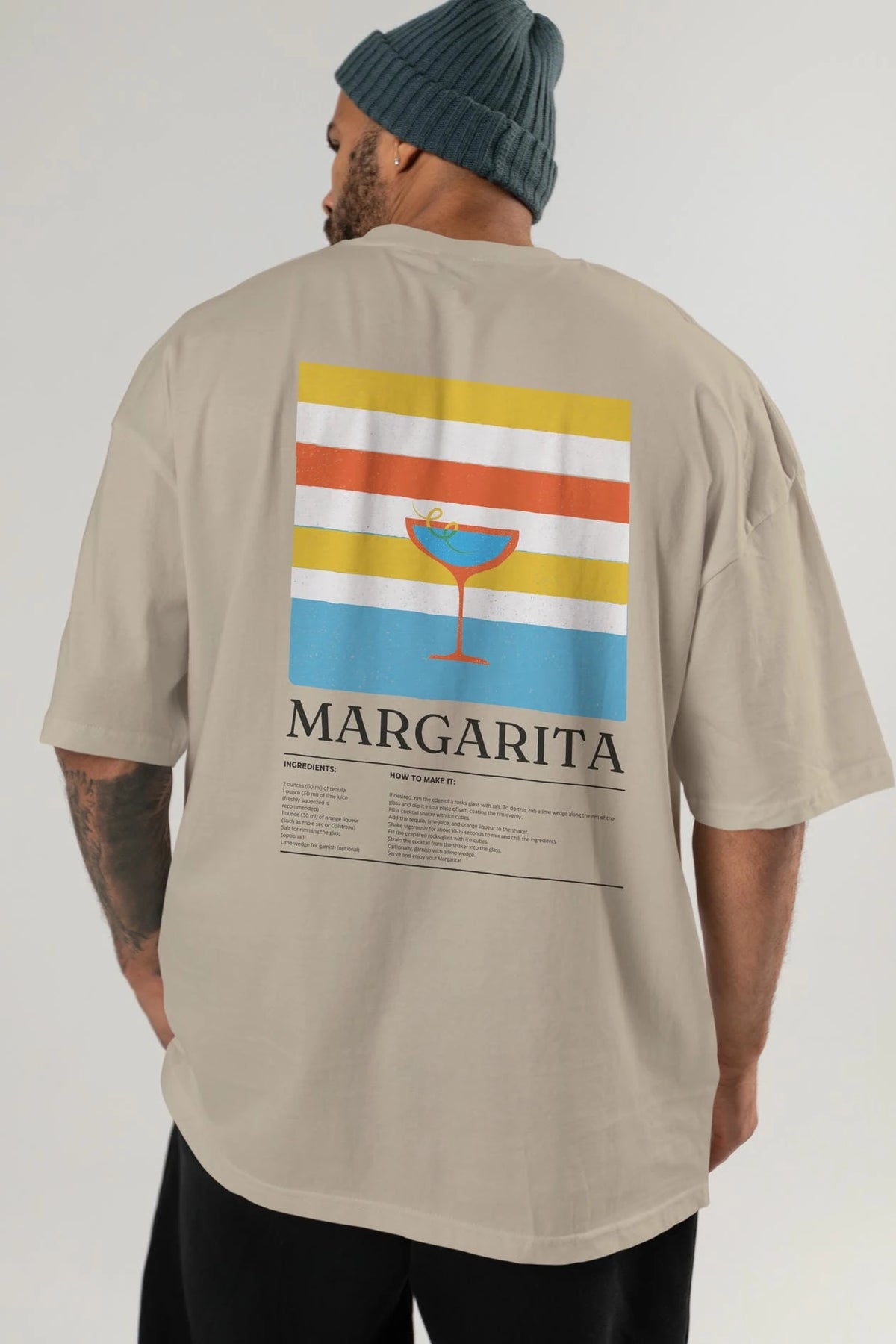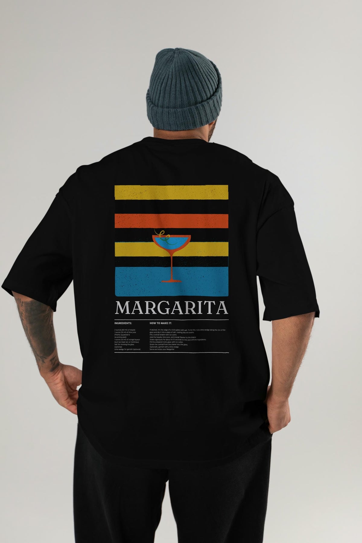 Margarita Kokteyl Serisi Arka Baskılı Oversize t-shirt Erkek Kadın %100 Pamuk Bisiklet Yaka tişort