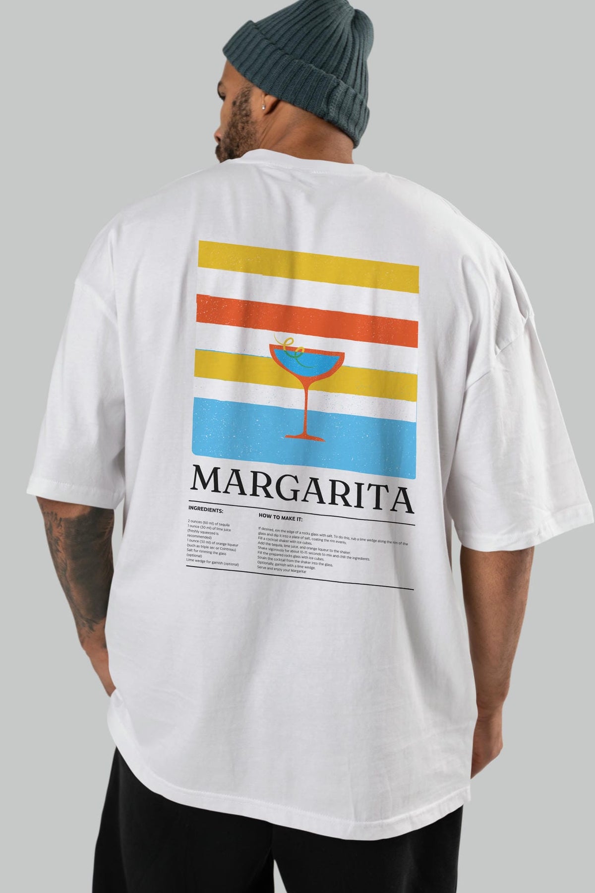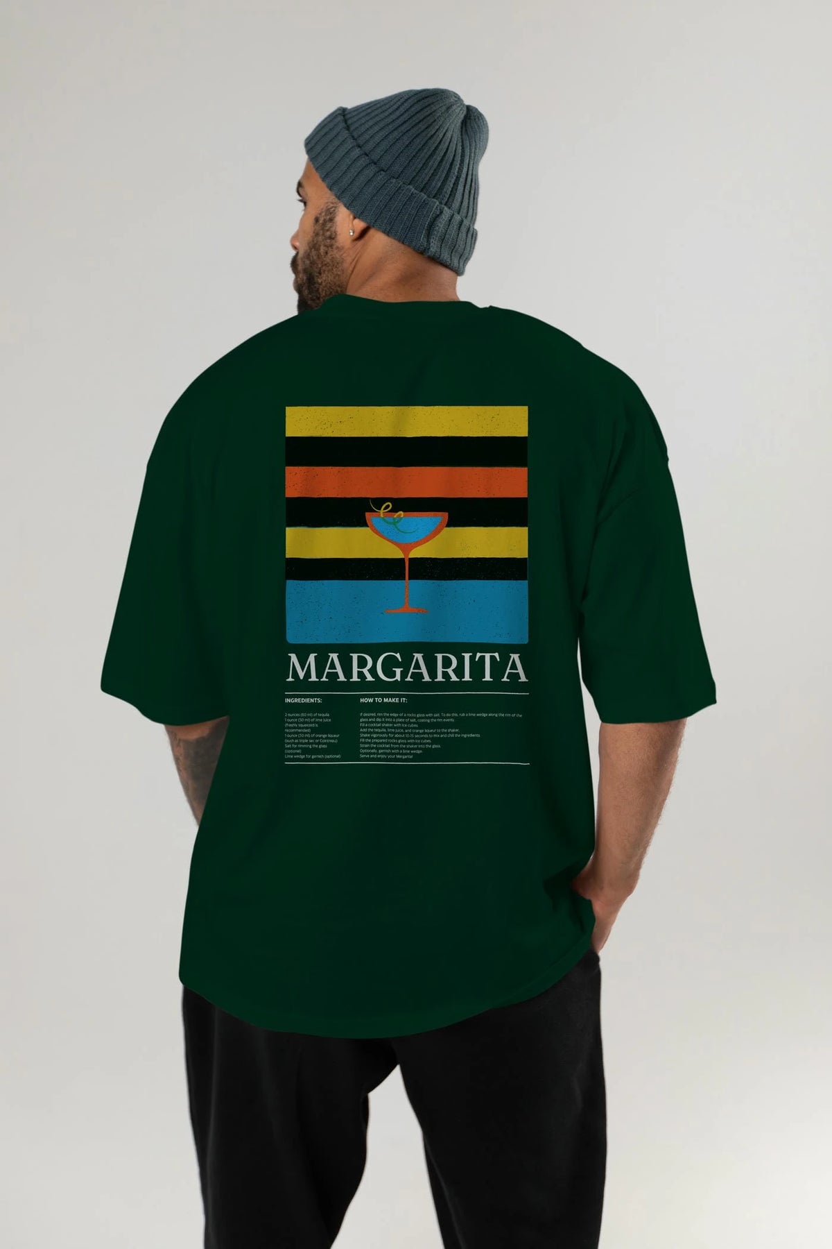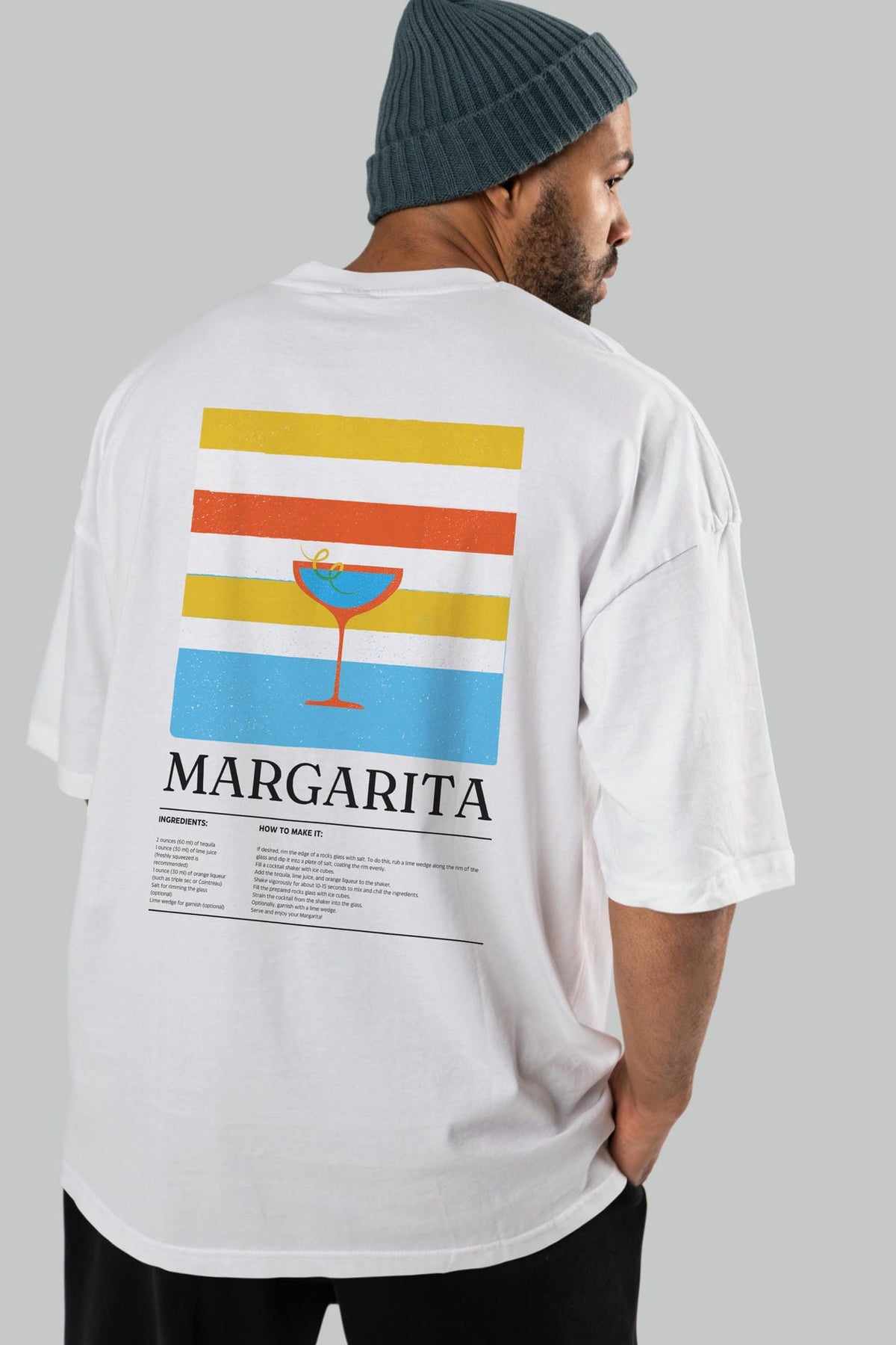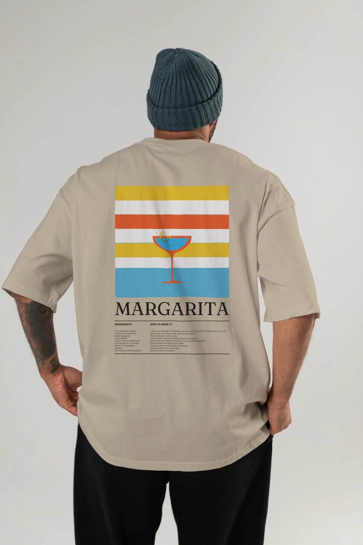 Margarita Kokteyl Serisi Arka Baskılı Oversize t-shirt Erkek Kadın %100 Pamuk Bisiklet Yaka tişort