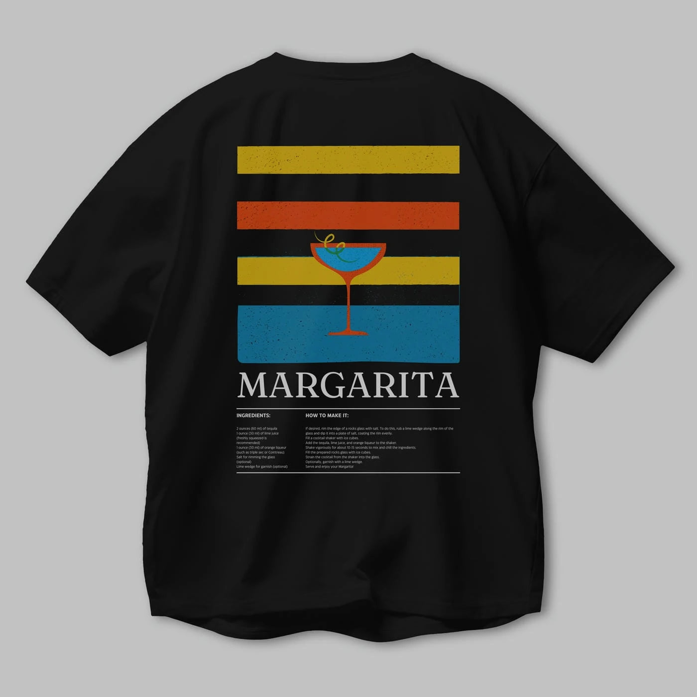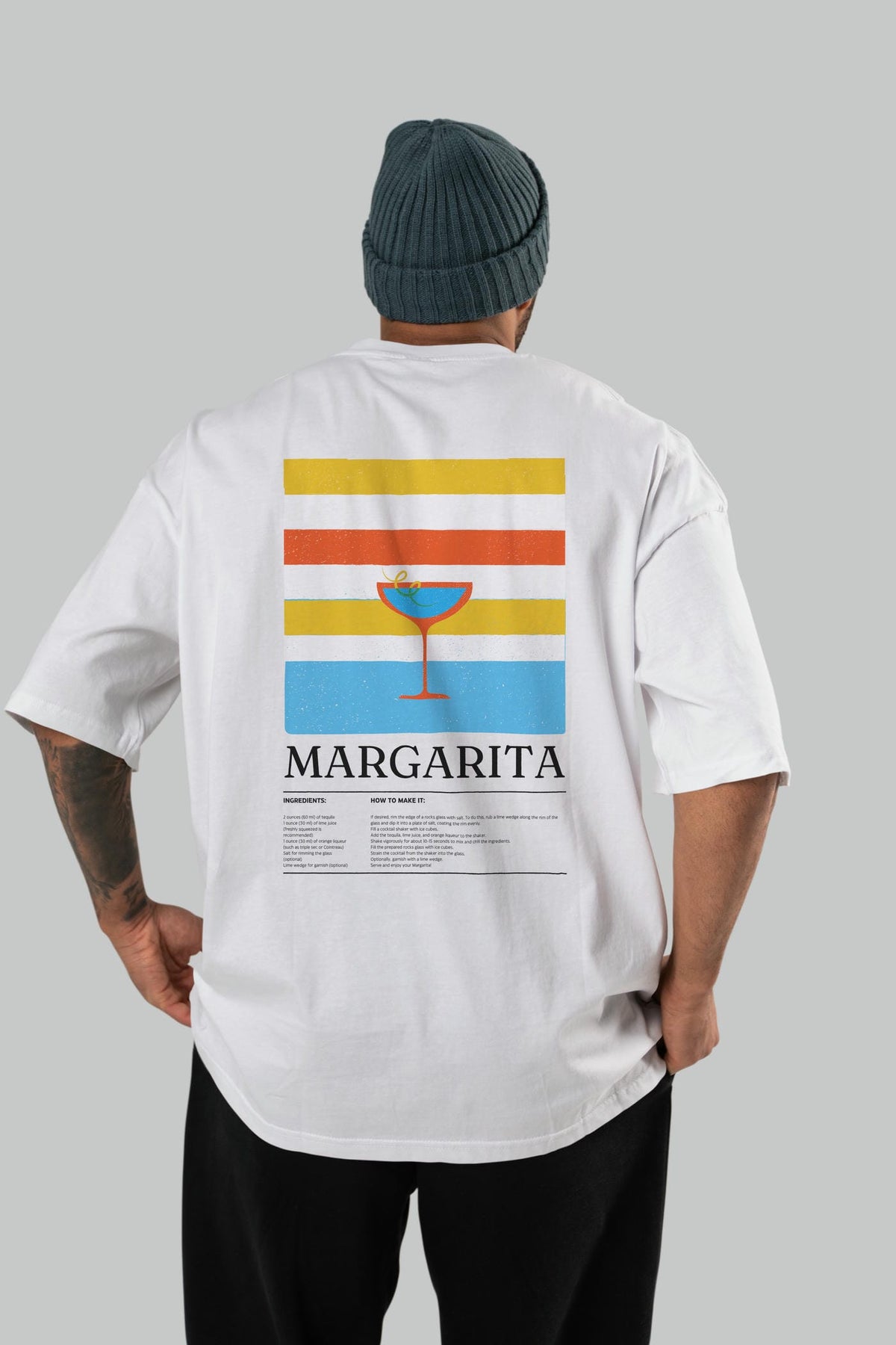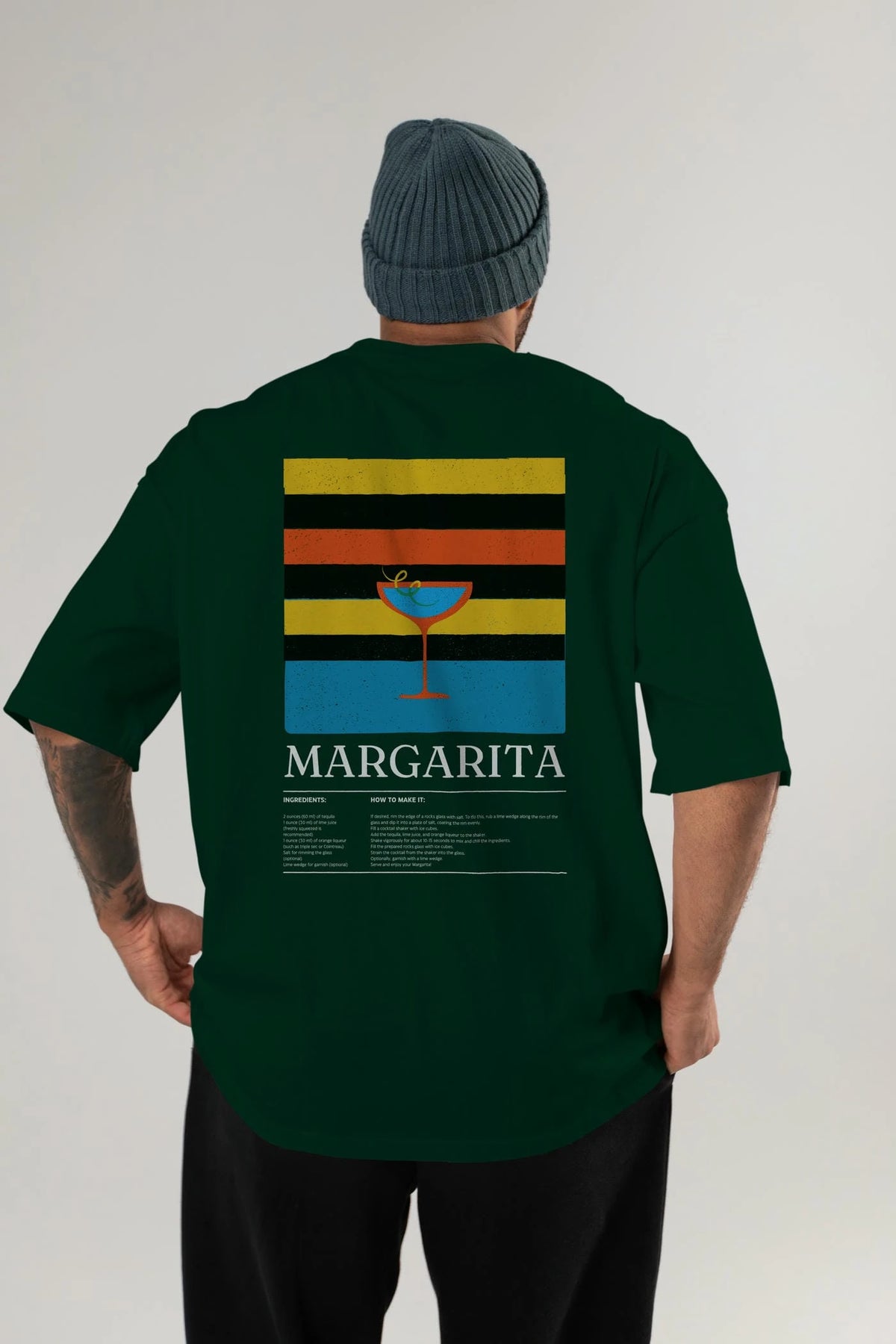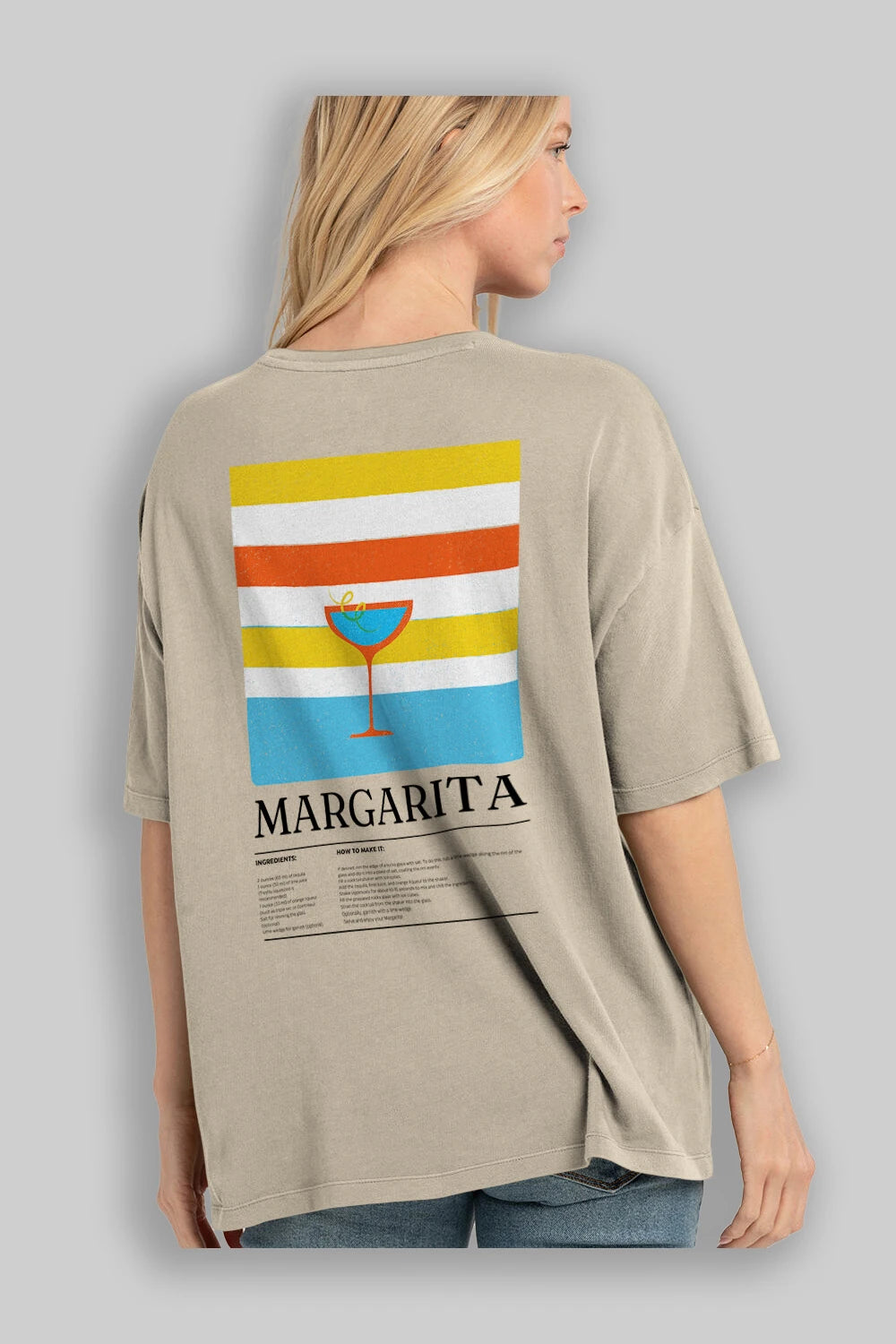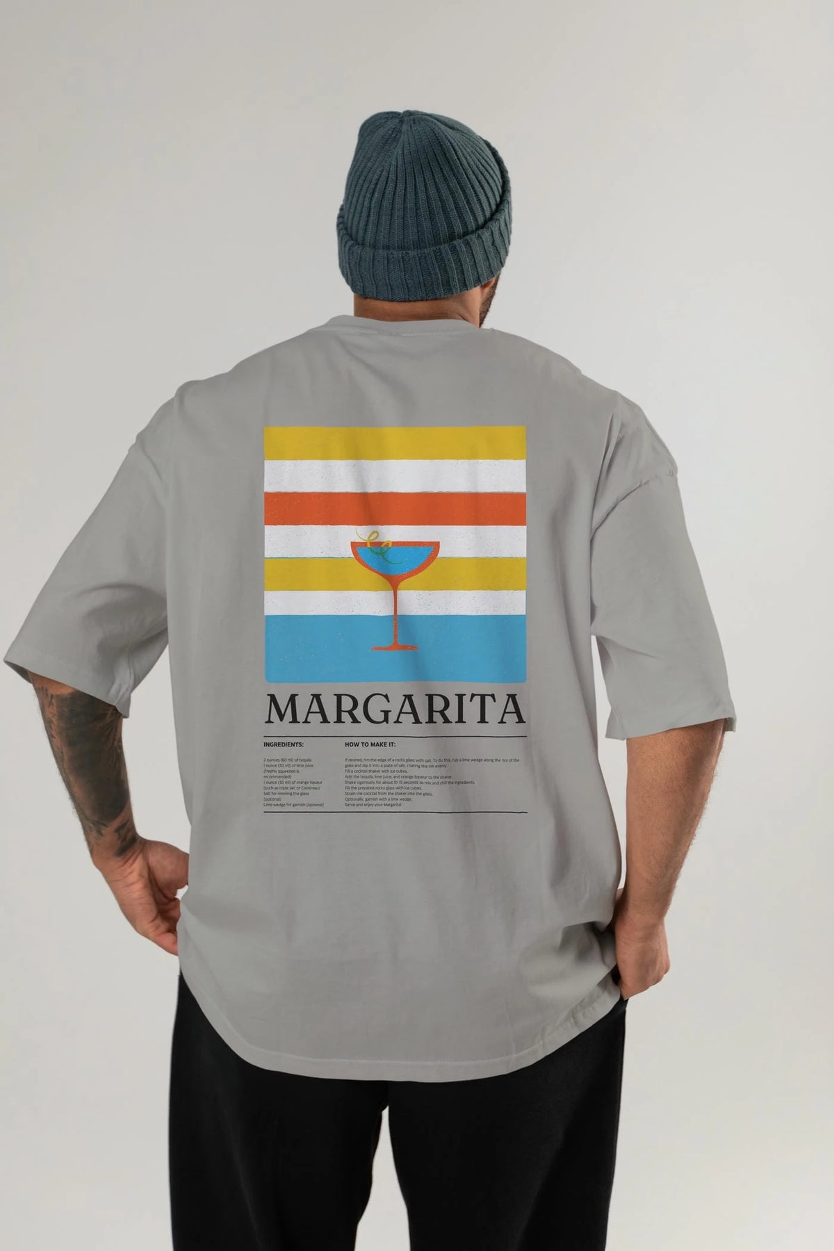 Margarita Kokteyl Serisi Arka Baskılı Oversize t-shirt Erkek Kadın %100 Pamuk Bisiklet Yaka tişort