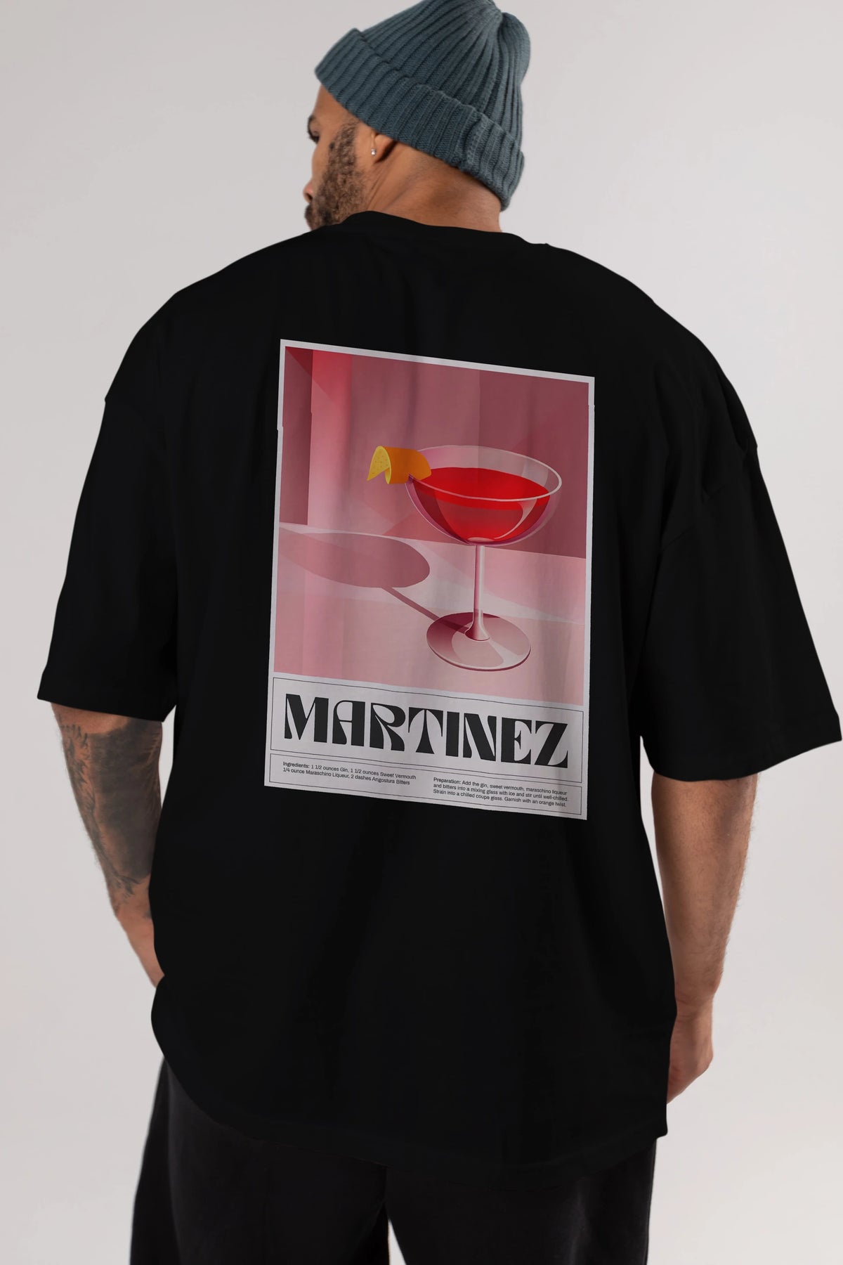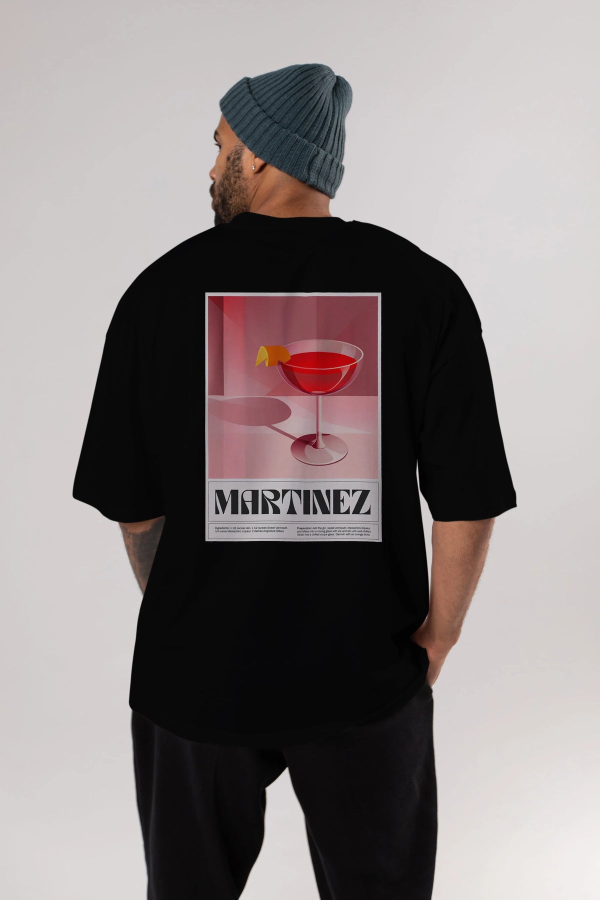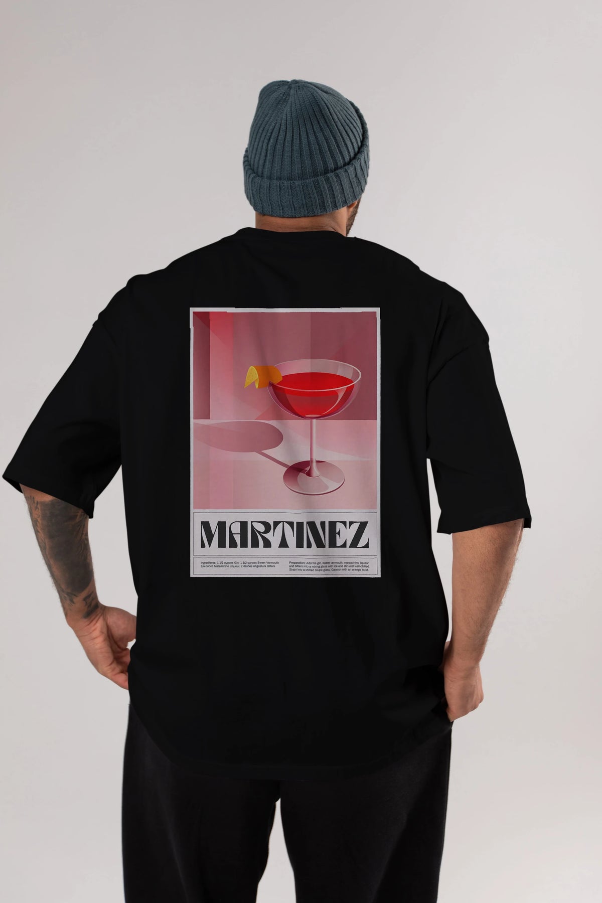 Martinez Arka Baskılı Oversize t-shirt Erkek Kadın Unisex %100 Pamuk Bisiklet Yaka tişort