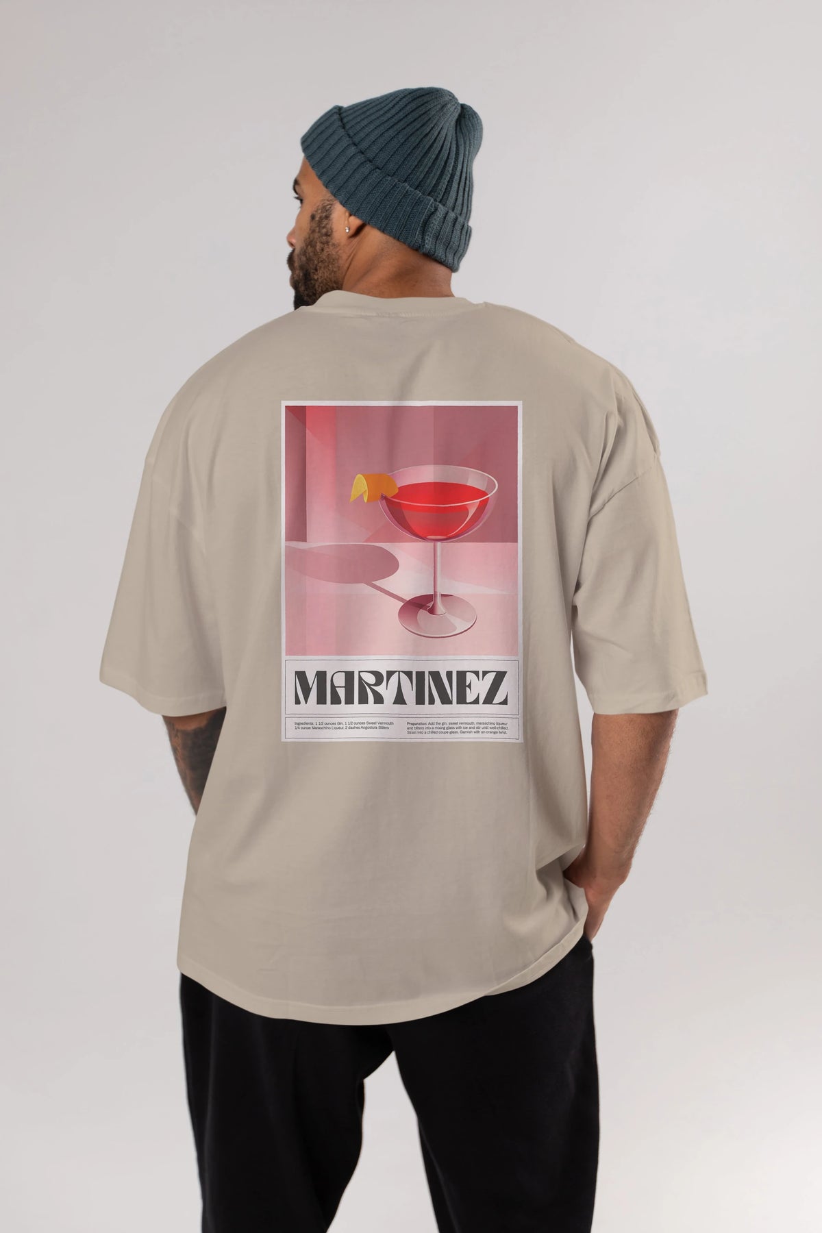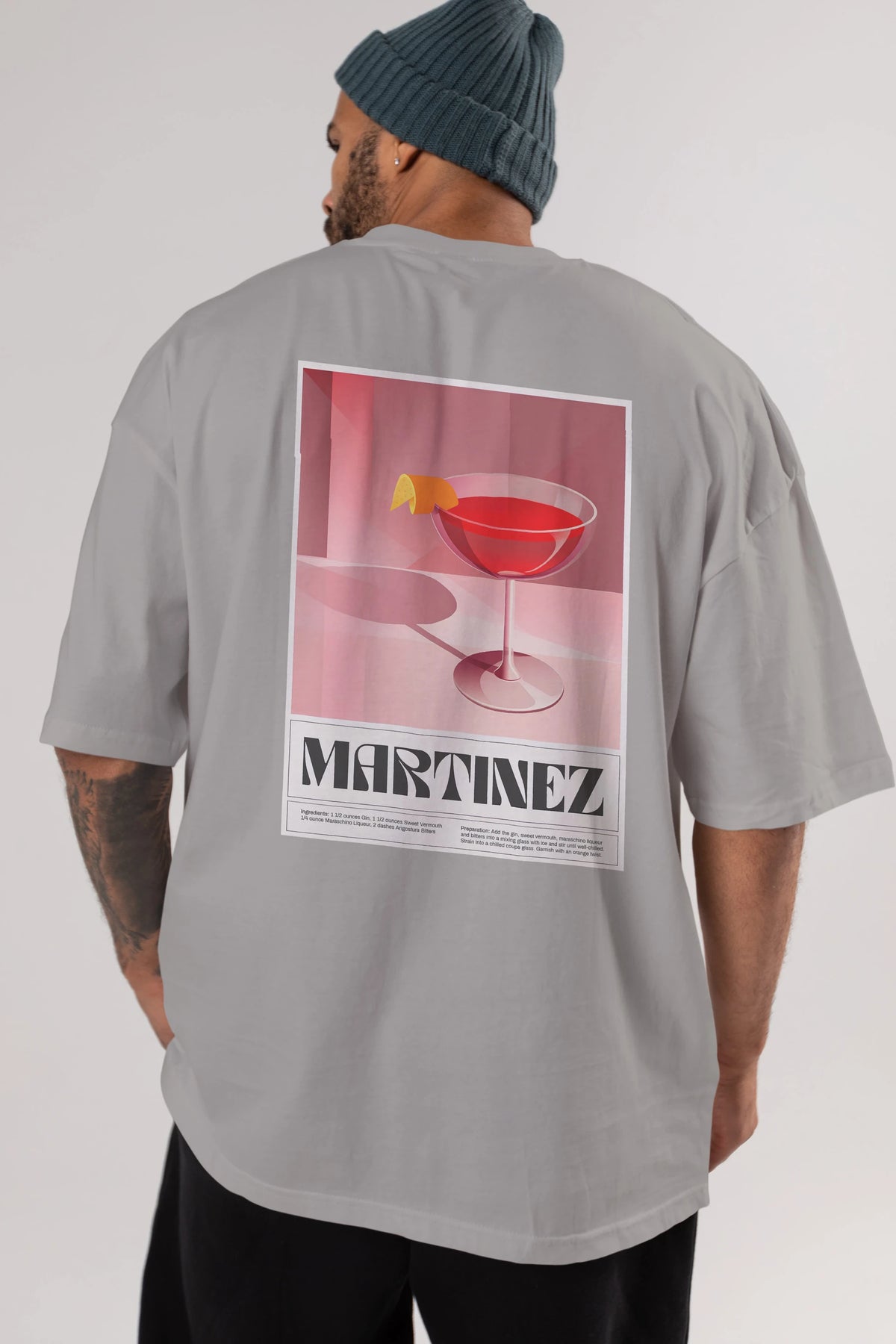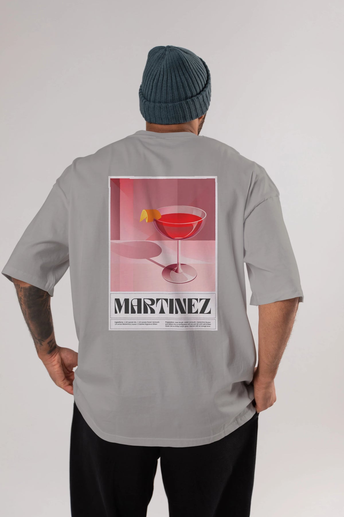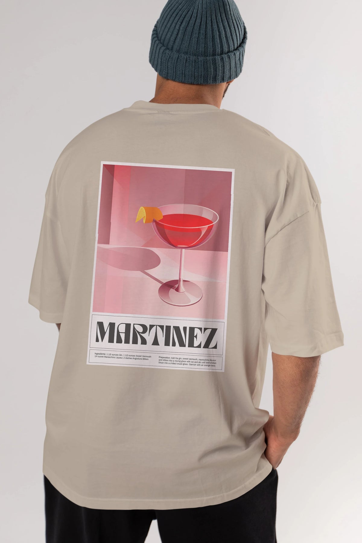 Martinez Arka Baskılı Oversize t-shirt Erkek Kadın Unisex %100 Pamuk Bisiklet Yaka tişort